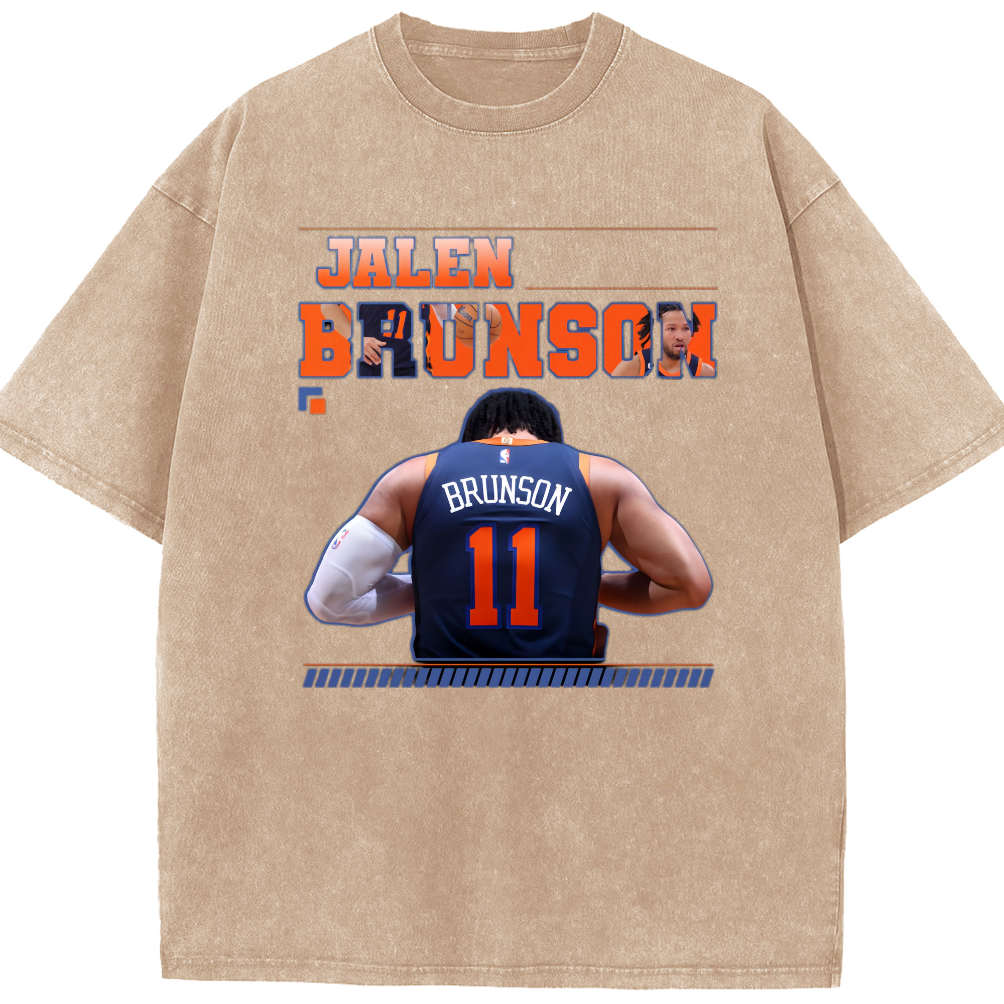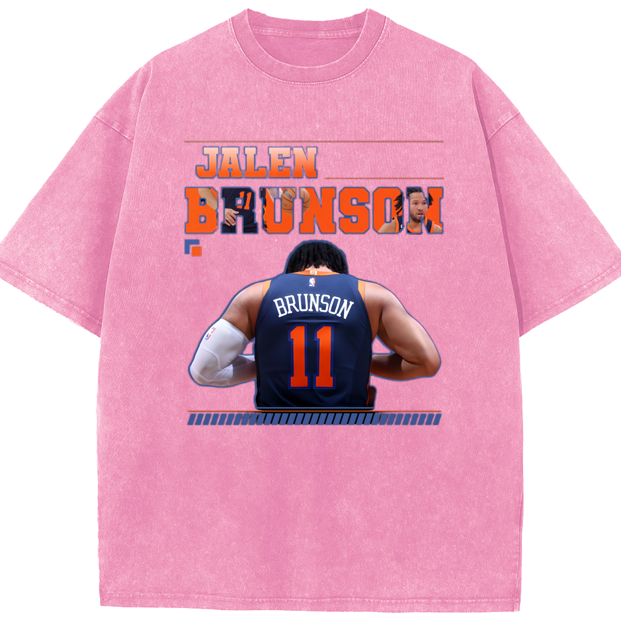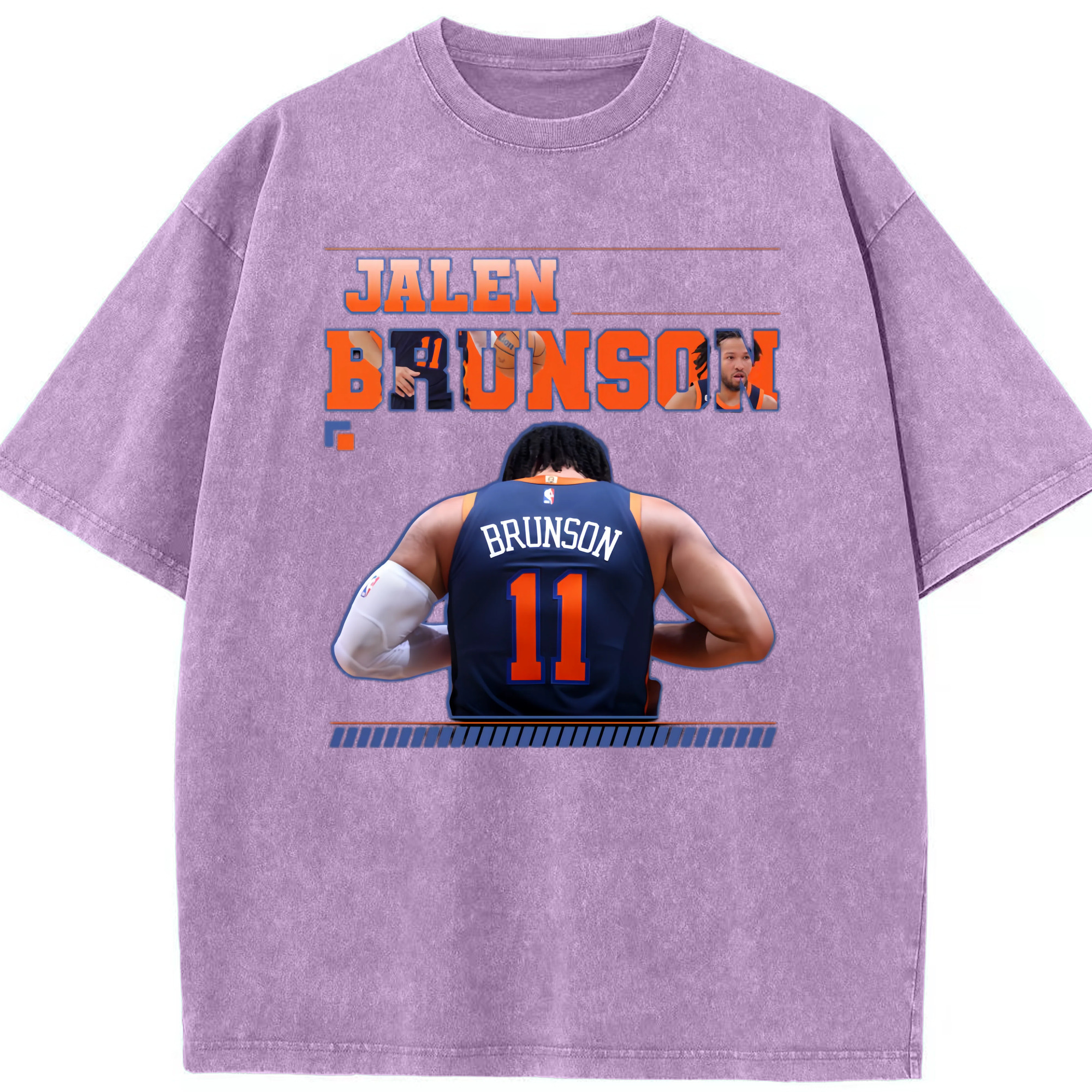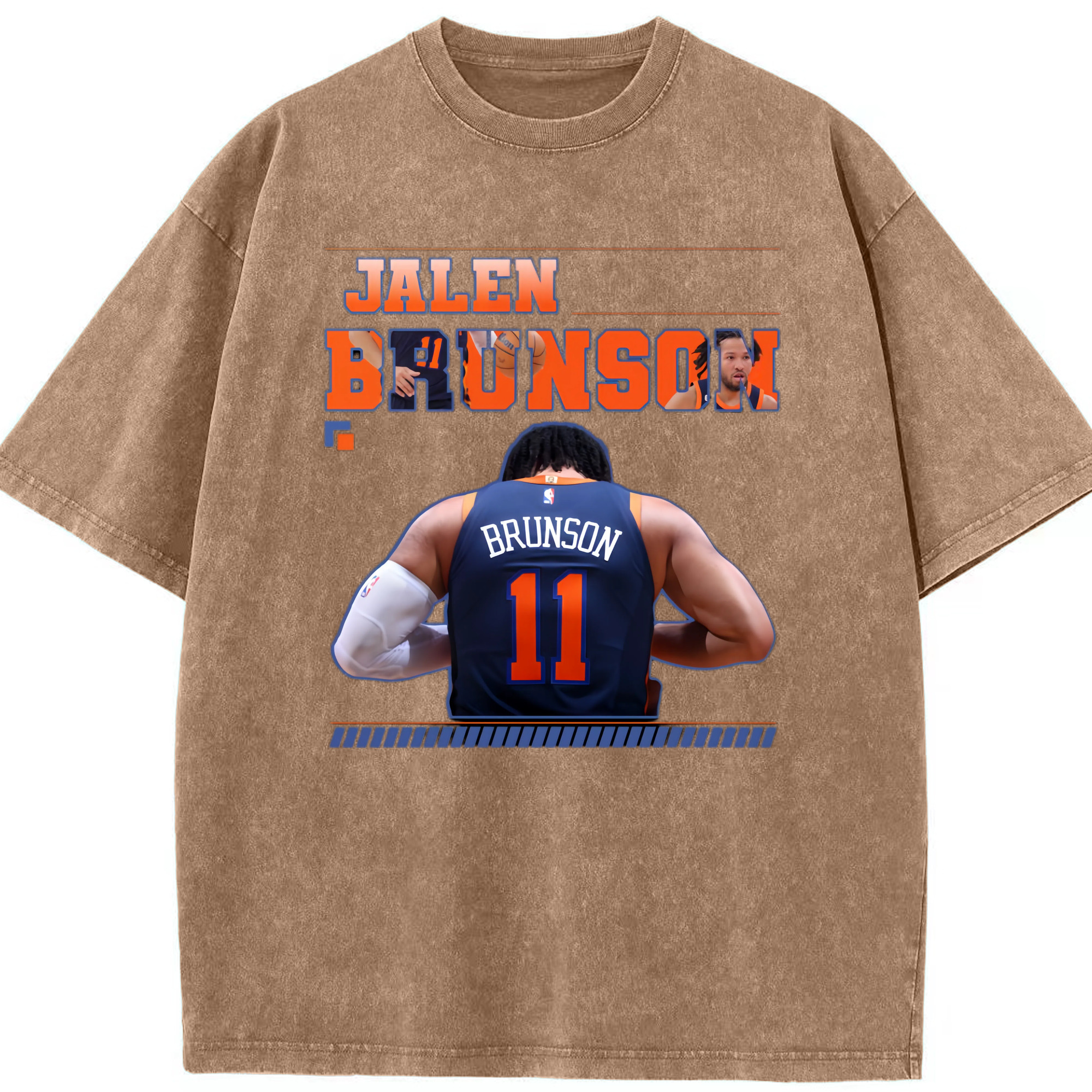 Jalen Brunson Knicks t-Shirt - Washed Vintage Look 230g Cotton Oversized T-Shirt With Front Heat Transfer Print – Soft, Lightweight, Stylish Fit – Comfortable Casual Wear For Sports & Everyday Use