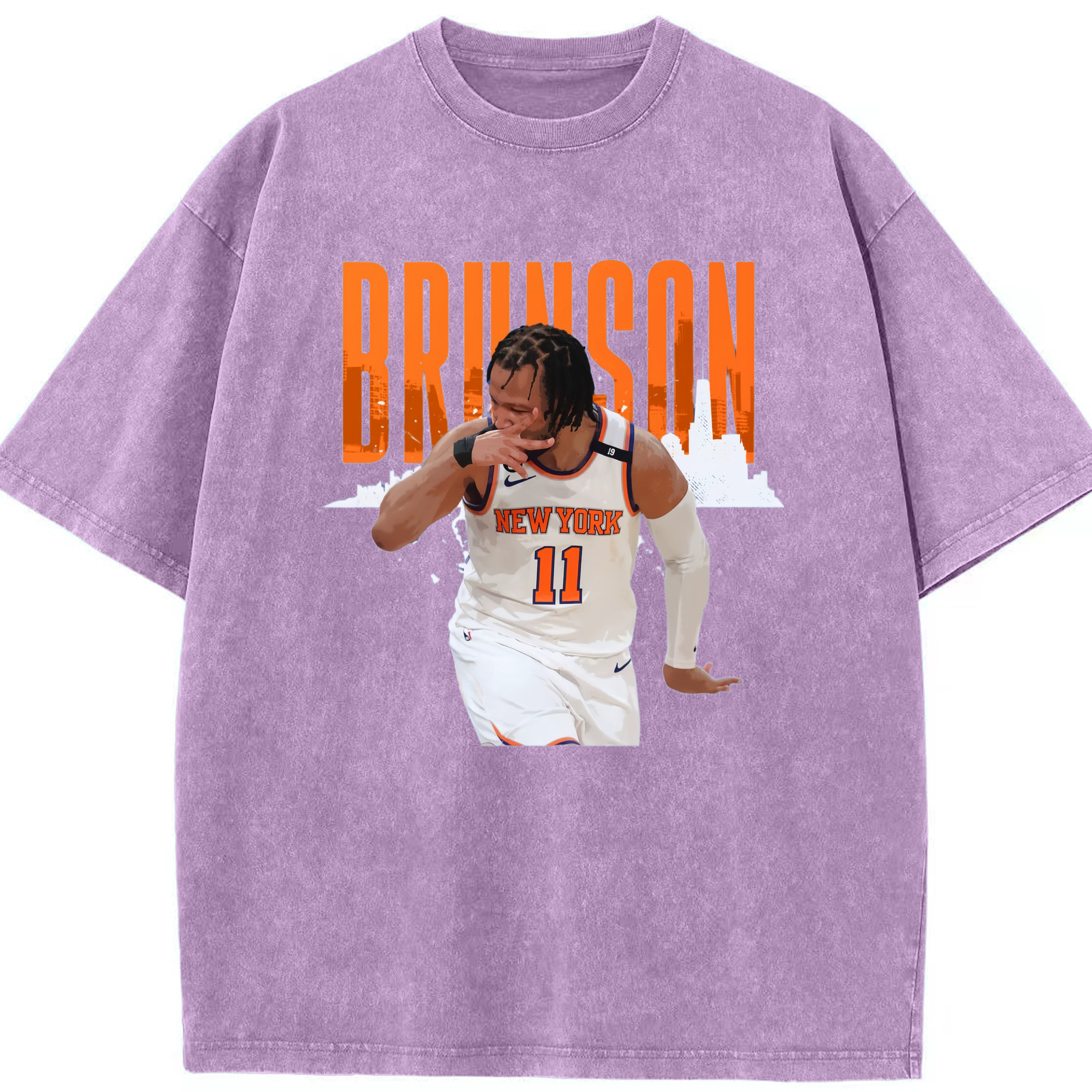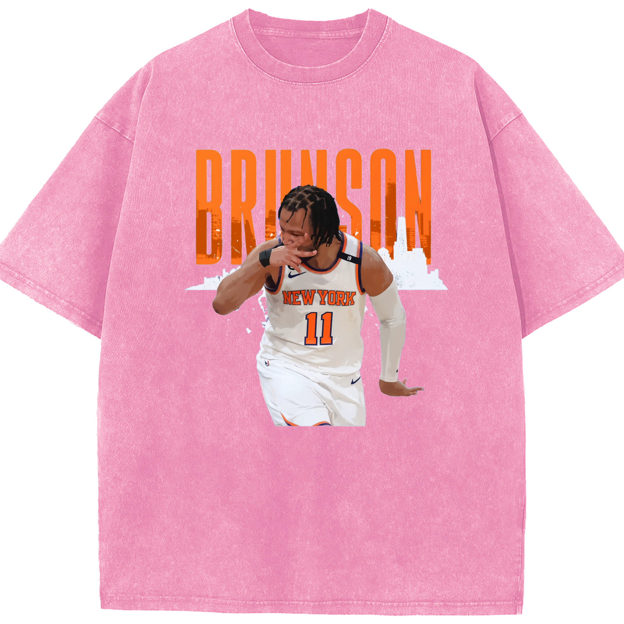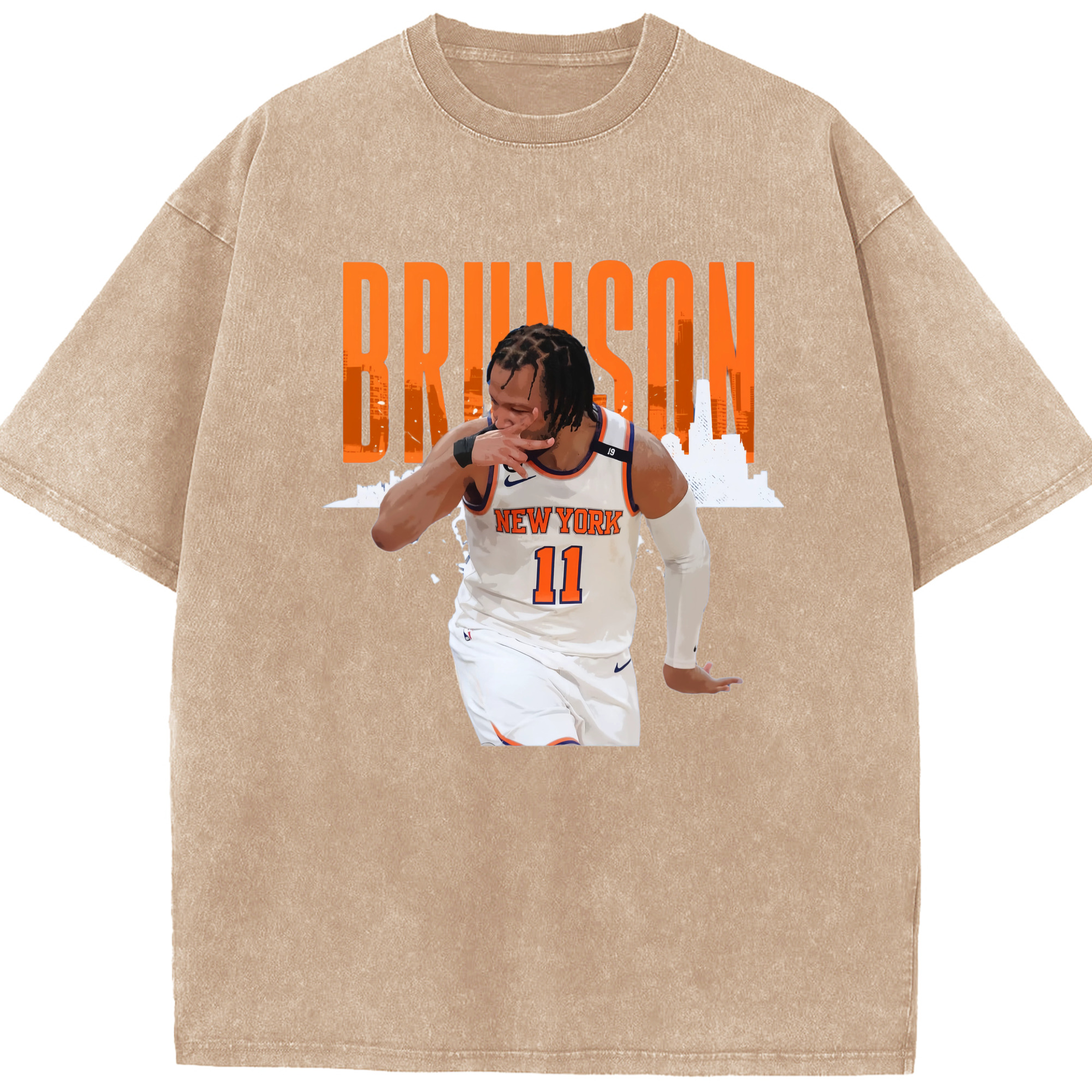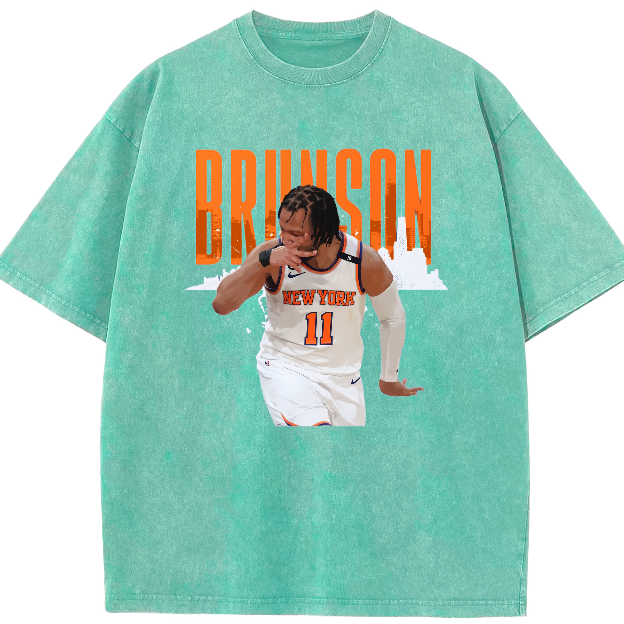 Jalen Brunson Three Point Celebration t-Shirt - Washed Vintage Look 230g Cotton Oversized T-Shirt With Front Heat Transfer Print – Soft, Lightweight, Stylish Fit – Comfortable Casual Wear For Sports & Everyday Use