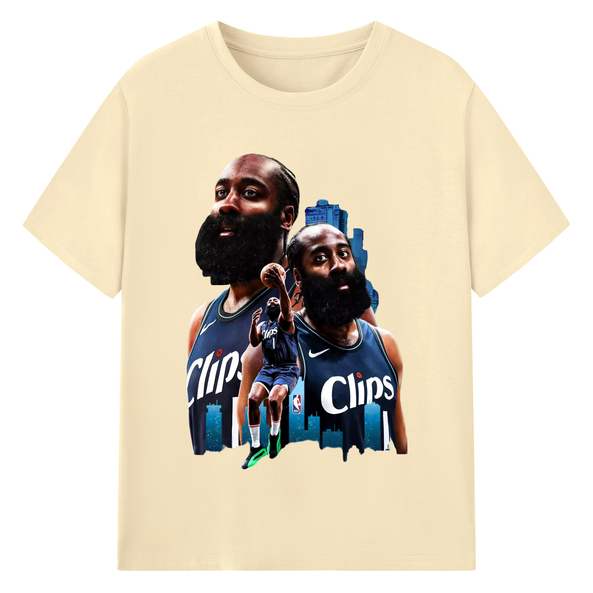 James Harden #1 Clippers City EditionT‑shirt - 180g Cotton T-Shirt With Front Heat Transfer Print – Soft, Lightweight, Fitted Design – Comfortable Casual Wear For Sports & Everyday Use