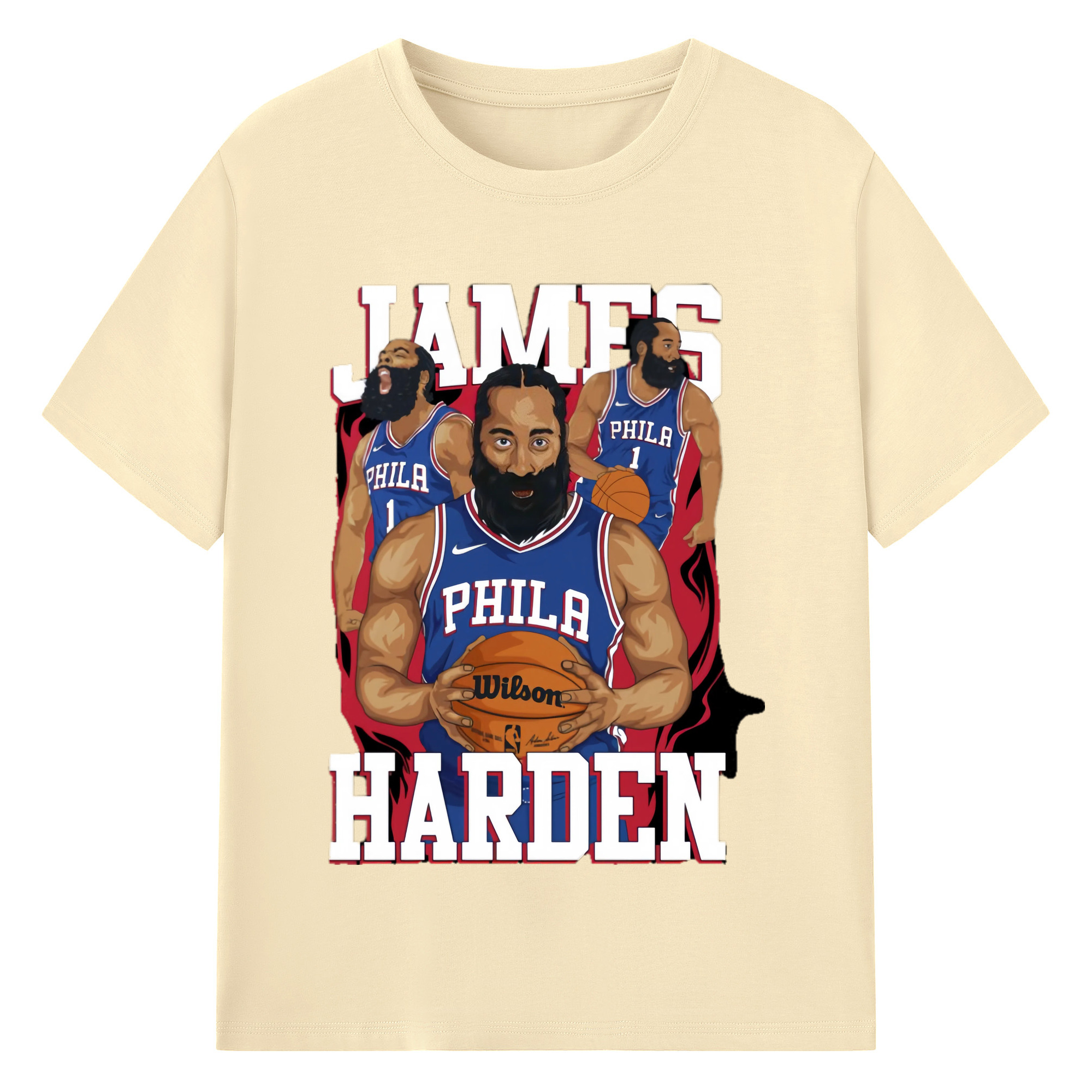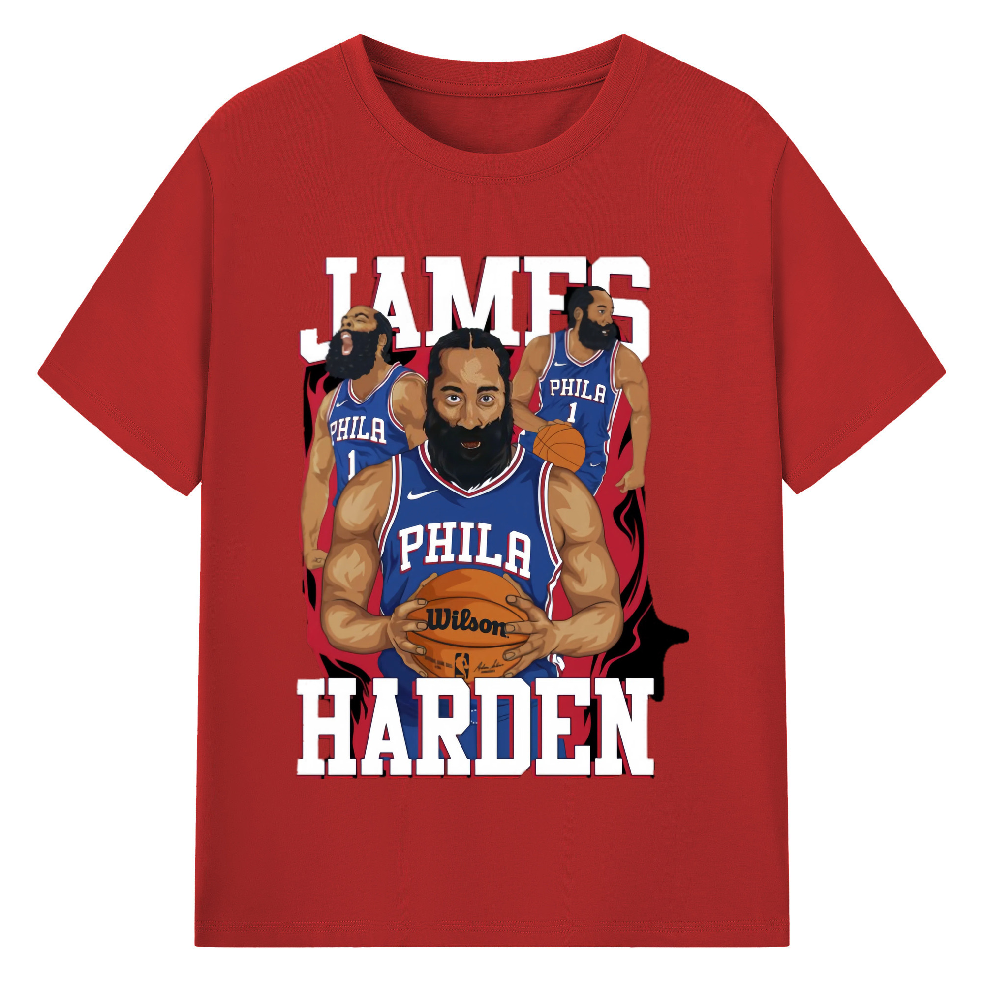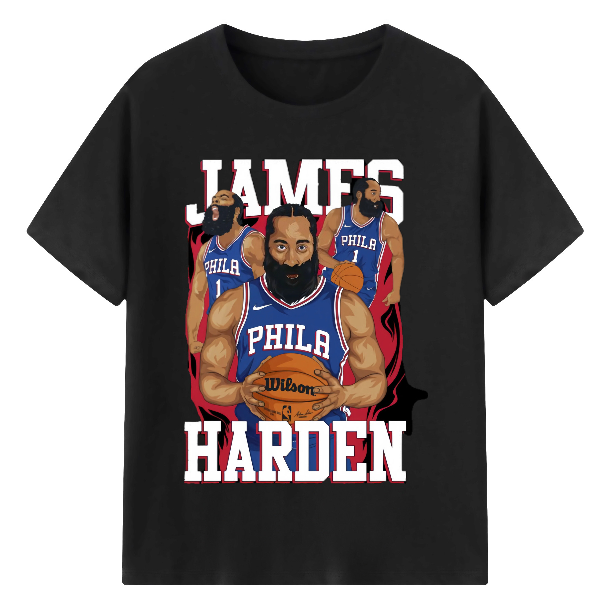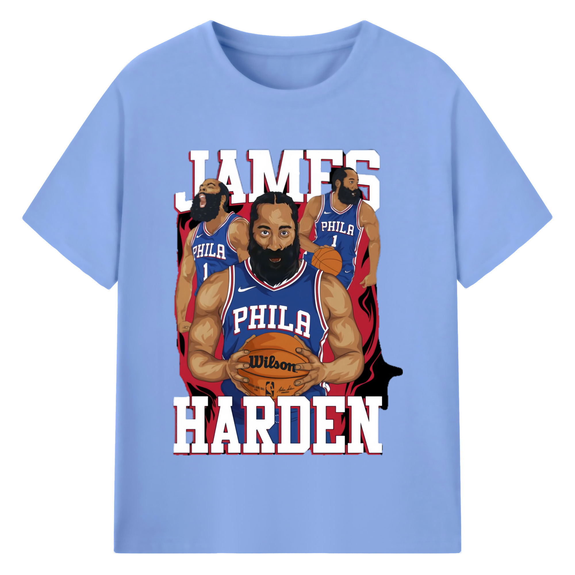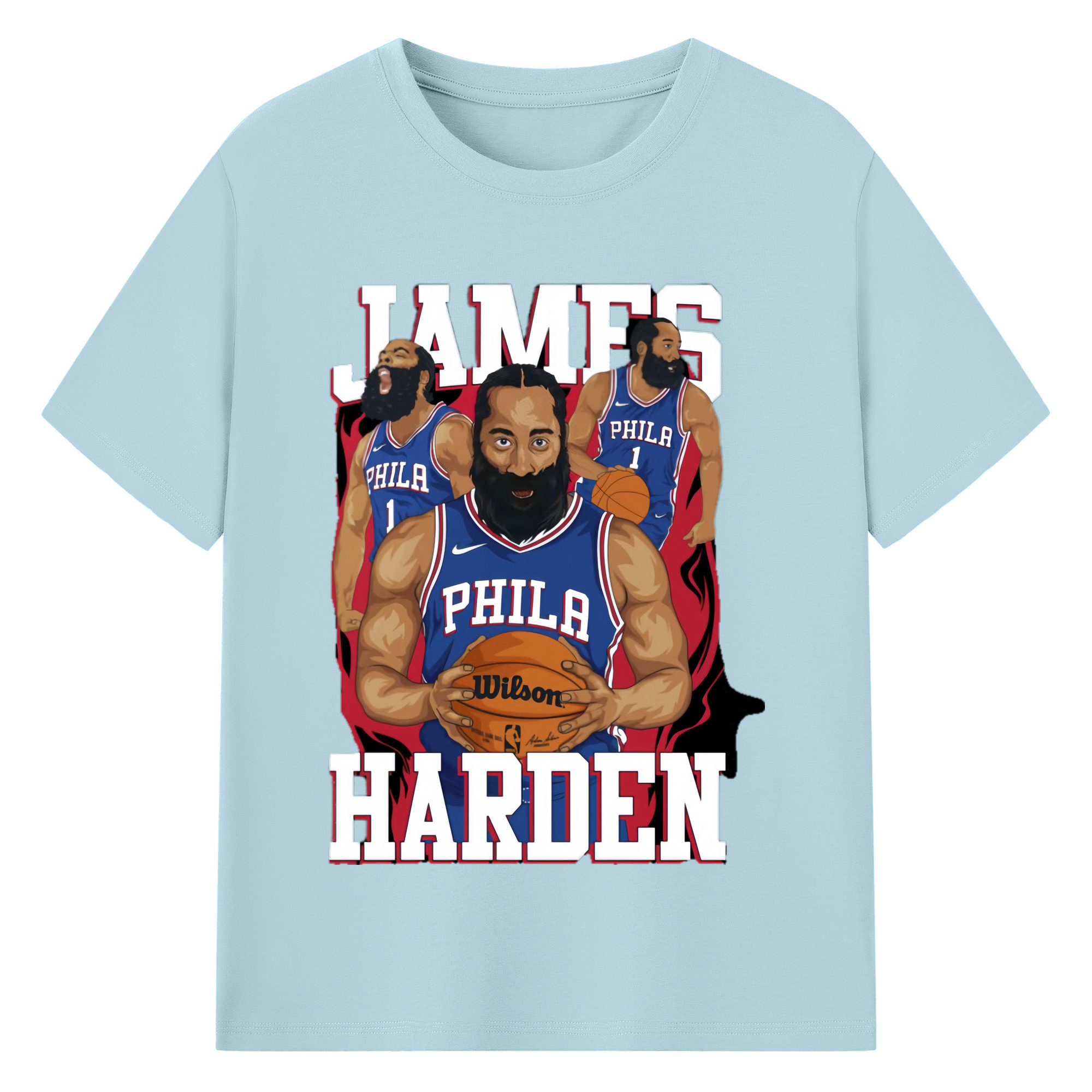 James Harden 76er #1 comic style T‑shirt - 180g Cotton T-Shirt With Front Heat Transfer Print – Soft, Lightweight, Fitted Design – Comfortable Casual Wear For Sports & Everyday Use