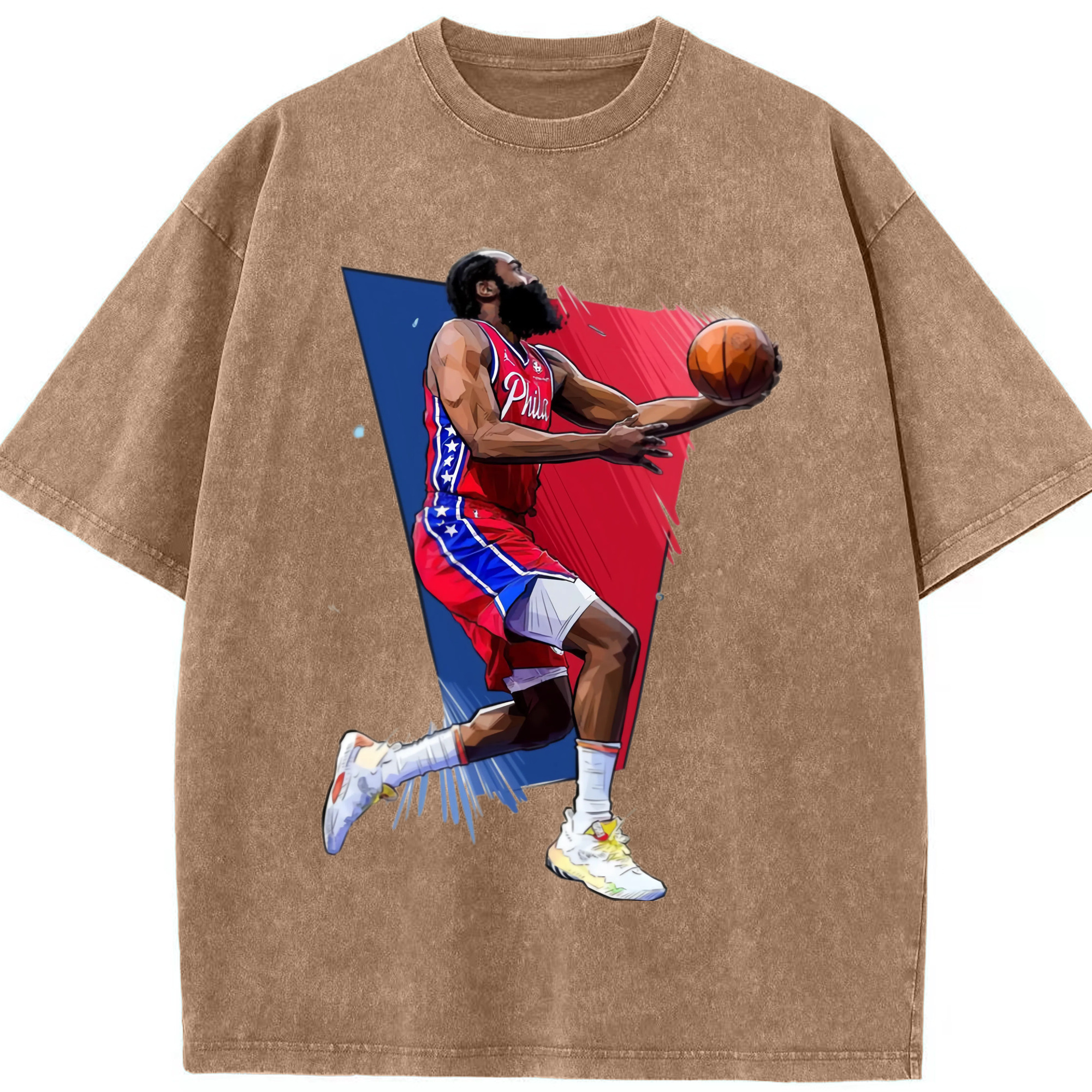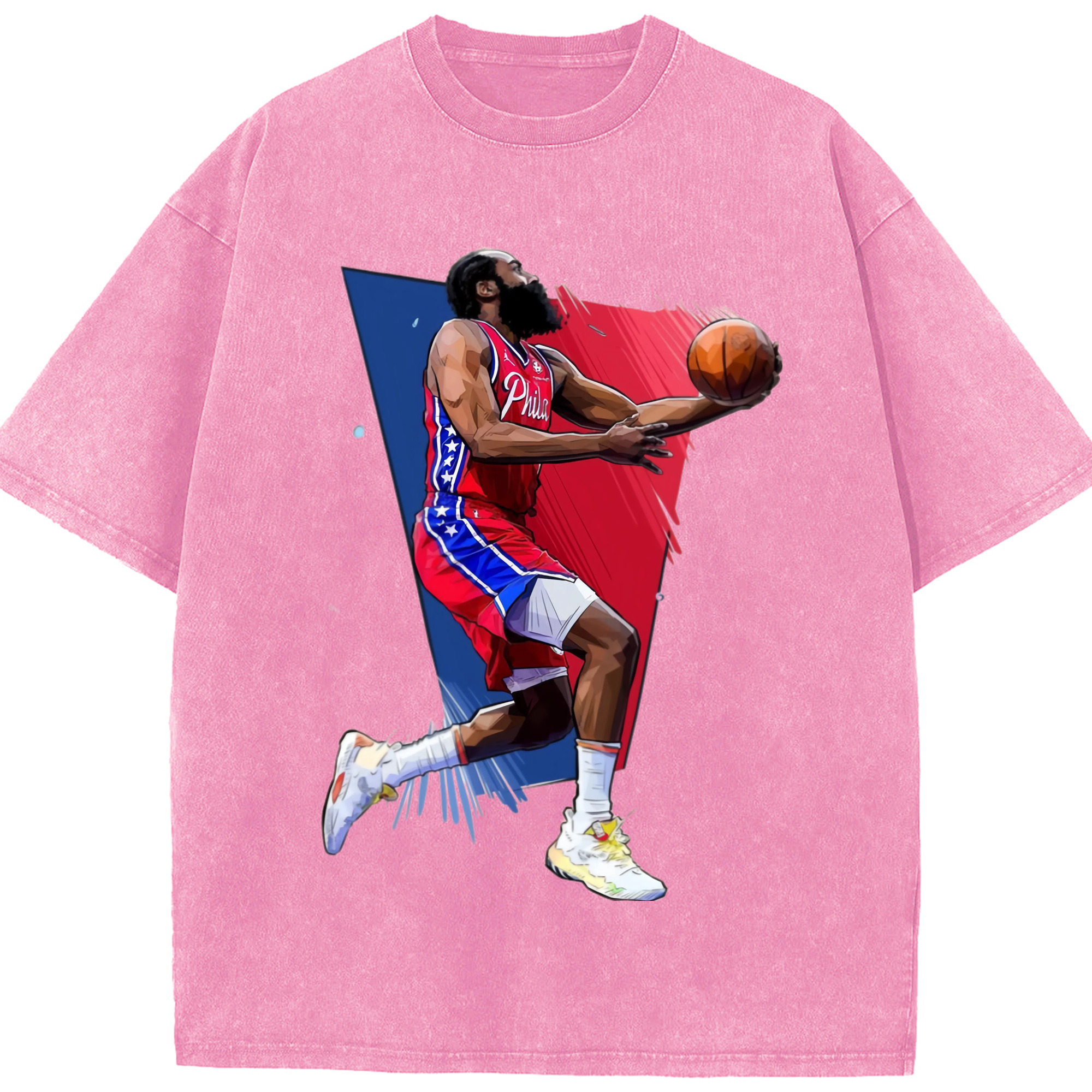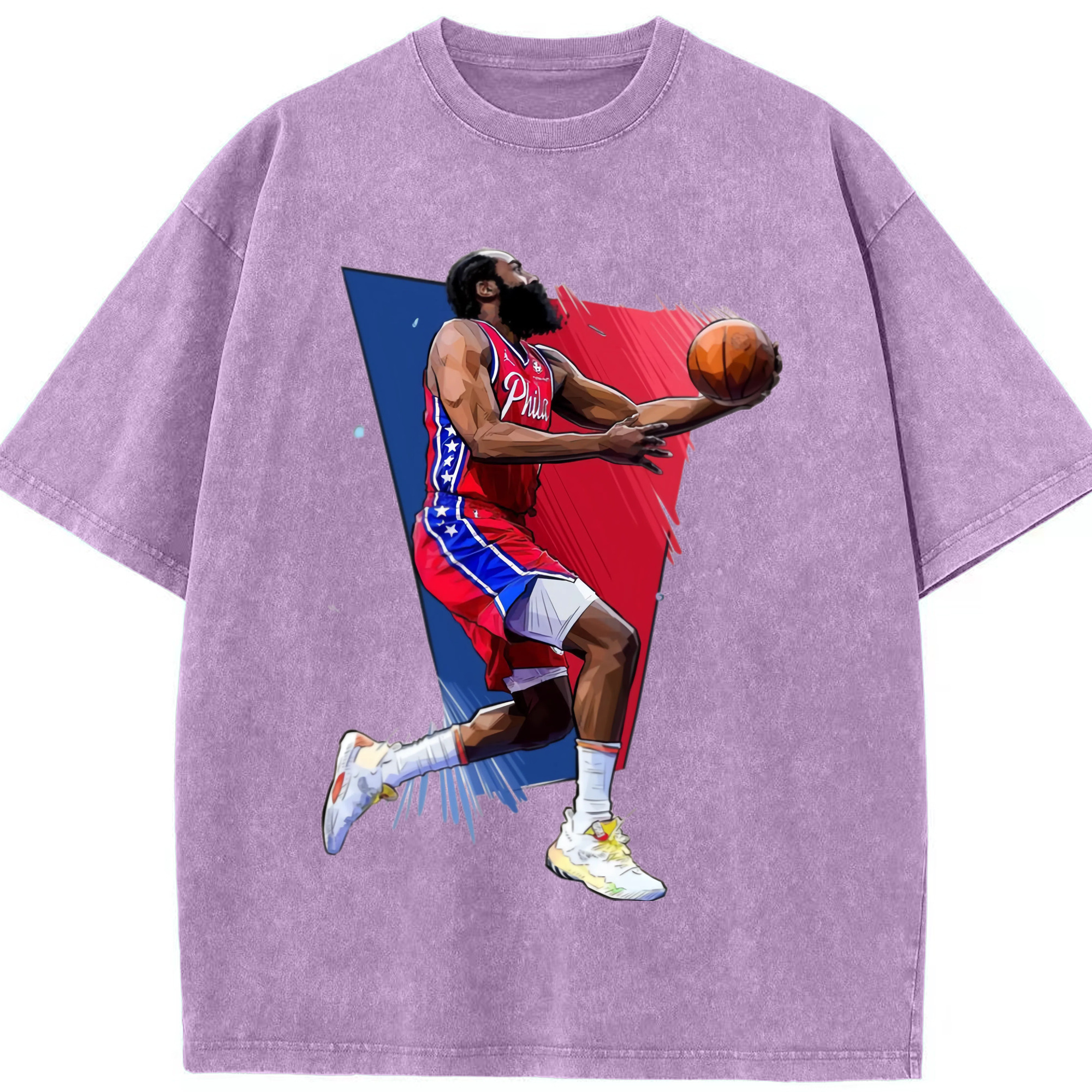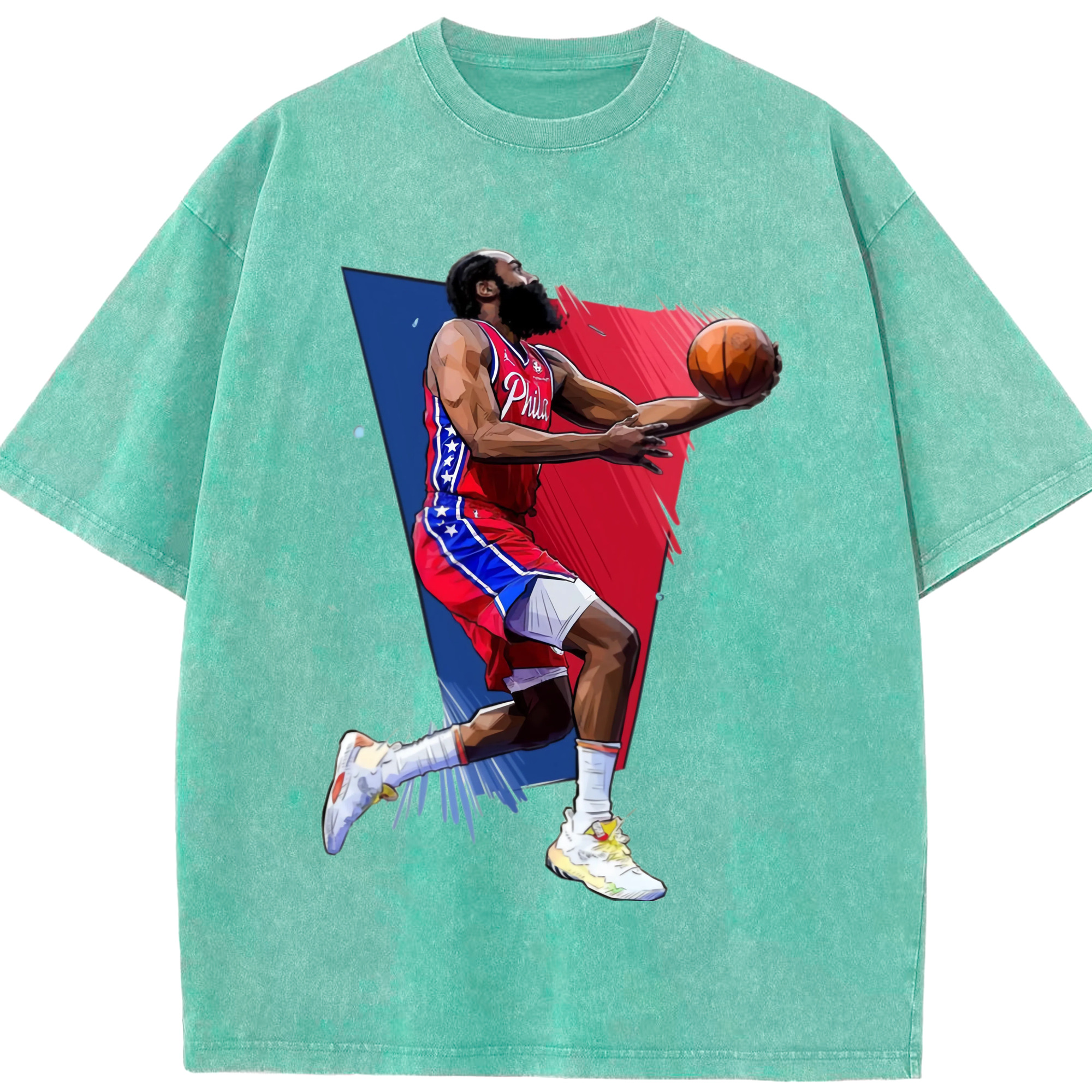 James Harden 76er comic style T‑shirt - Washed Vintage Look 230g Cotton Oversized T-Shirt With Front Heat Transfer Print – Soft, Lightweight, Stylish Fit – Comfortable Casual Wear For Sports & Everyday Use