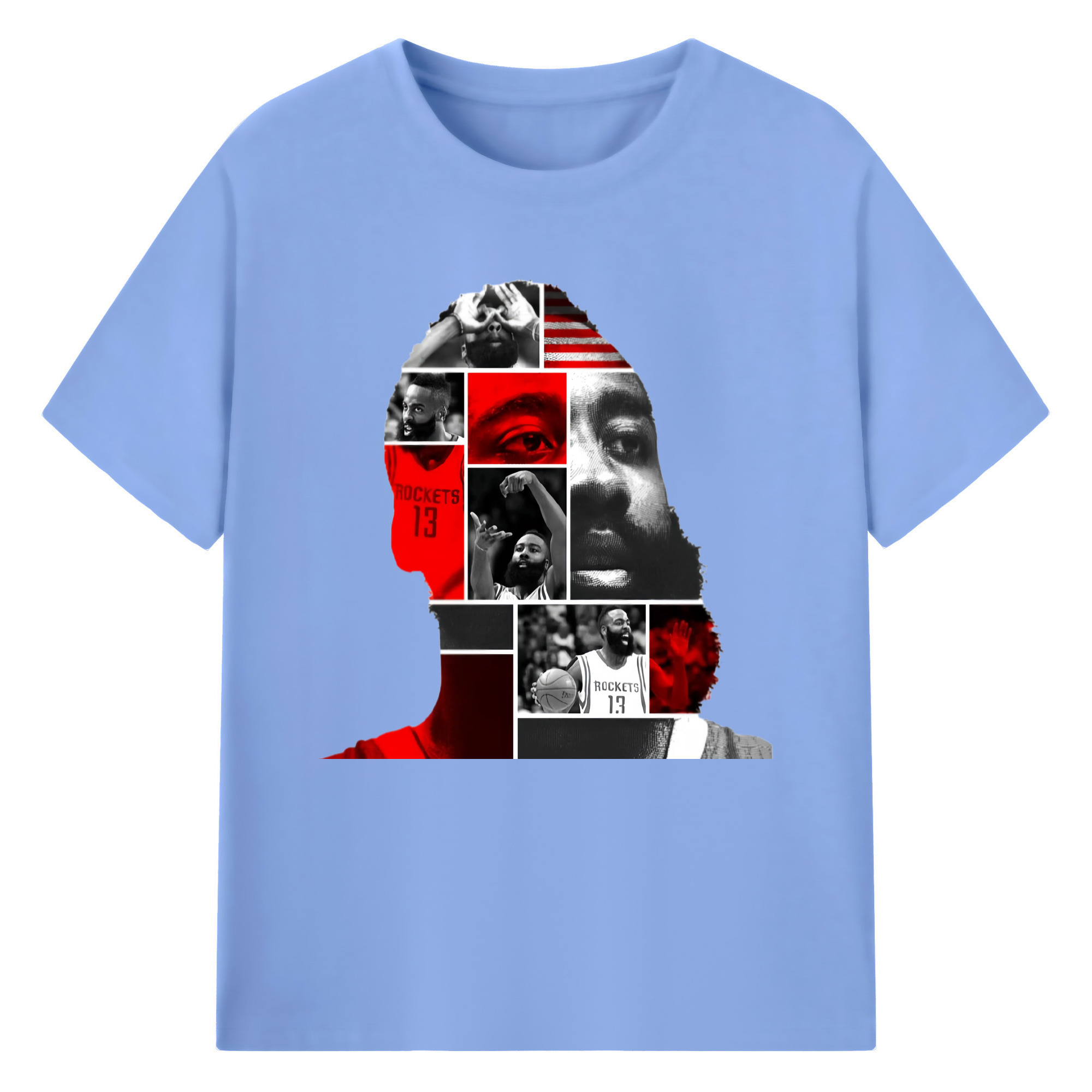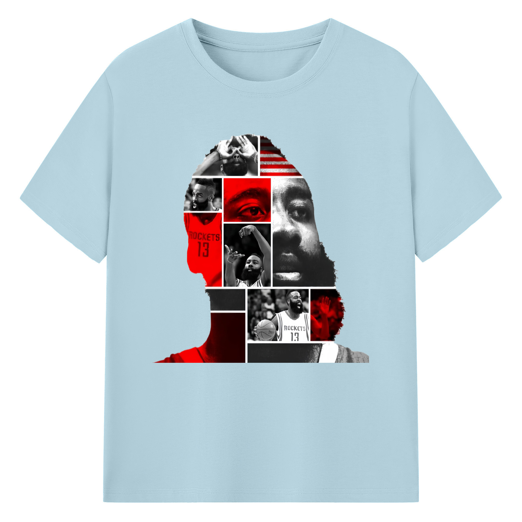 James Harden avatar collage style T‑shirt - 180g Cotton T-Shirt With Front Heat Transfer Print – Soft, Lightweight, Fitted Design – Comfortable Casual Wear For Sports & Everyday Use