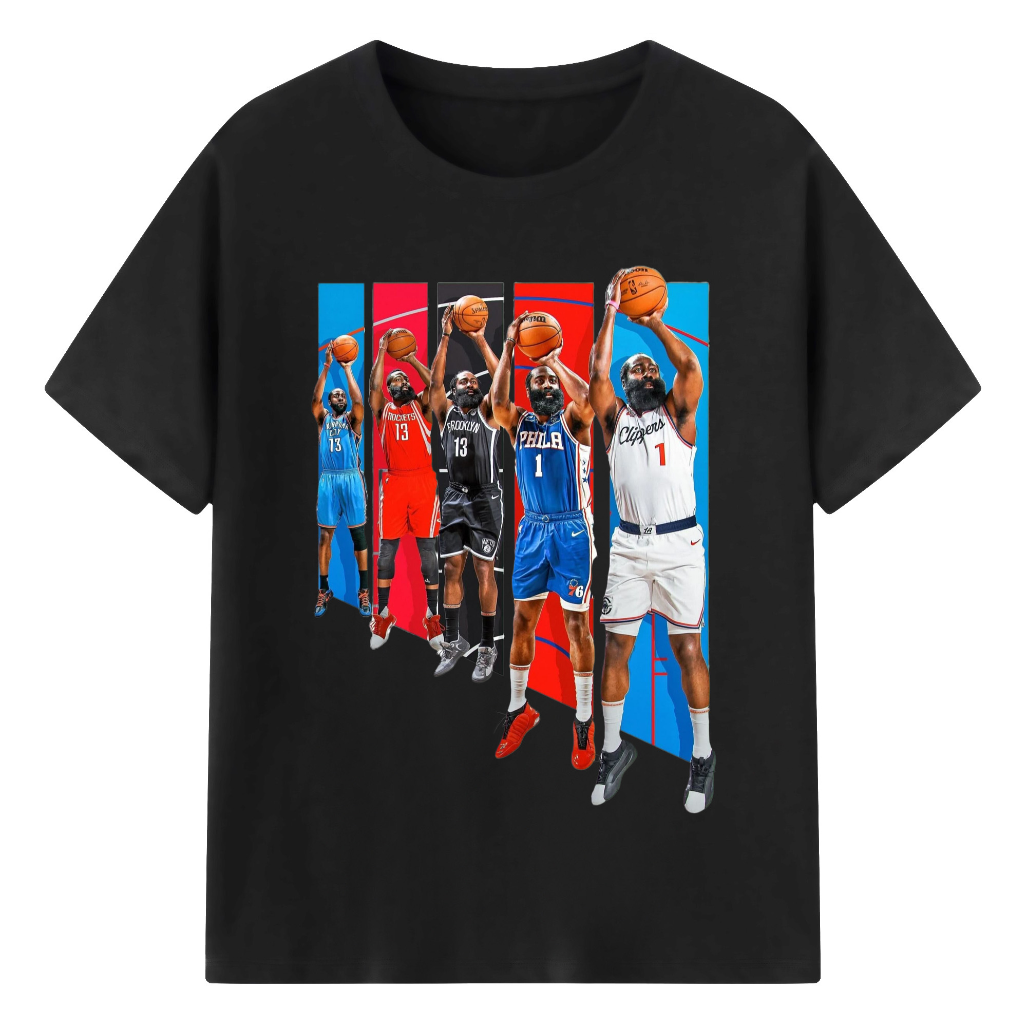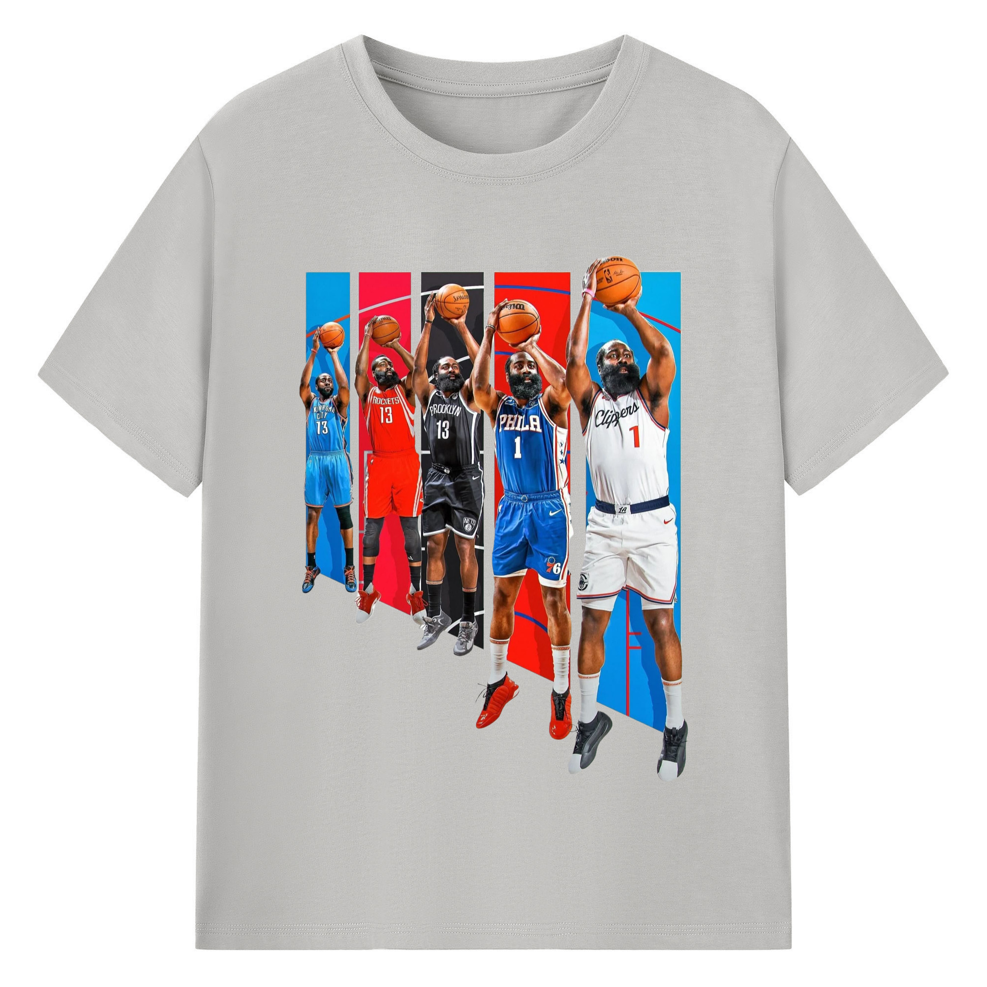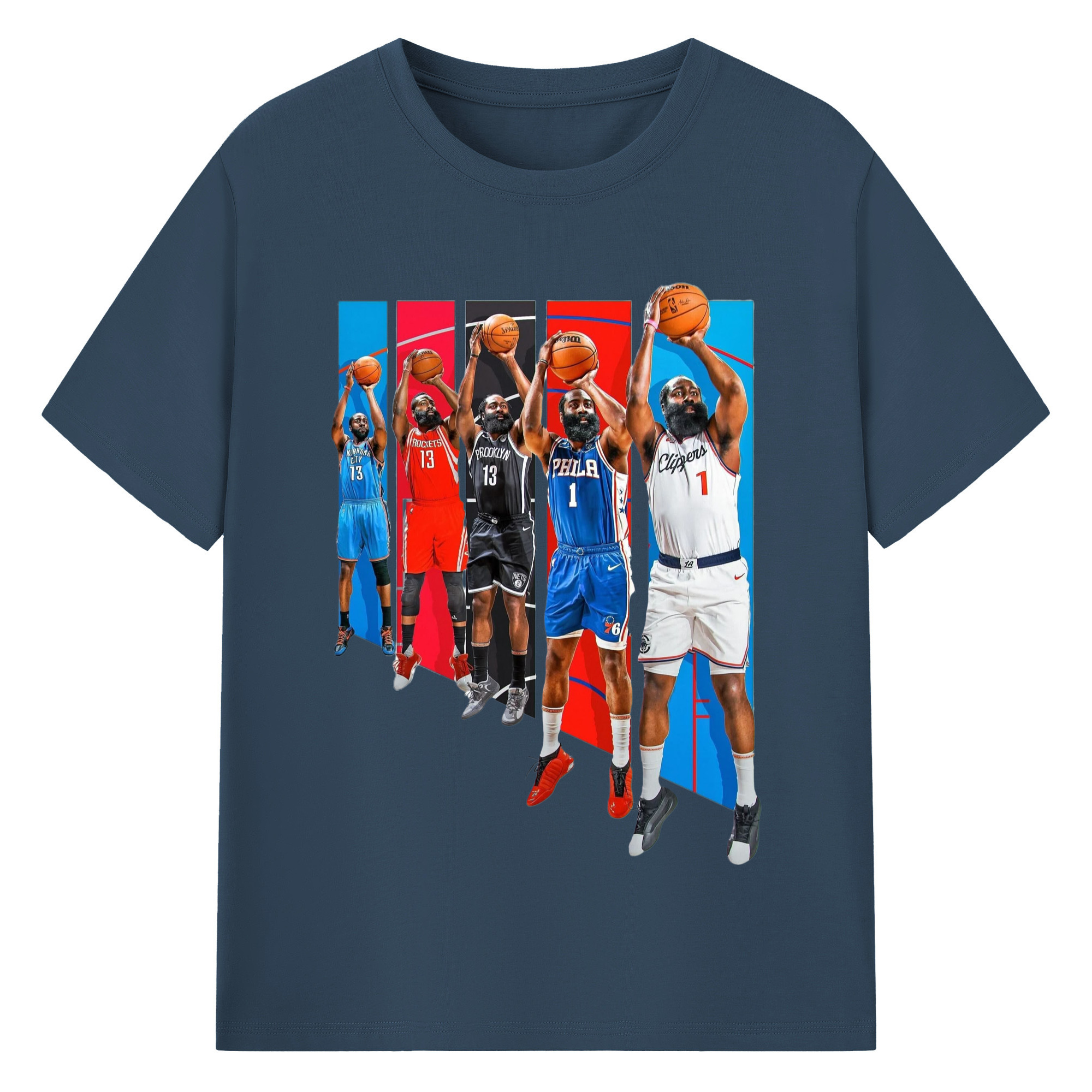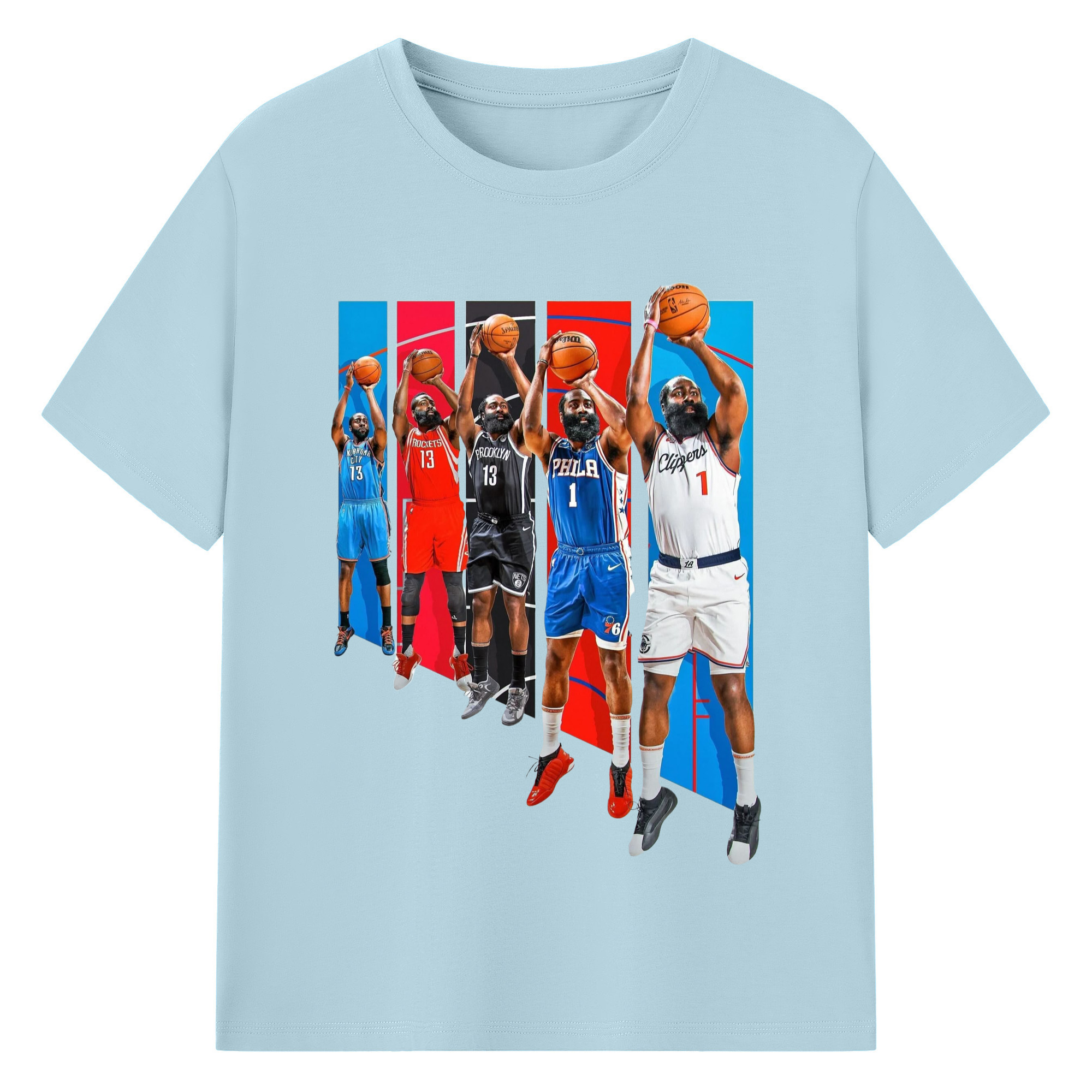 James Harden Different teams collage styleT‑shirt - 180g Cotton T-Shirt With Front Heat Transfer Print – Soft, Lightweight, Fitted Design – Comfortable Casual Wear For Sports & Everyday Use