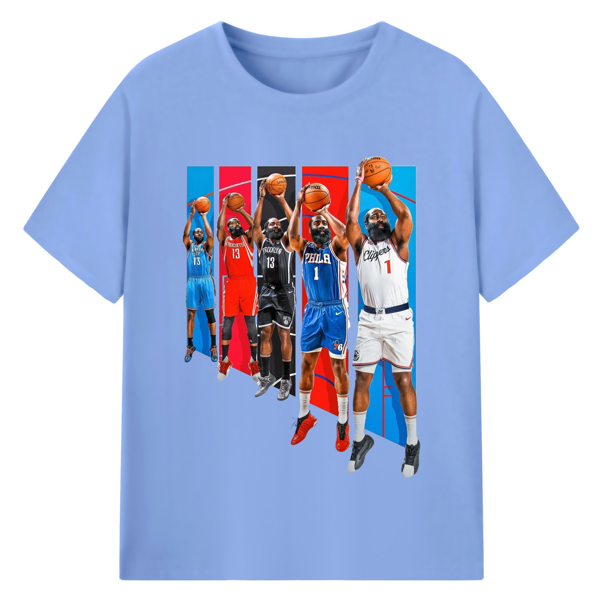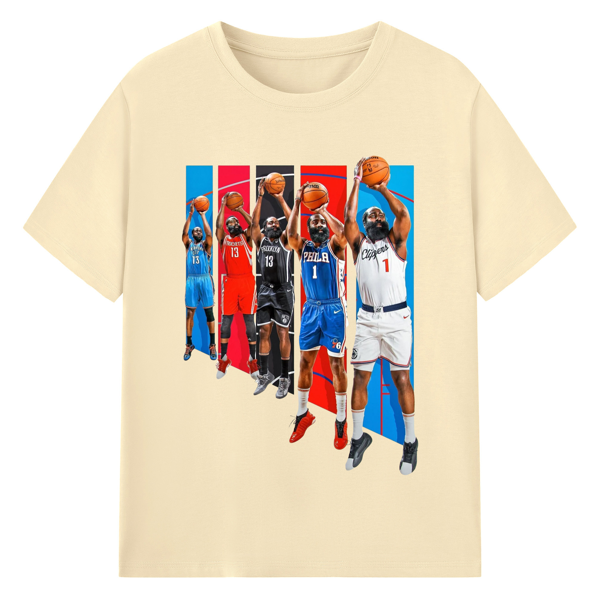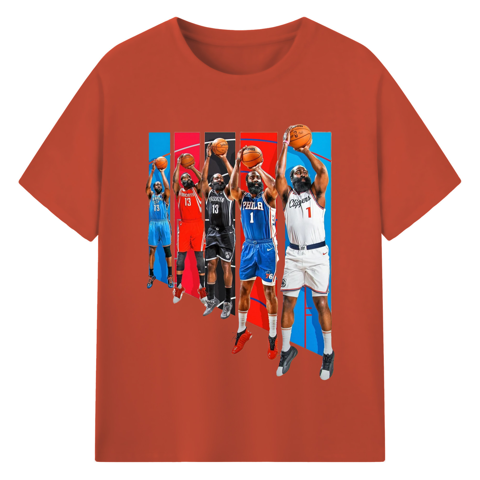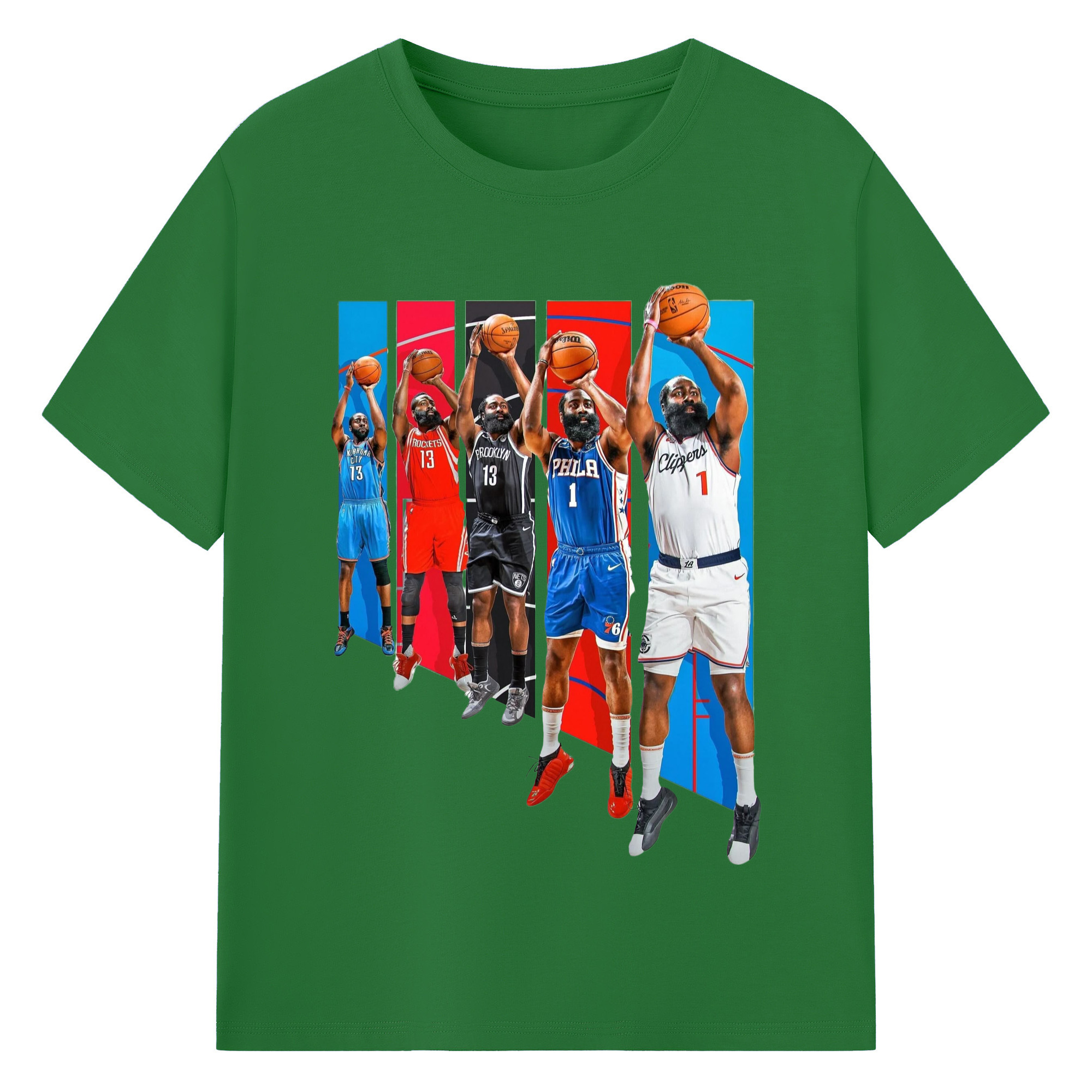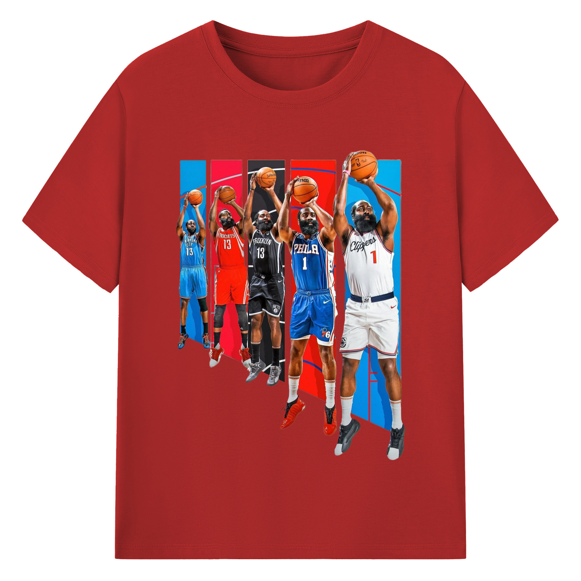 James Harden Different teams collage styleT‑shirt - 180g Cotton T-Shirt With Front Heat Transfer Print – Soft, Lightweight, Fitted Design – Comfortable Casual Wear For Sports & Everyday Use