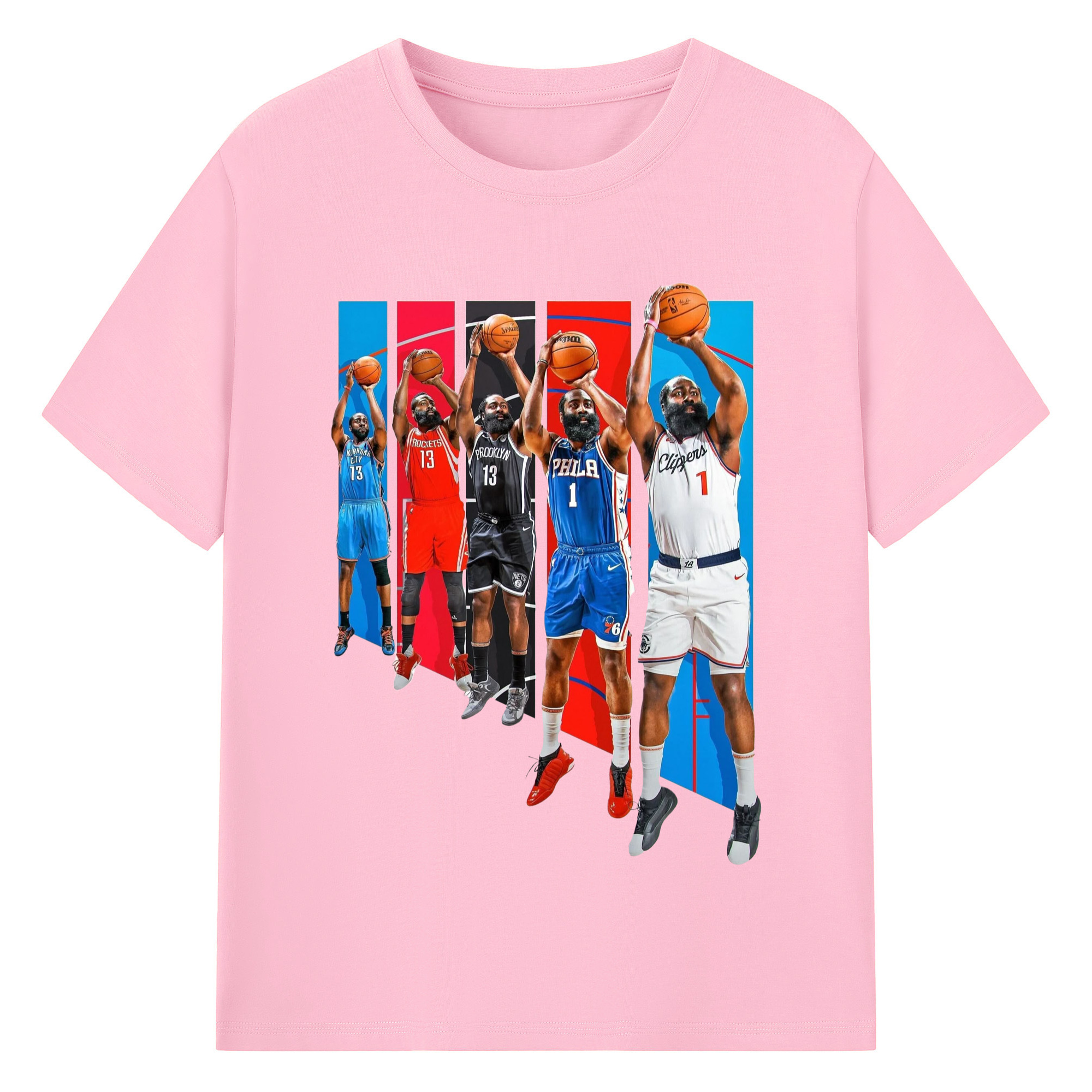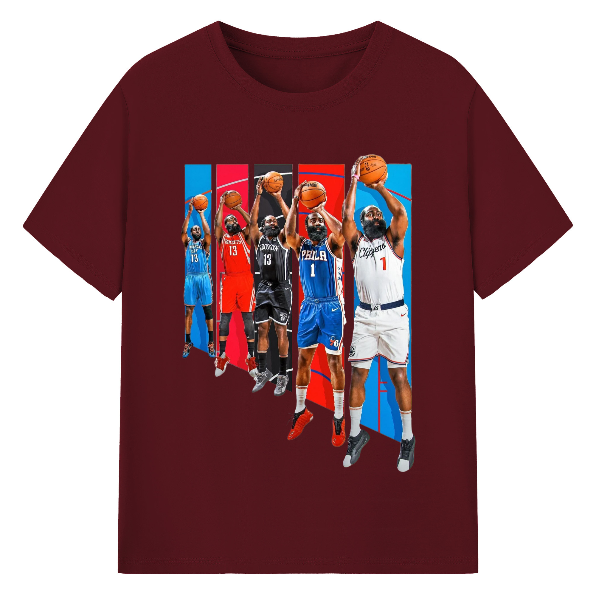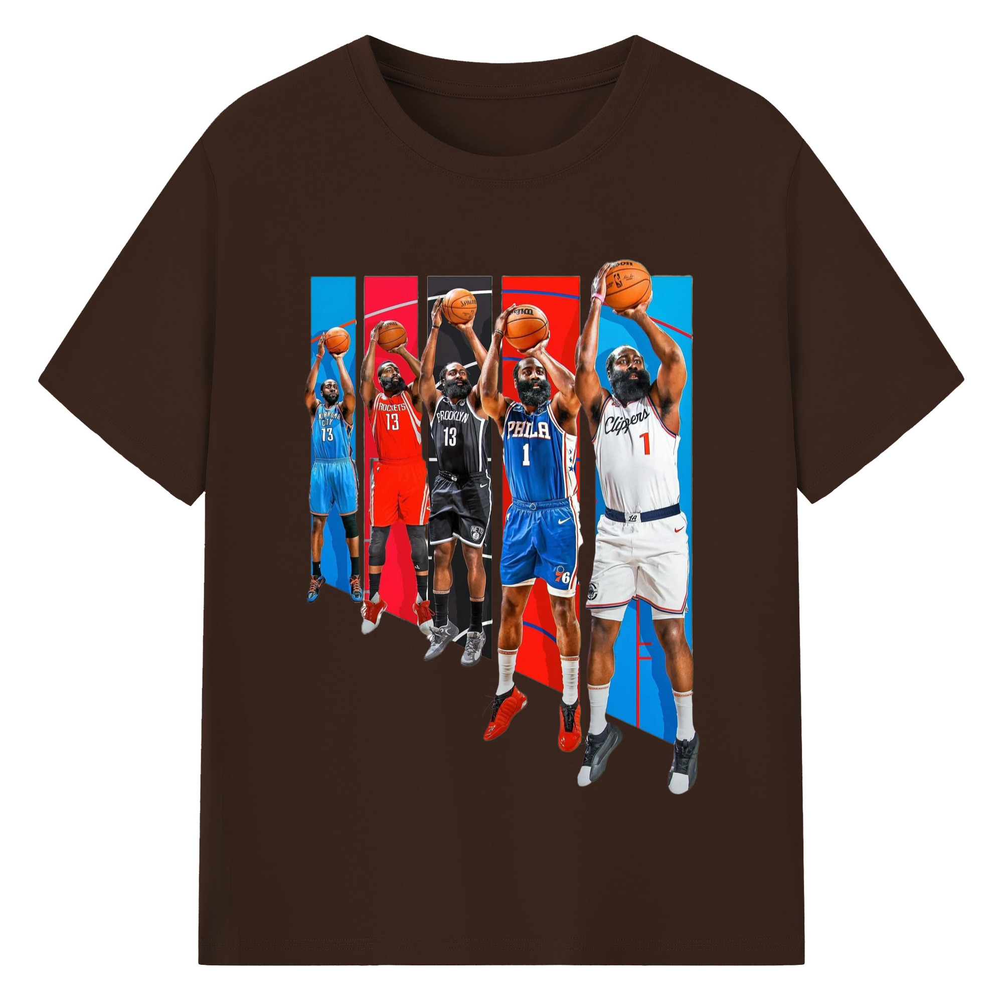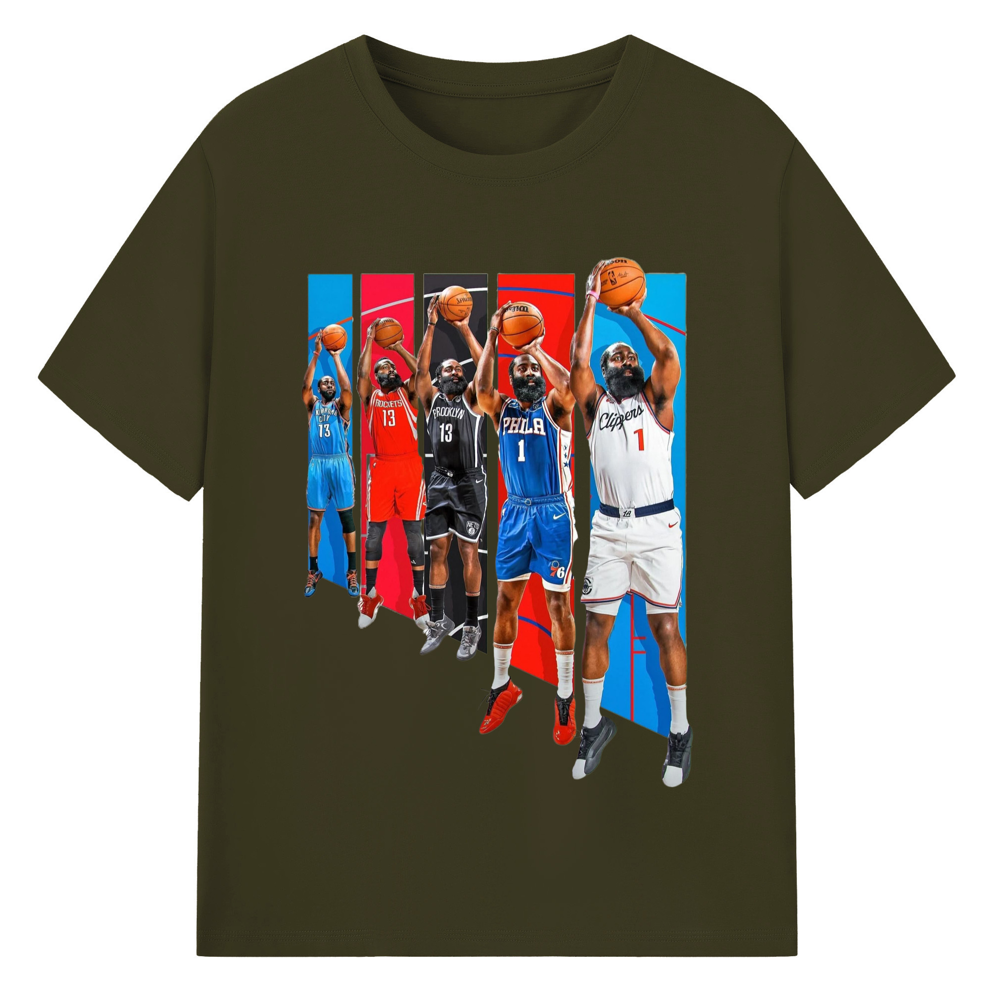 James Harden Different teams collage styleT‑shirt - 180g Cotton T-Shirt With Front Heat Transfer Print – Soft, Lightweight, Fitted Design – Comfortable Casual Wear For Sports & Everyday Use