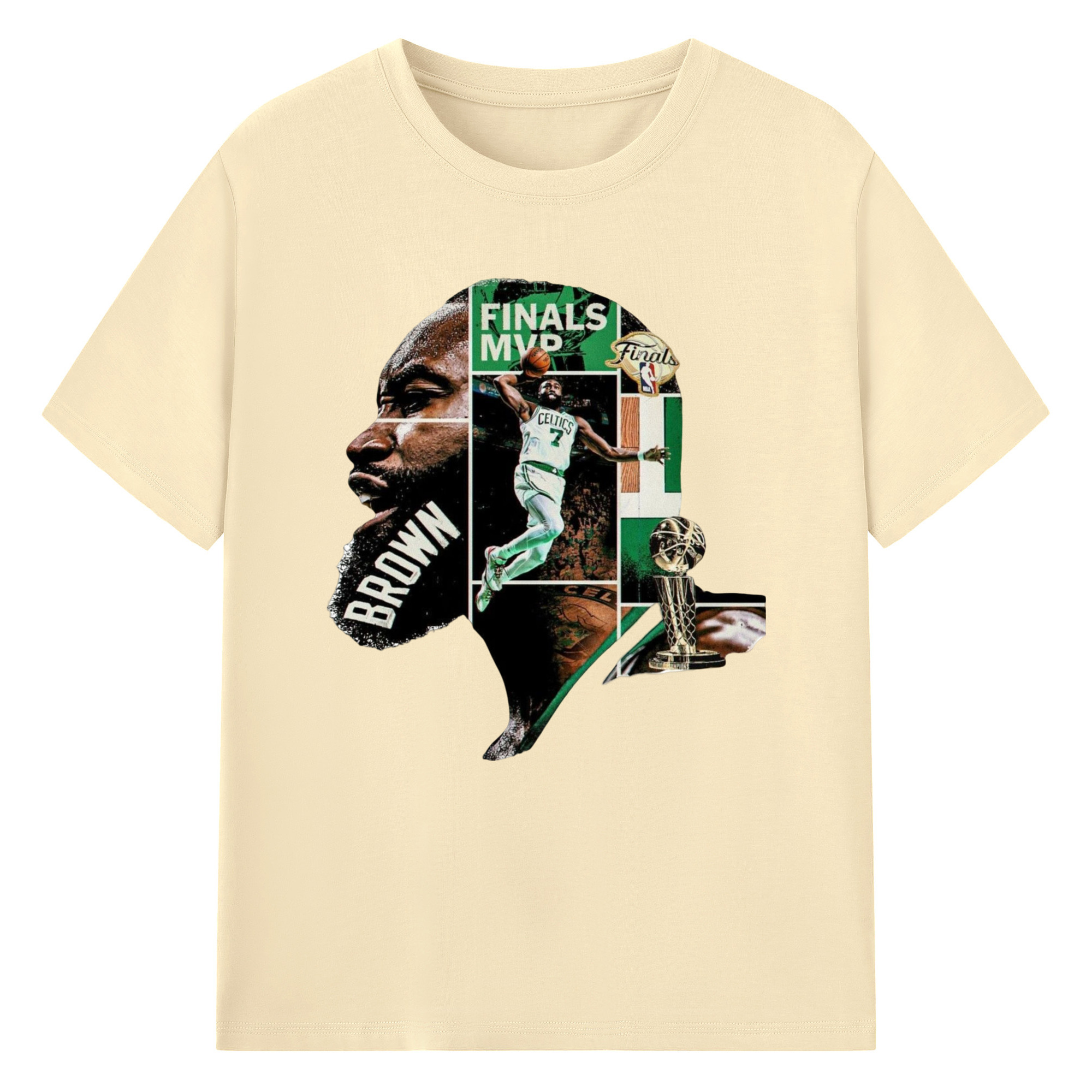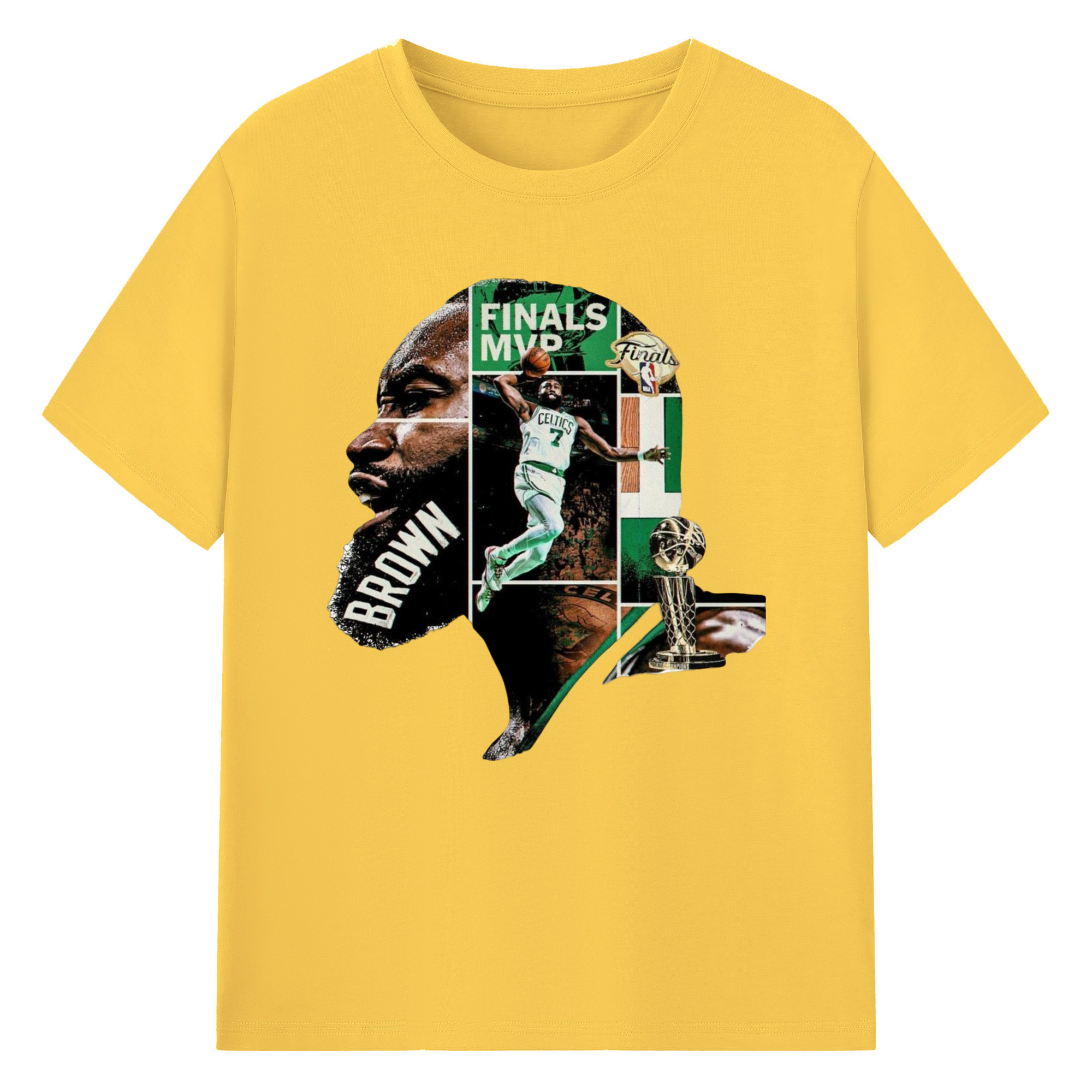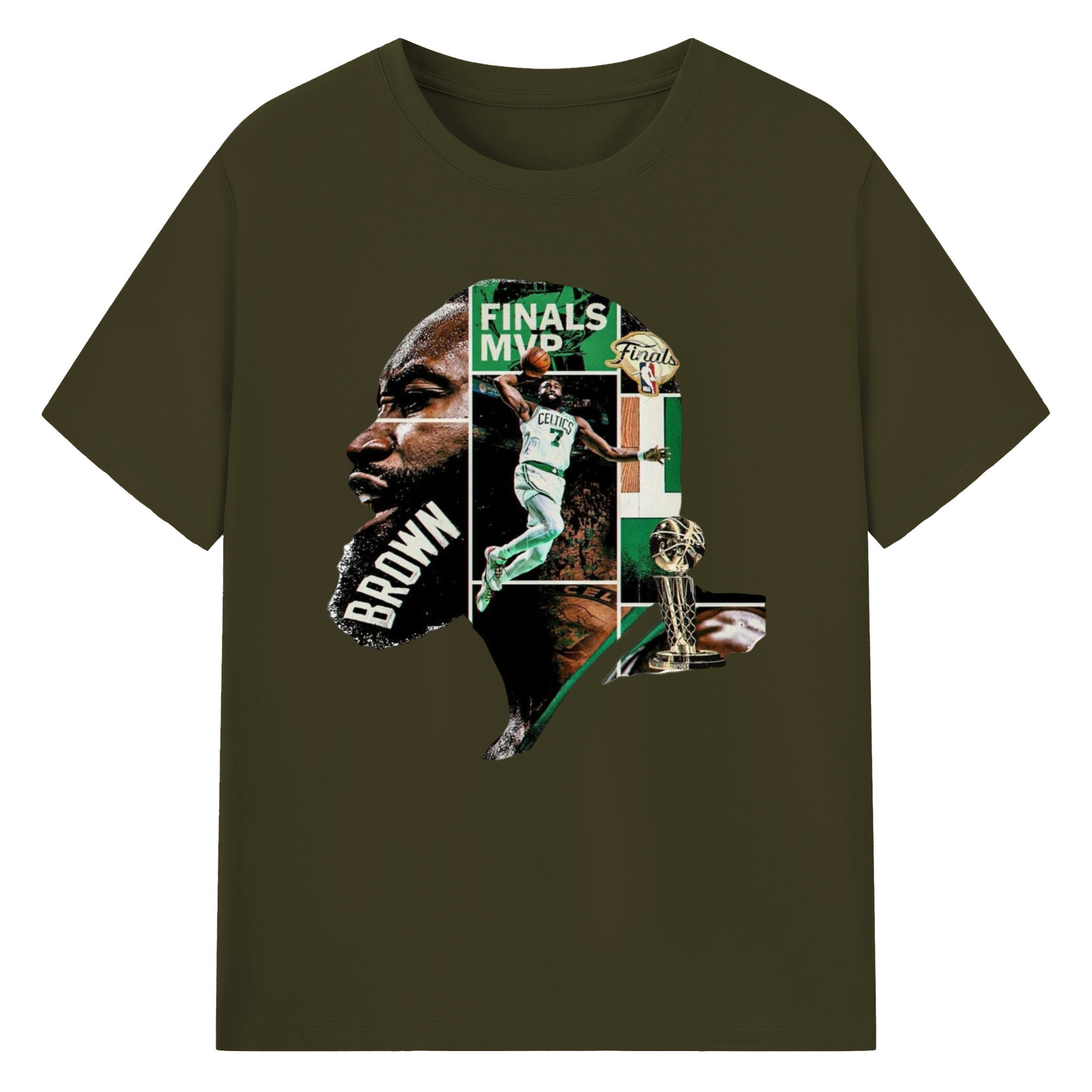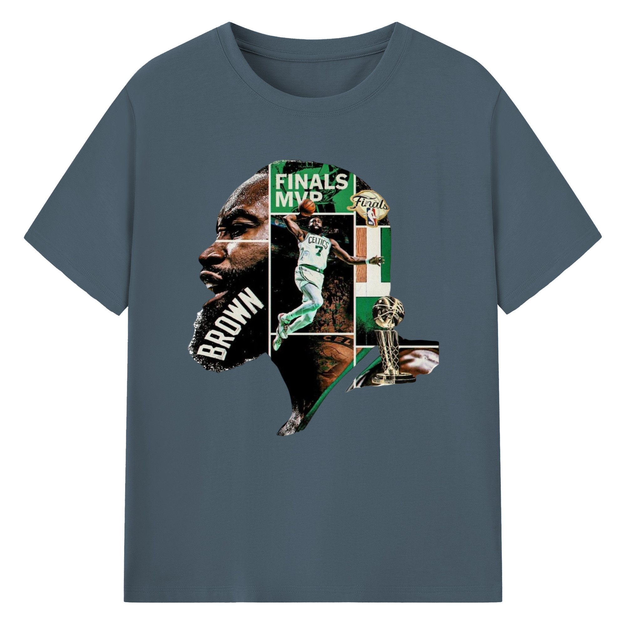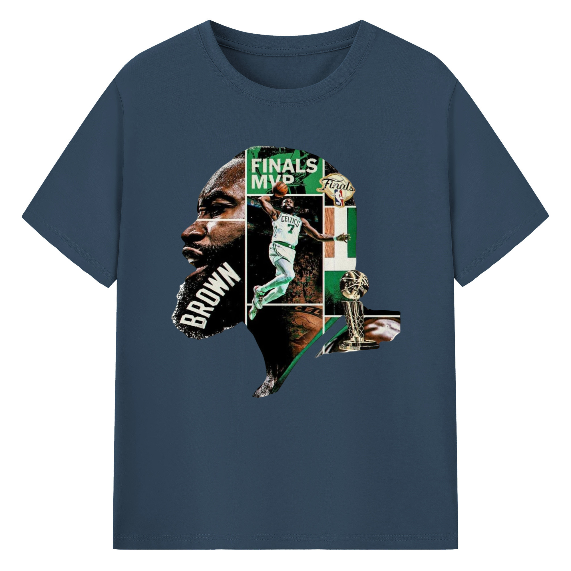 Jaylen Brown 2024 NBA FMVP T-Shirt - 180g Cotton T-Shirt With Front Heat Transfer Print – Soft, Lightweight, Fitted Design – Comfortable Casual Wear For Sports & Everyday Use