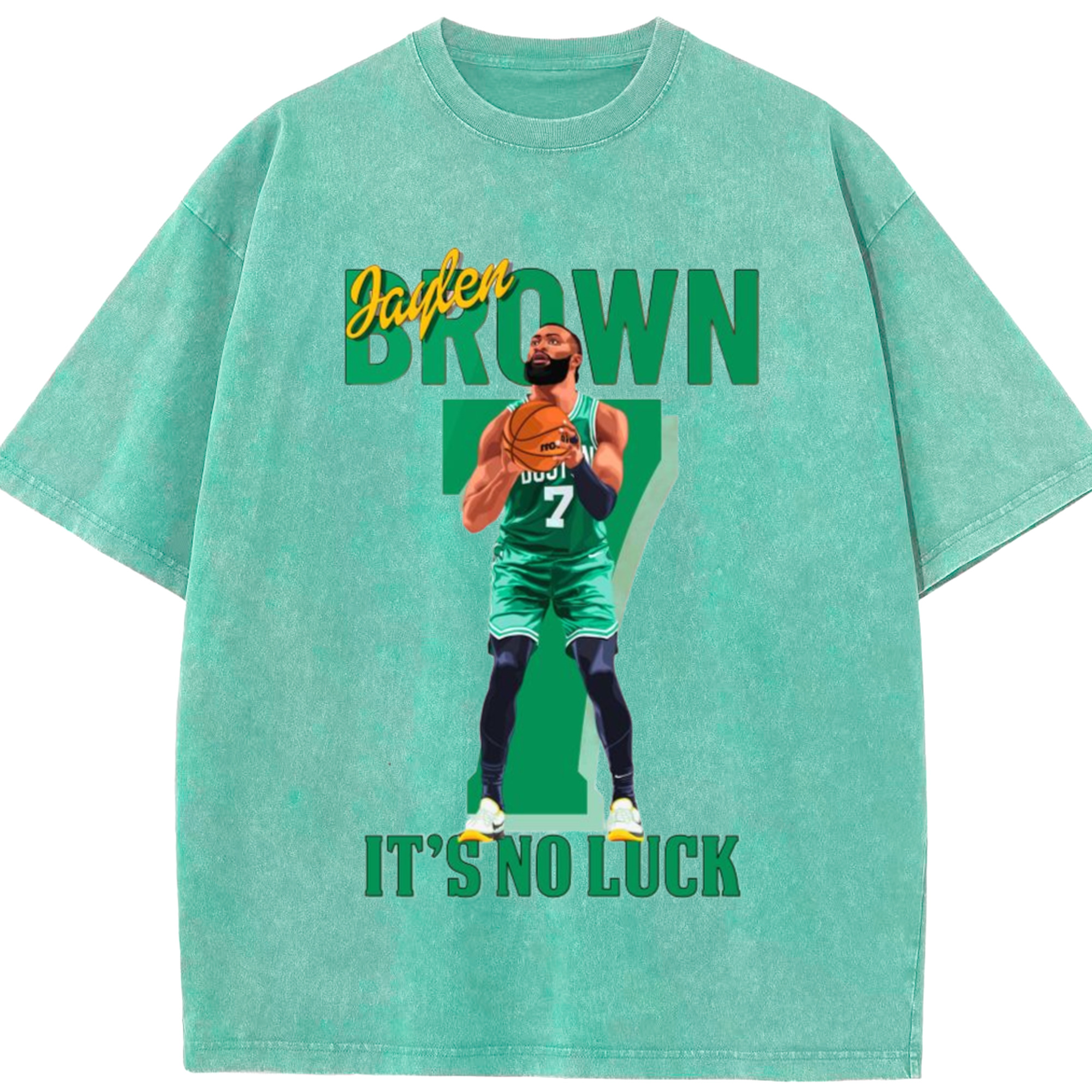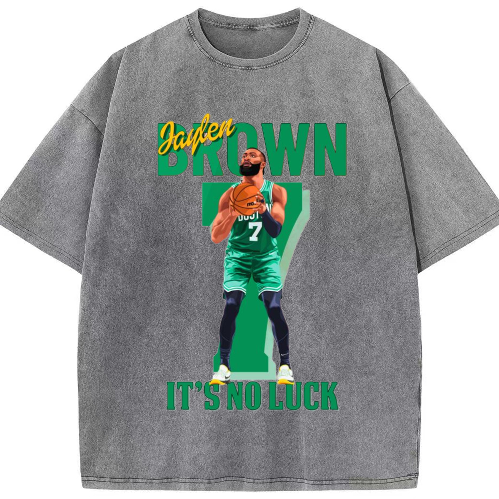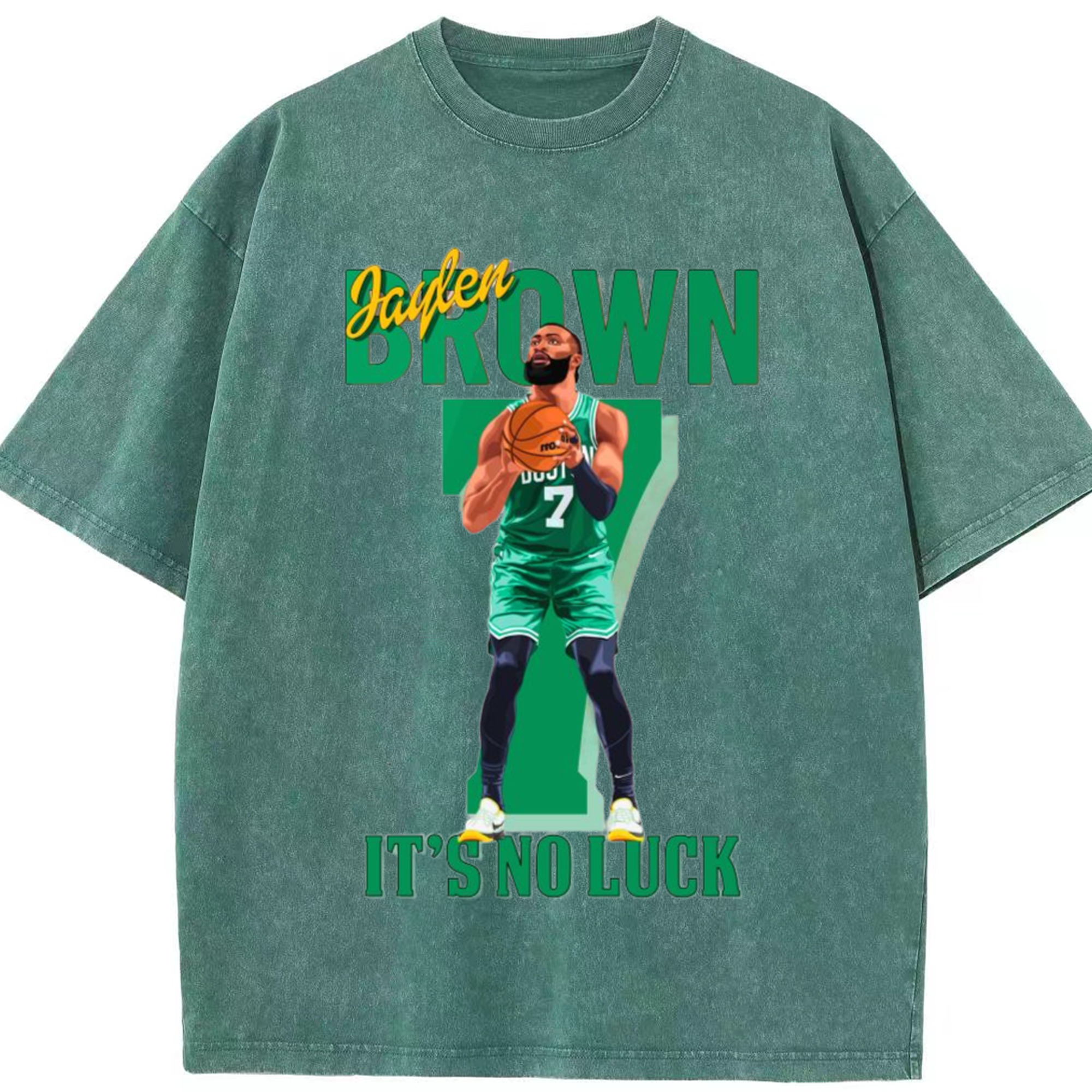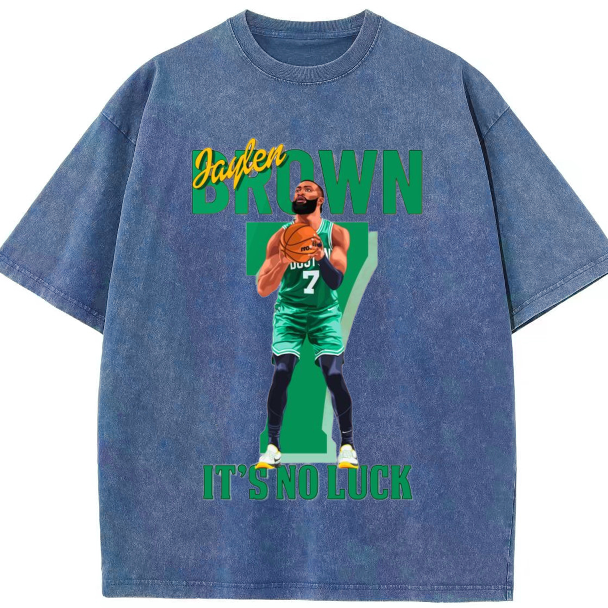 Jaylen Brown #7 Graphic Shirt - Washed Vintage Look 230g Cotton Oversized T-Shirt With Front Heat Transfer Print – Soft, Lightweight, Stylish Fit – Comfortable Casual Wear For Sports & Everyday Use