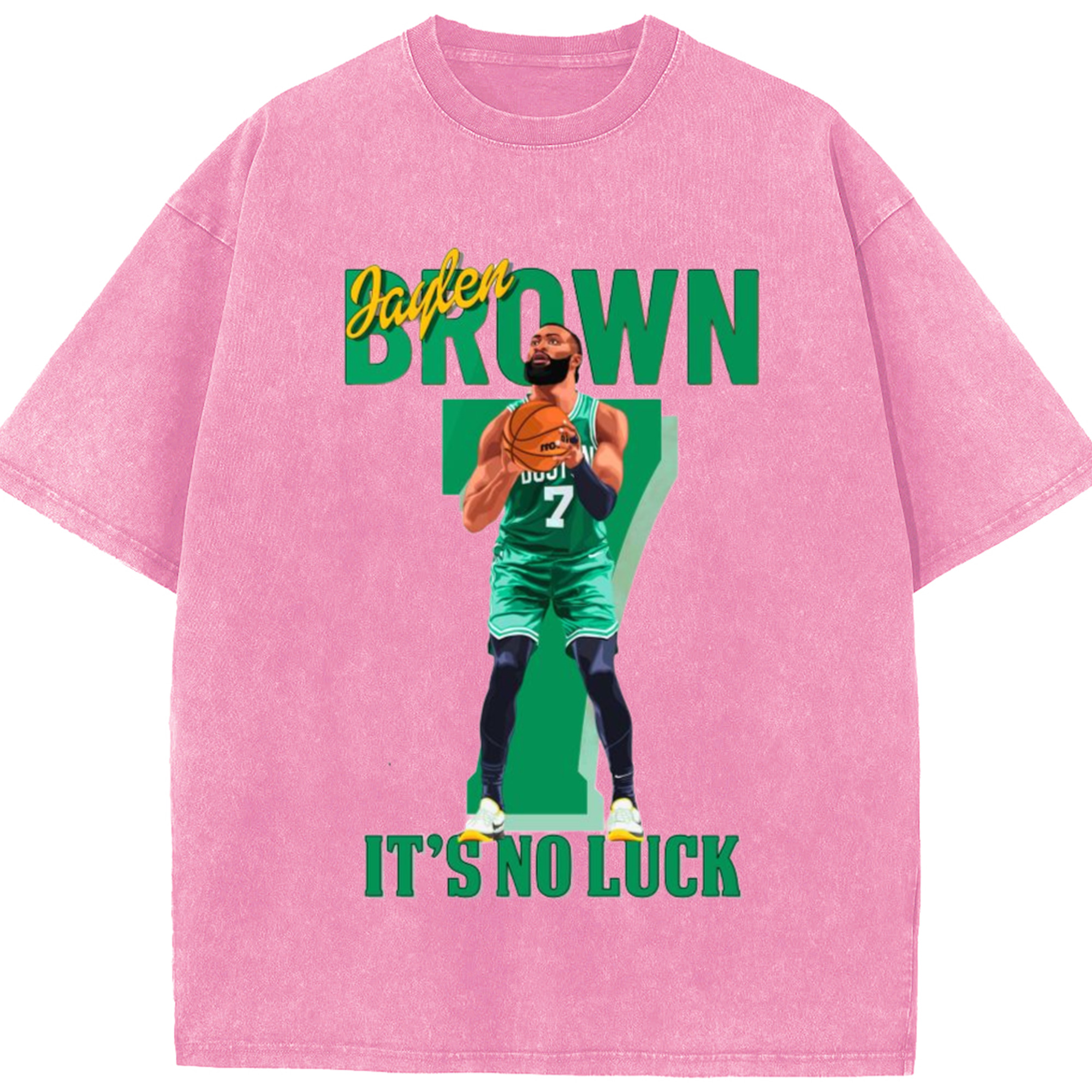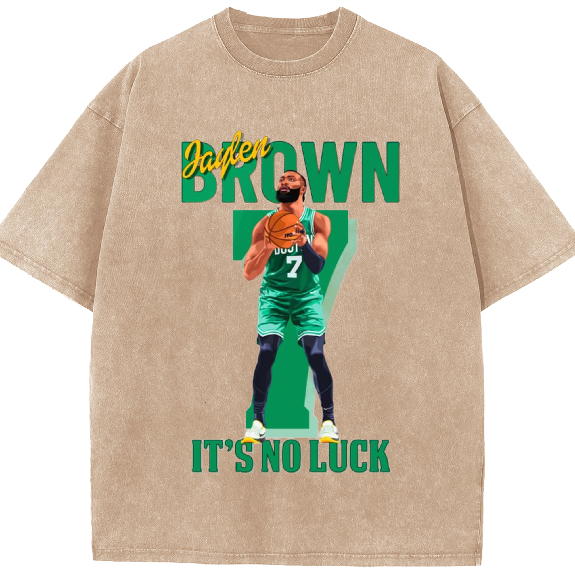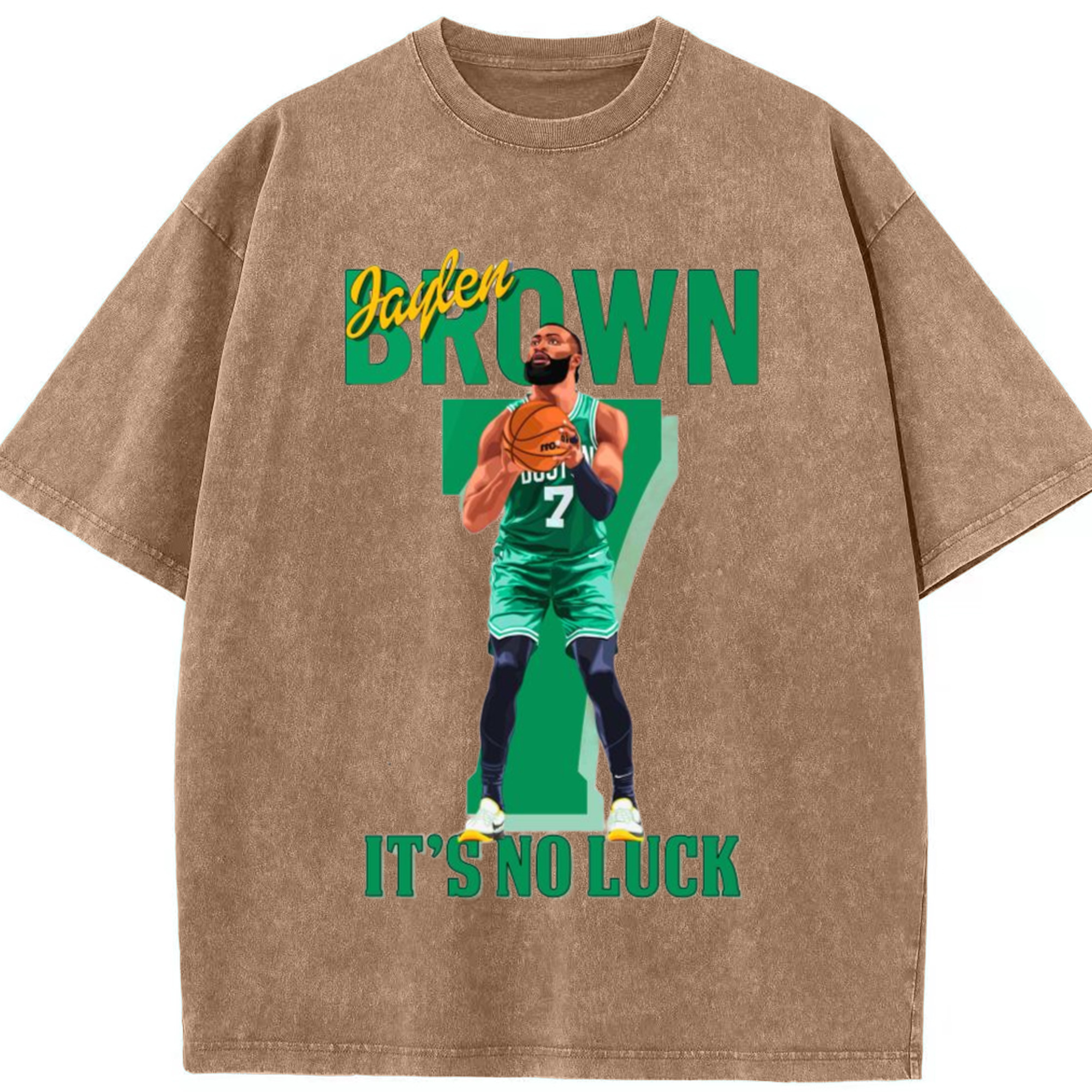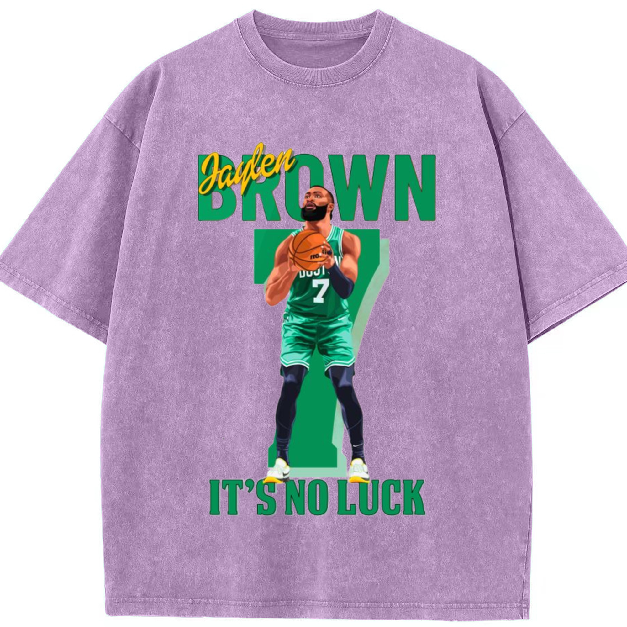 Jaylen Brown #7 Graphic Shirt - Washed Vintage Look 230g Cotton Oversized T-Shirt With Front Heat Transfer Print – Soft, Lightweight, Stylish Fit – Comfortable Casual Wear For Sports & Everyday Use