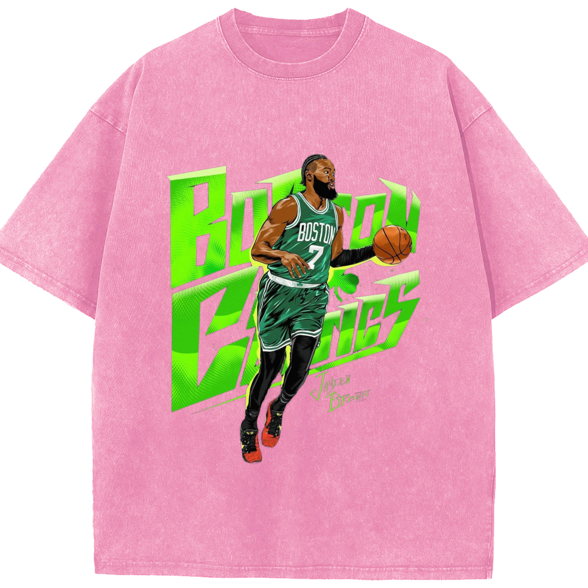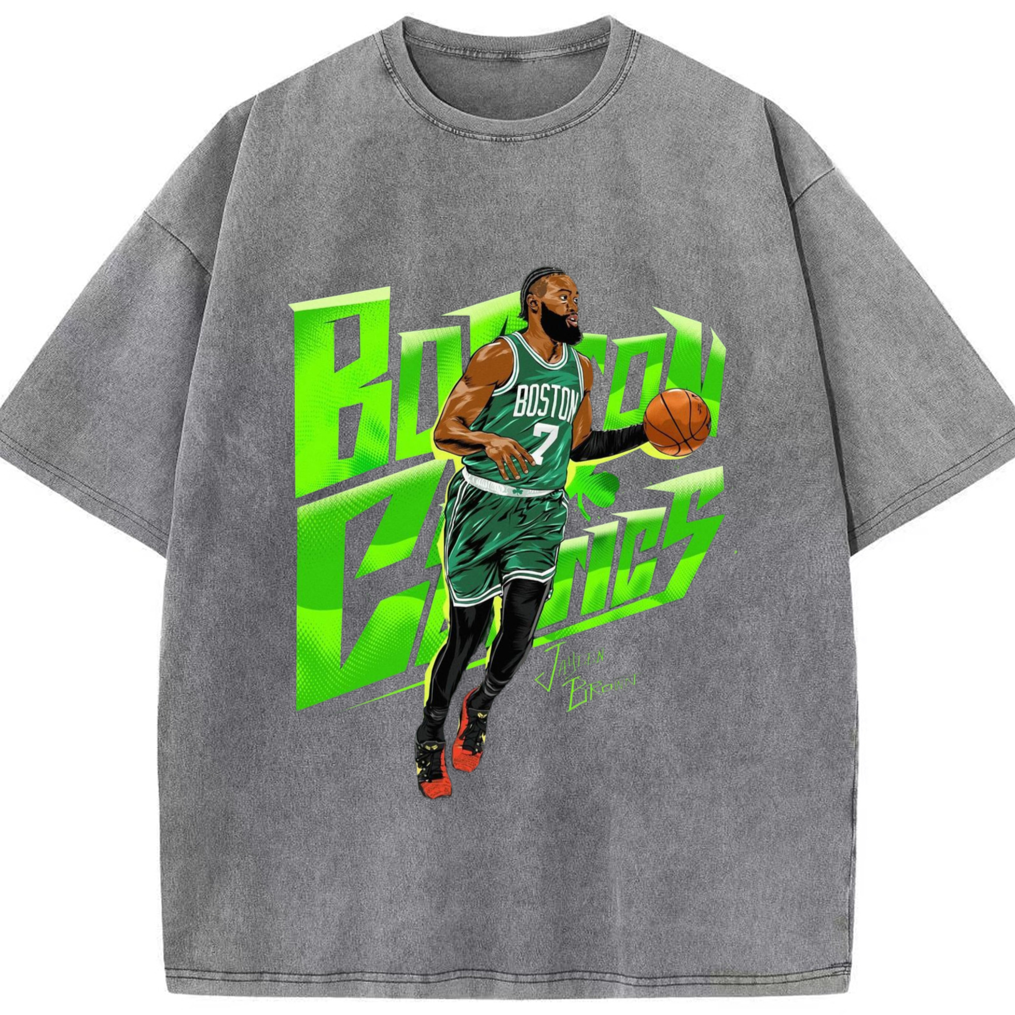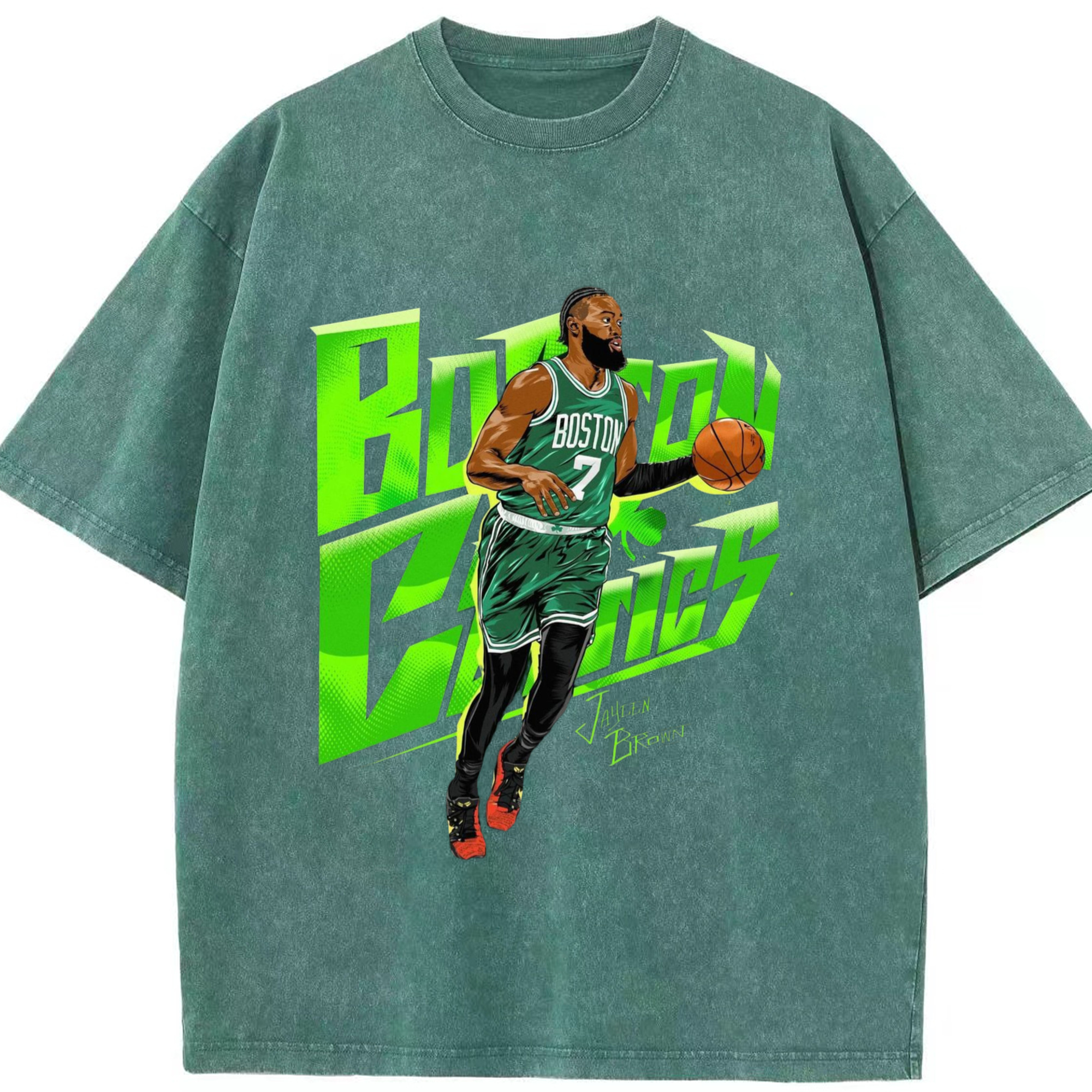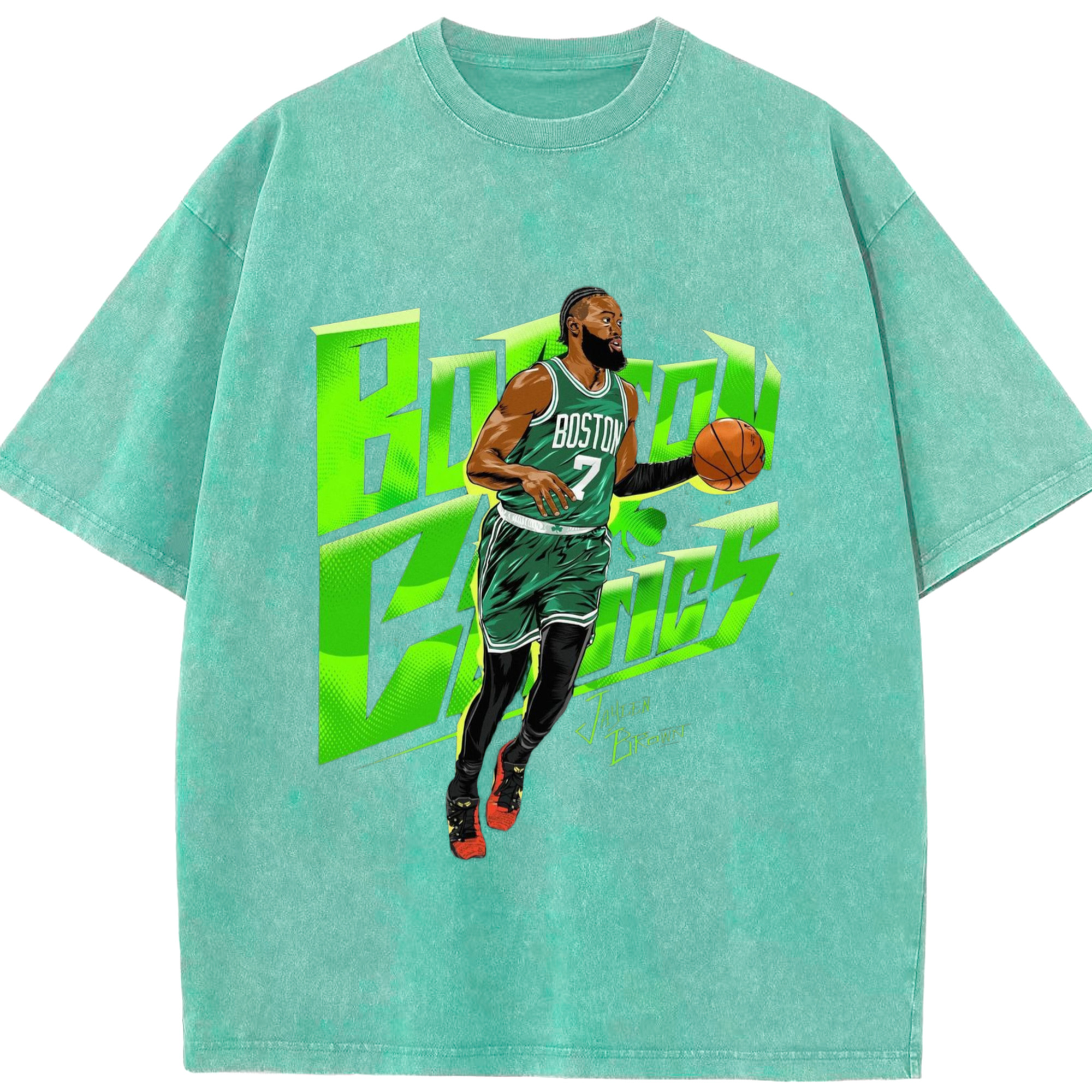 Jaylen Brown Celtics Playmaker Shirt - Washed Vintage Look 230g Cotton Oversized T-Shirt With Front Heat Transfer Print – Soft, Lightweight, Stylish Fit – Comfortable Casual Wear For Sports & Everyday Use