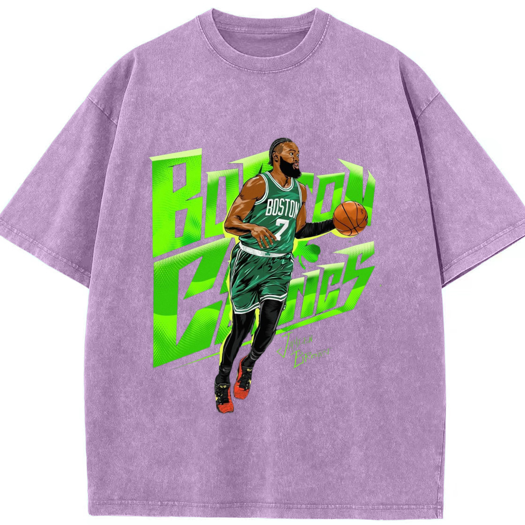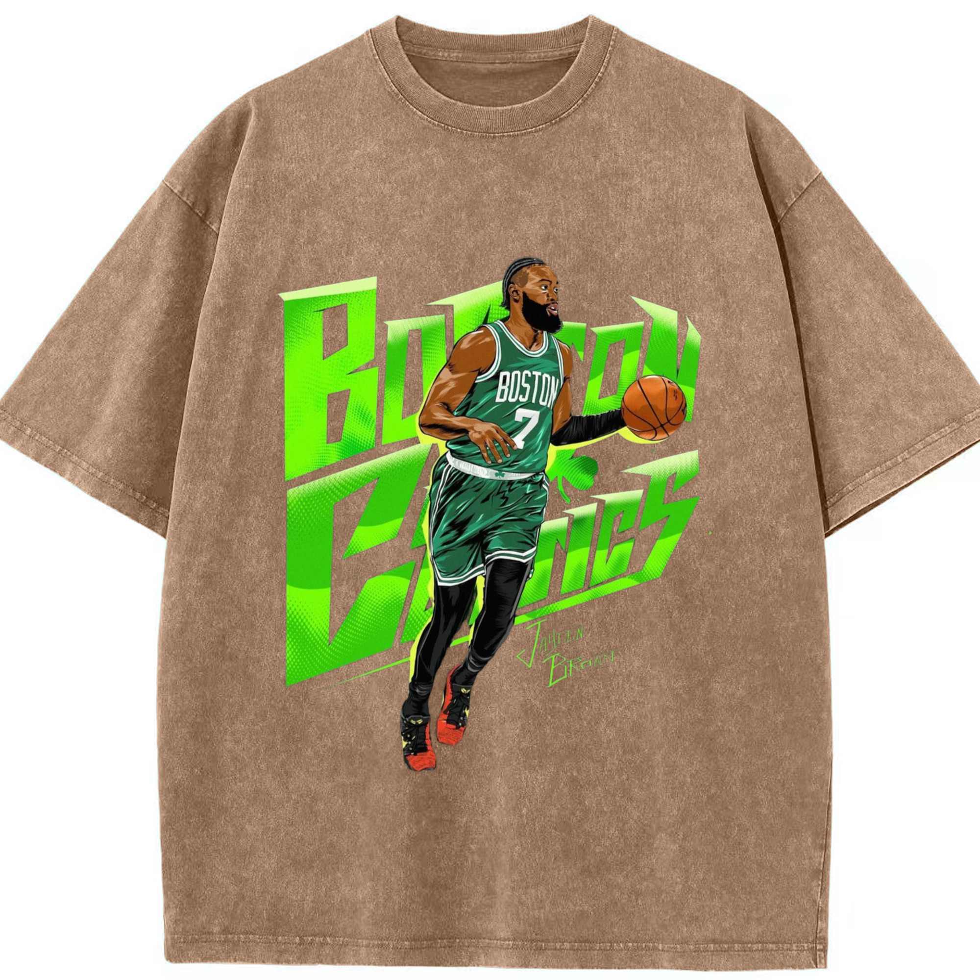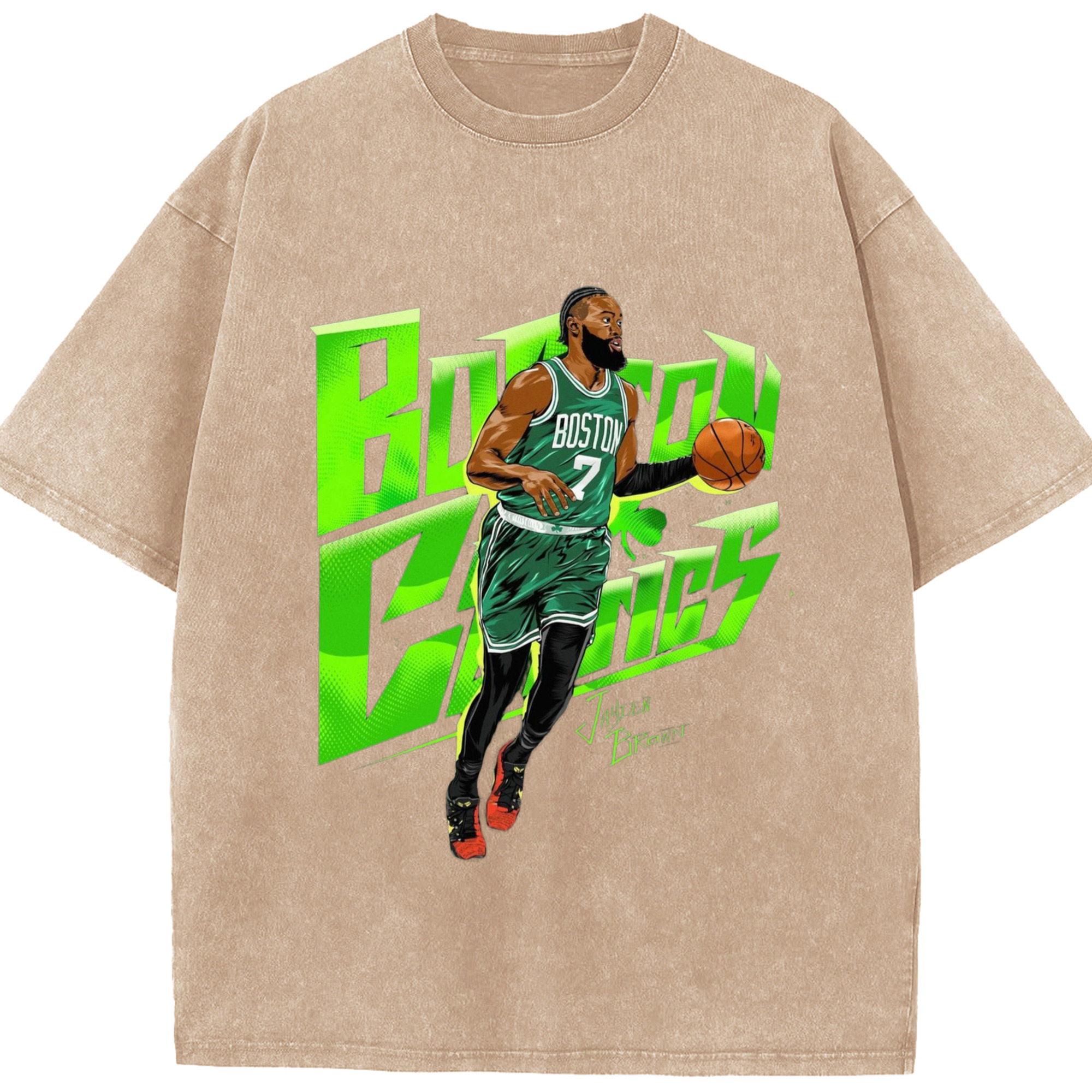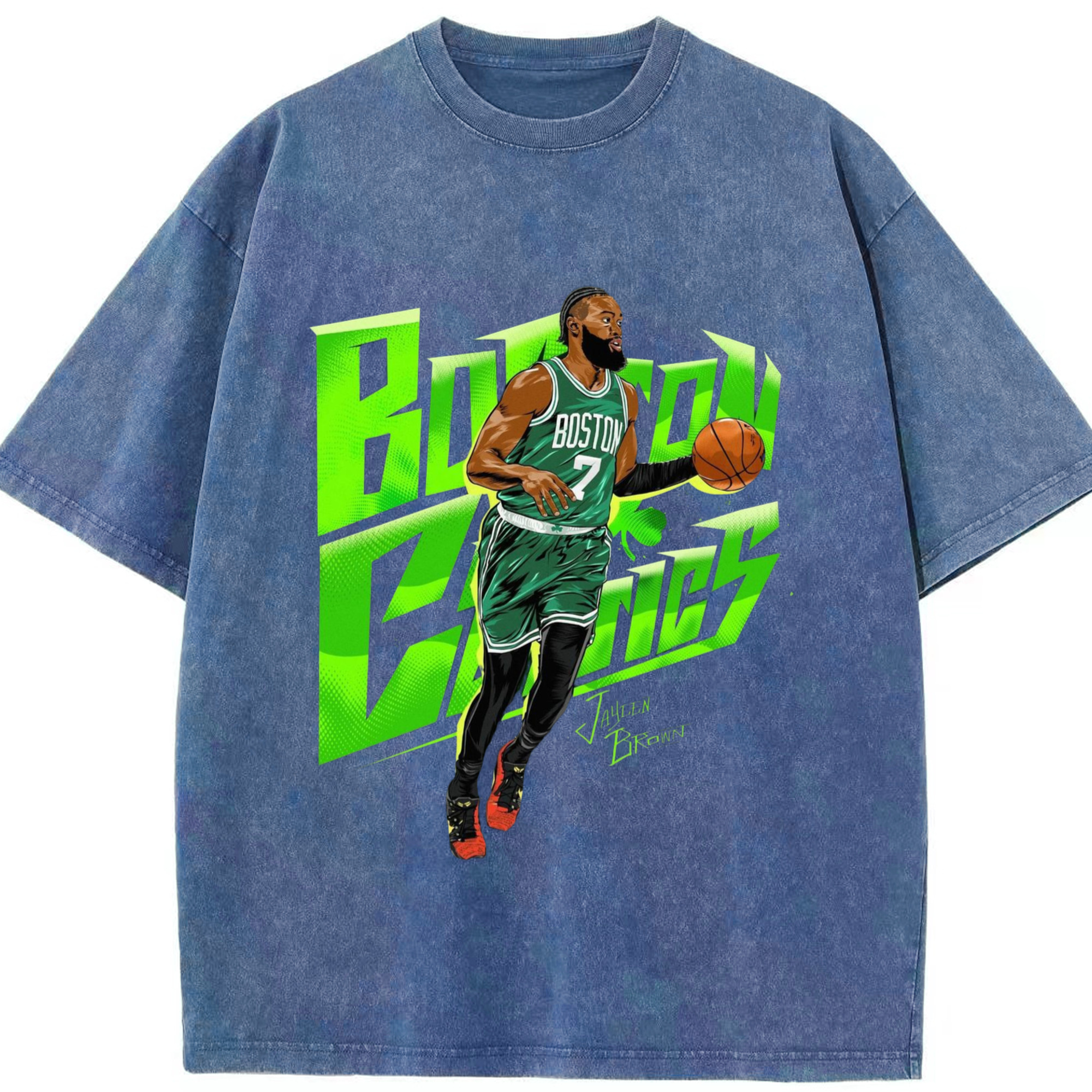 Jaylen Brown Celtics Playmaker Shirt - Washed Vintage Look 230g Cotton Oversized T-Shirt With Front Heat Transfer Print – Soft, Lightweight, Stylish Fit – Comfortable Casual Wear For Sports & Everyday Use