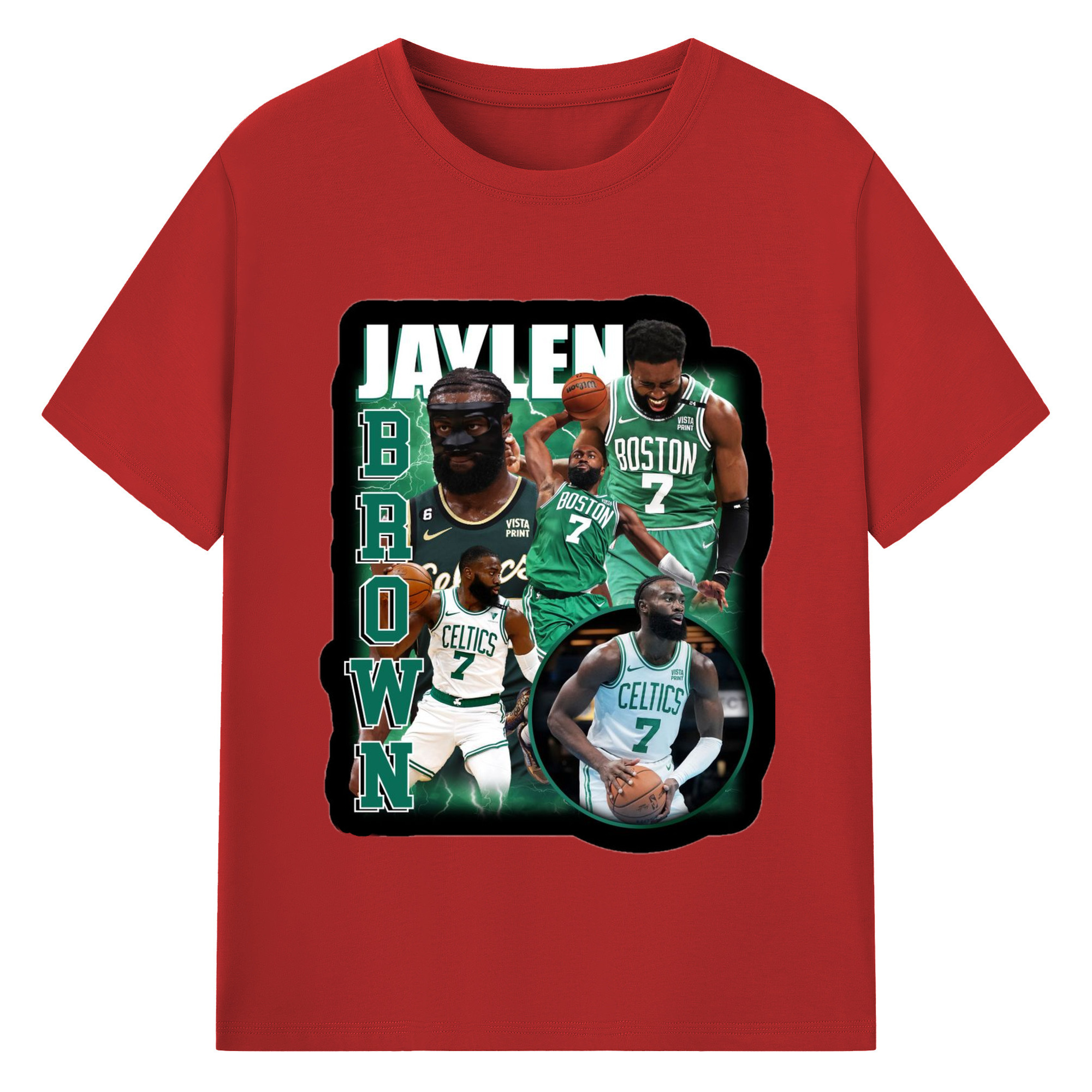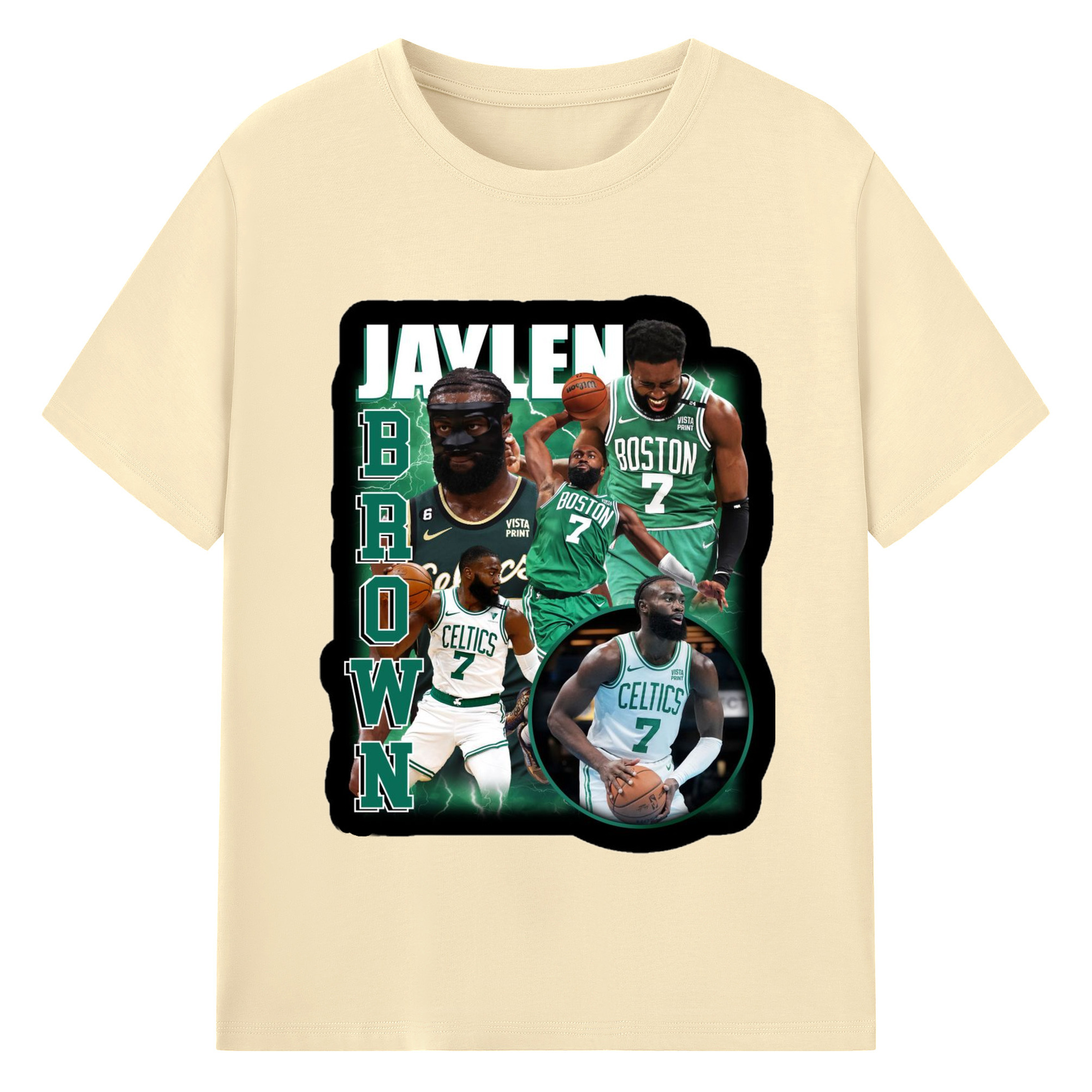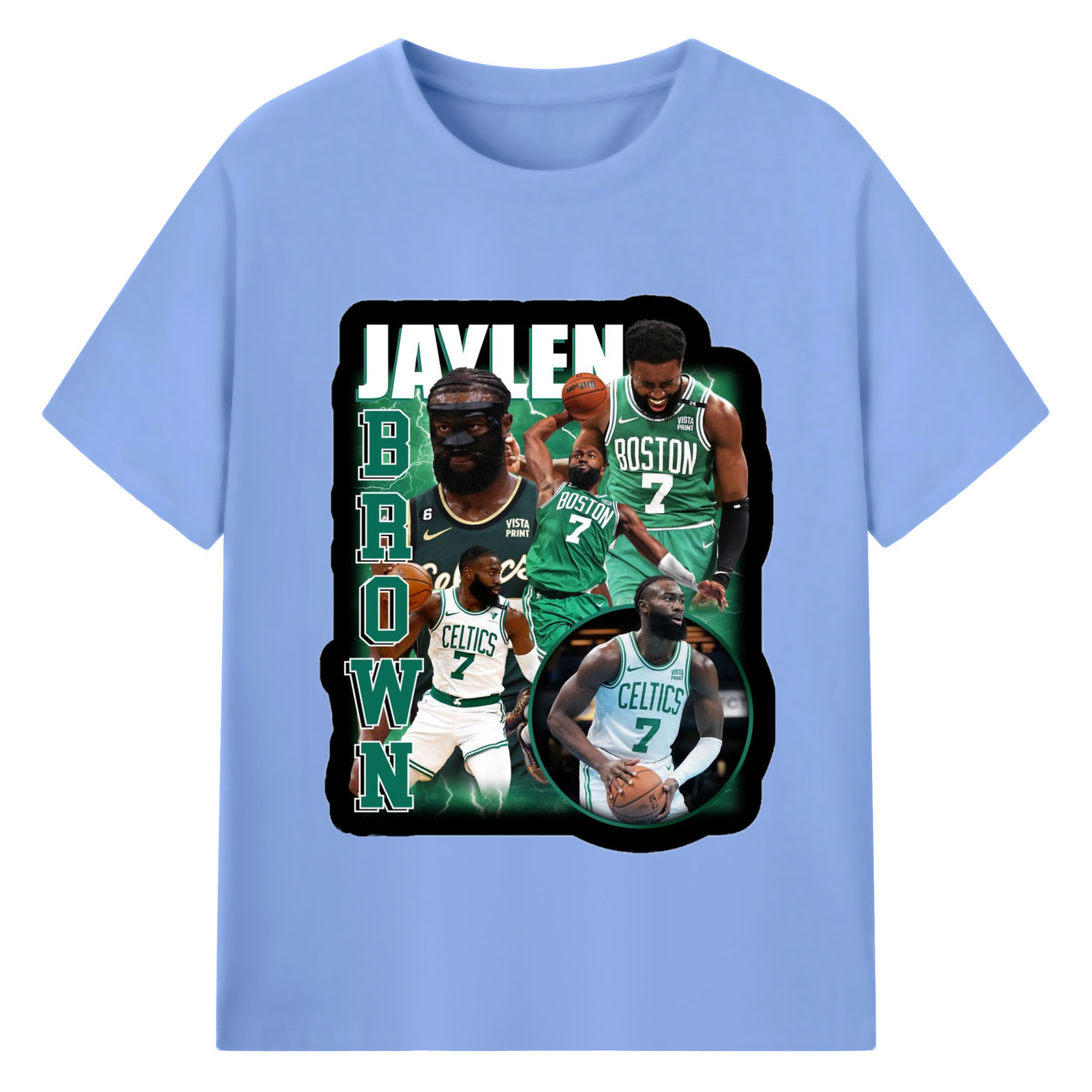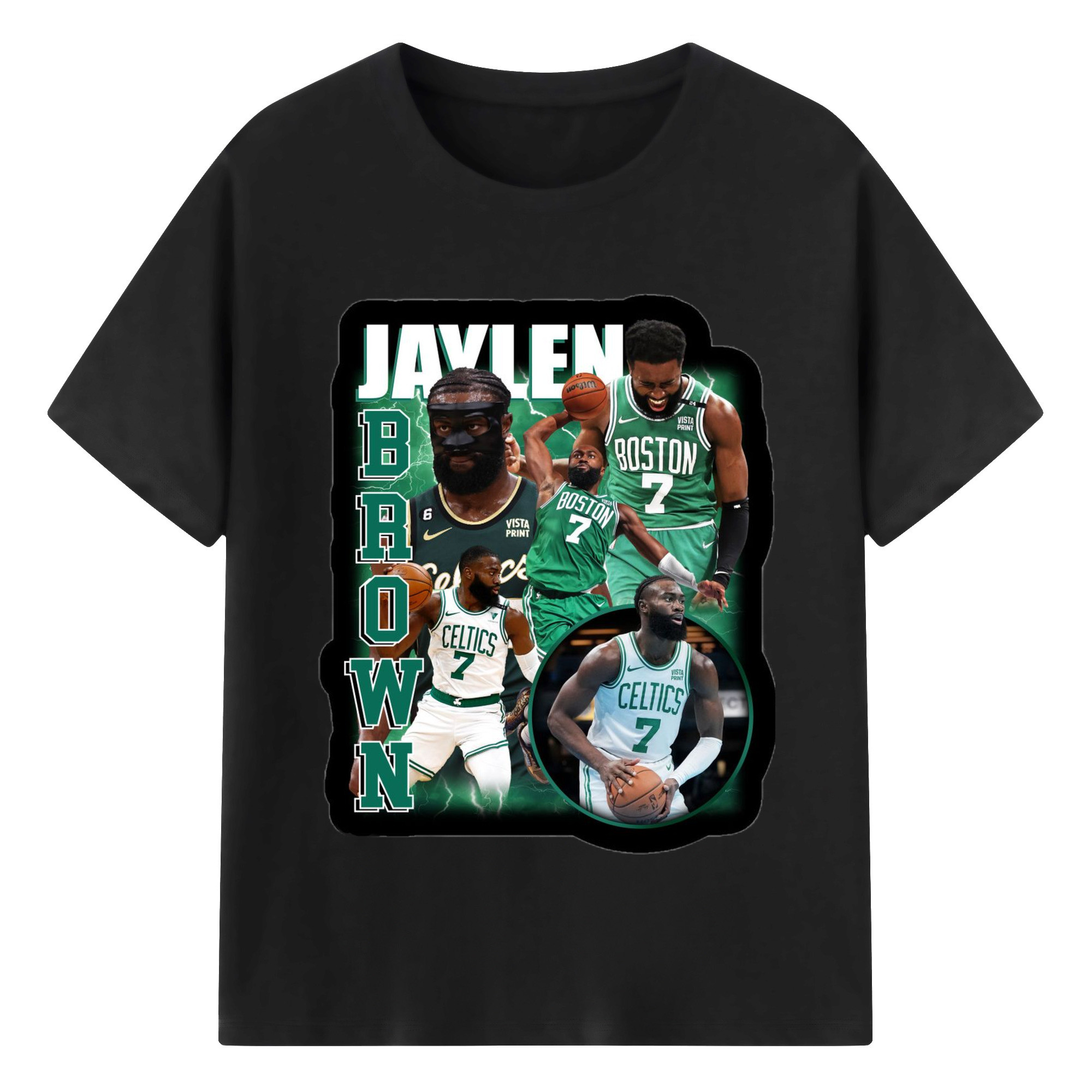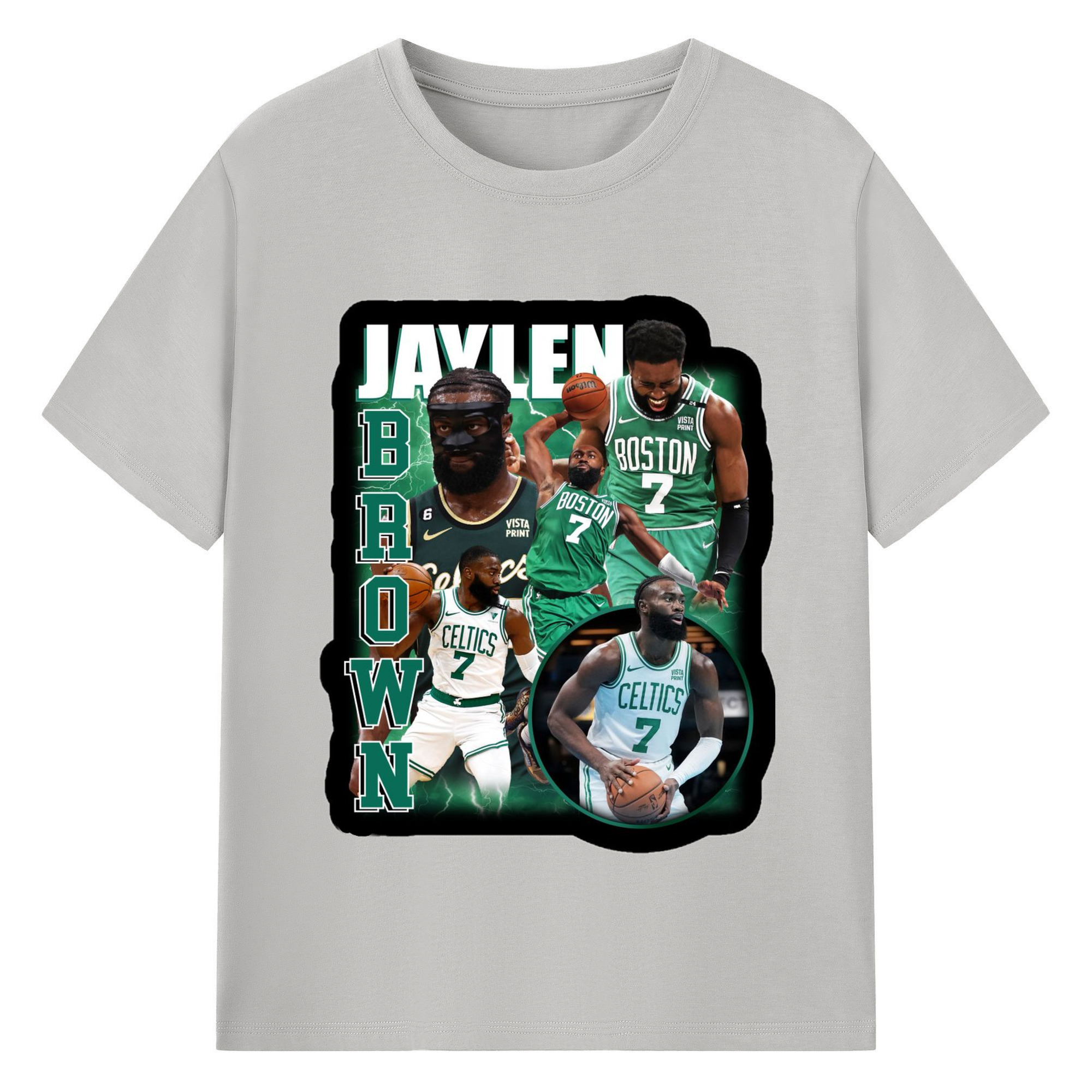 Jaylen Brown Collage graphic T‑Shirt - 180g Cotton T-Shirt With Front Heat Transfer Print – Soft, Lightweight, Fitted Design – Comfortable Casual Wear For Sports & Everyday Use