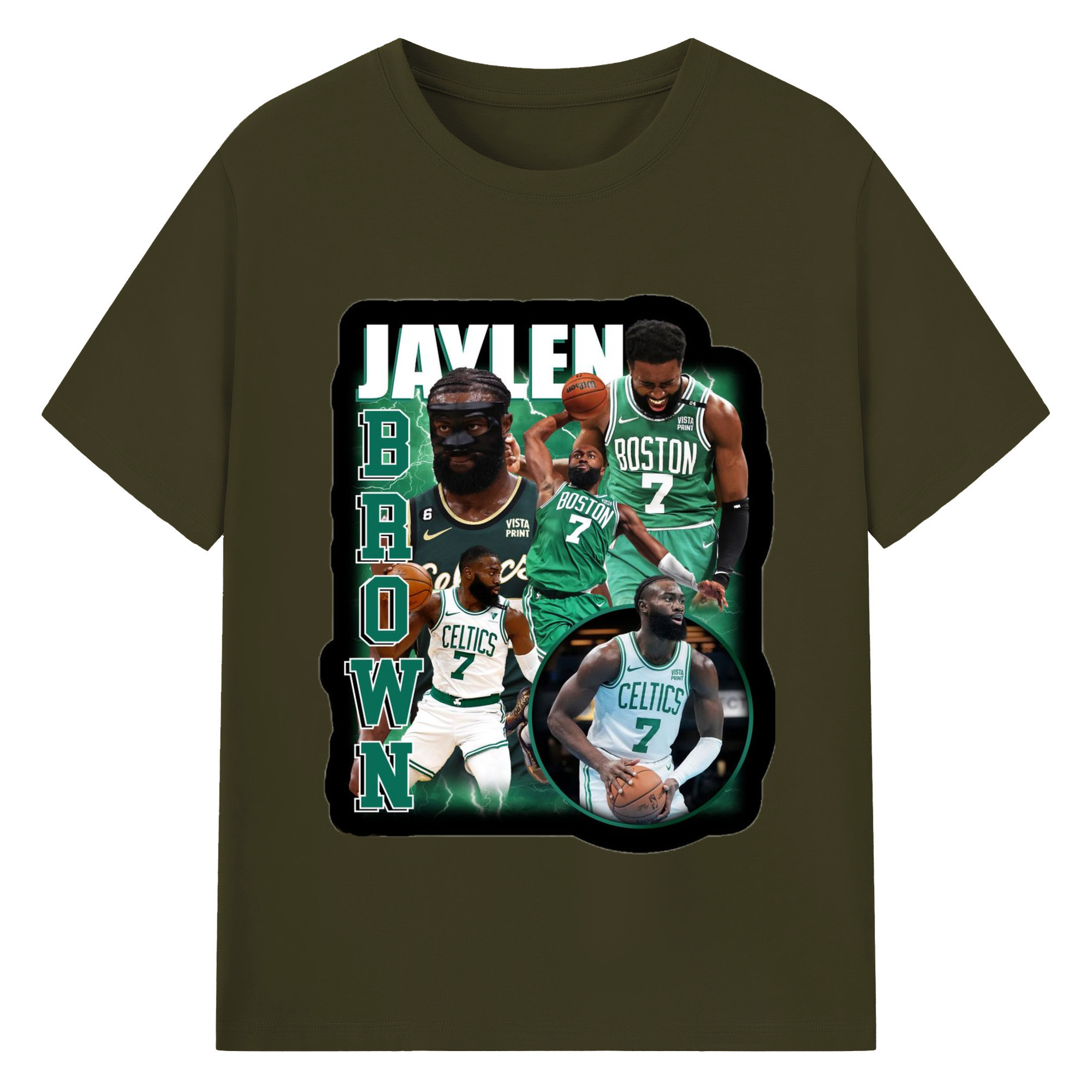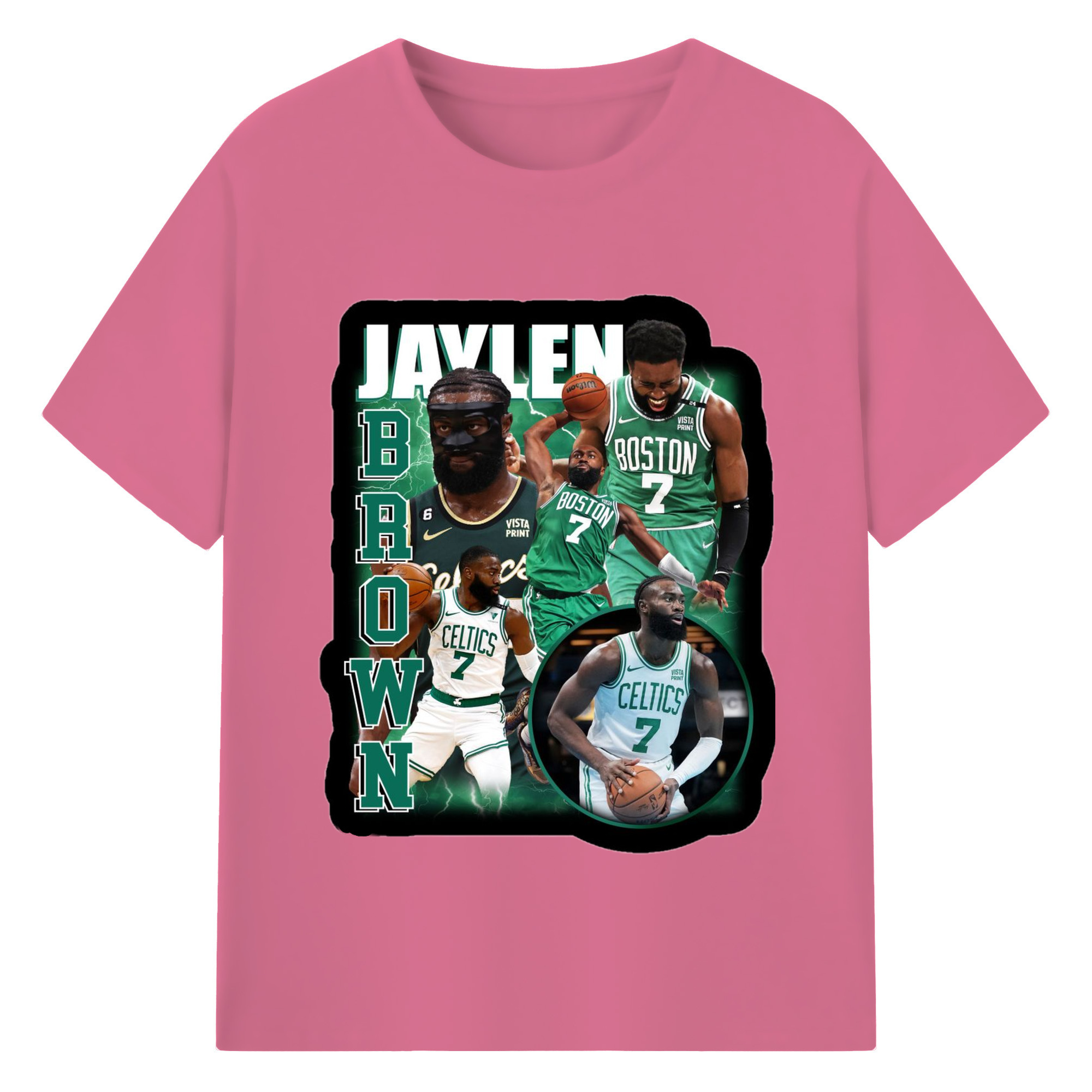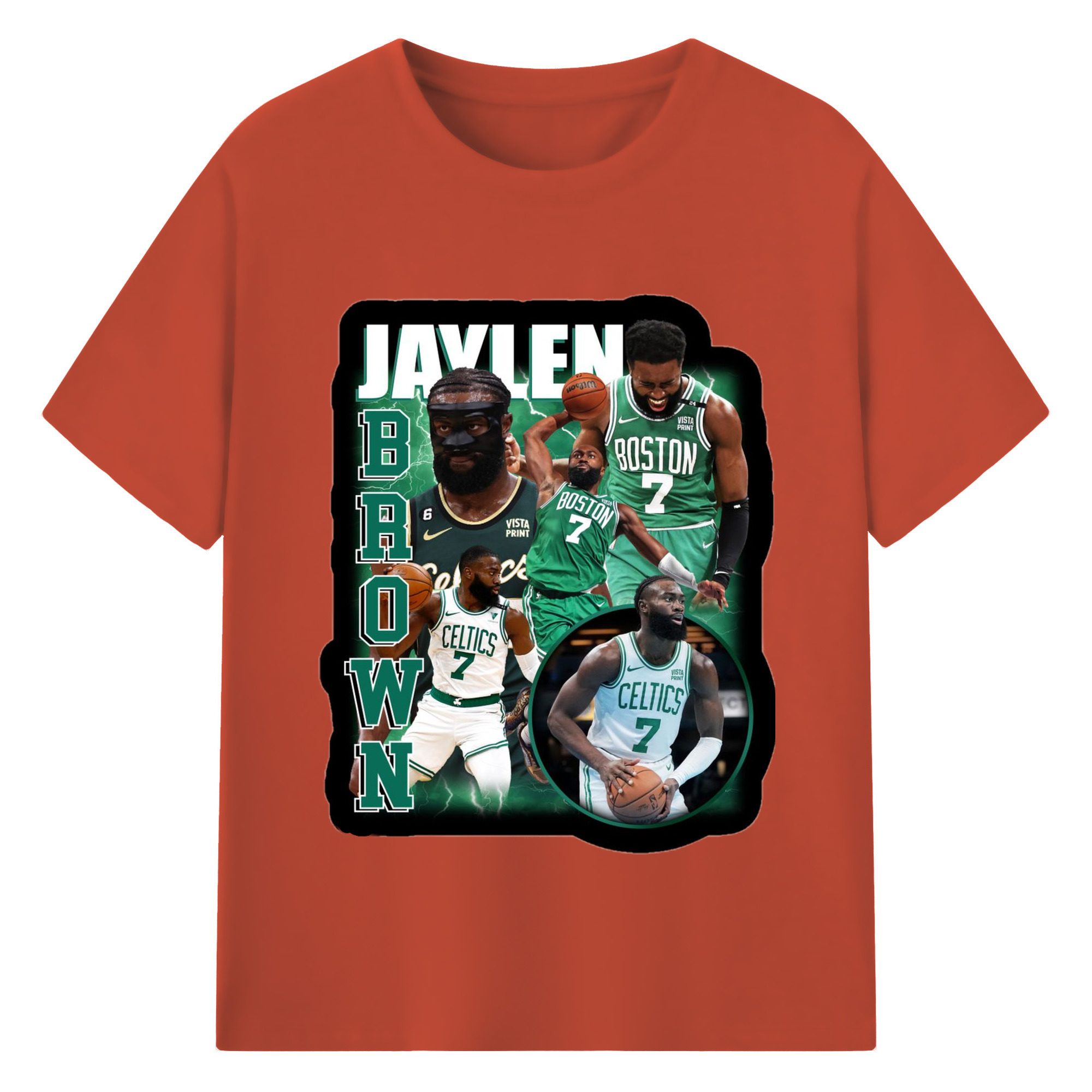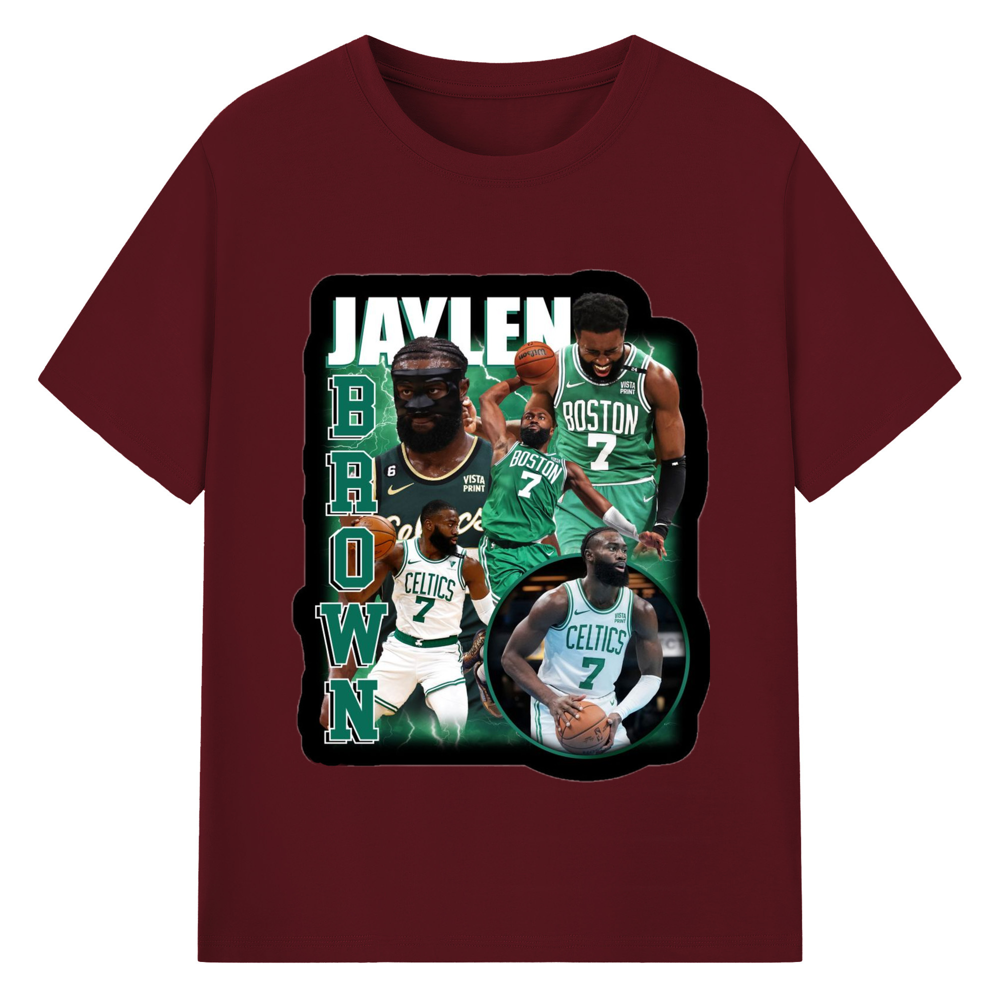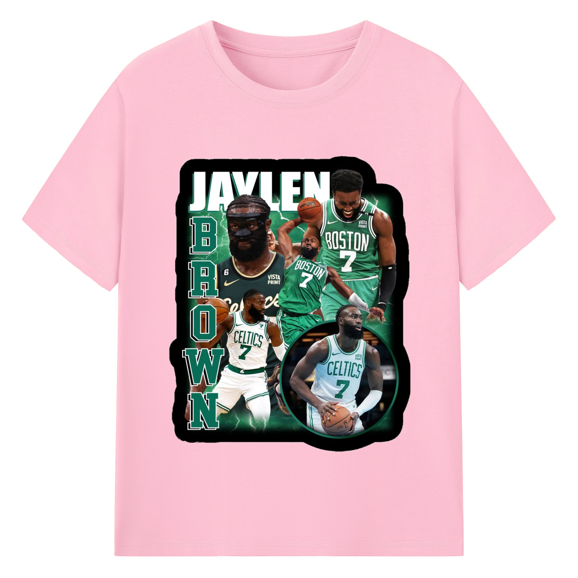 Jaylen Brown Collage graphic T‑Shirt - 180g Cotton T-Shirt With Front Heat Transfer Print – Soft, Lightweight, Fitted Design – Comfortable Casual Wear For Sports & Everyday Use