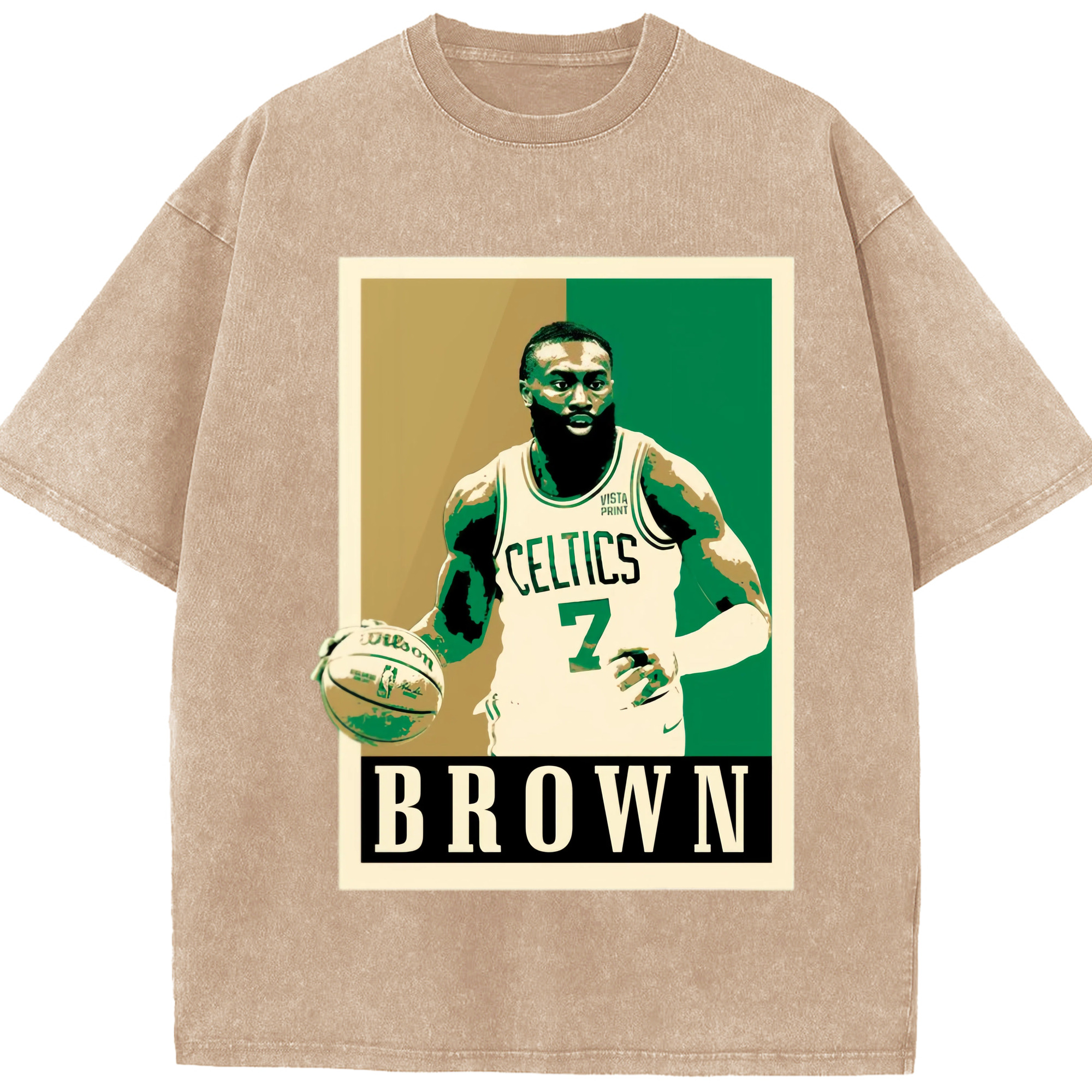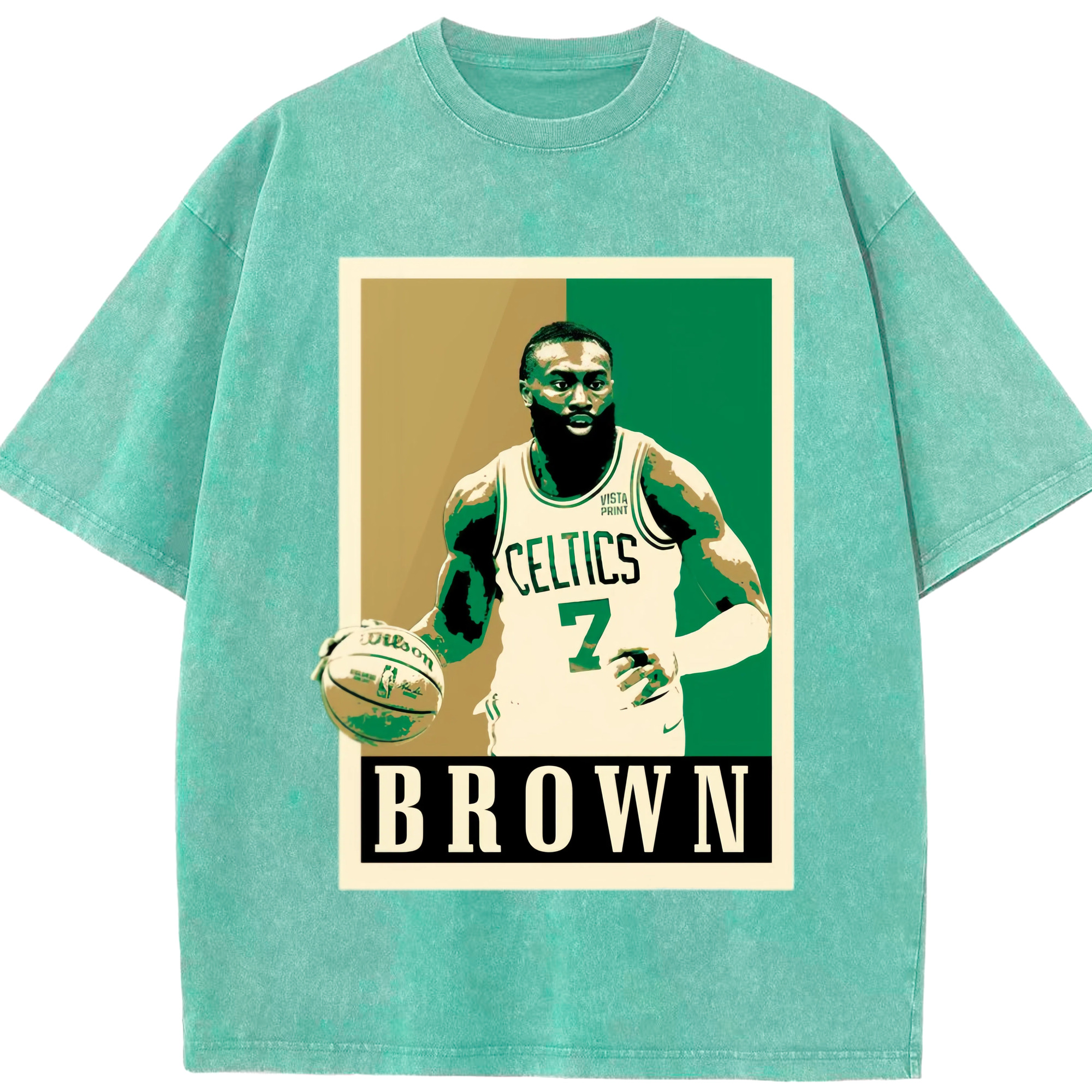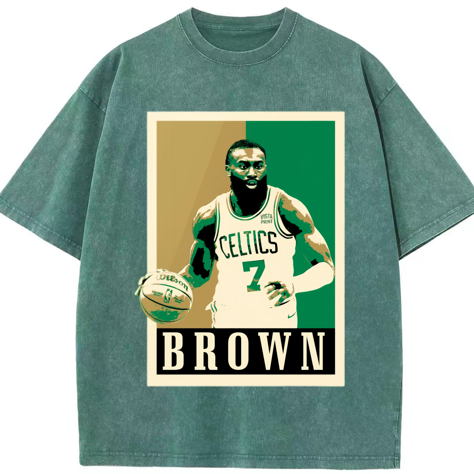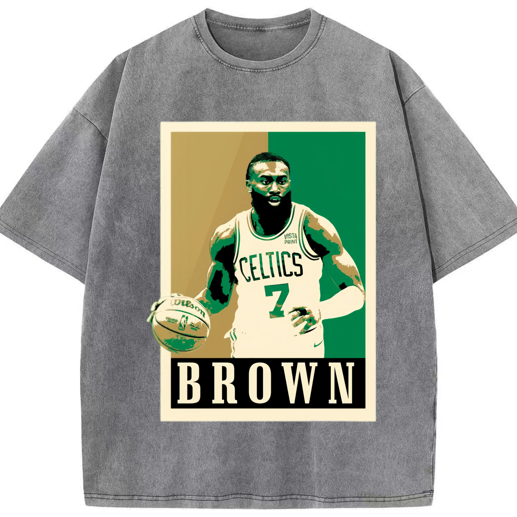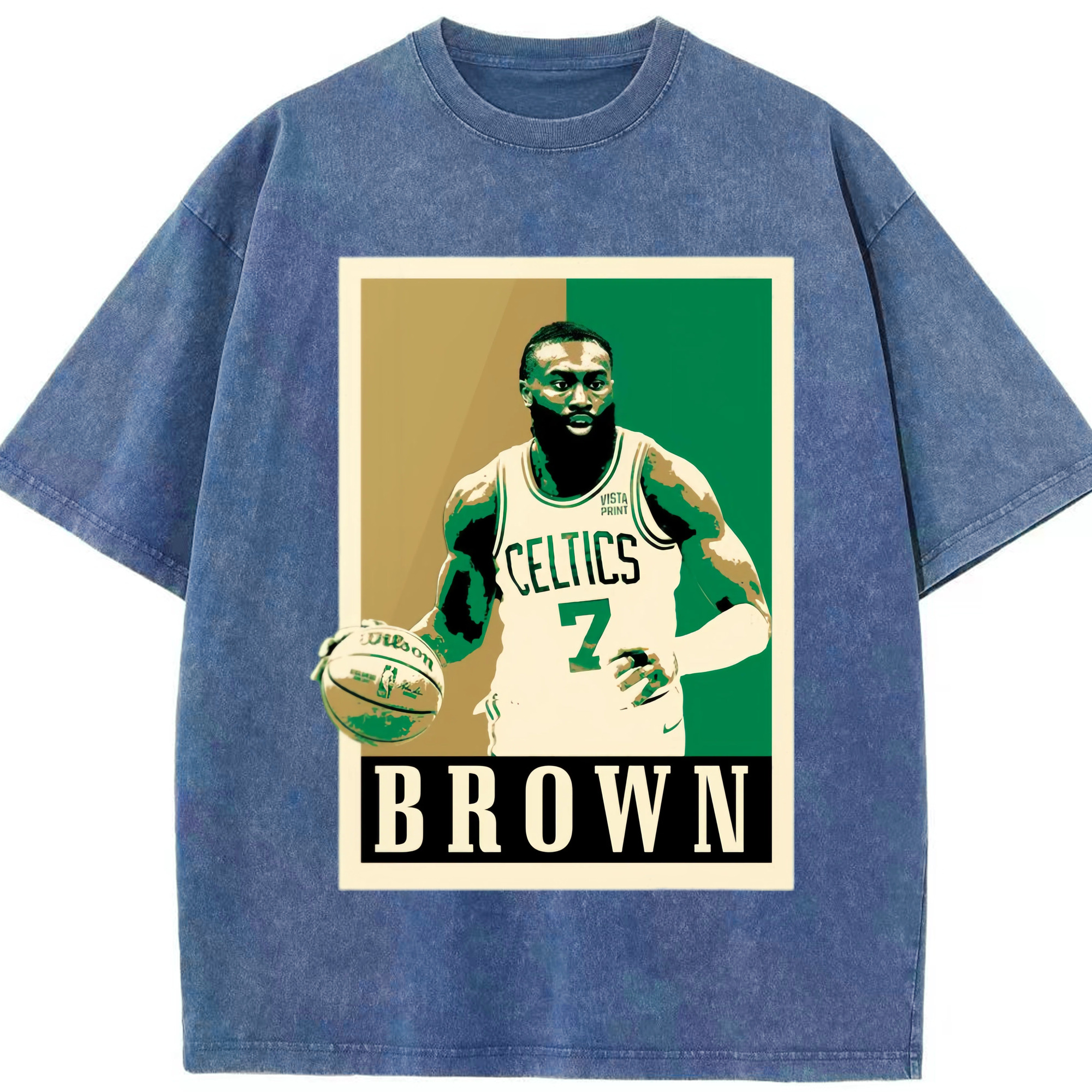 Jaylen Brown Watermark style T‑Shirt - Washed Vintage Look 230g Cotton Oversized T-Shirt With Front Heat Transfer Print – Soft, Lightweight, Stylish Fit – Comfortable Casual Wear For Sports & Everyday Use