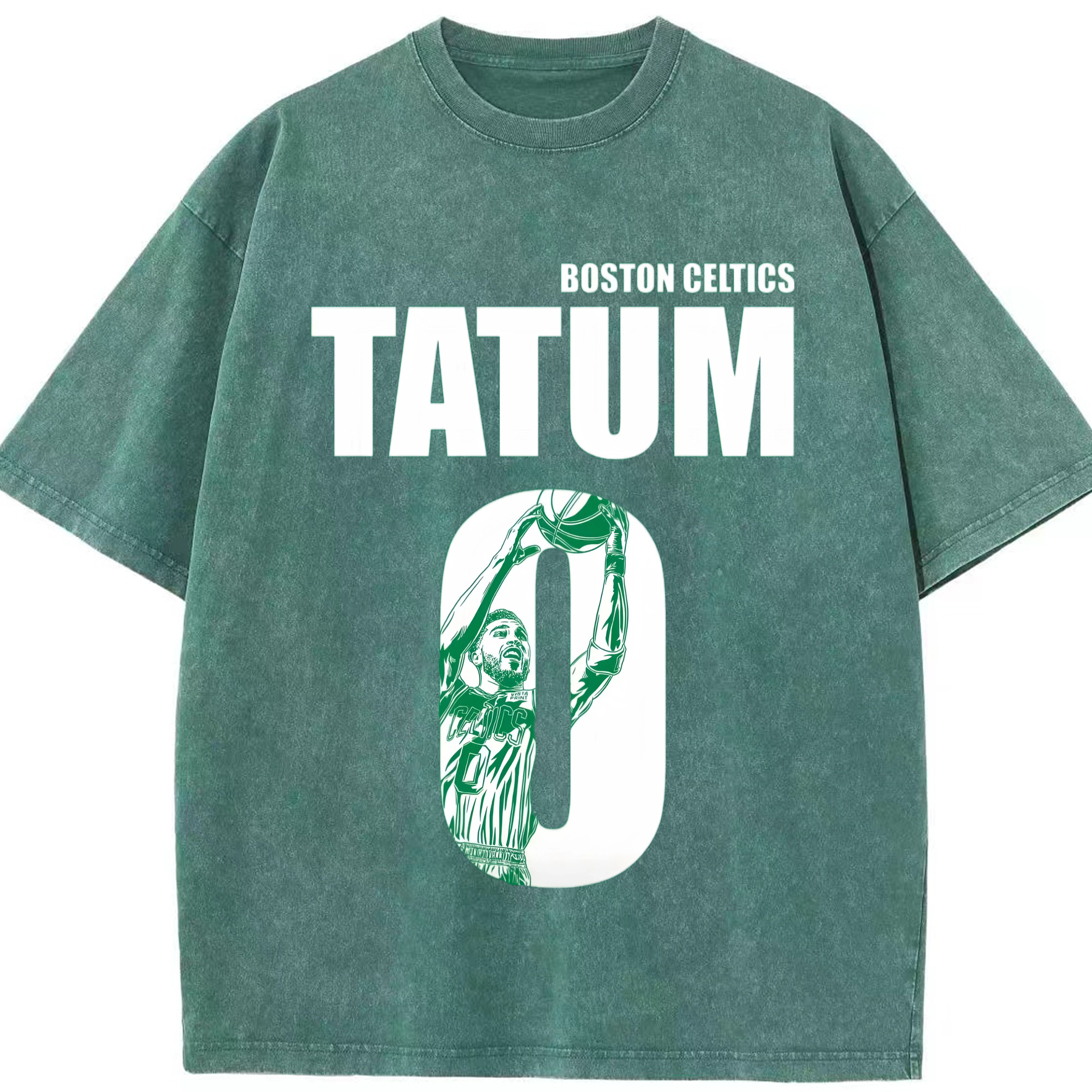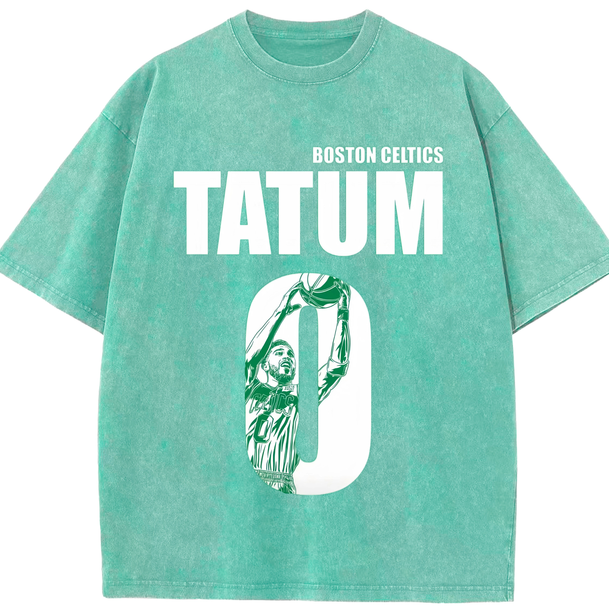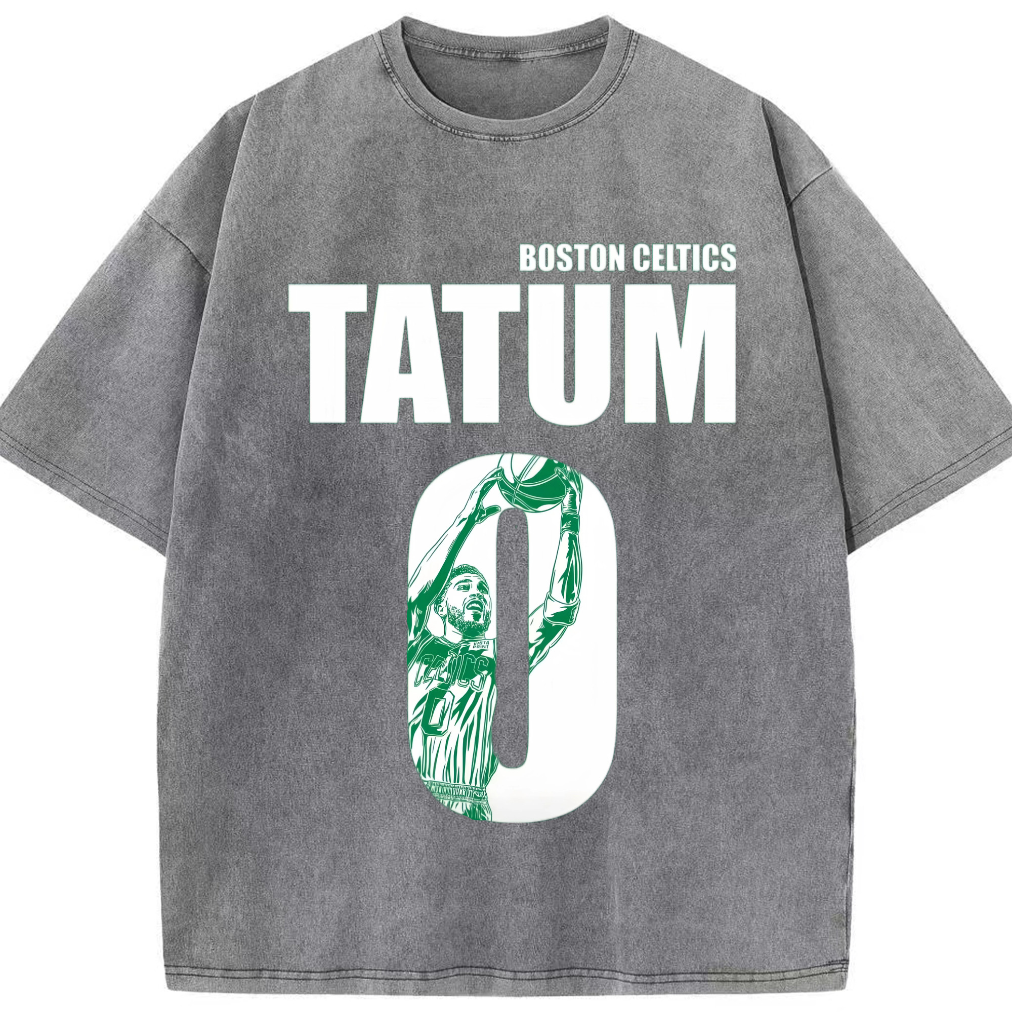 Jayson Tatum #0 Celtics T-shirt - Washed Vintage Look 230g Cotton Oversized T-Shirt With Front Heat Transfer Print – Soft, Lightweight, Stylish Fit – Comfortable Casual Wear For Sports & Everyday Use