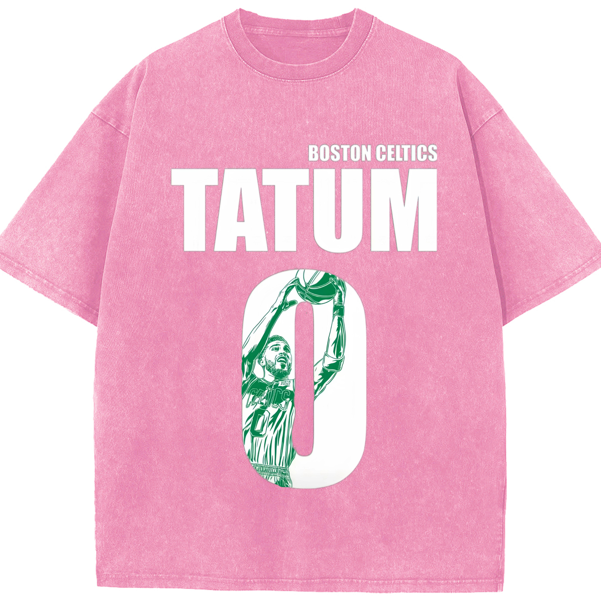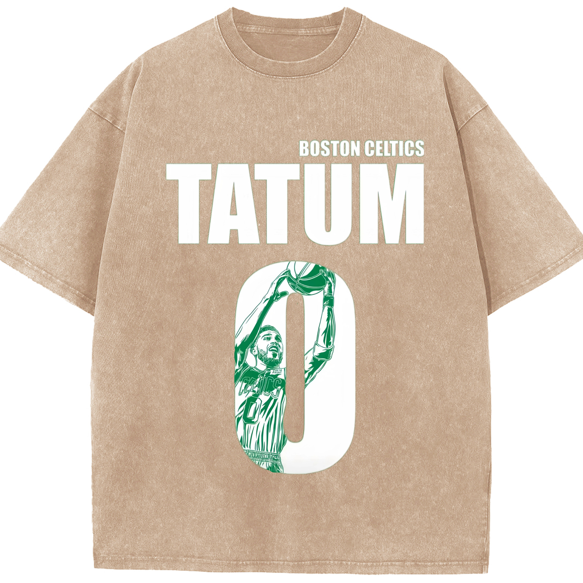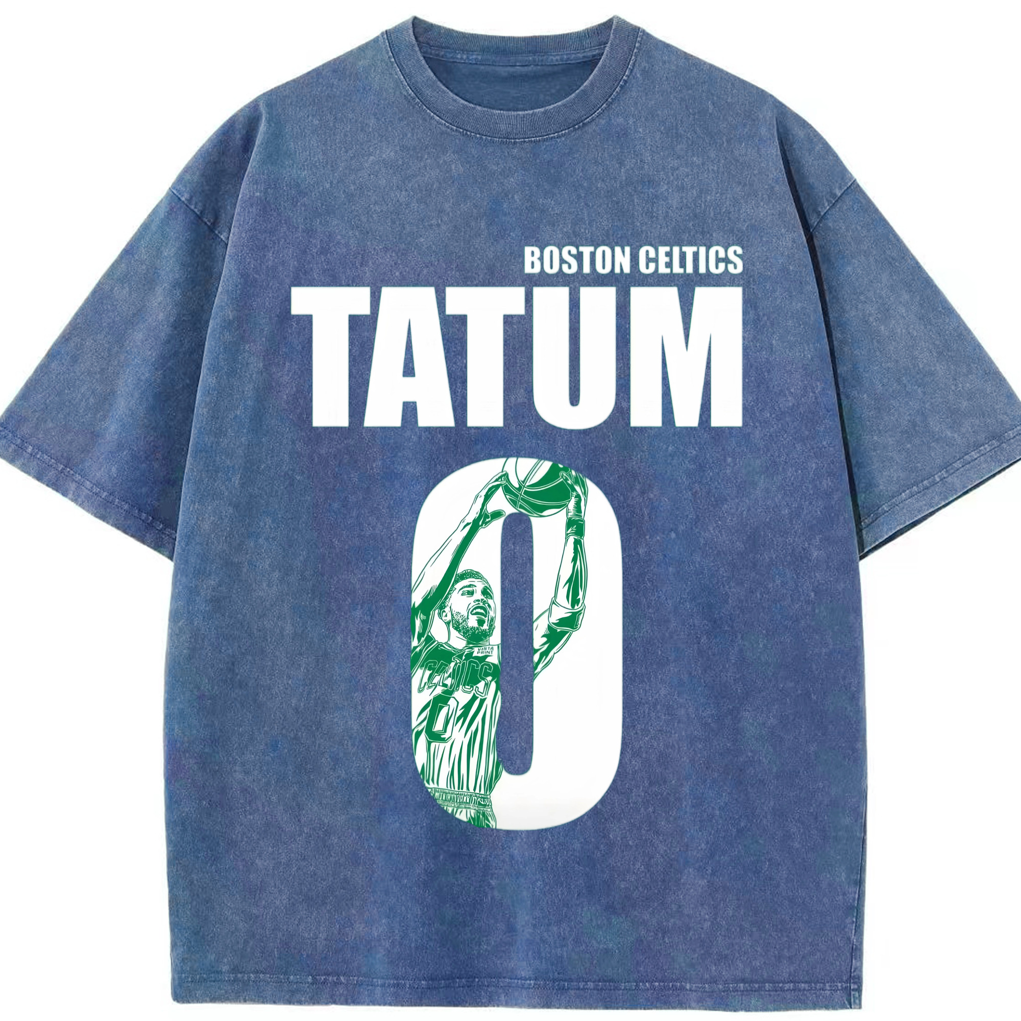 Jayson Tatum #0 Celtics T-shirt - Washed Vintage Look 230g Cotton Oversized T-Shirt With Front Heat Transfer Print – Soft, Lightweight, Stylish Fit – Comfortable Casual Wear For Sports & Everyday Use