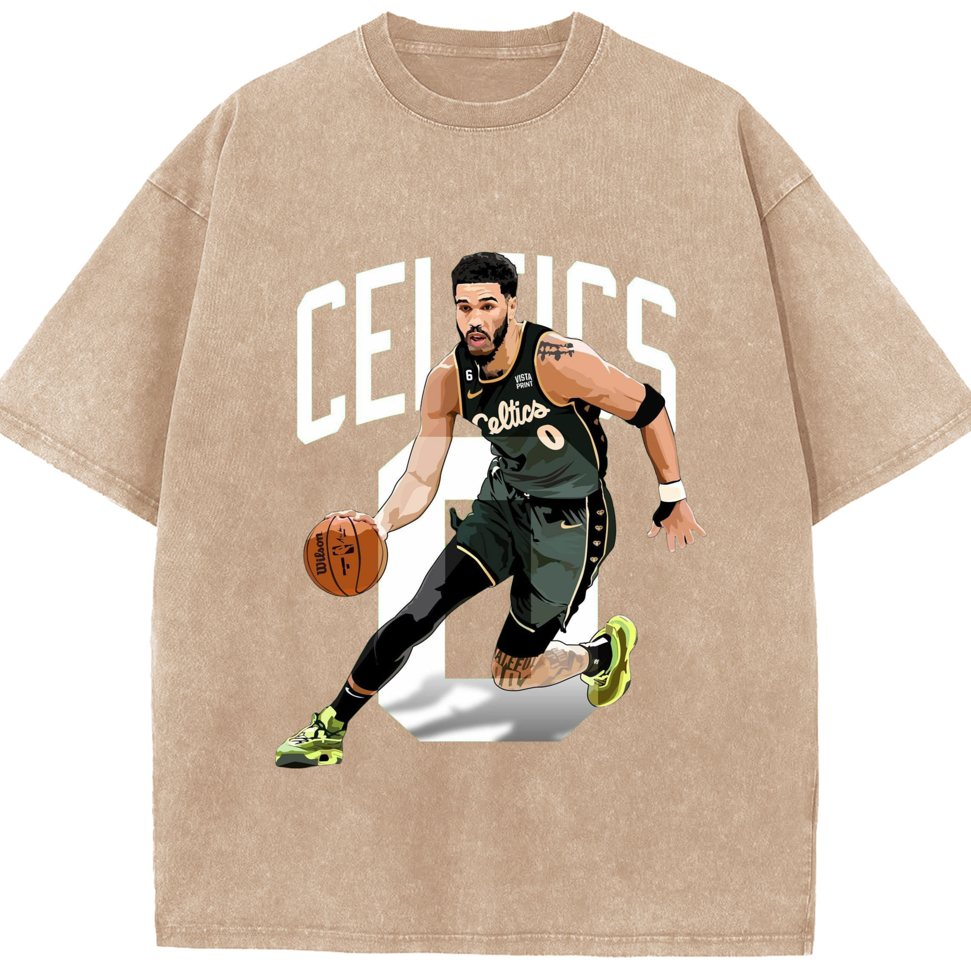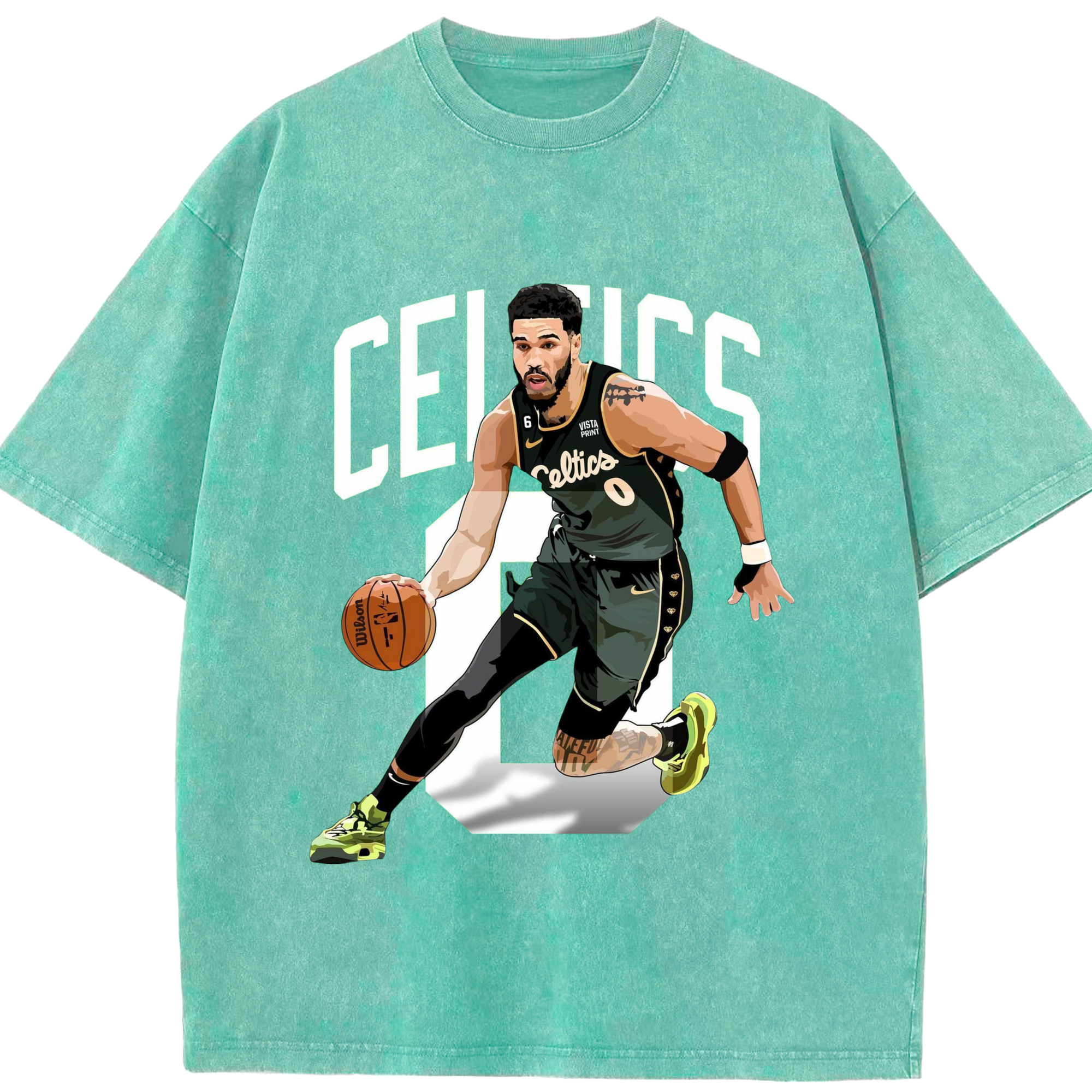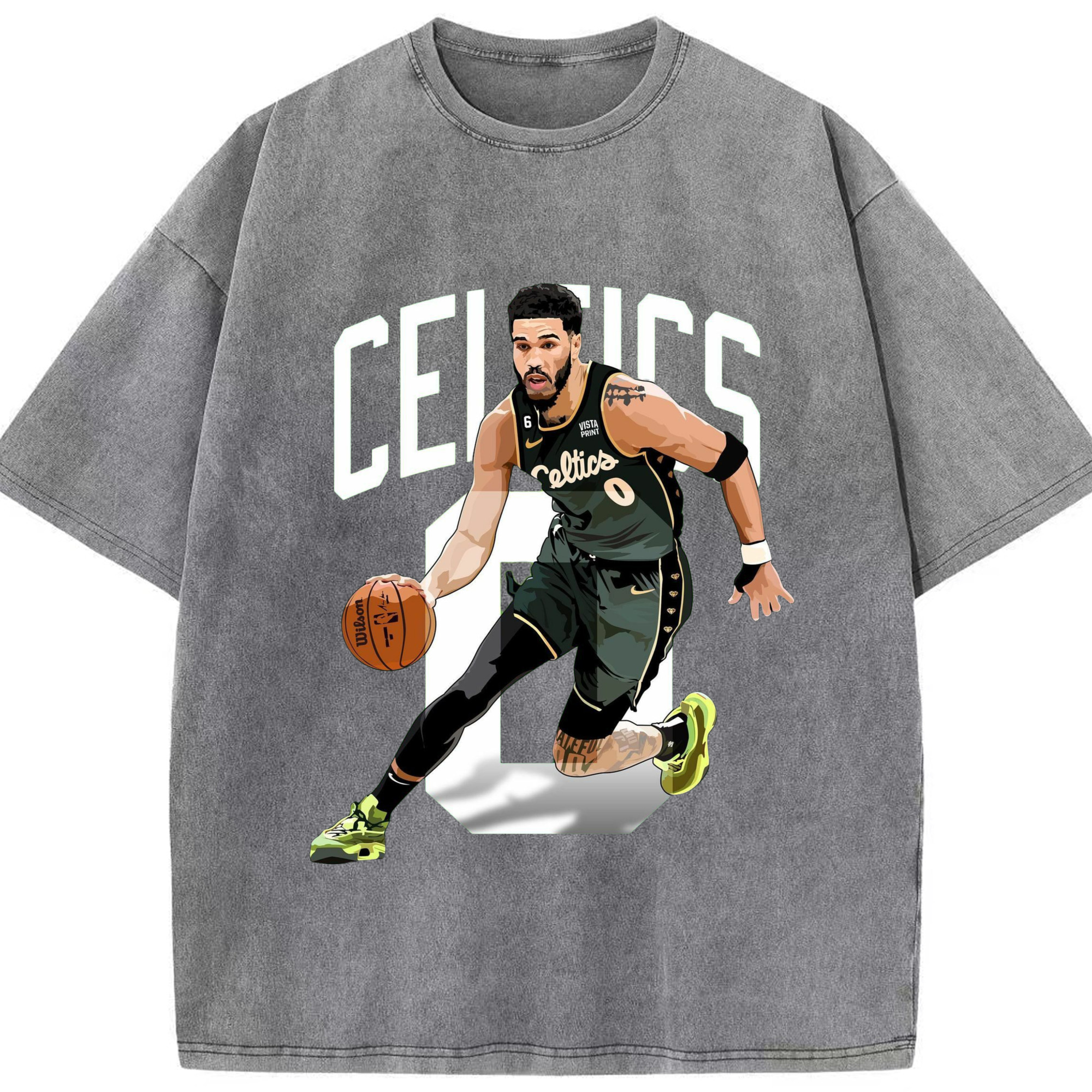 Jayson Tatum Celtics T-shirt - Washed Vintage Look 230g Cotton Oversized T-Shirt With Front Heat Transfer Print – Soft, Lightweight, Stylish Fit – Comfortable Casual Wear For Sports & Everyday Use