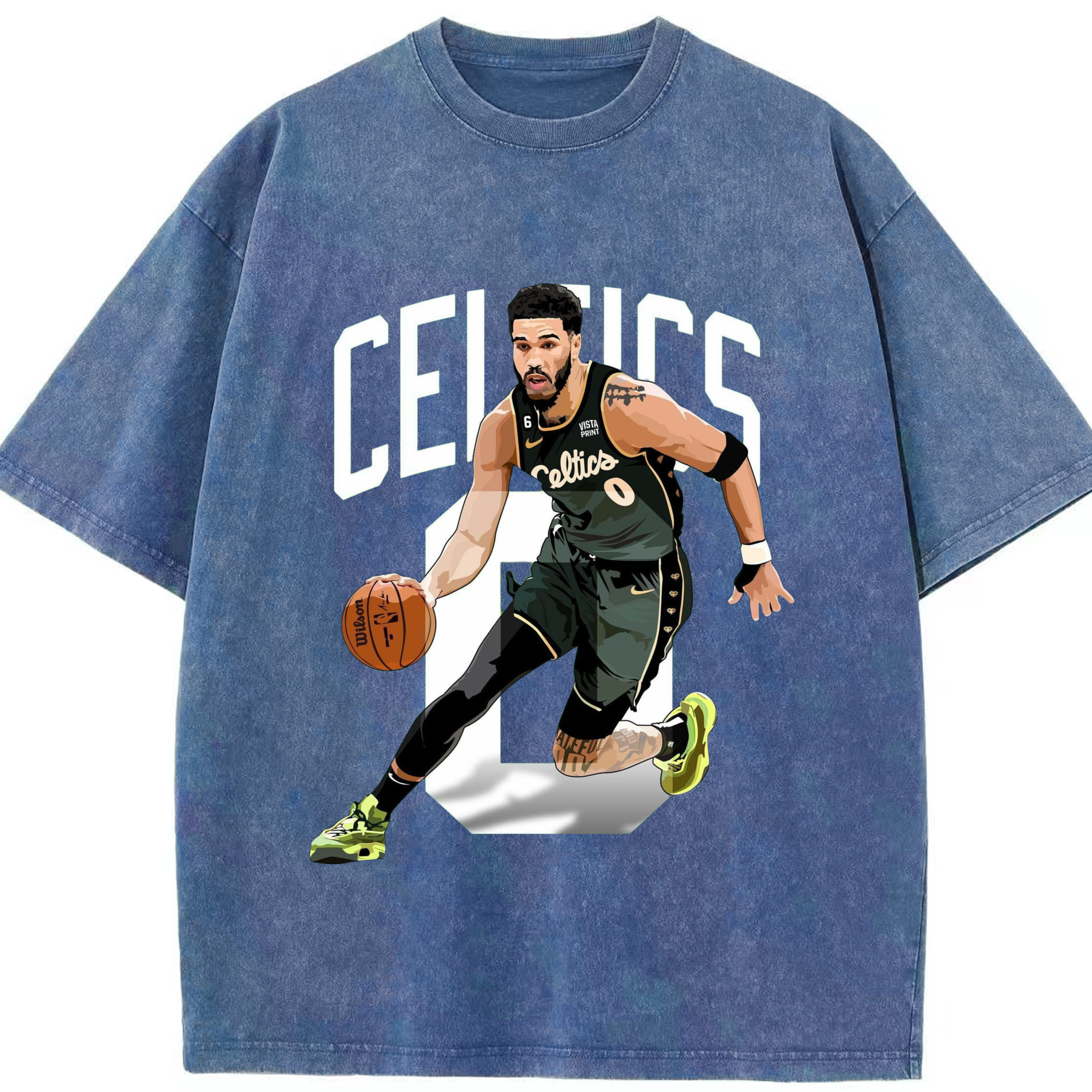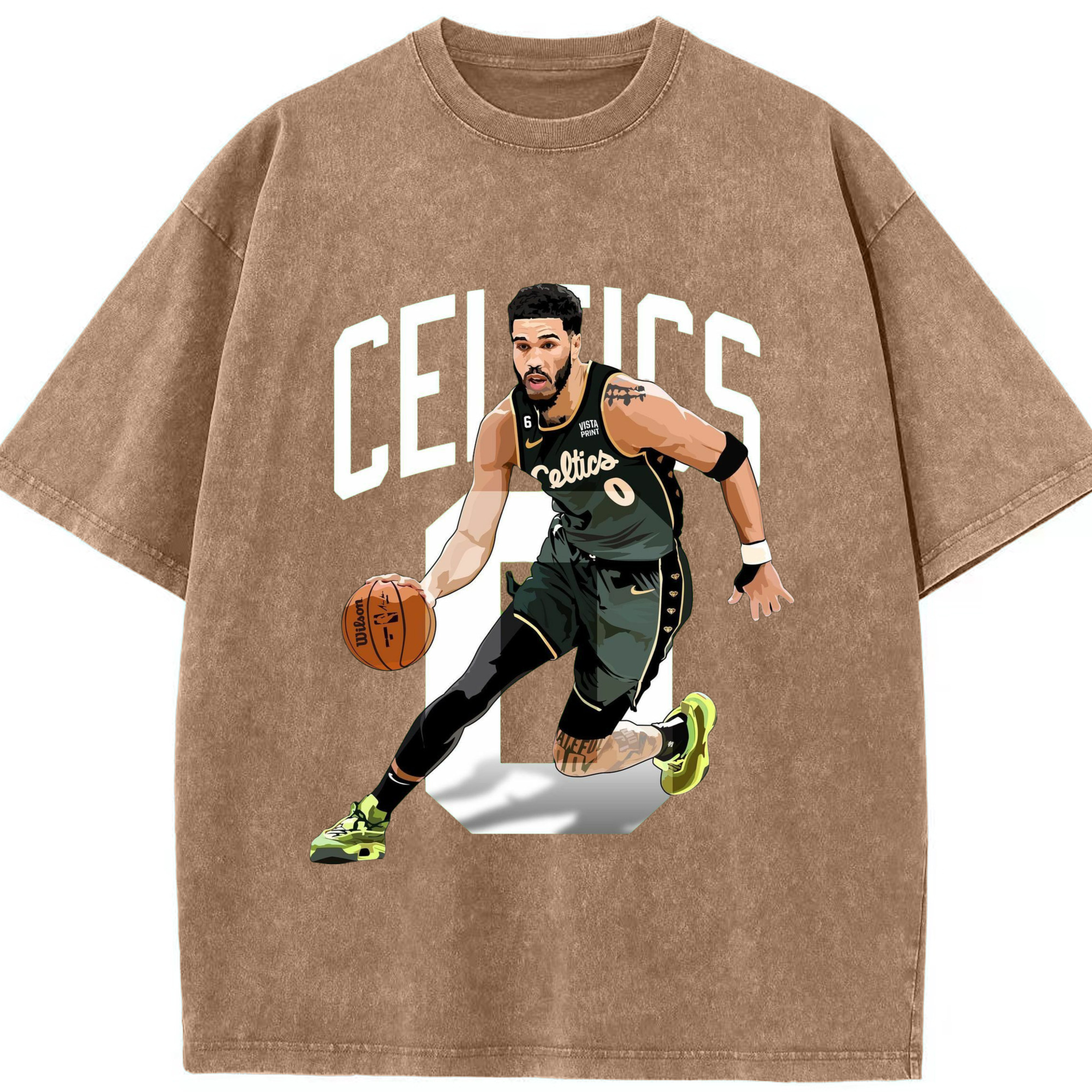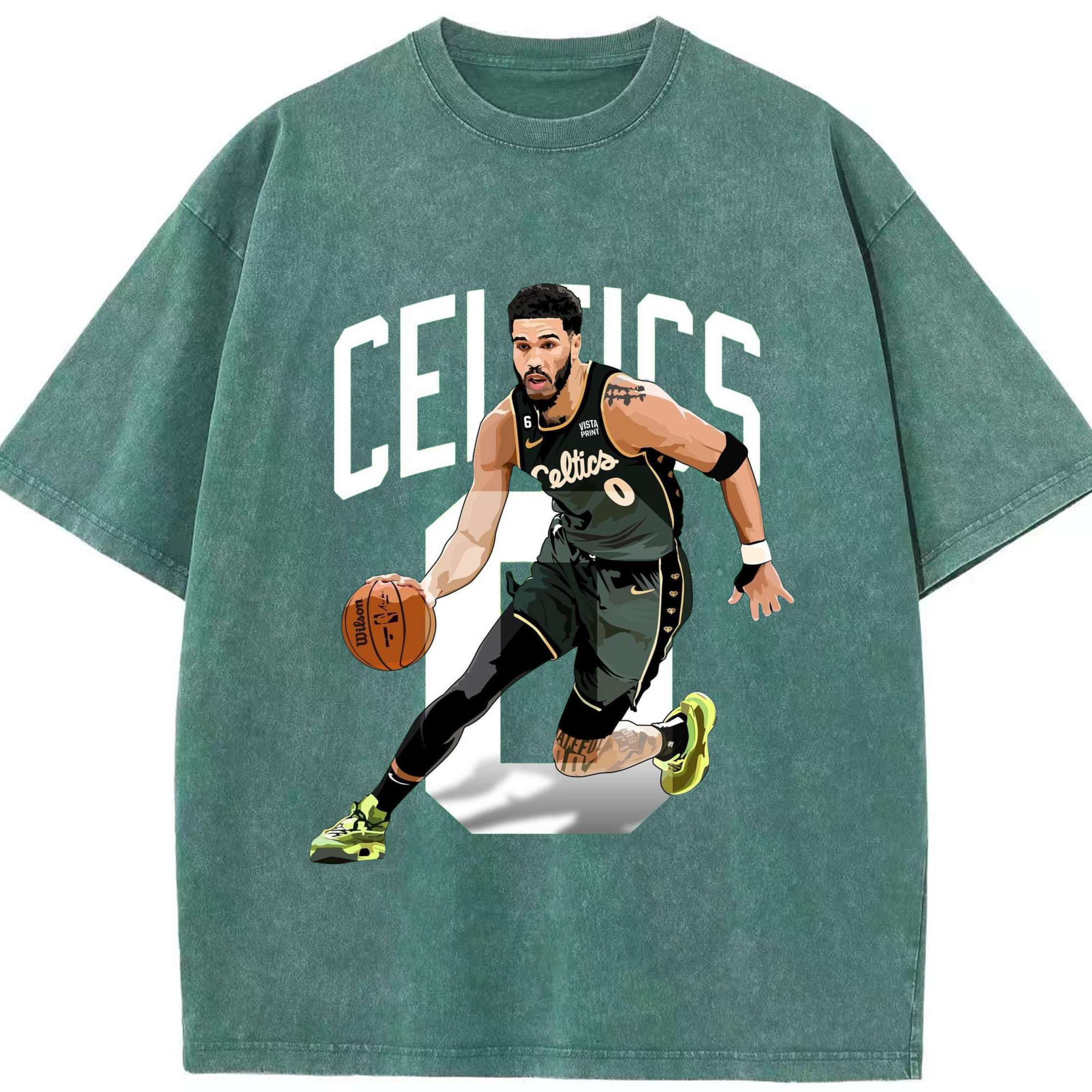 Jayson Tatum Celtics T-shirt - Washed Vintage Look 230g Cotton Oversized T-Shirt With Front Heat Transfer Print – Soft, Lightweight, Stylish Fit – Comfortable Casual Wear For Sports & Everyday Use