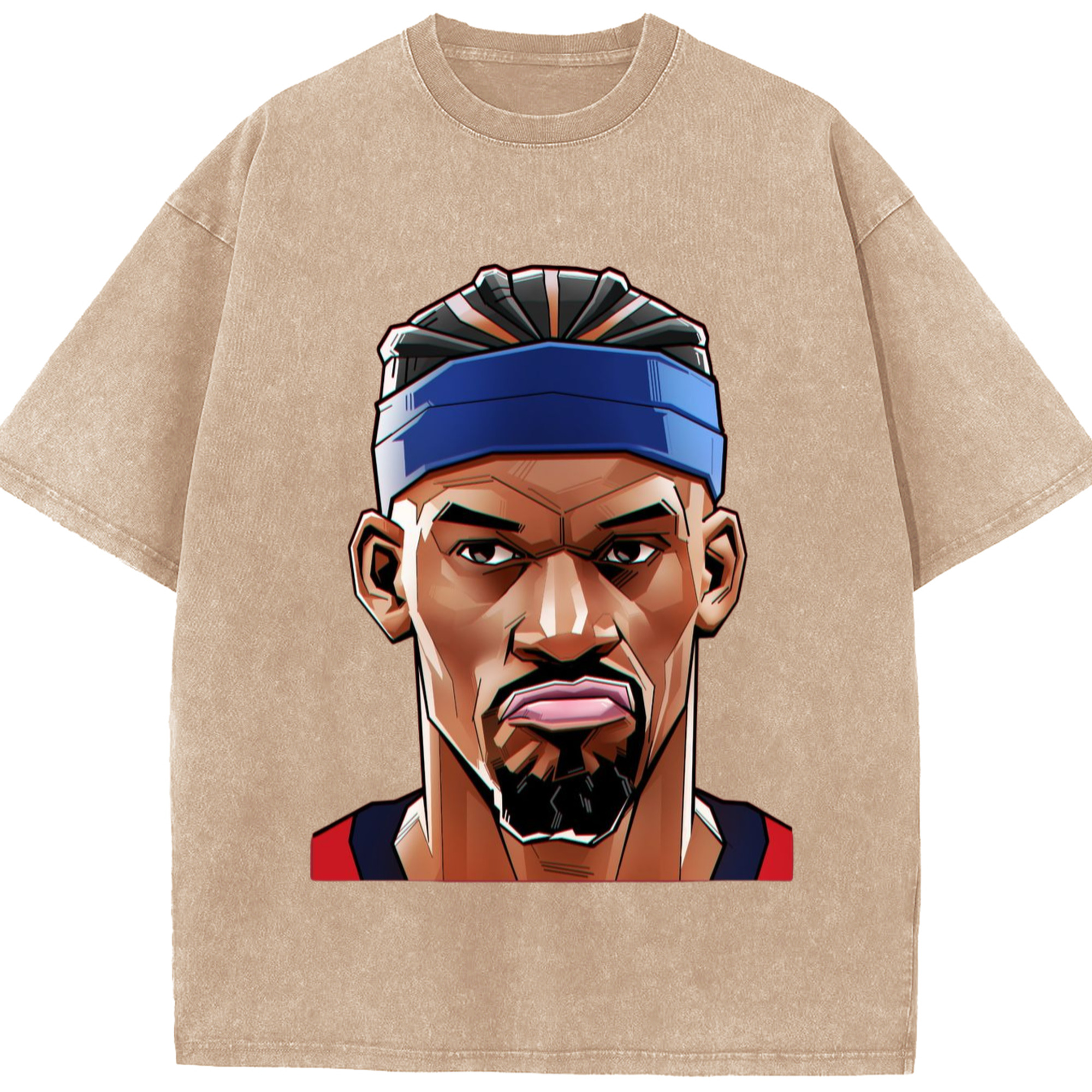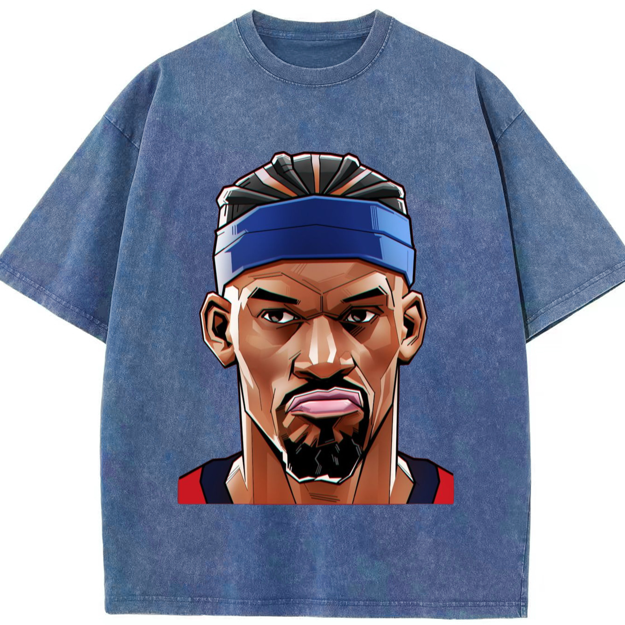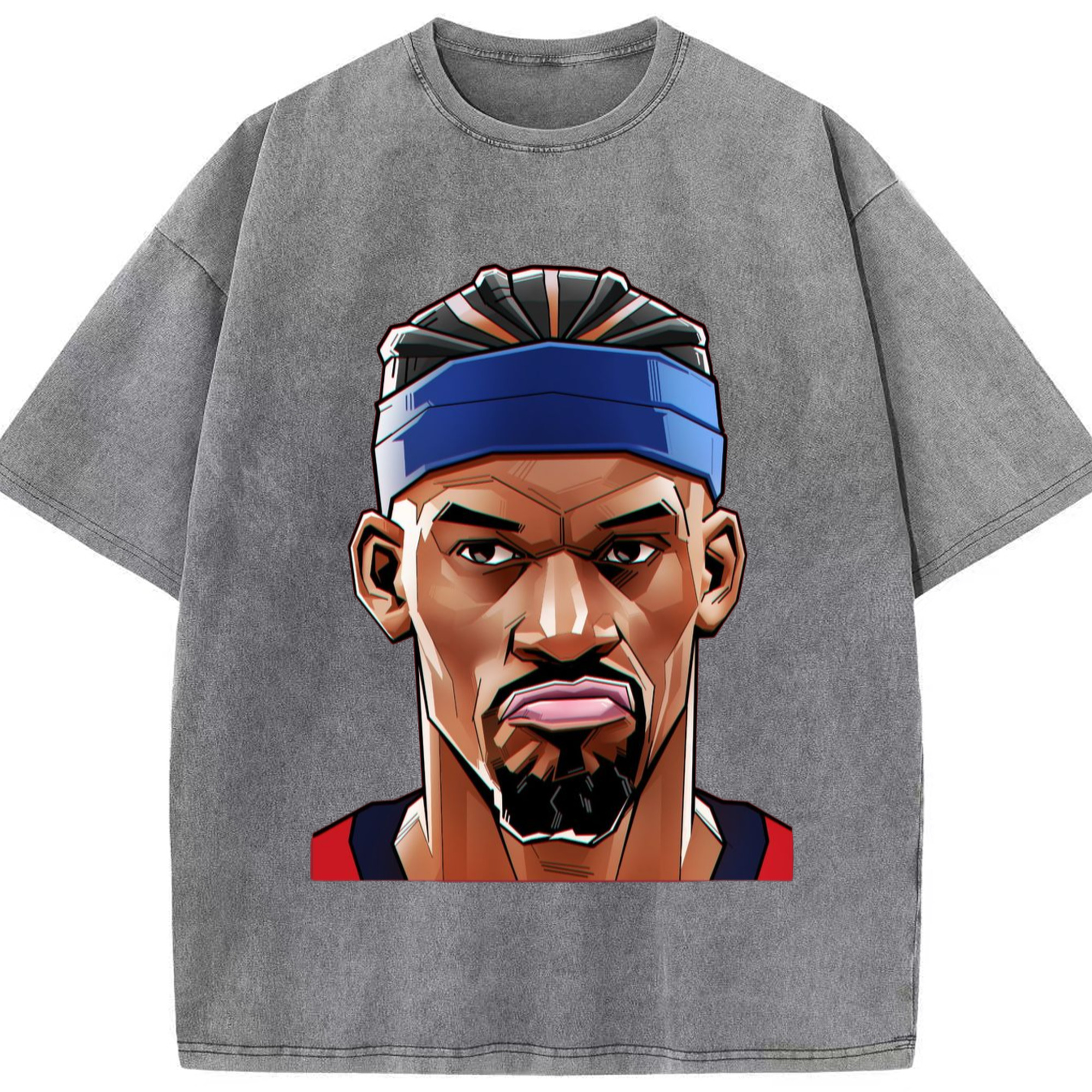 Jimmy butler cartoon head portrait T‑Shirt - Washed Vintage Look 230g Cotton Oversized T-Shirt With Front Heat Transfer Print – Soft, Lightweight, Stylish Fit – Comfortable Casual Wear For Sports & Everyday Use