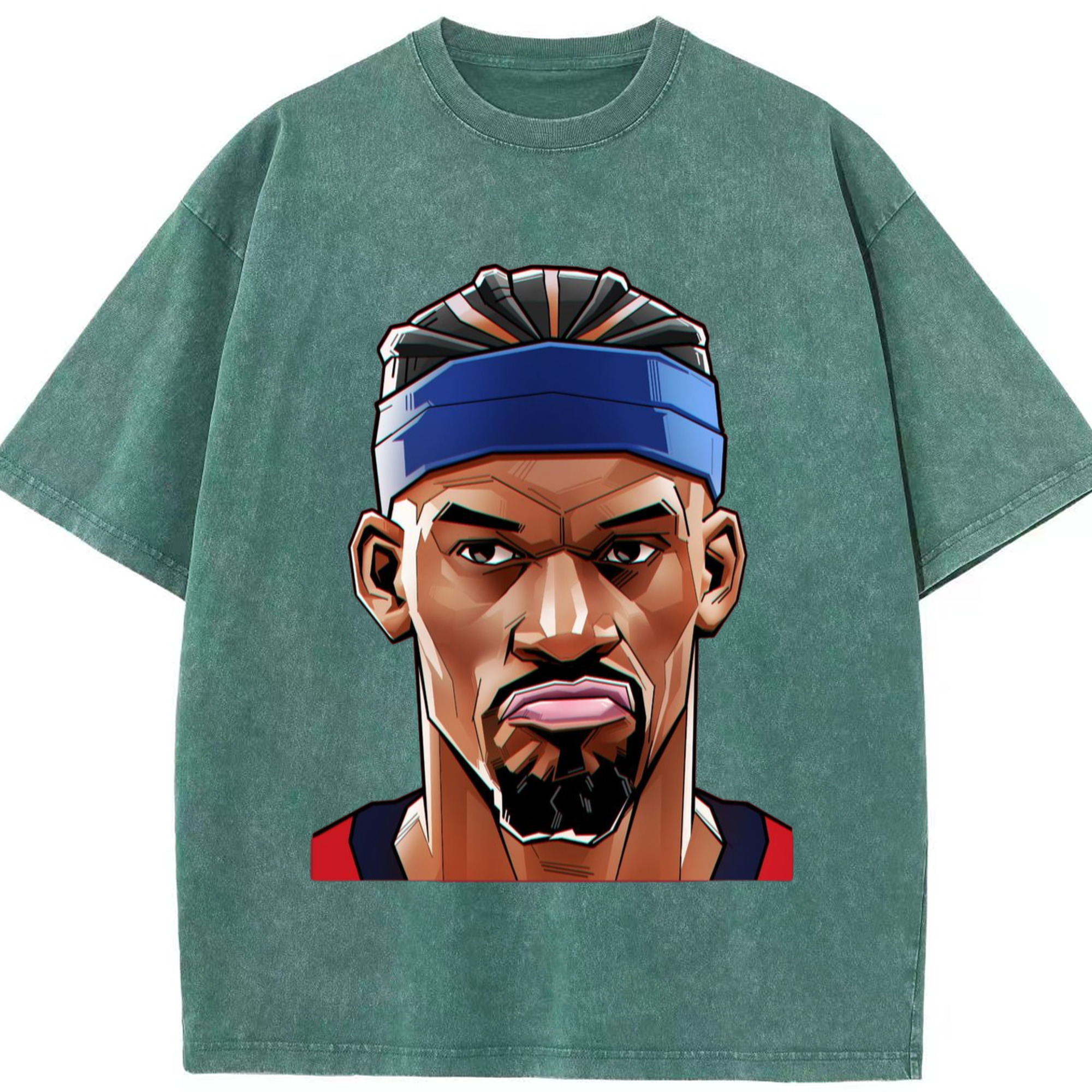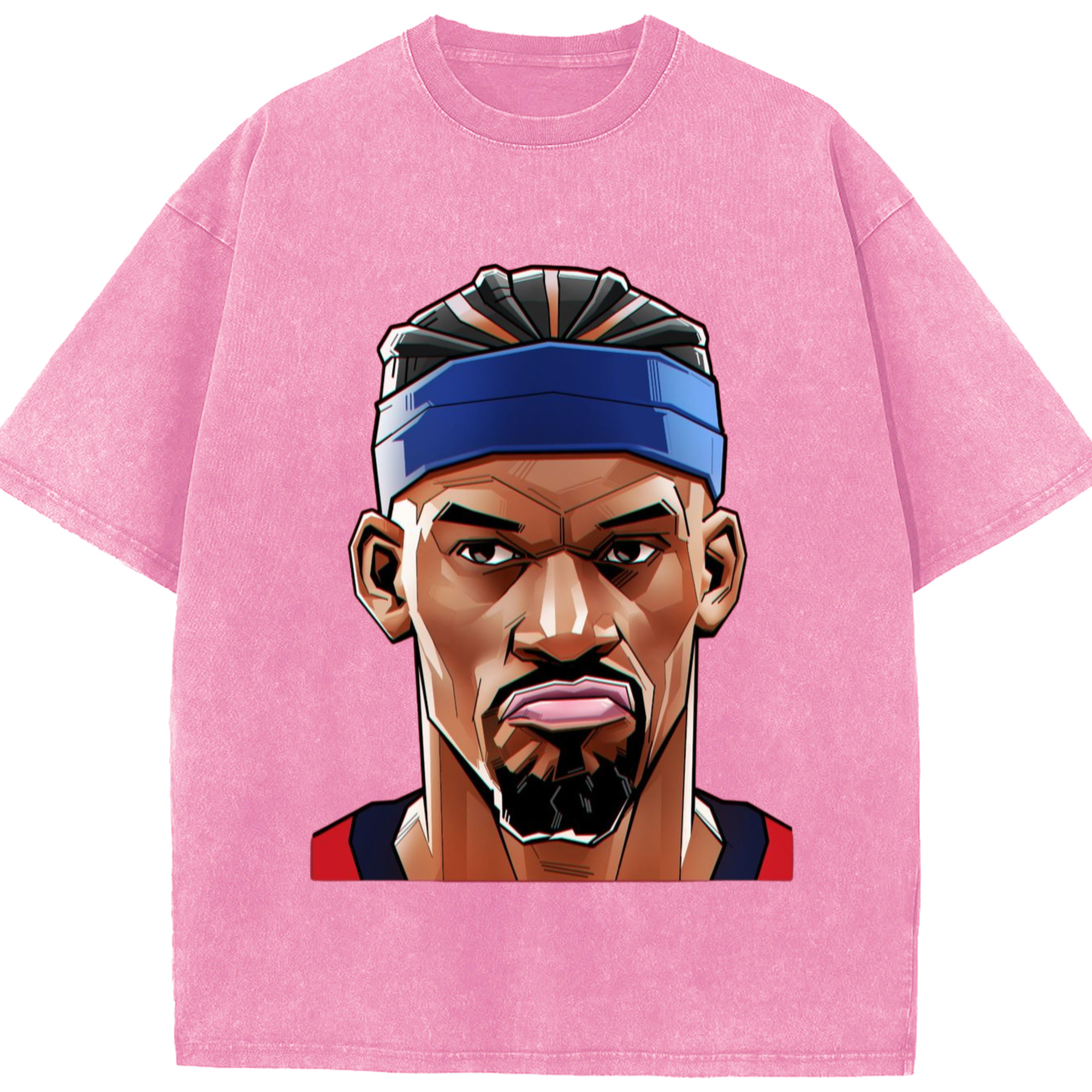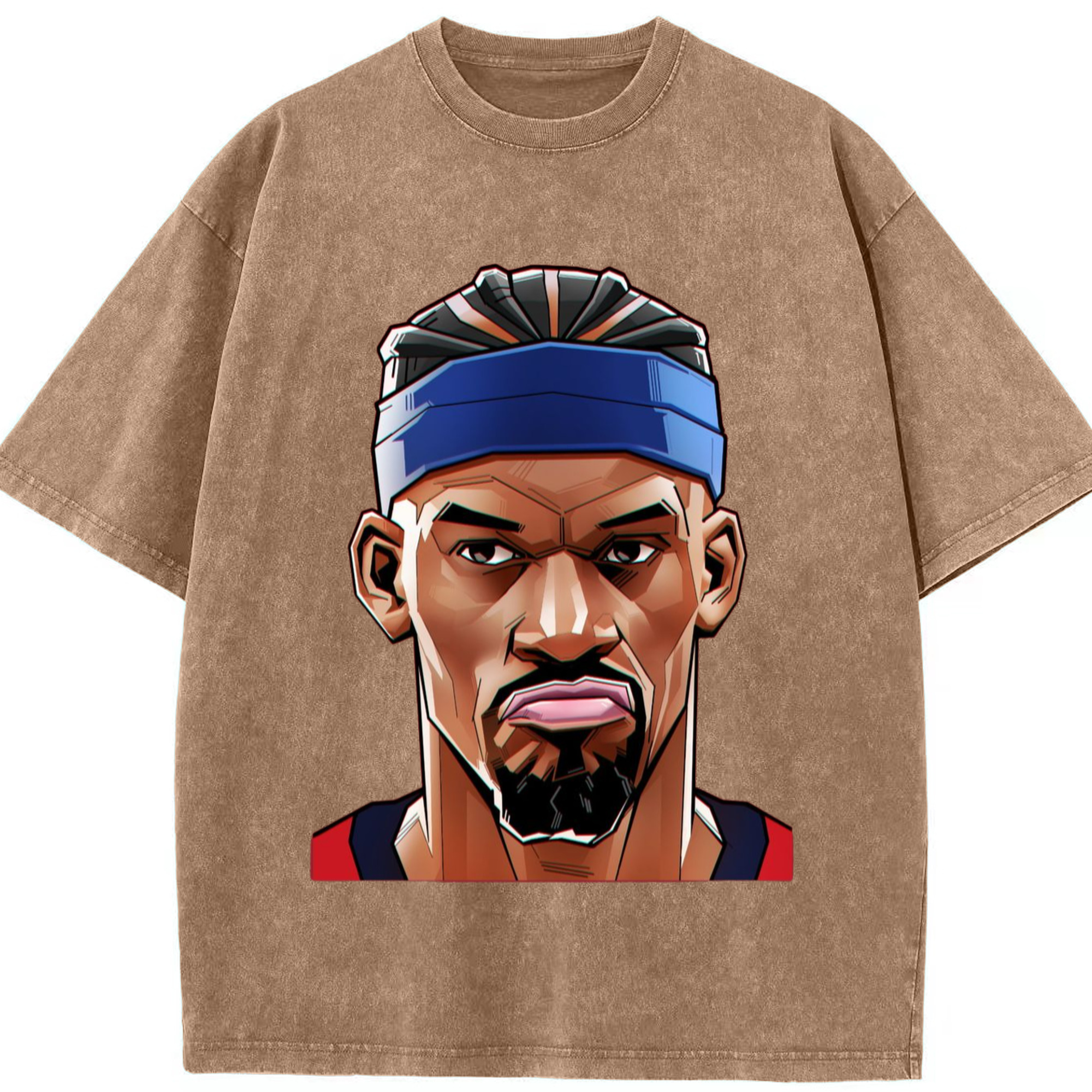 Jimmy butler cartoon head portrait T‑Shirt - Washed Vintage Look 230g Cotton Oversized T-Shirt With Front Heat Transfer Print – Soft, Lightweight, Stylish Fit – Comfortable Casual Wear For Sports & Everyday Use
