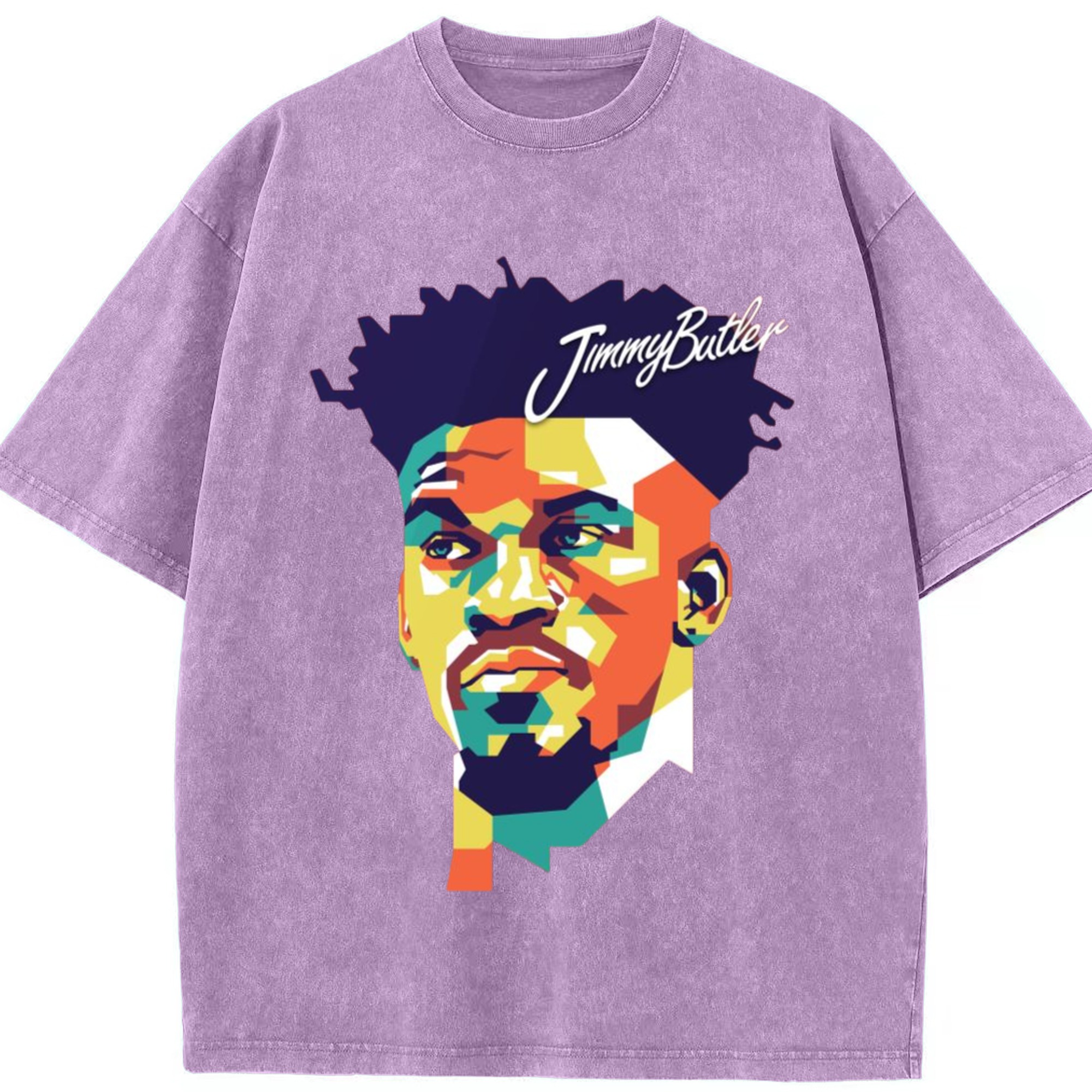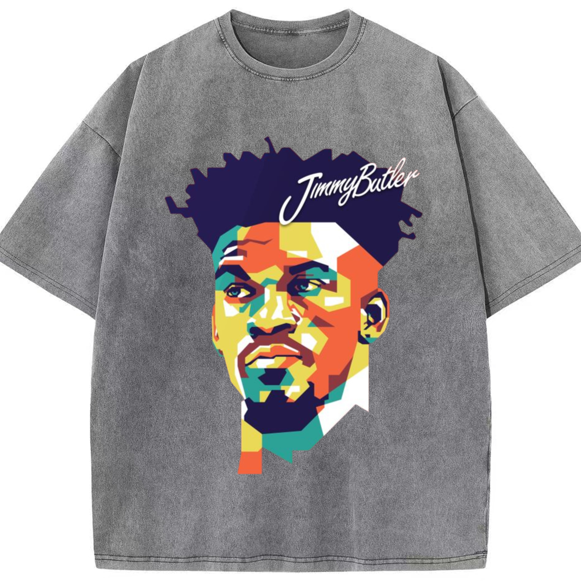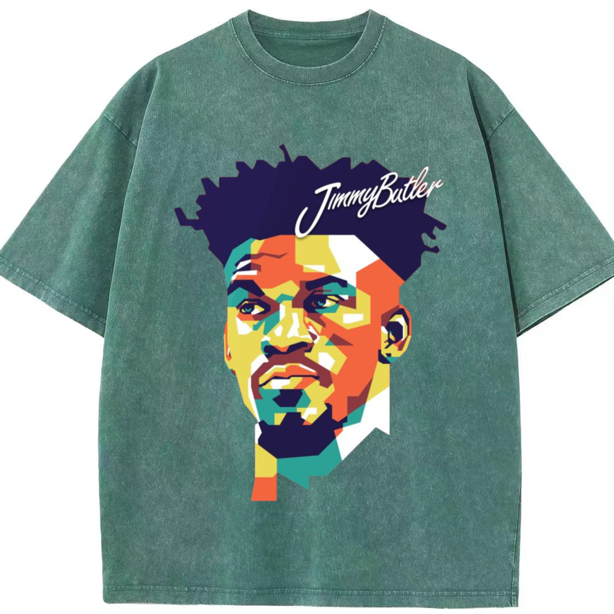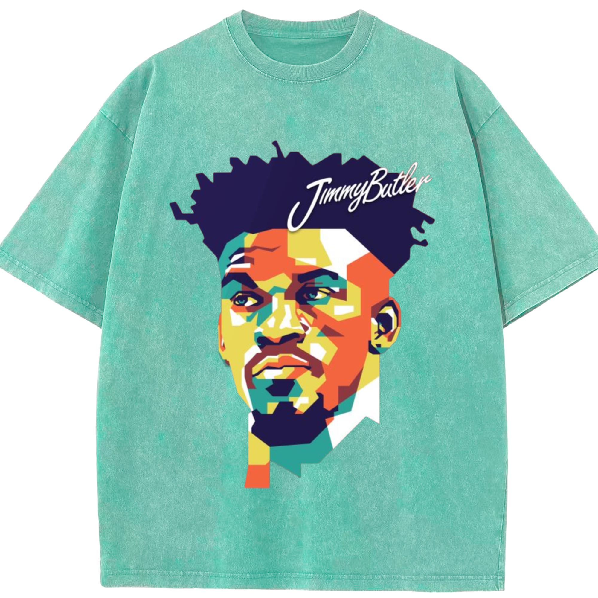 Jimmy butler Painted head portrait T‑Shirt - Washed Vintage Look 230g Cotton Oversized T-Shirt With Front Heat Transfer Print – Soft, Lightweight, Stylish Fit – Comfortable Casual Wear For Sports & Everyday Use