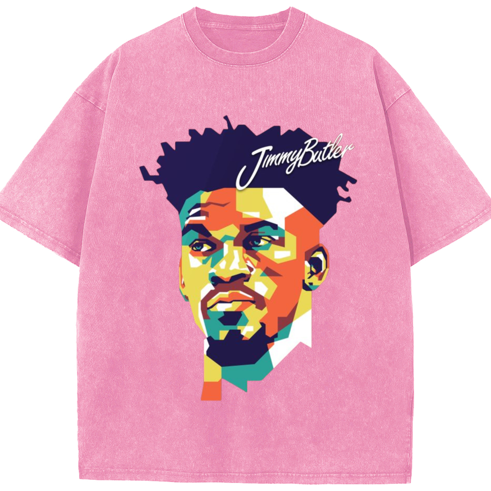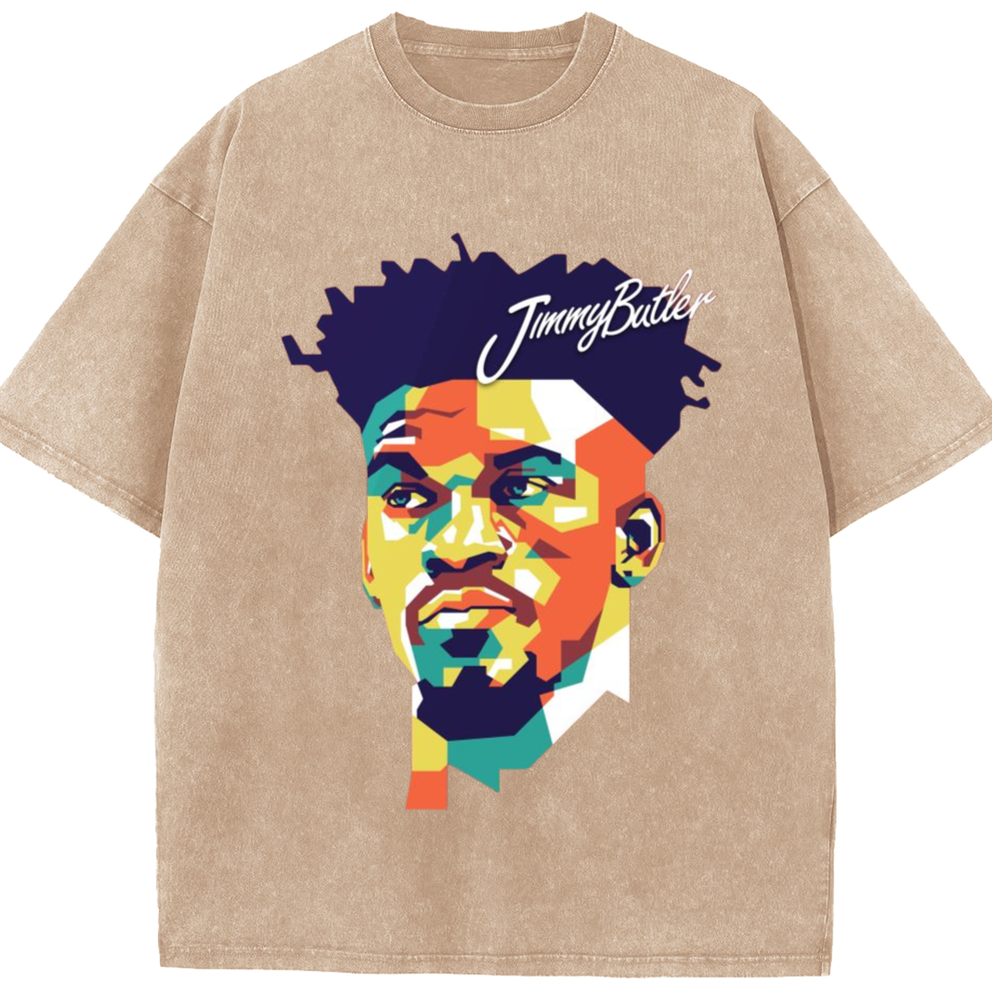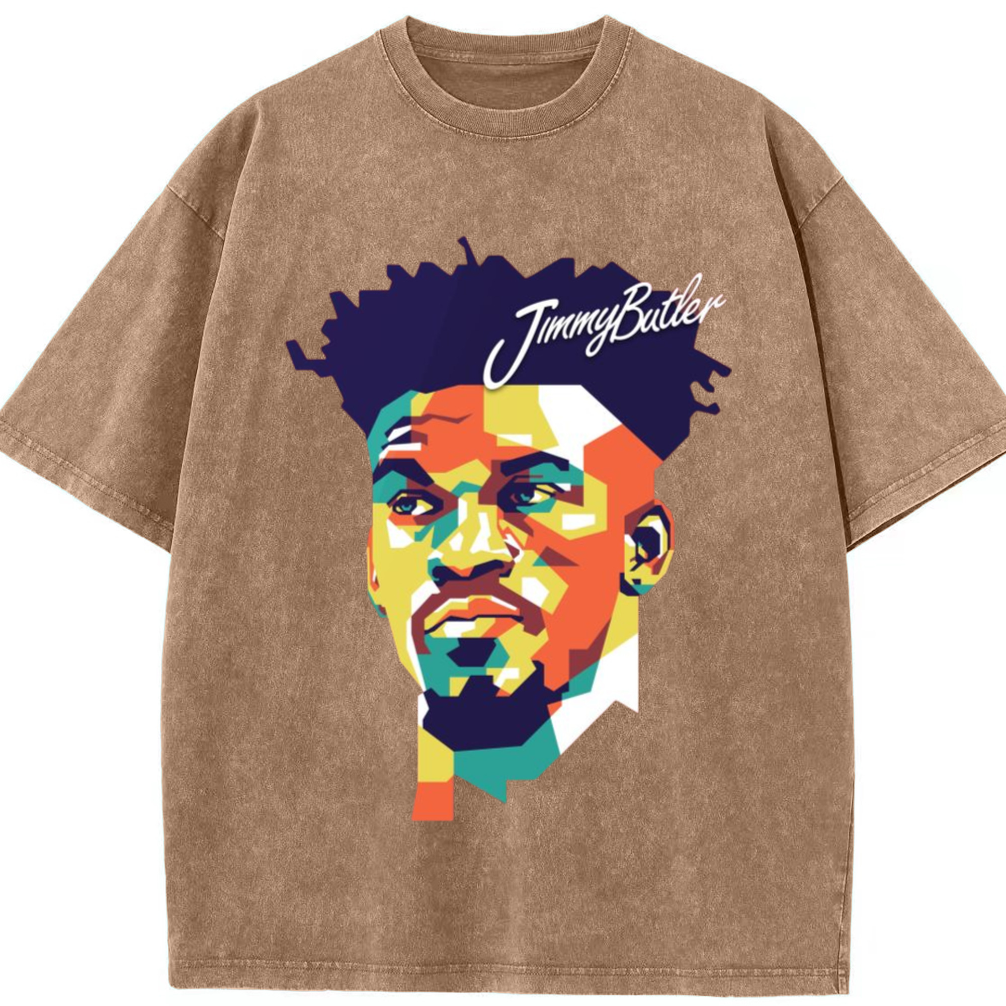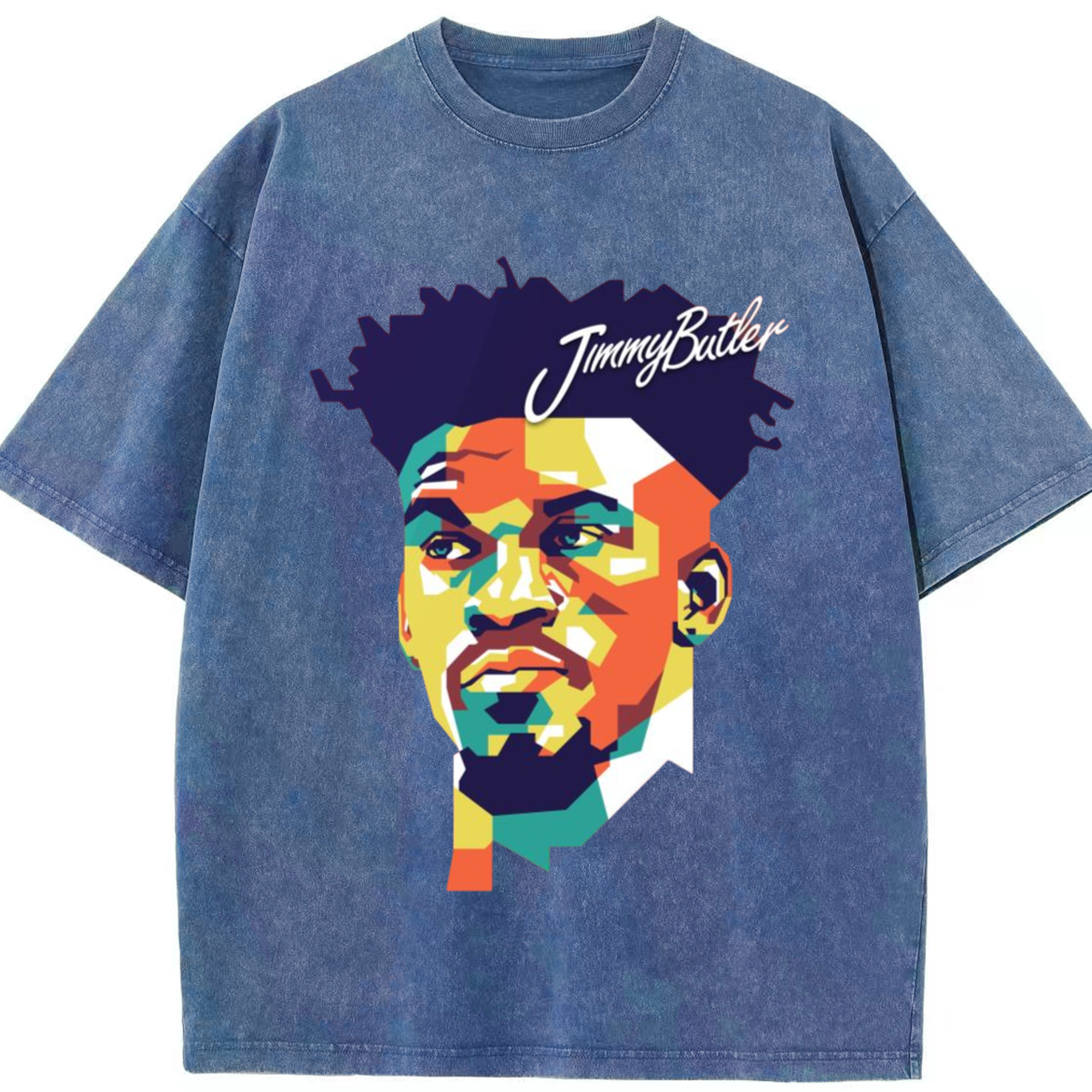 Jimmy butler Painted head portrait T‑Shirt - Washed Vintage Look 230g Cotton Oversized T-Shirt With Front Heat Transfer Print – Soft, Lightweight, Stylish Fit – Comfortable Casual Wear For Sports & Everyday Use