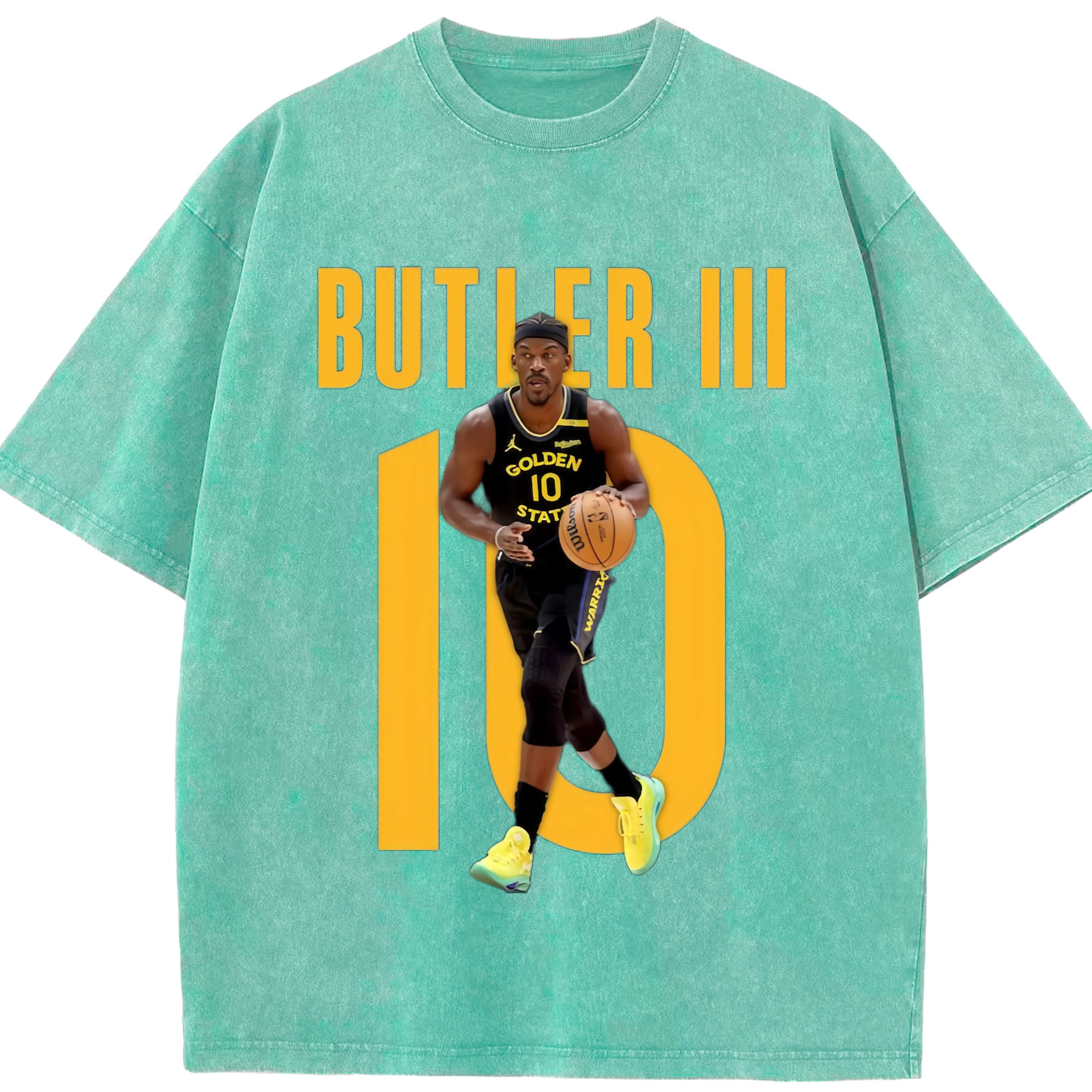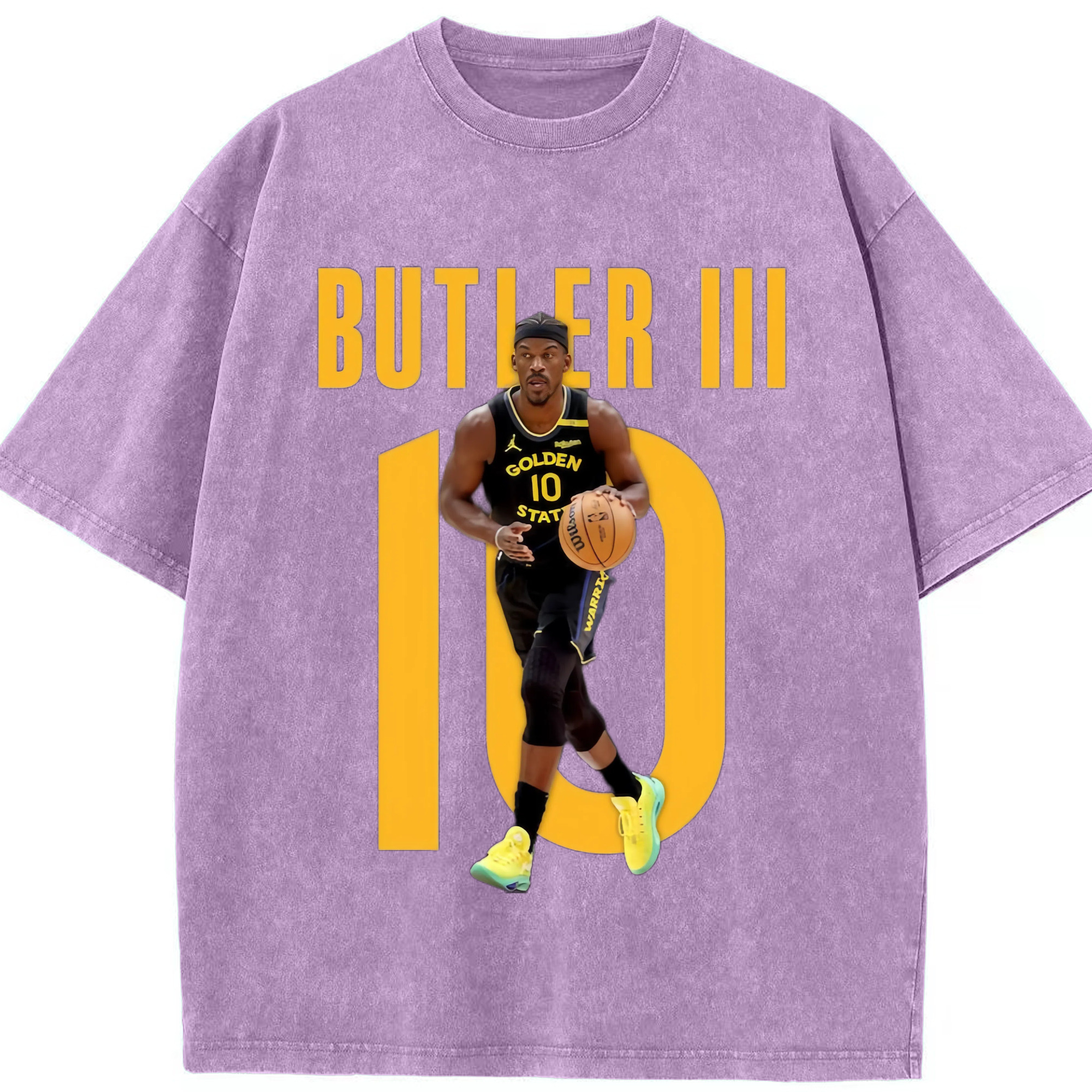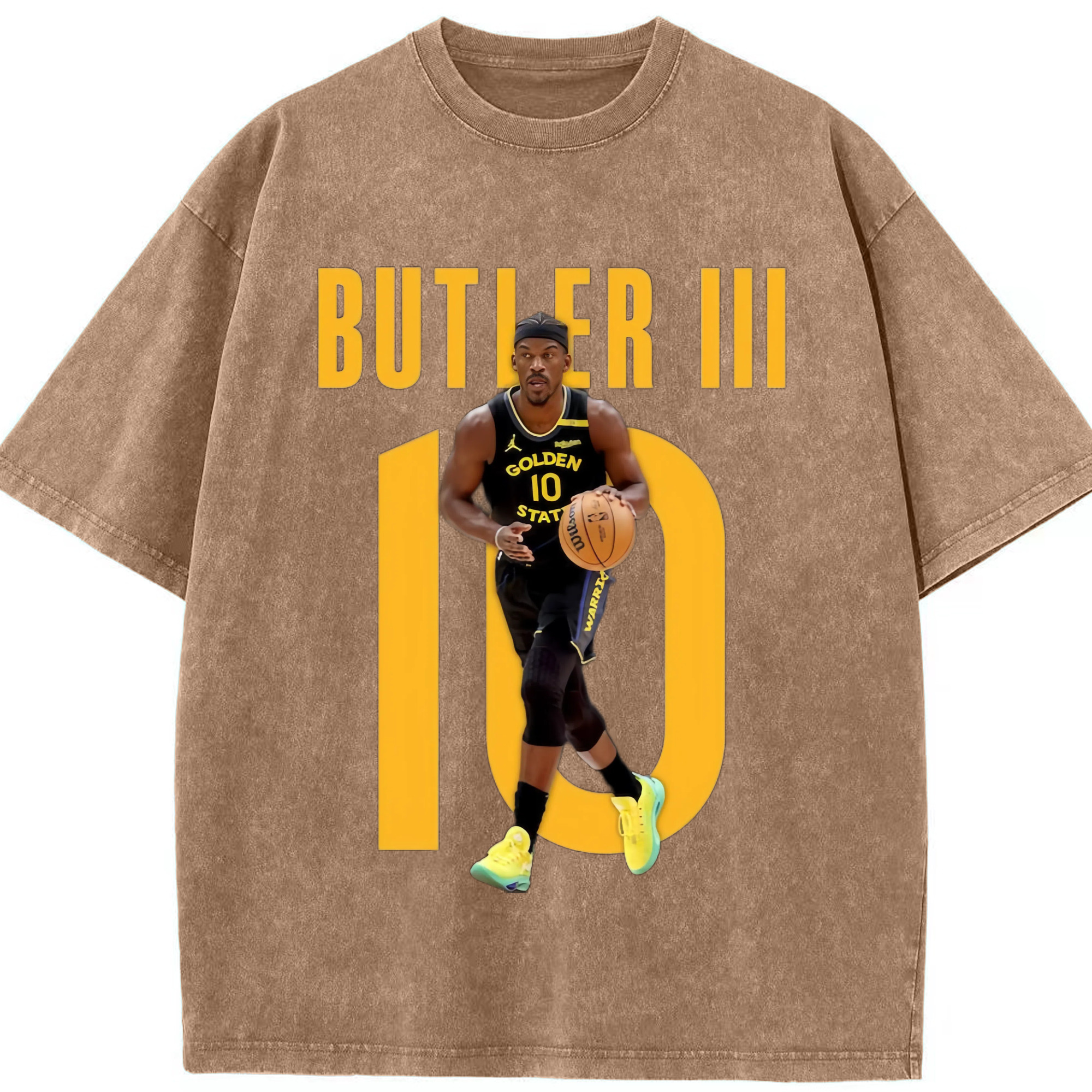 Jimmy butler warriors #10 T-shirt - Washed Vintage Look 230g Cotton Oversized T-Shirt With Front Heat Transfer Print – Soft, Lightweight, Stylish Fit – Comfortable Casual Wear For Sports & Everyday Use