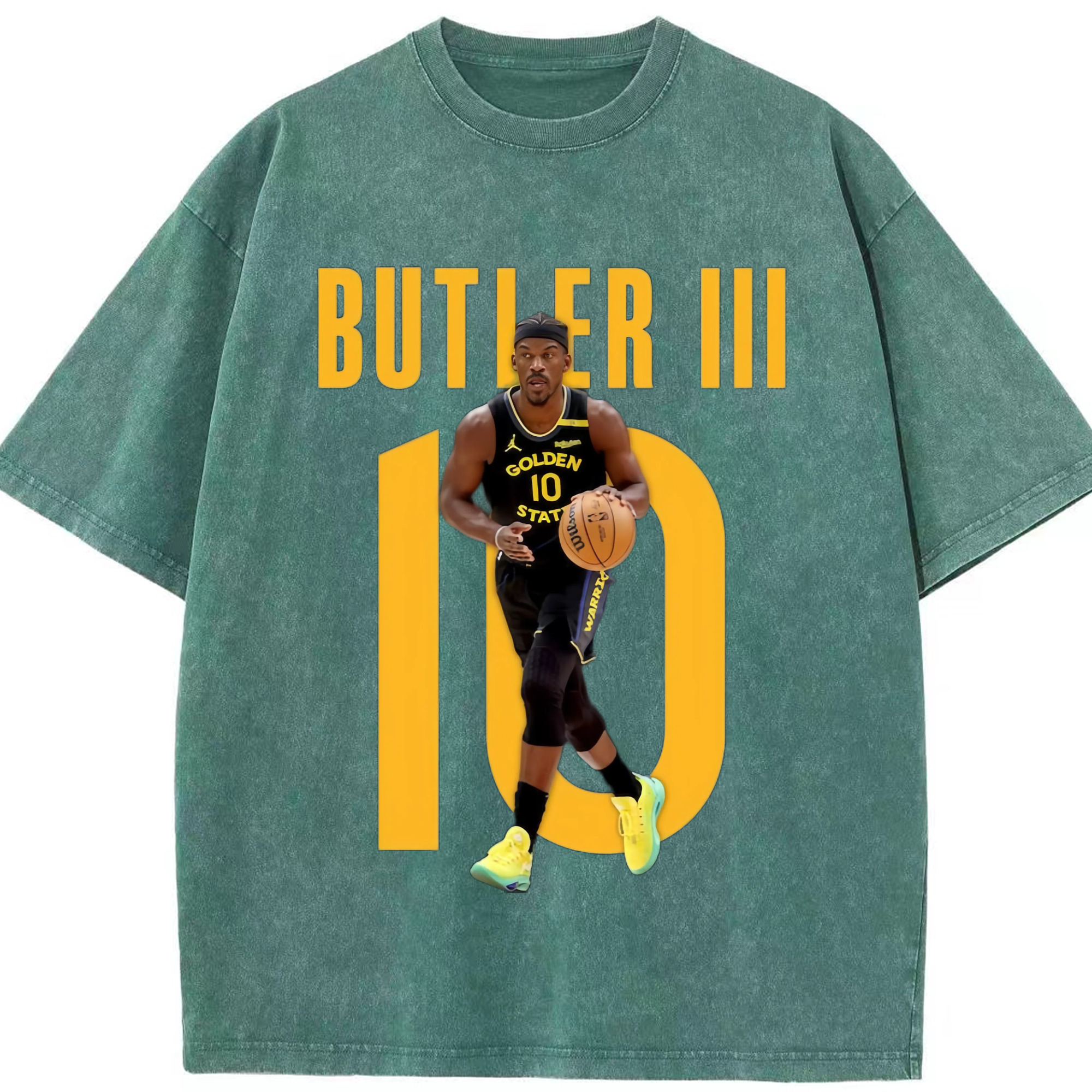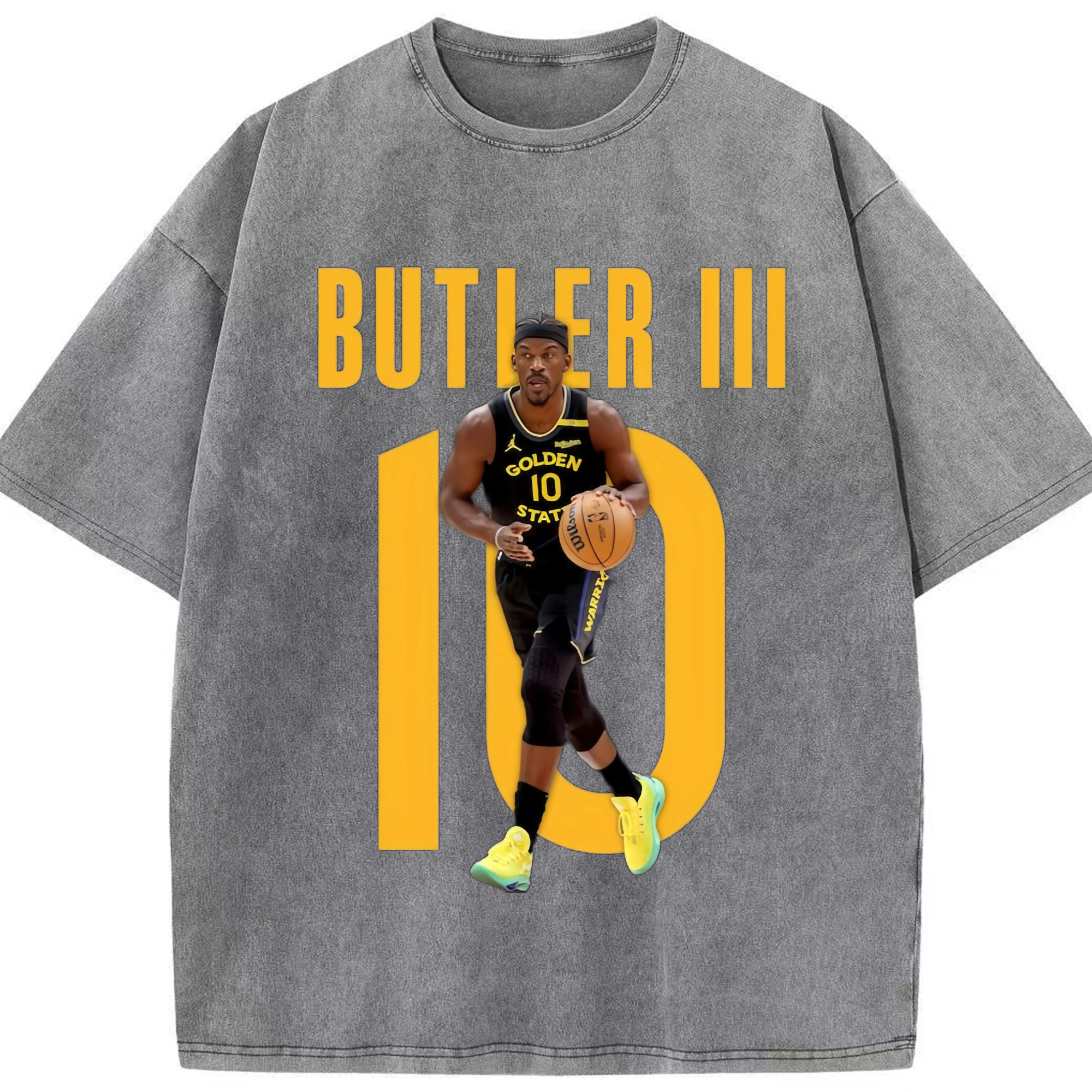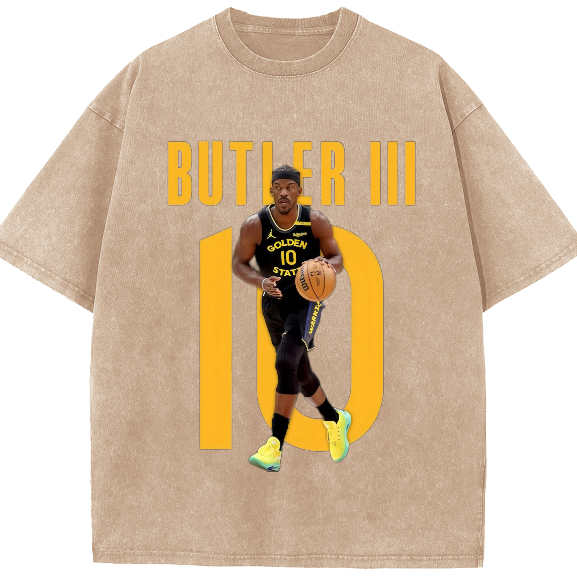 Jimmy butler warriors #10 T-shirt - Washed Vintage Look 230g Cotton Oversized T-Shirt With Front Heat Transfer Print – Soft, Lightweight, Stylish Fit – Comfortable Casual Wear For Sports & Everyday Use