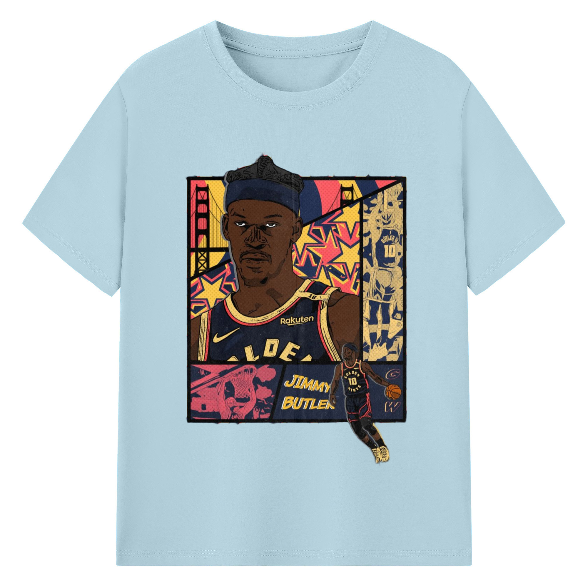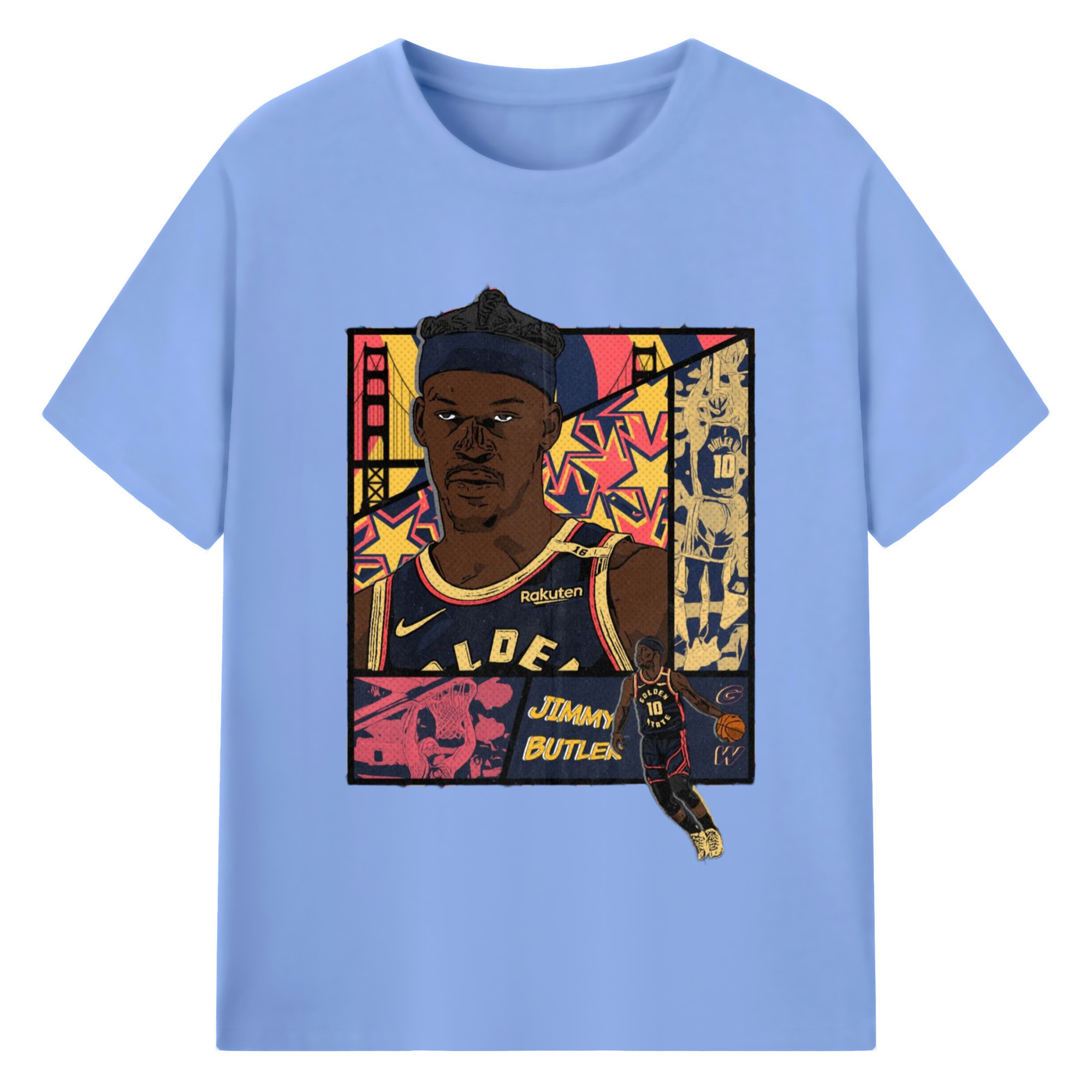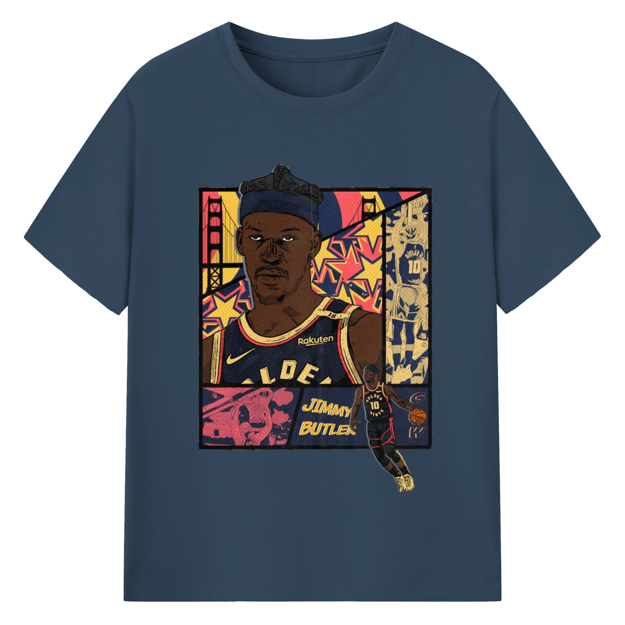 Jimmy butler warriors Cartoon style graphic T‑Shirt - 180g Cotton T-Shirt With Front Heat Transfer Print – Soft, Lightweight, Fitted Design – Comfortable Casual Wear For Sports & Everyday Use