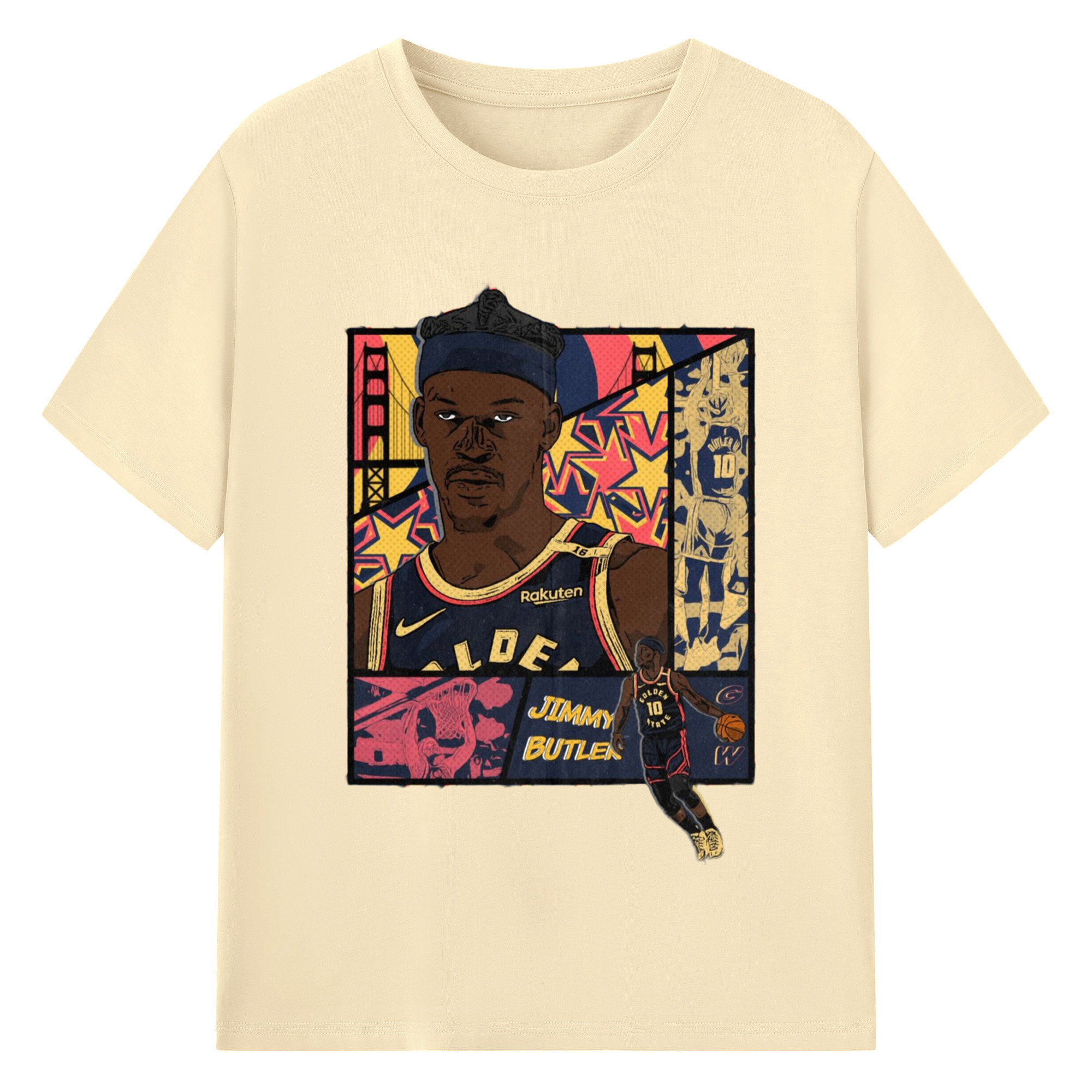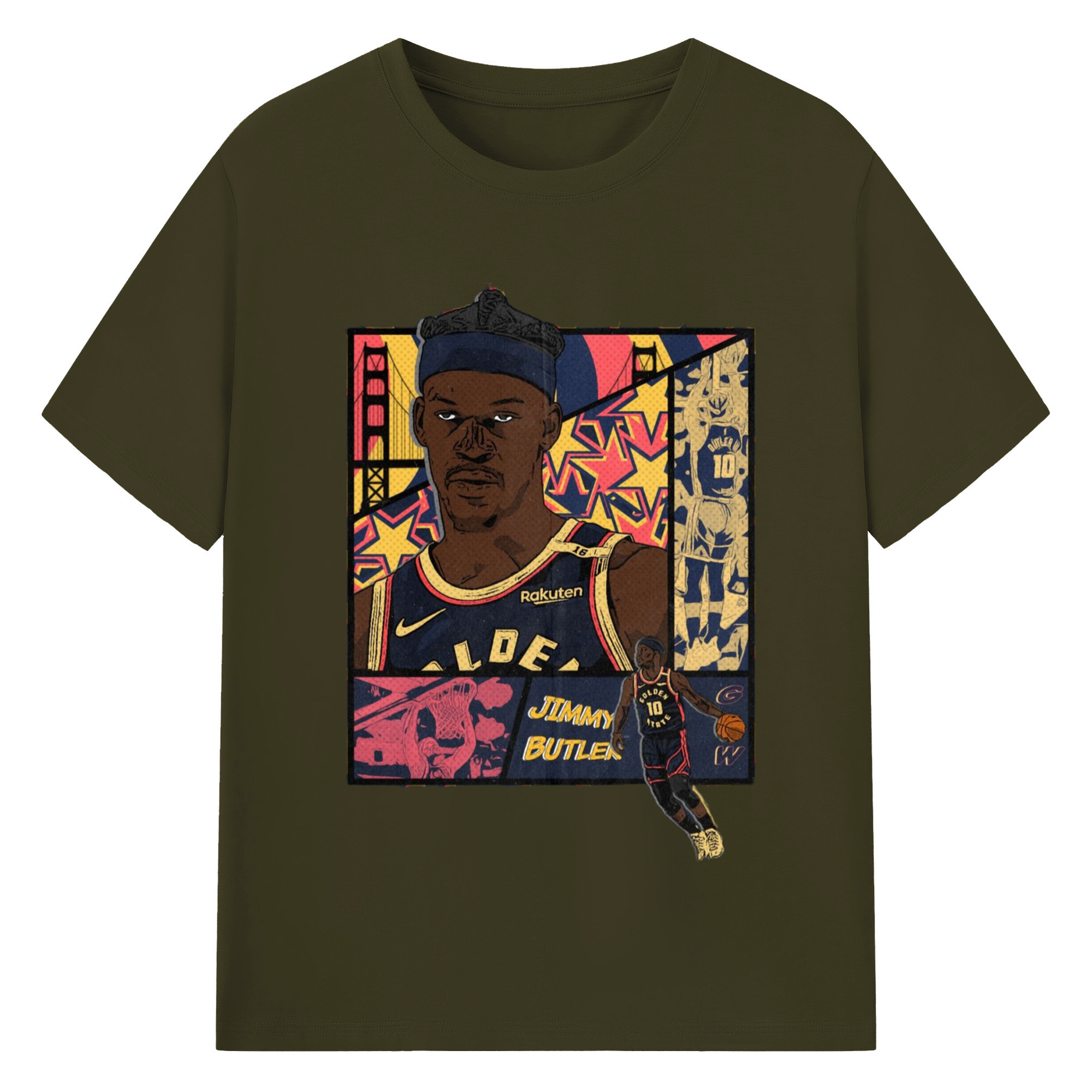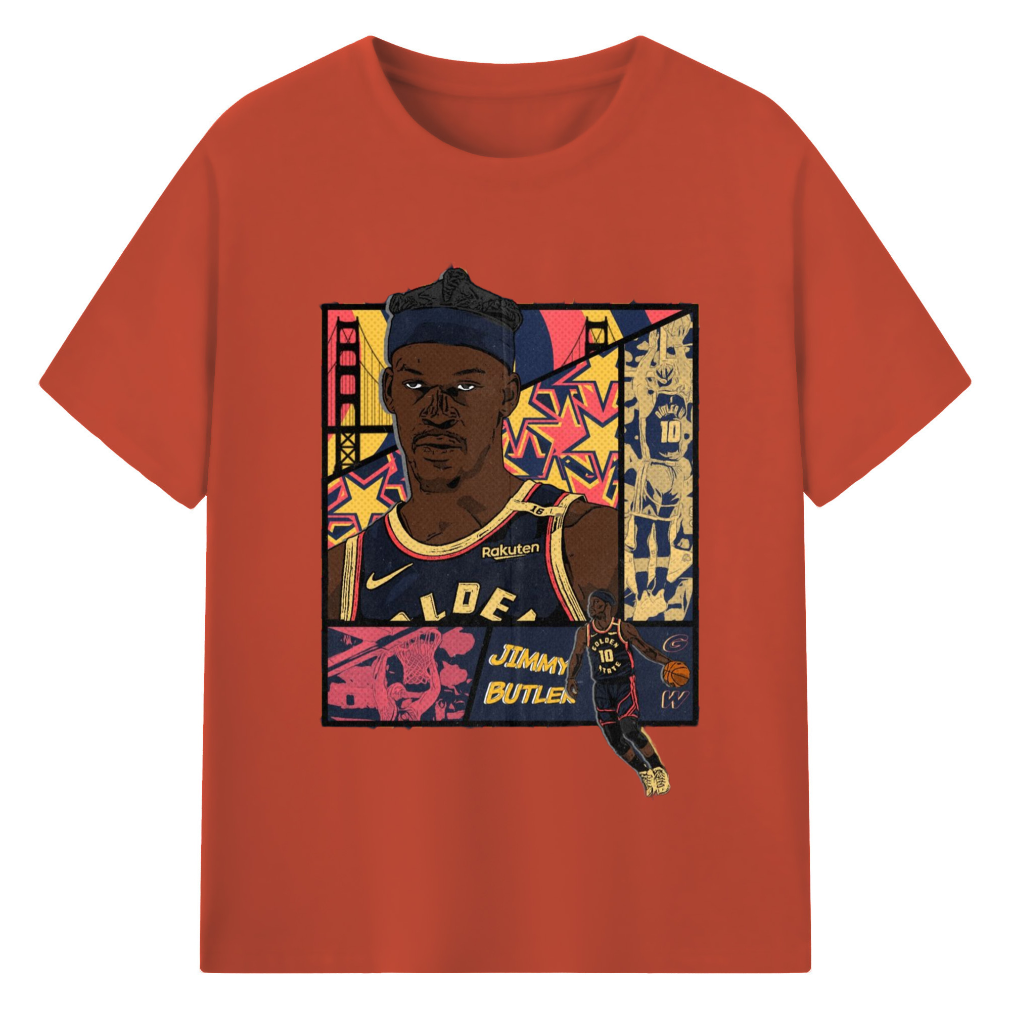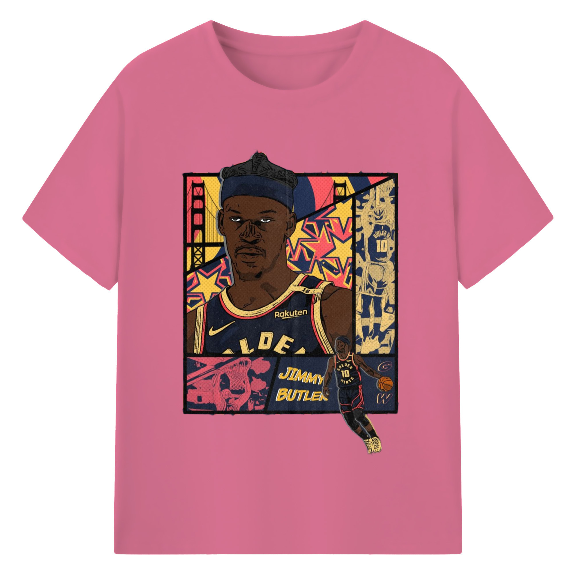 Jimmy butler warriors Cartoon style graphic T‑Shirt - 180g Cotton T-Shirt With Front Heat Transfer Print – Soft, Lightweight, Fitted Design – Comfortable Casual Wear For Sports & Everyday Use