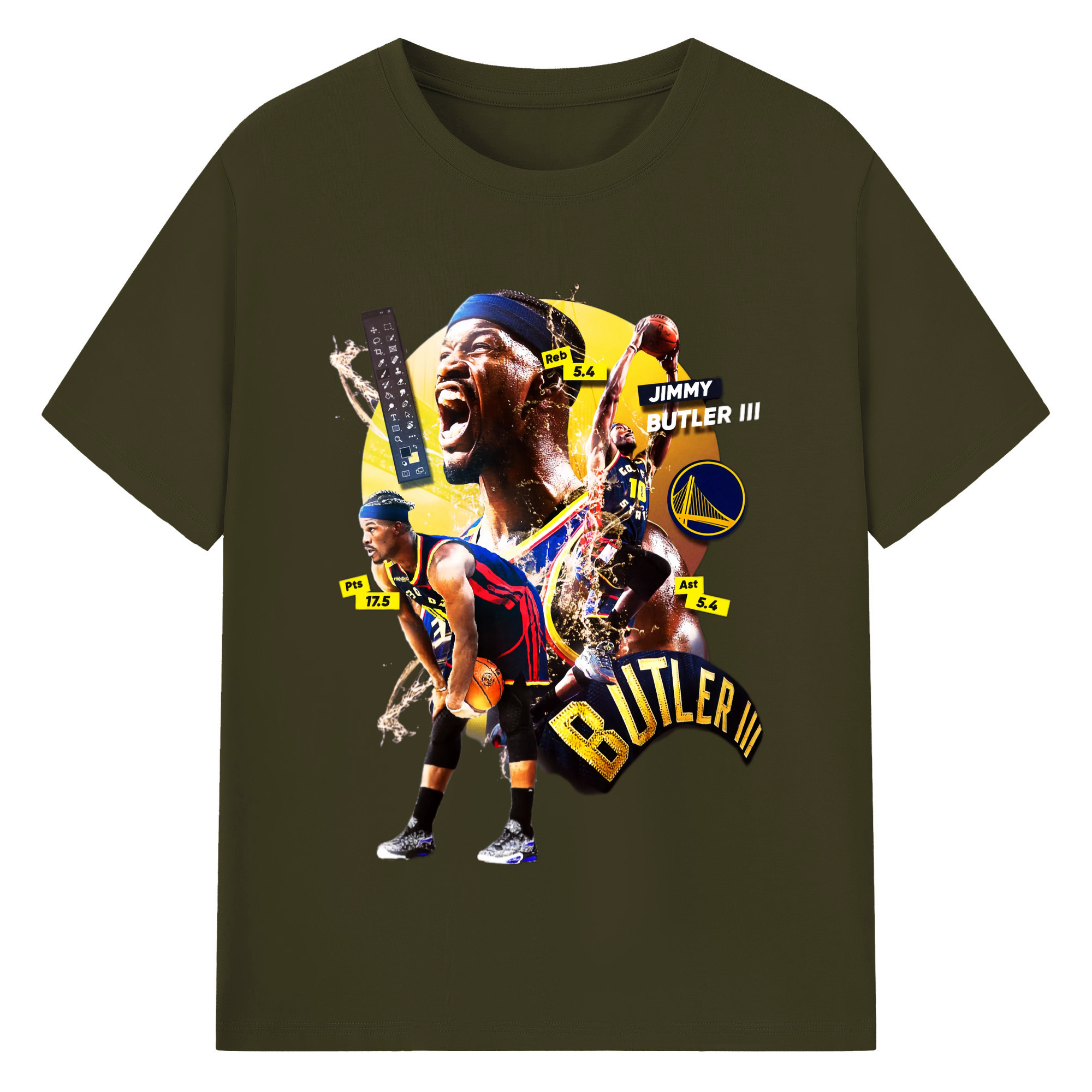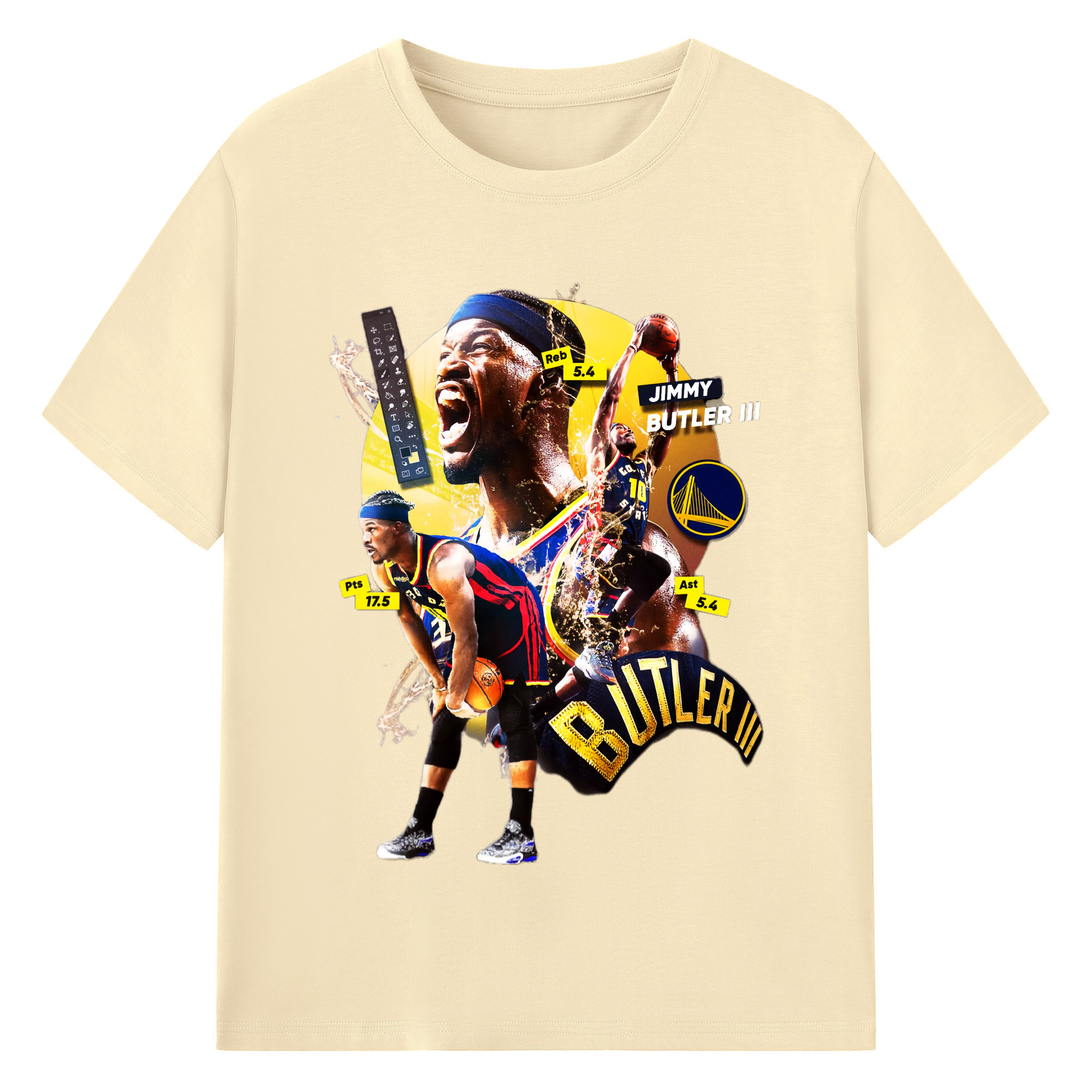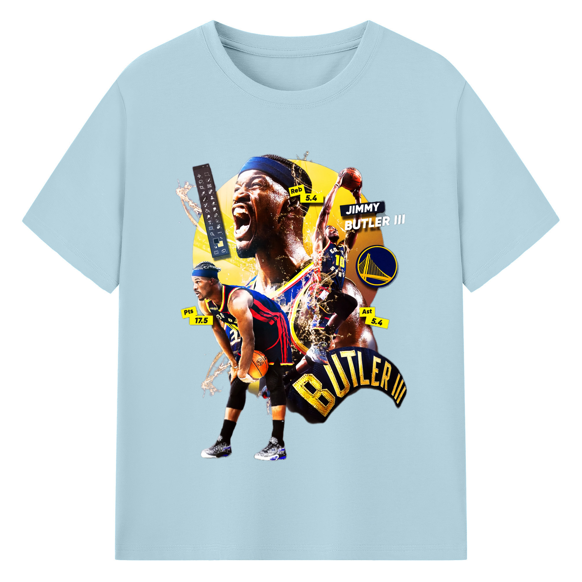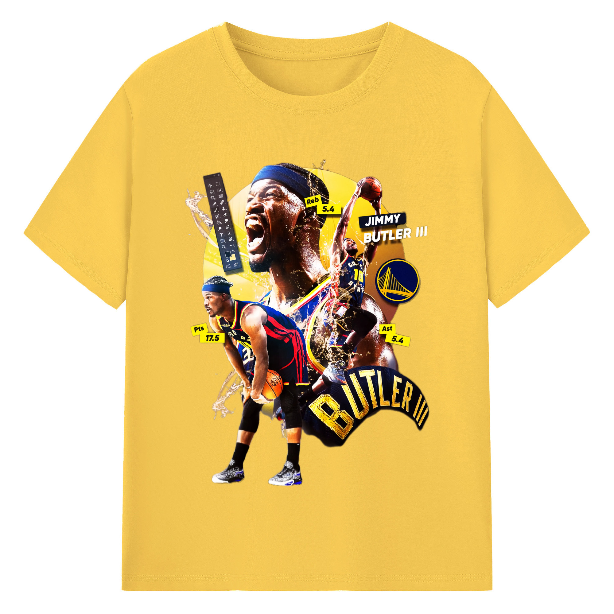 Jimmy Butler warriors Collage graphic tee - 180g Cotton T-Shirt With Front Heat Transfer Print – Soft, Lightweight, Fitted Design – Comfortable Casual Wear For Sports & Everyday Use