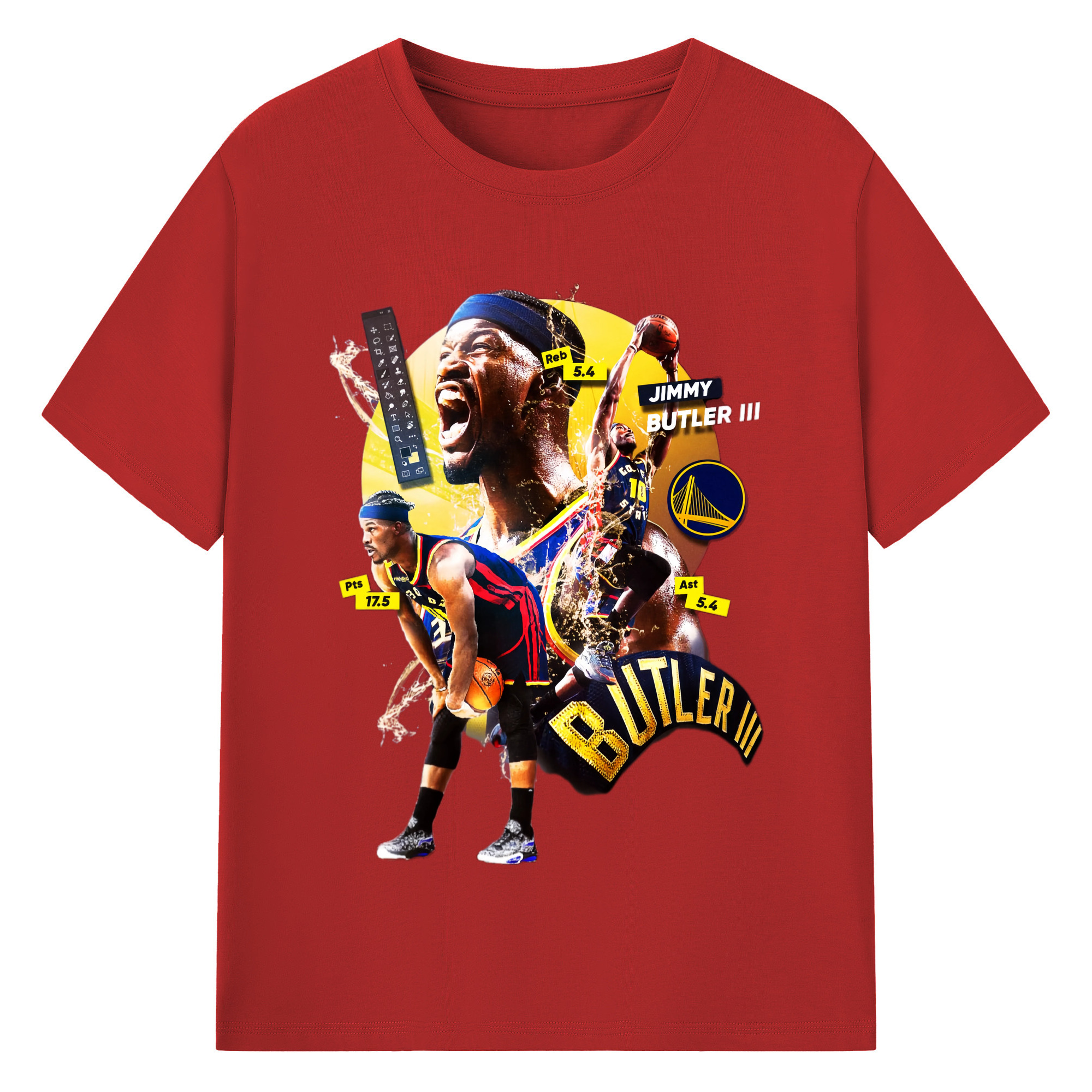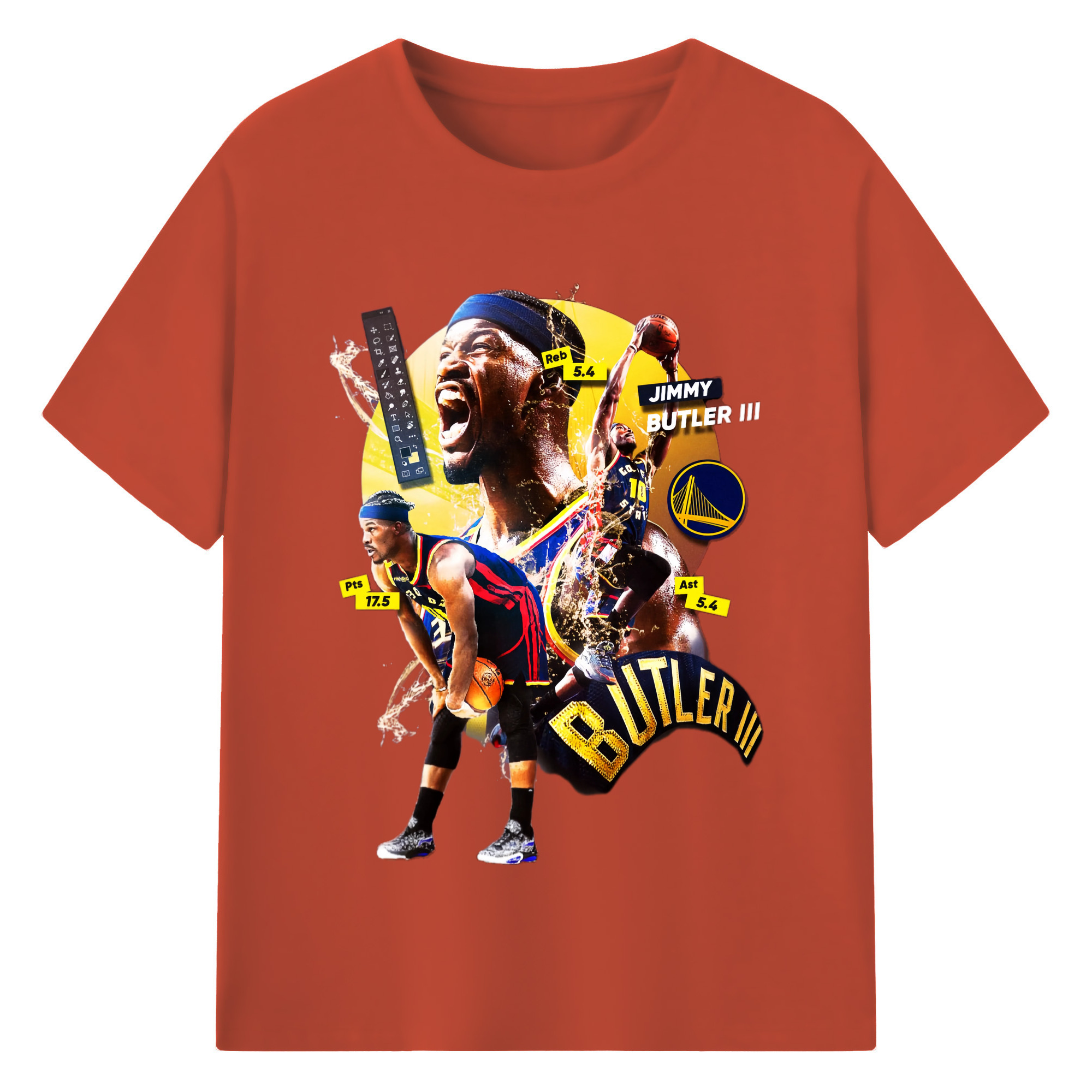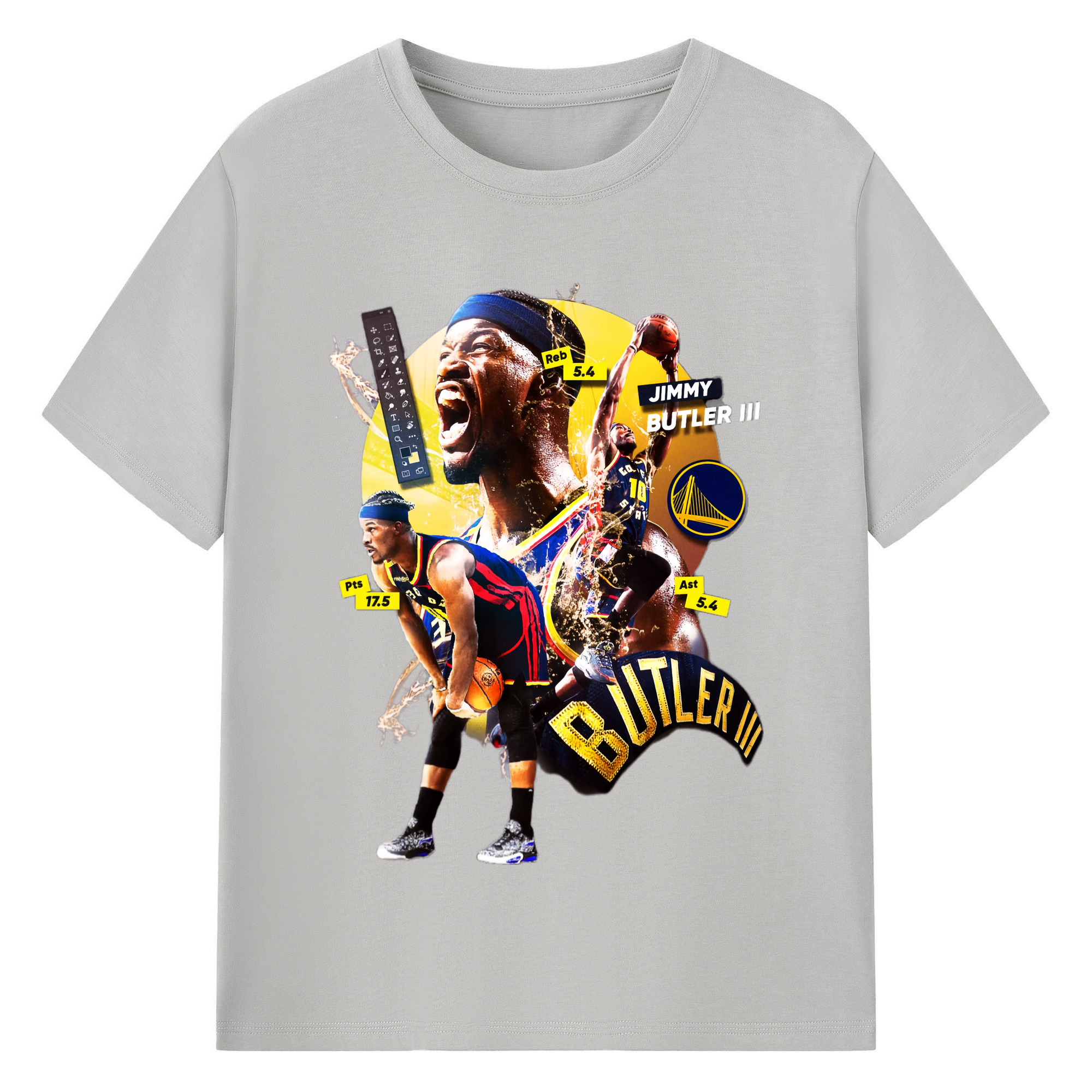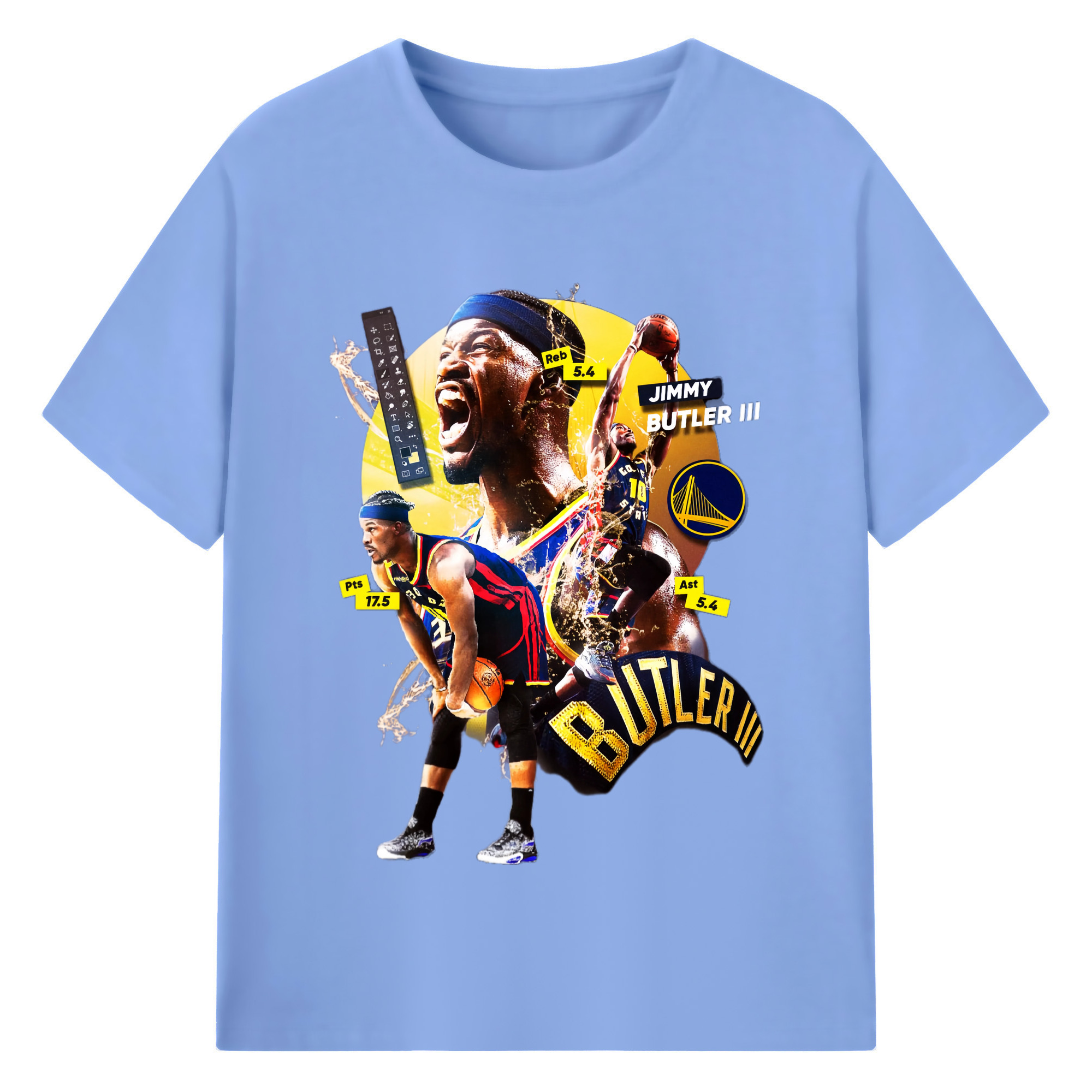 Jimmy Butler warriors Collage graphic tee - 180g Cotton T-Shirt With Front Heat Transfer Print – Soft, Lightweight, Fitted Design – Comfortable Casual Wear For Sports & Everyday Use