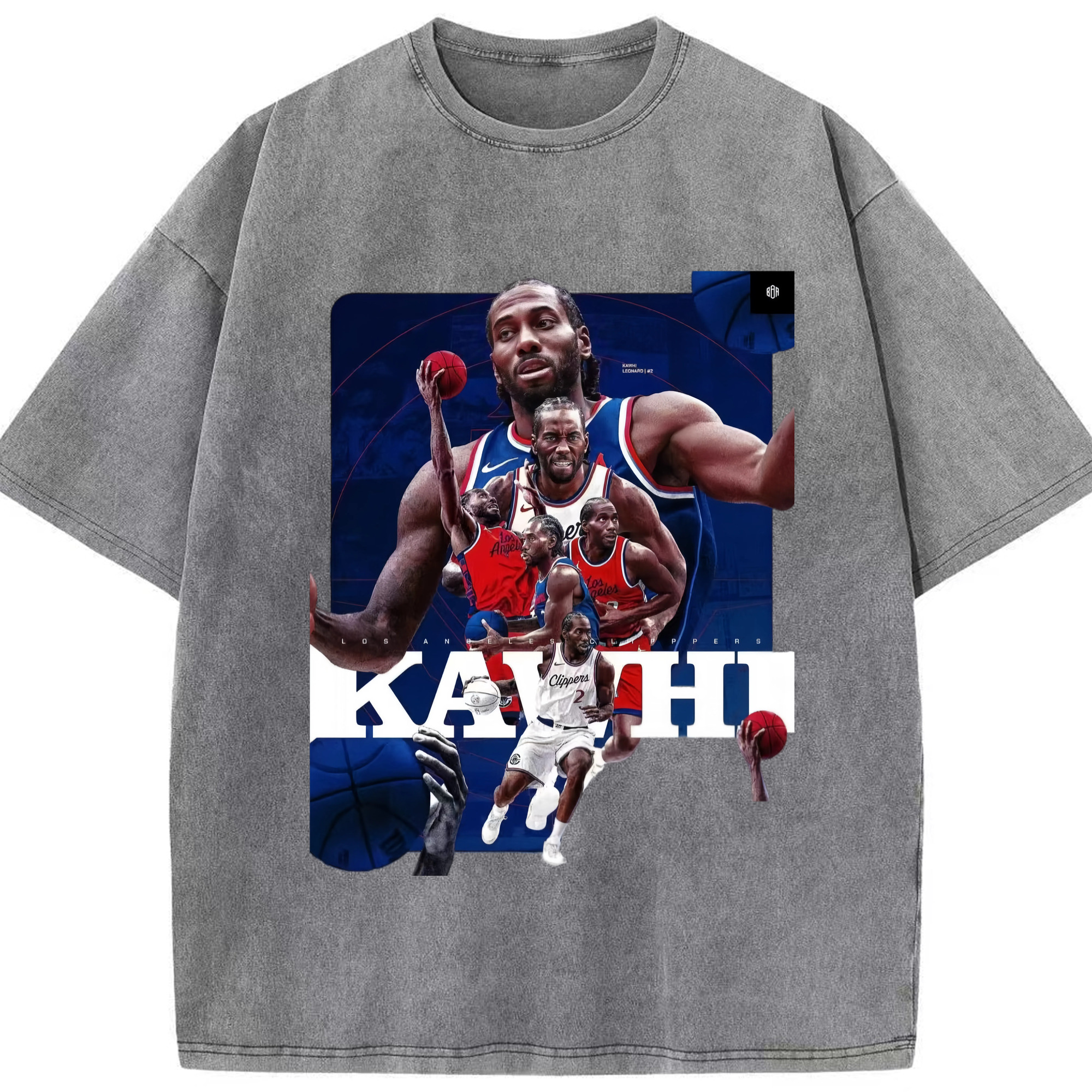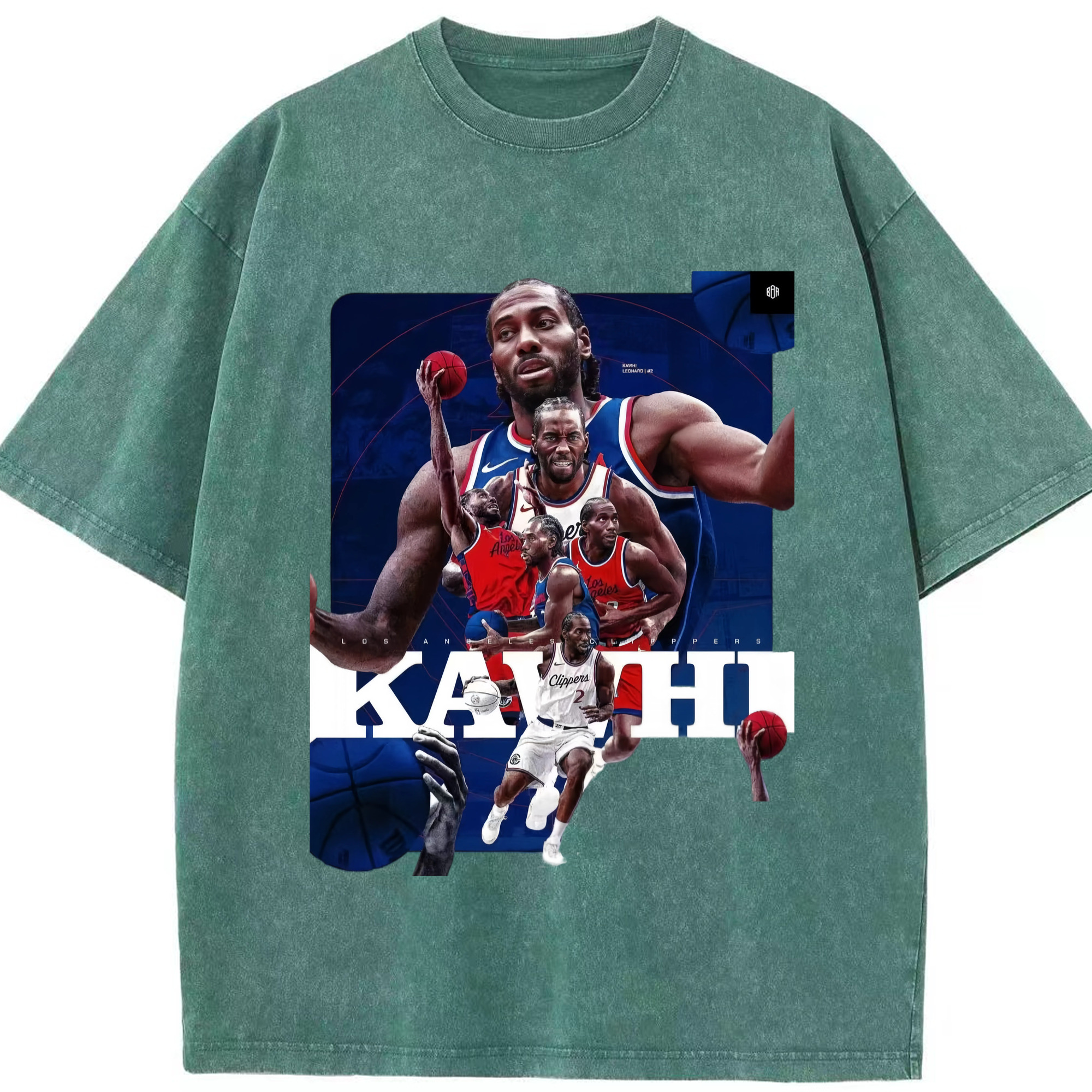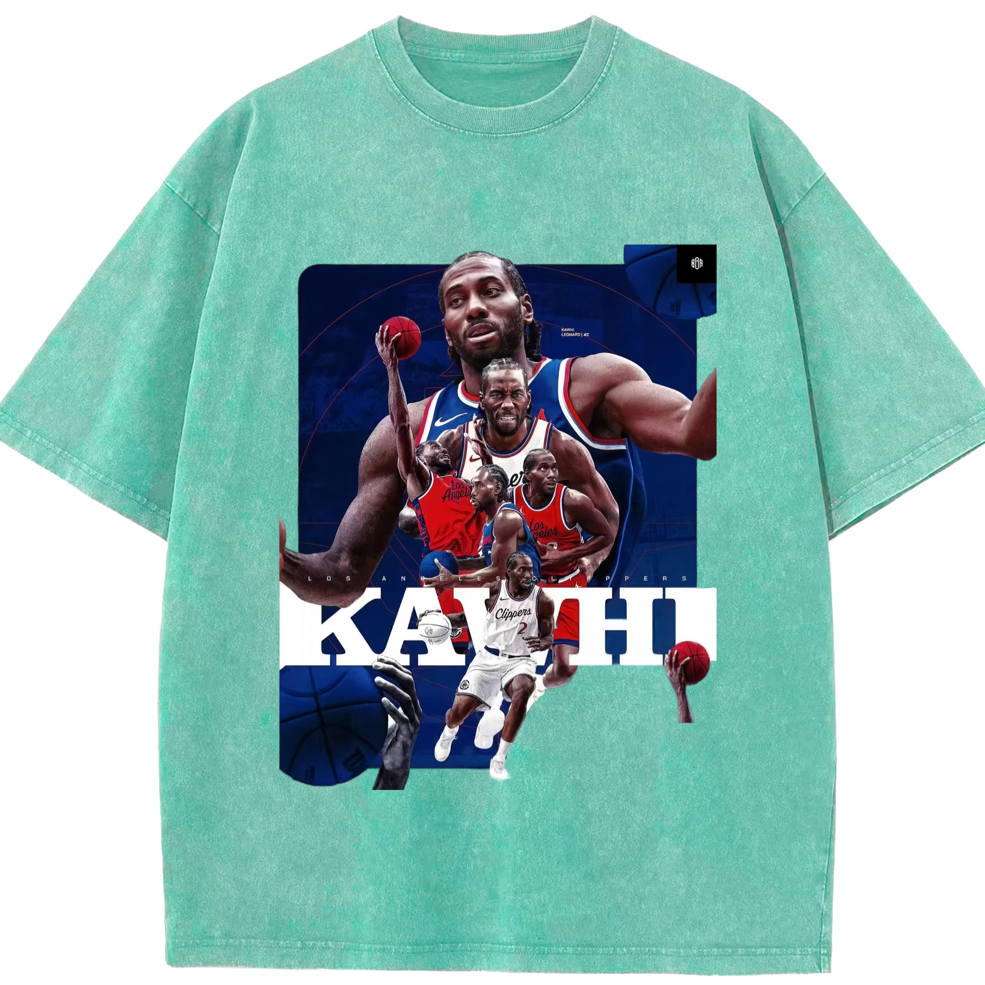 Kawhi Leonard Clippers basketball skillsT‑Shirt - Washed Vintage Look 230g Cotton Oversized T-Shirt With Front Heat Transfer Print – Soft, Lightweight, Stylish Fit – Comfortable Casual Wear For Sports & Everyday Use