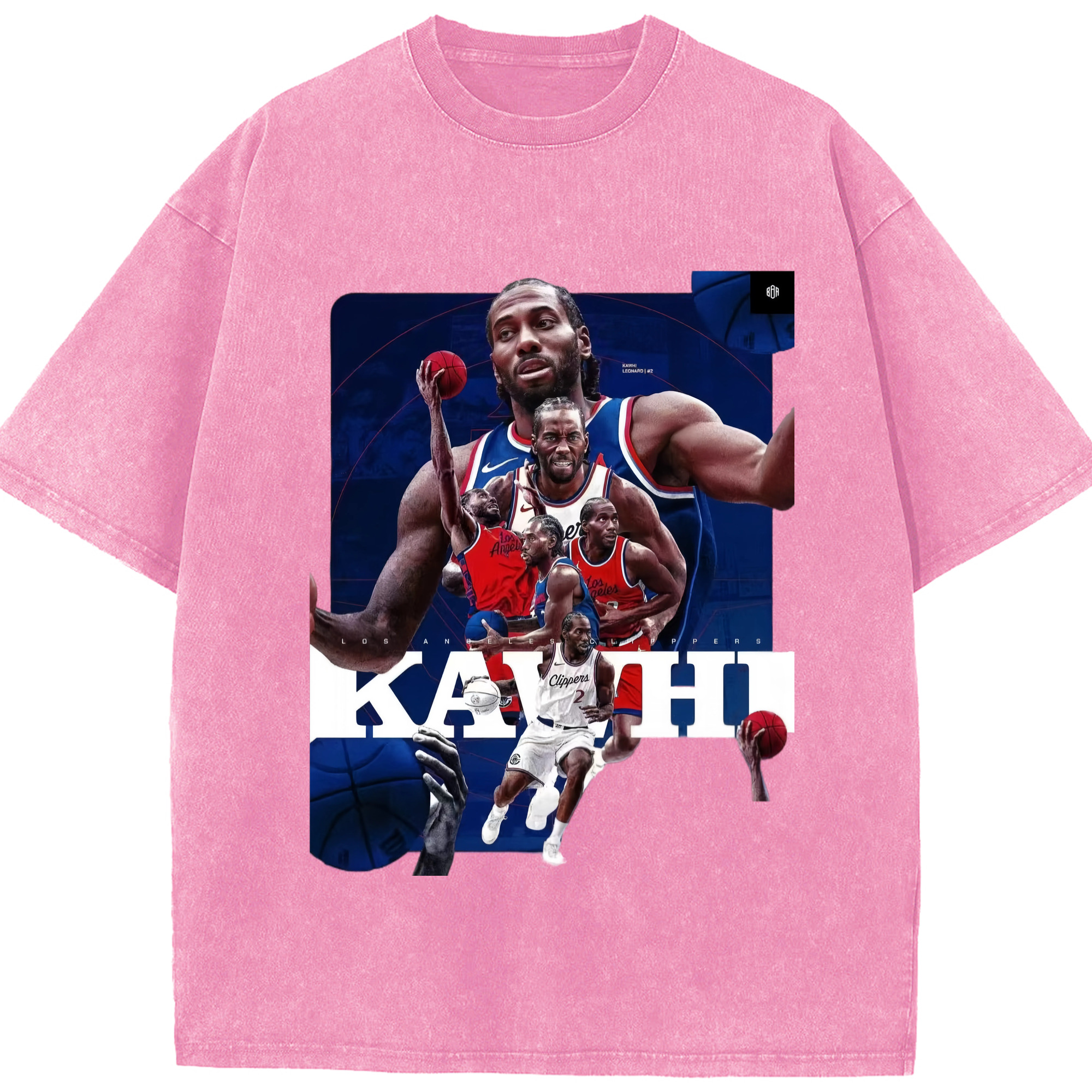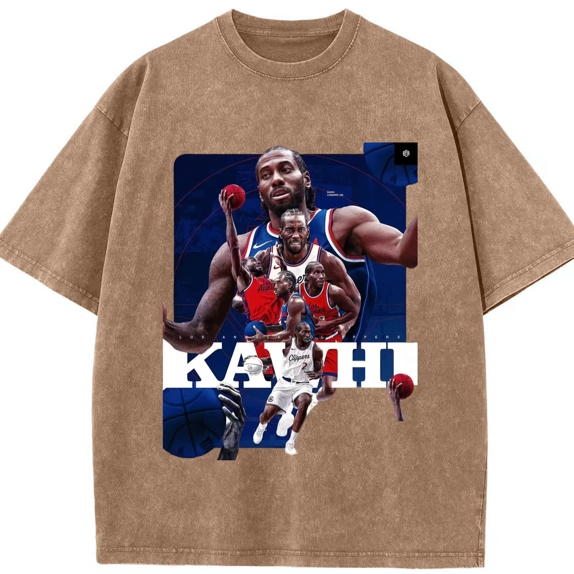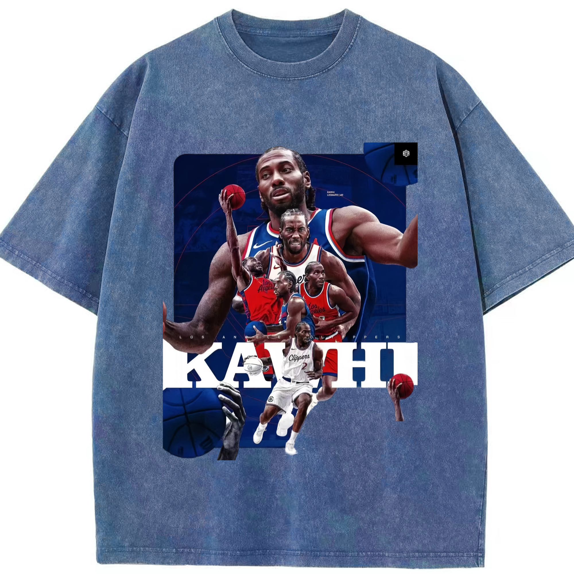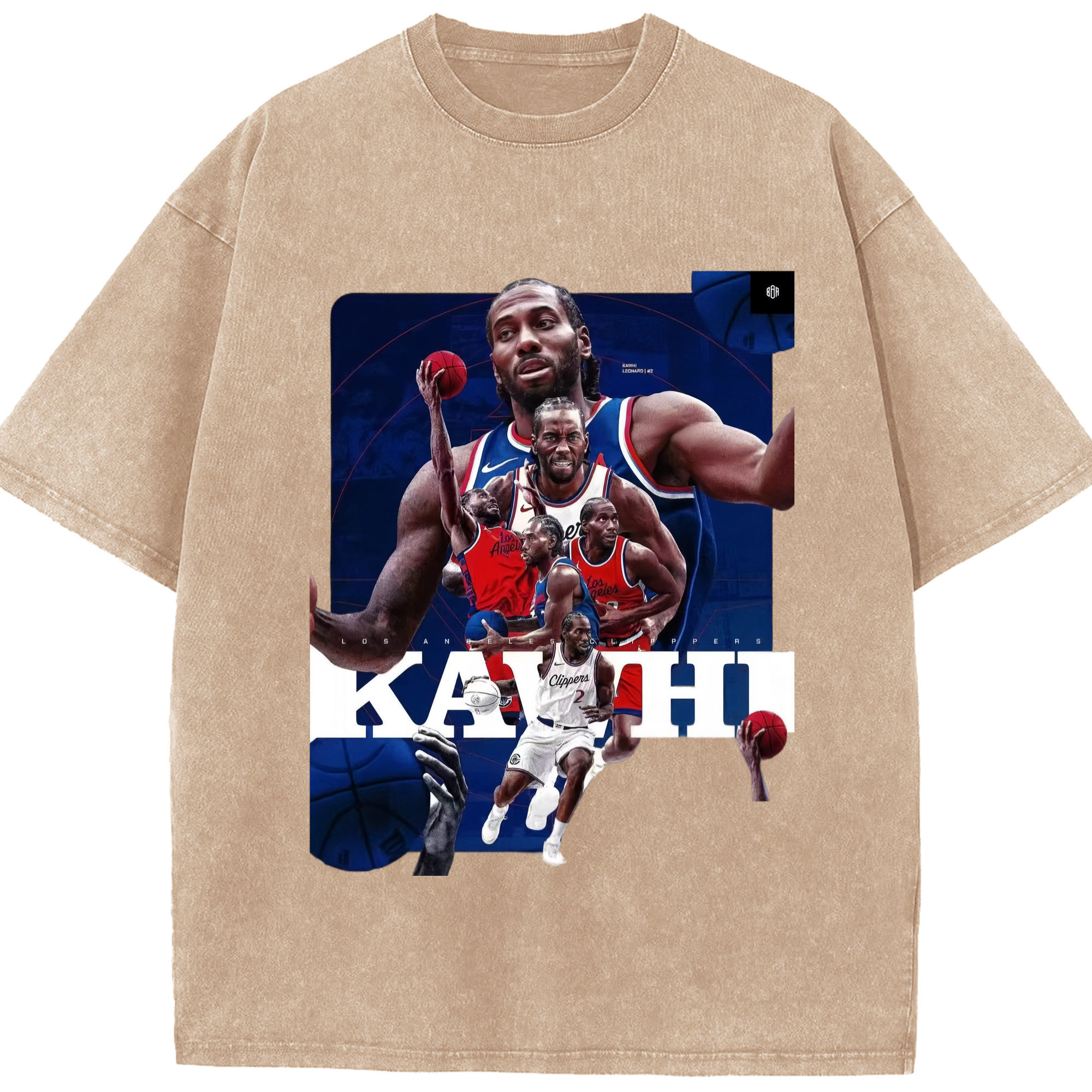 Kawhi Leonard Clippers basketball skillsT‑Shirt - Washed Vintage Look 230g Cotton Oversized T-Shirt With Front Heat Transfer Print – Soft, Lightweight, Stylish Fit – Comfortable Casual Wear For Sports & Everyday Use