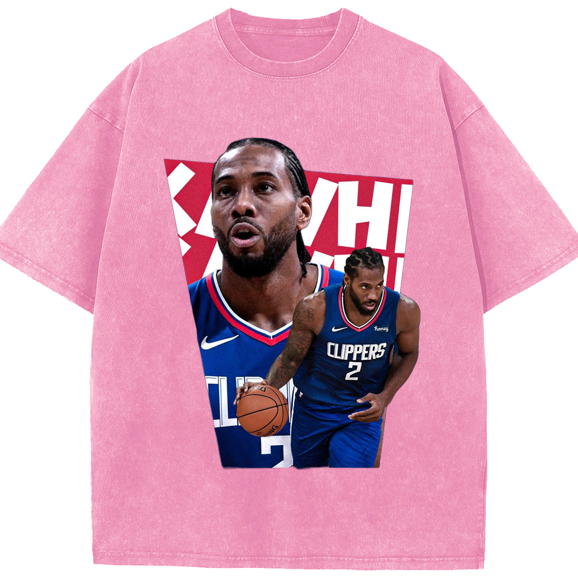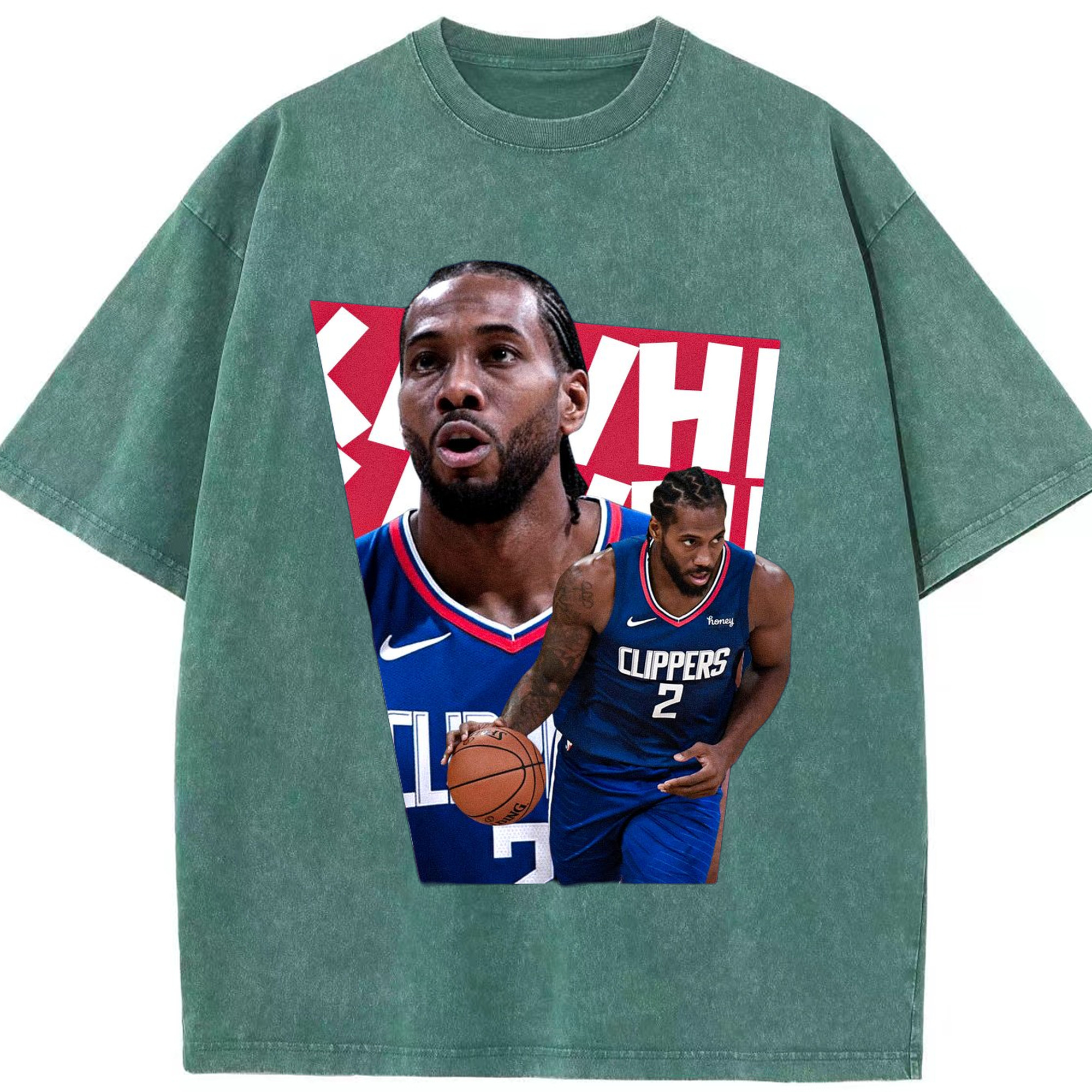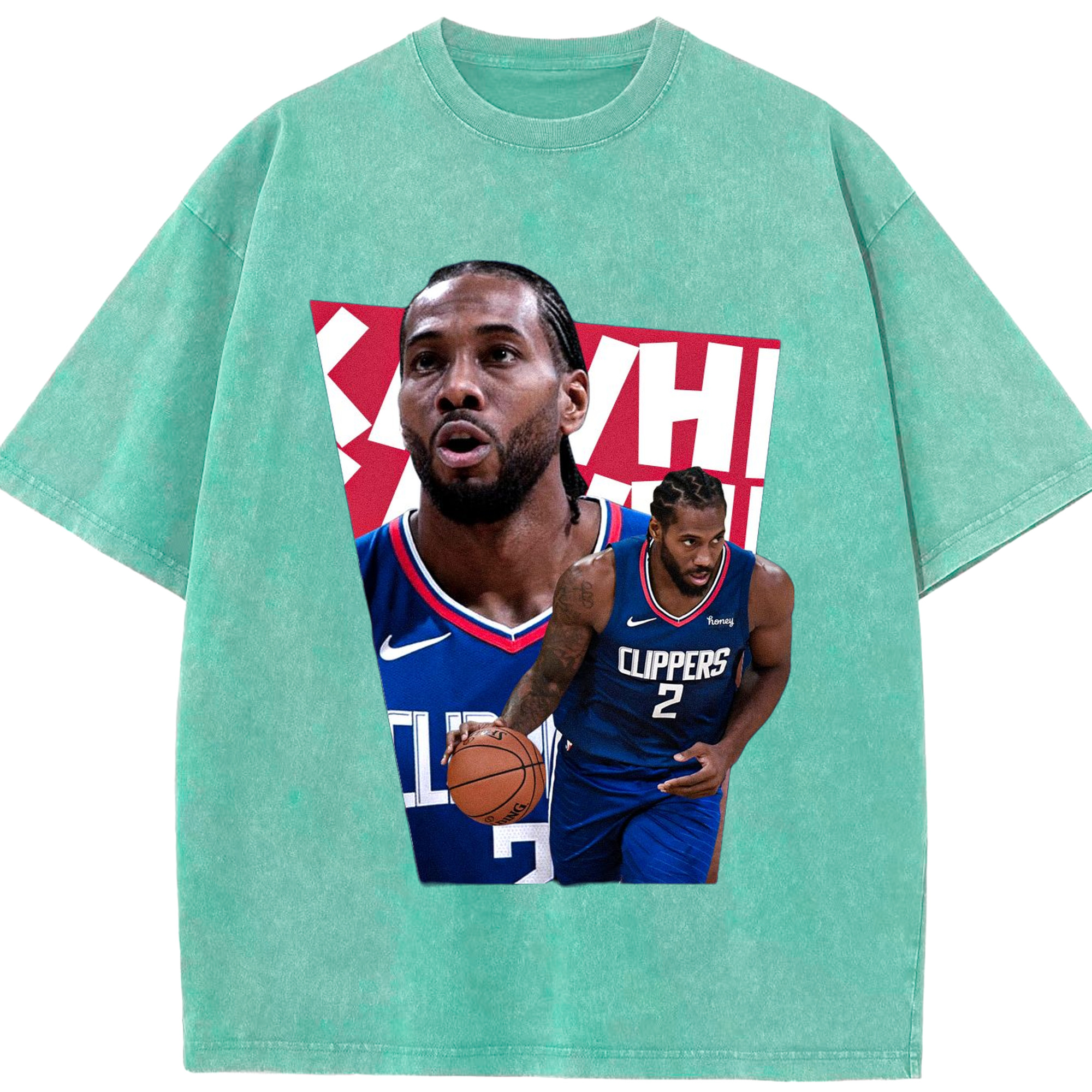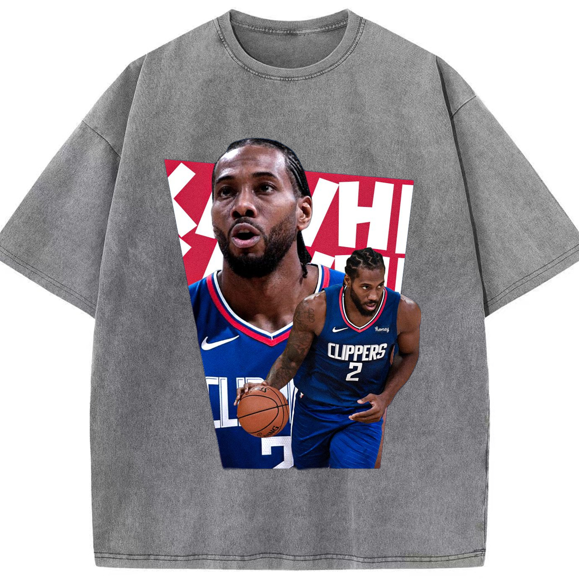 Kawhi Leonard Clippers Graphic T‑Shirt - Washed Vintage Look 230g Cotton Oversized T-Shirt With Front Heat Transfer Print – Soft, Lightweight, Stylish Fit – Comfortable Casual Wear For Sports & Everyday Use