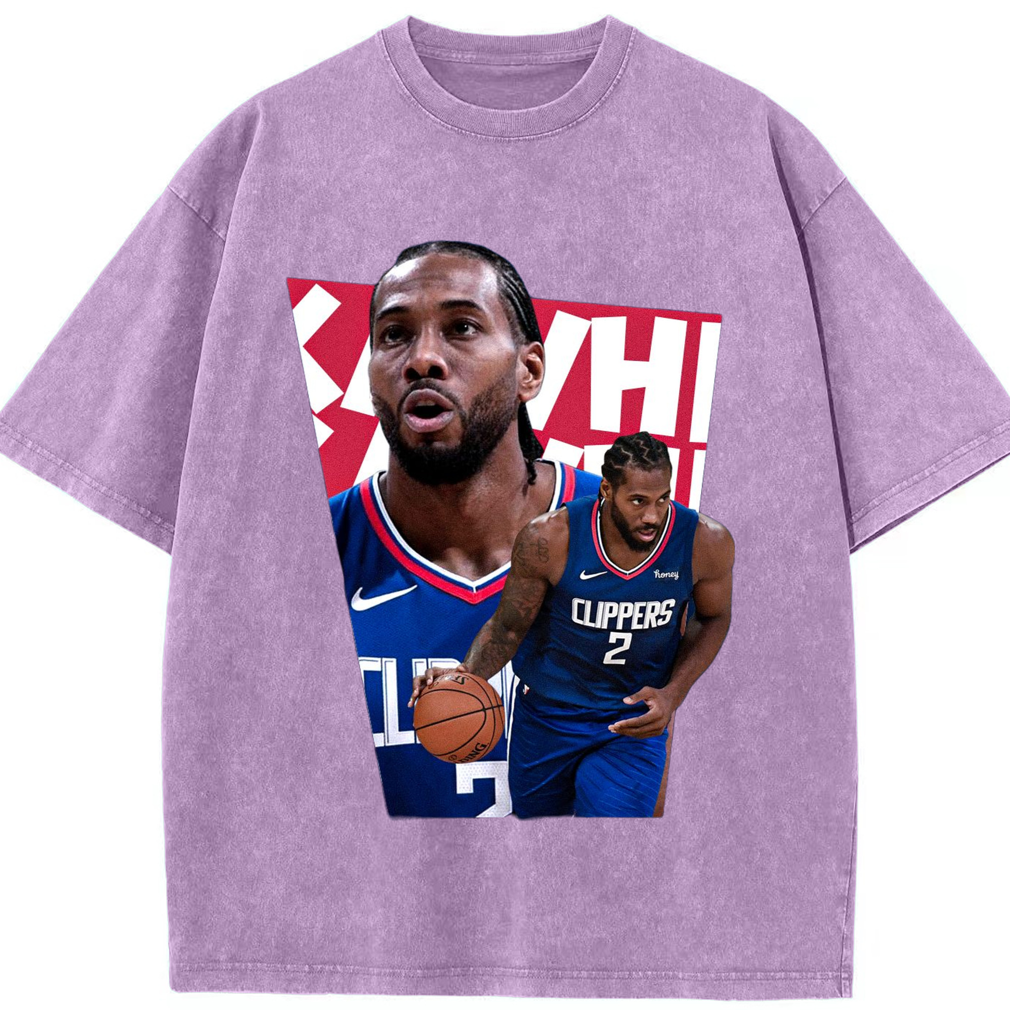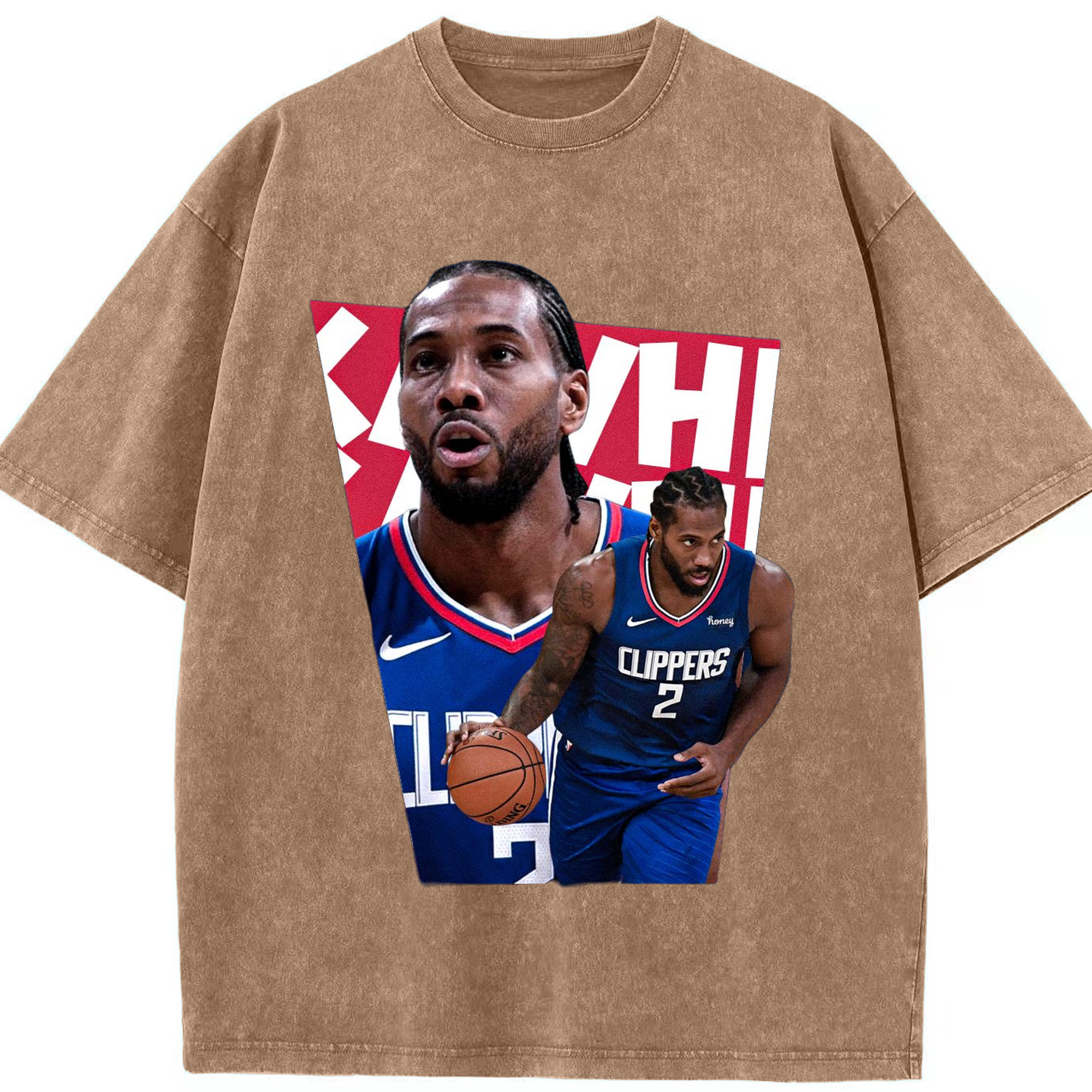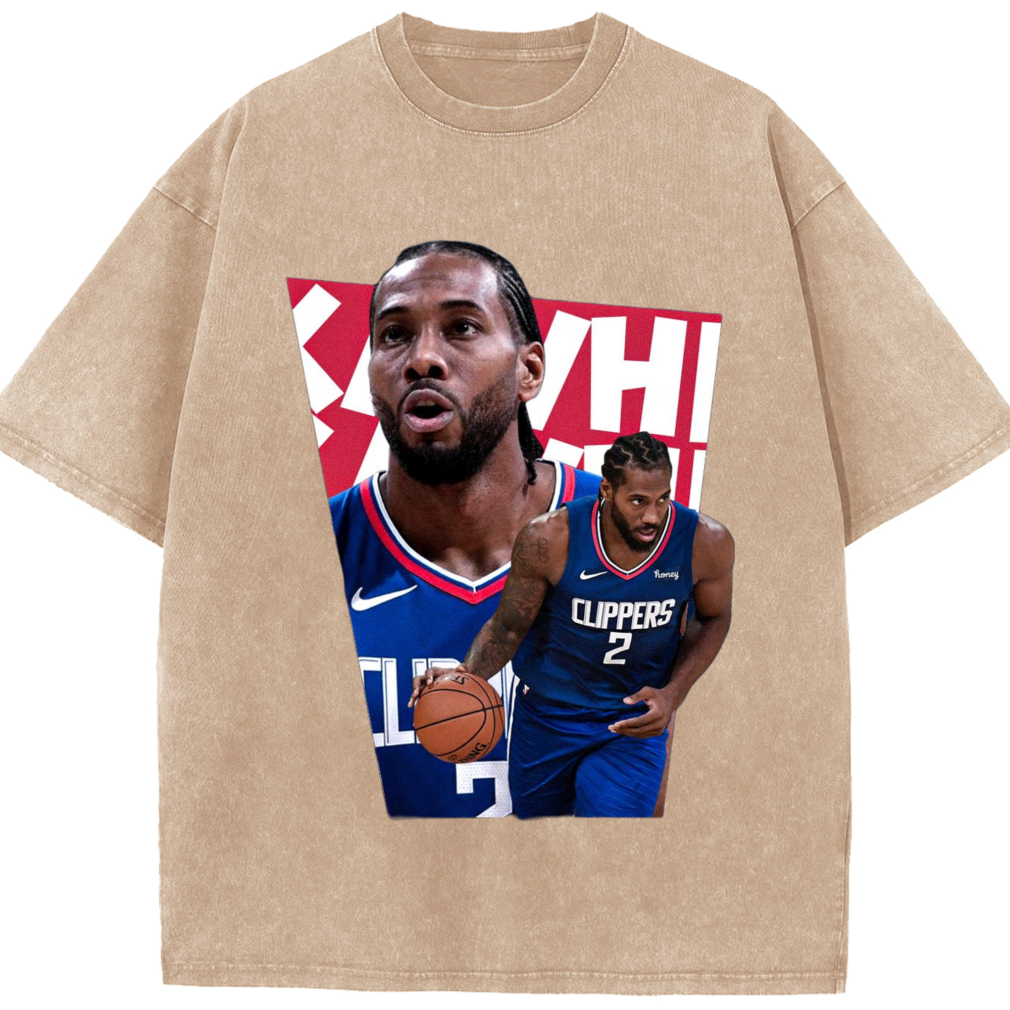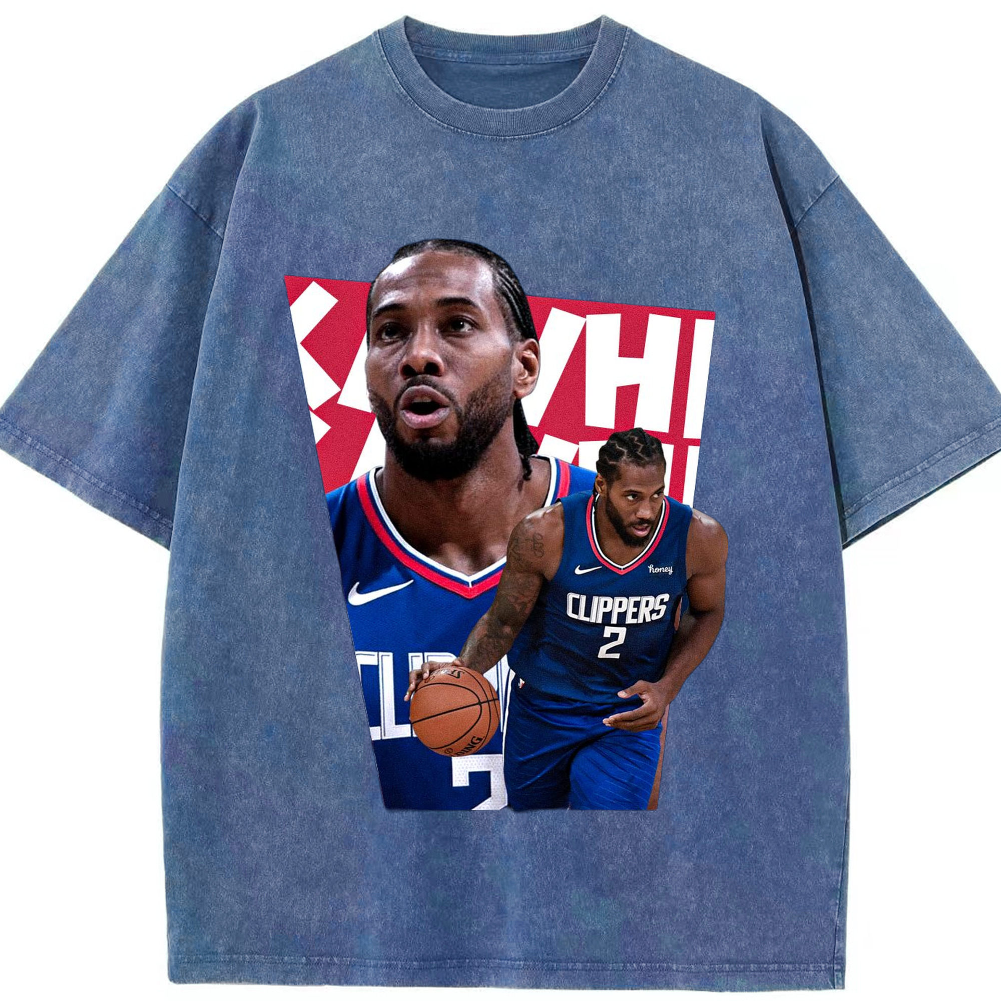 Kawhi Leonard Clippers Graphic T‑Shirt - Washed Vintage Look 230g Cotton Oversized T-Shirt With Front Heat Transfer Print – Soft, Lightweight, Stylish Fit – Comfortable Casual Wear For Sports & Everyday Use