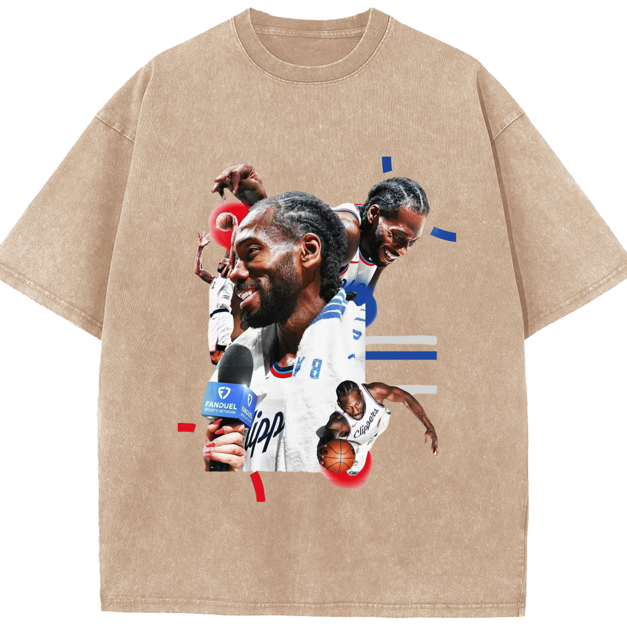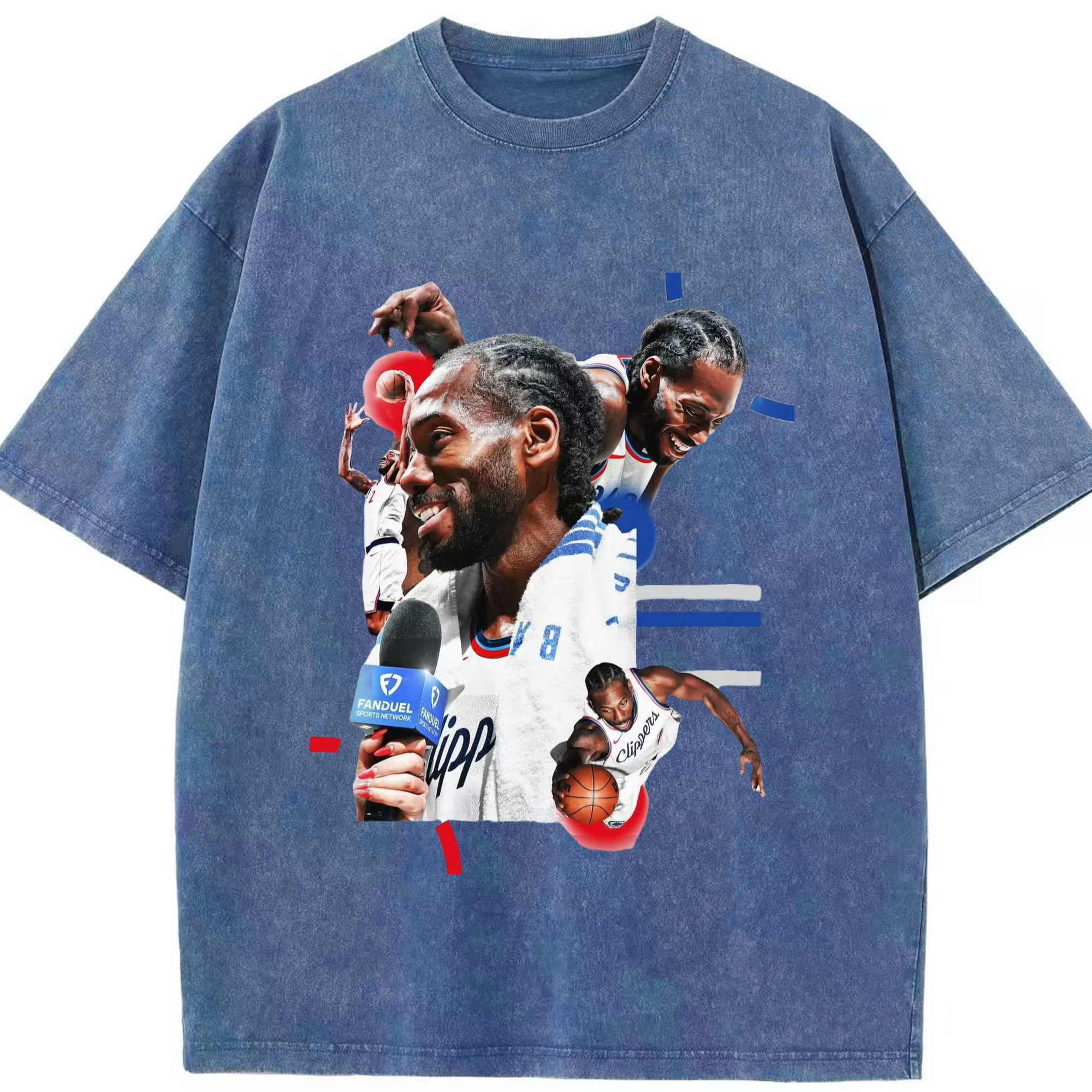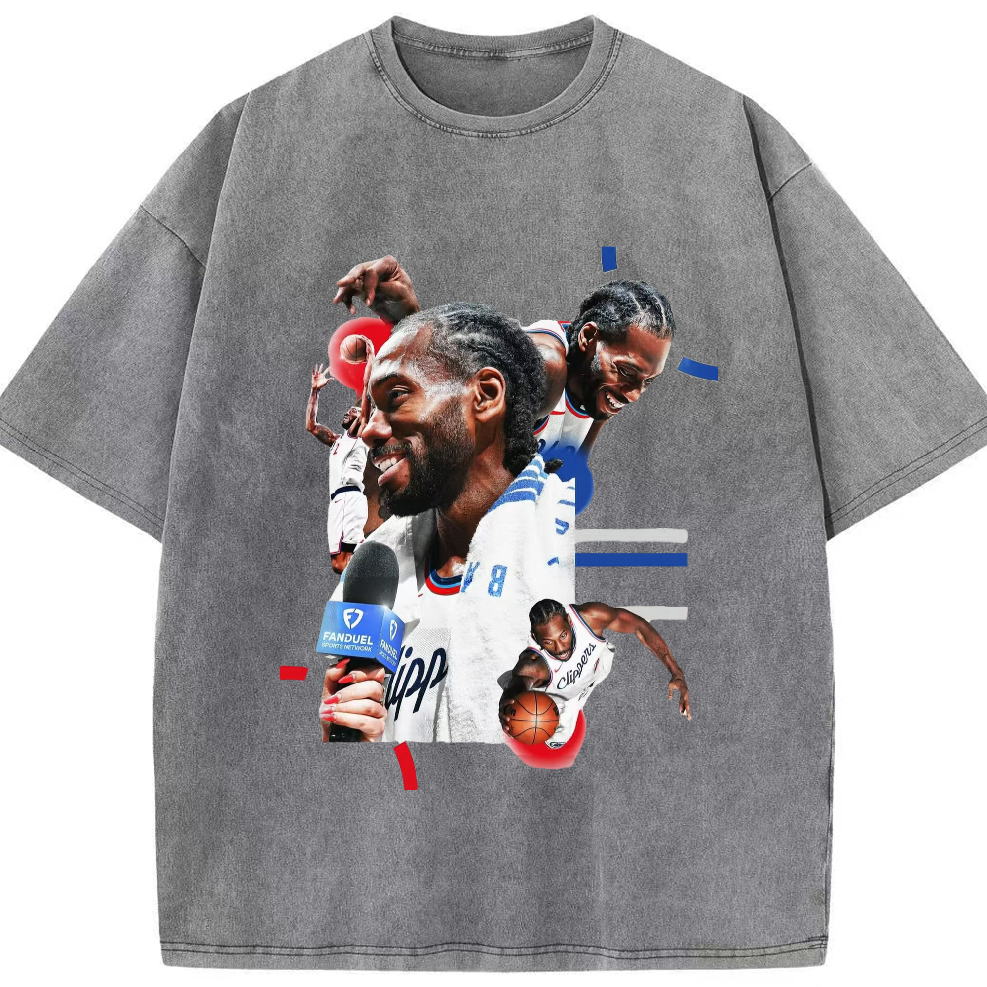 Kawhi Leonard Clipperss smile T‑Shirt - Washed Vintage Look 230g Cotton Oversized T-Shirt With Front Heat Transfer Print – Soft, Lightweight, Stylish Fit – Comfortable Casual Wear For Sports & Everyday Use