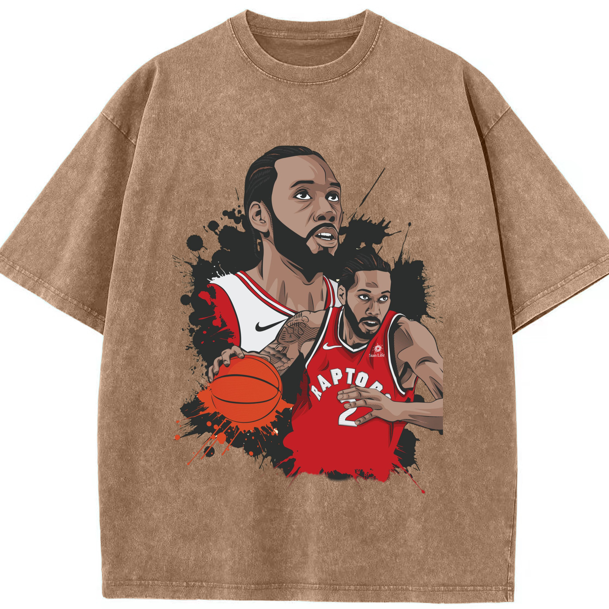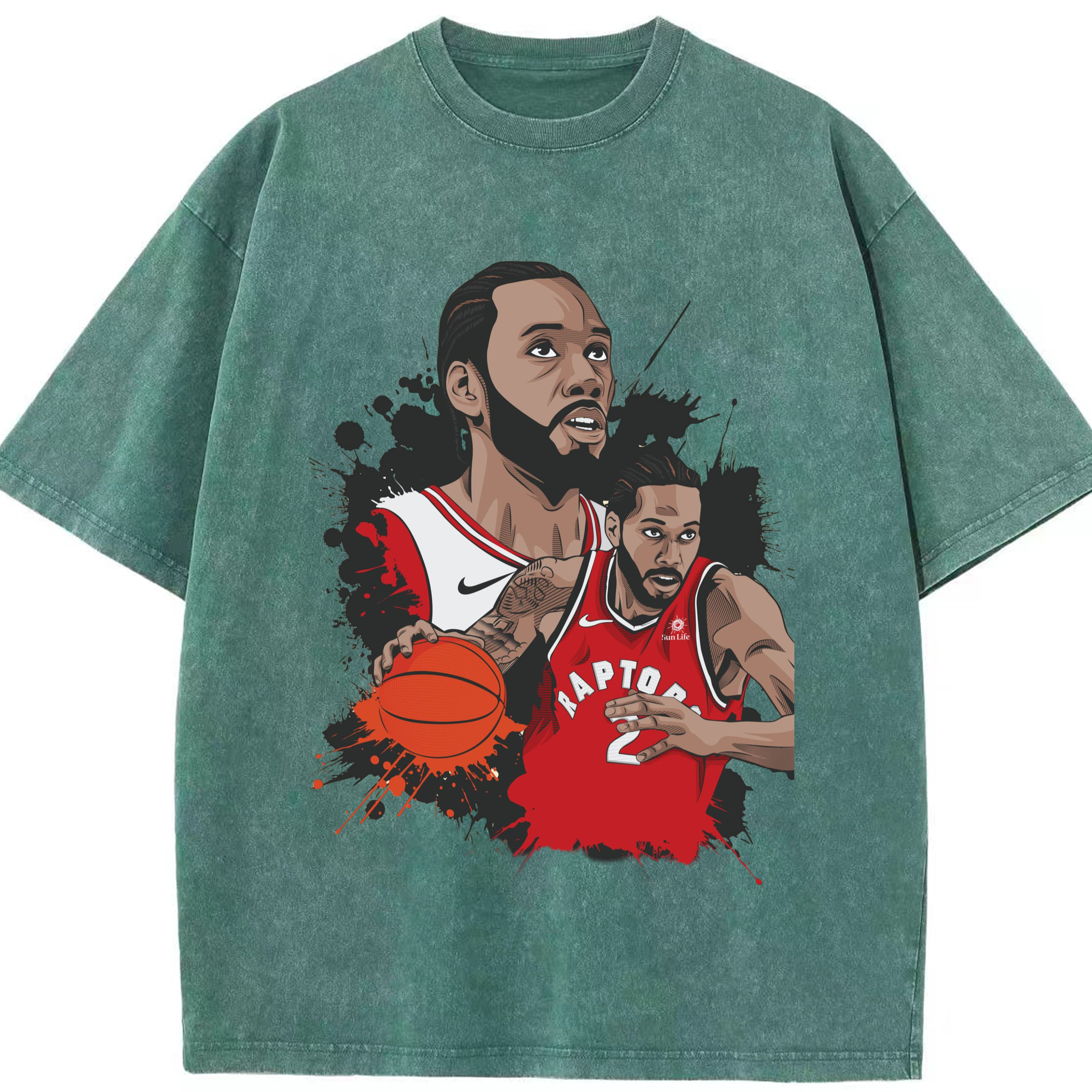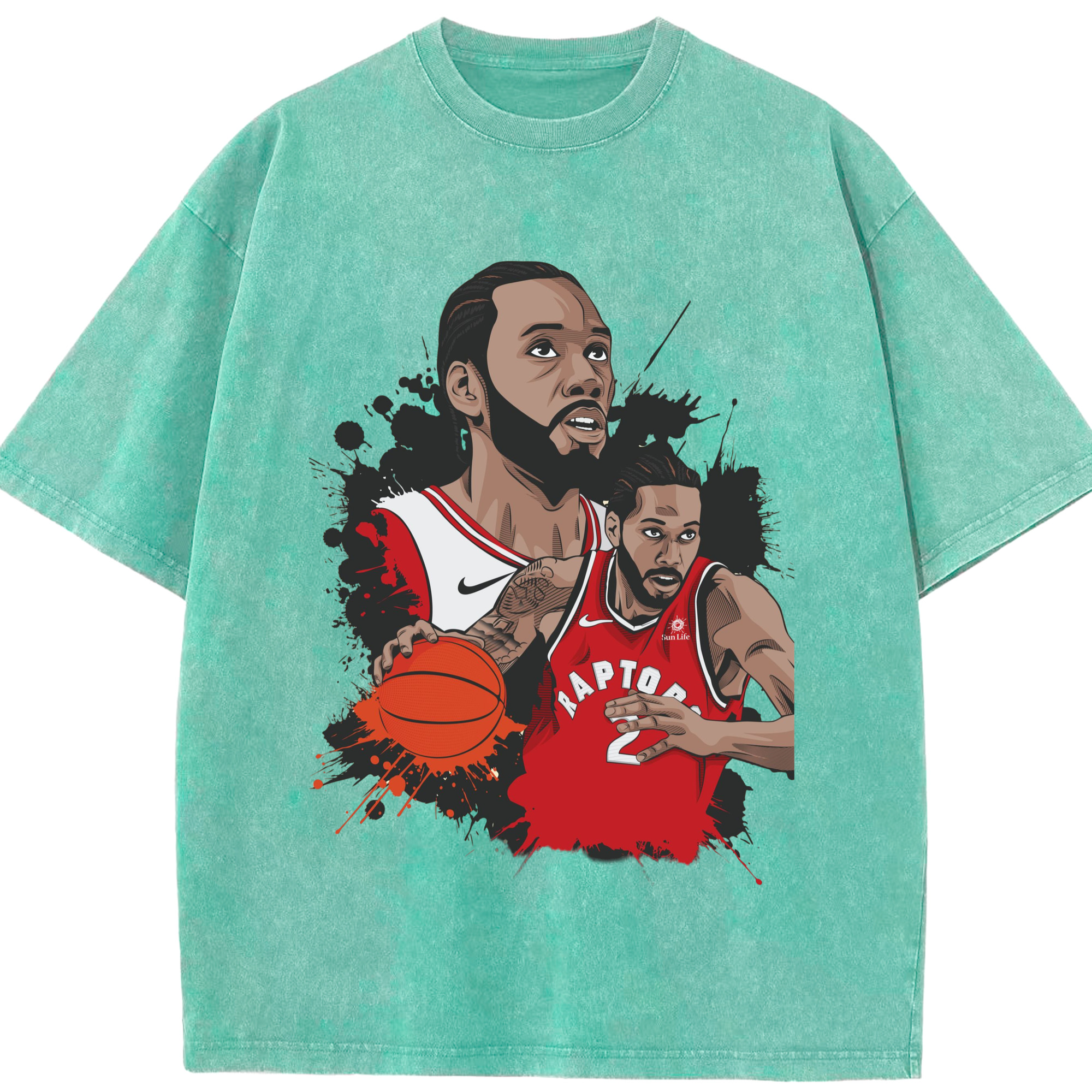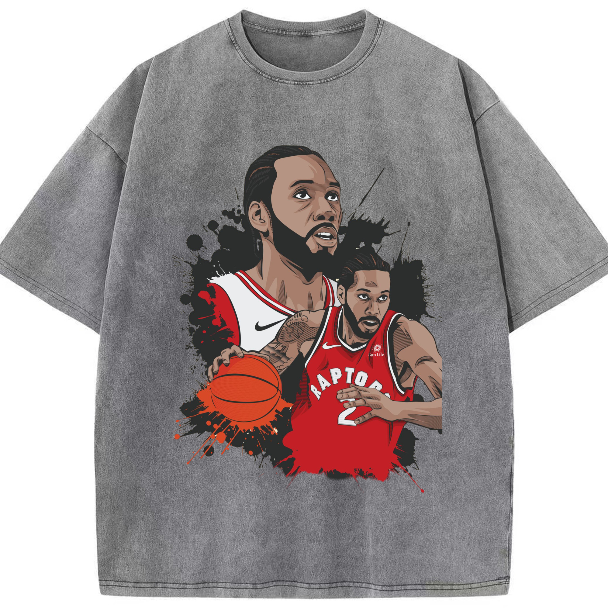 Kawhi Leonard Raptors #2 Cartoon style T‑Shirt - Washed Vintage Look 230g Cotton Oversized T-Shirt With Front Heat Transfer Print – Soft, Lightweight, Stylish Fit – Comfortable Casual Wear For Sports & Everyday Use