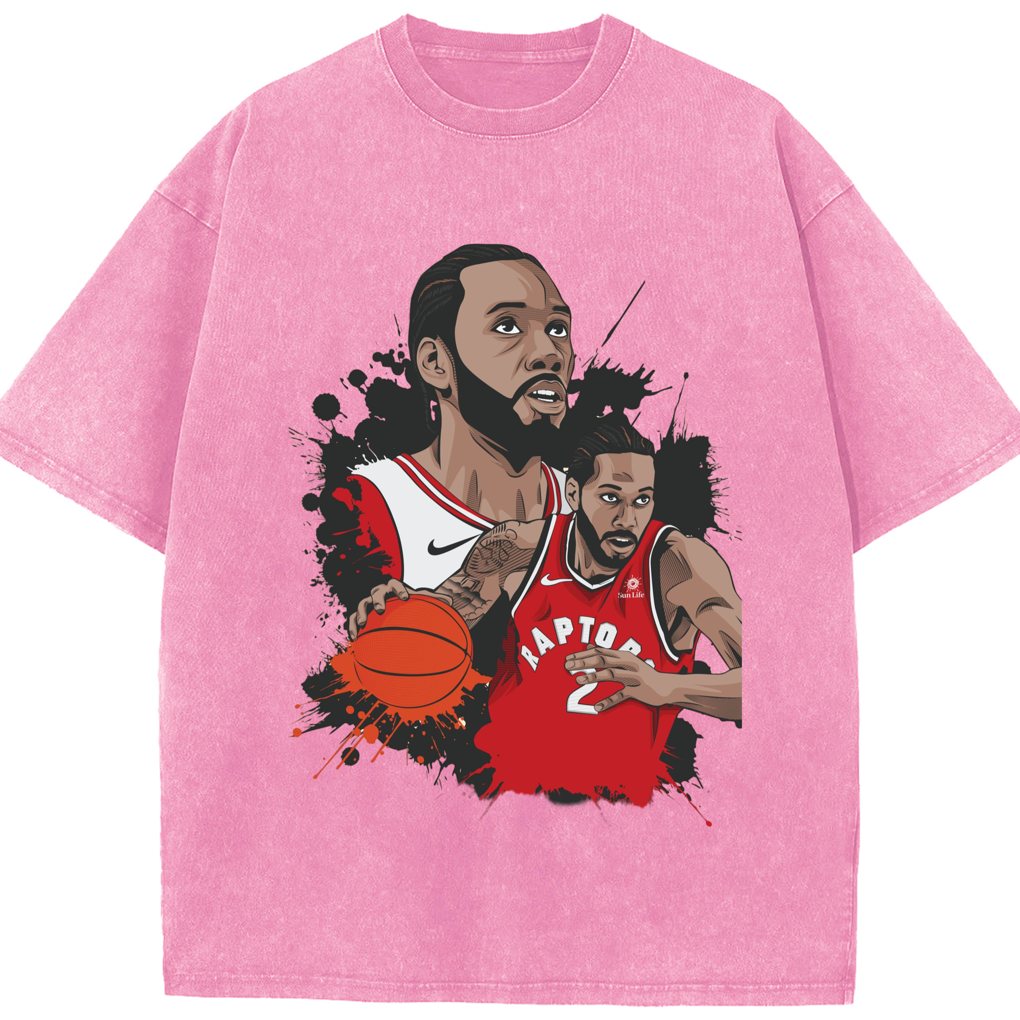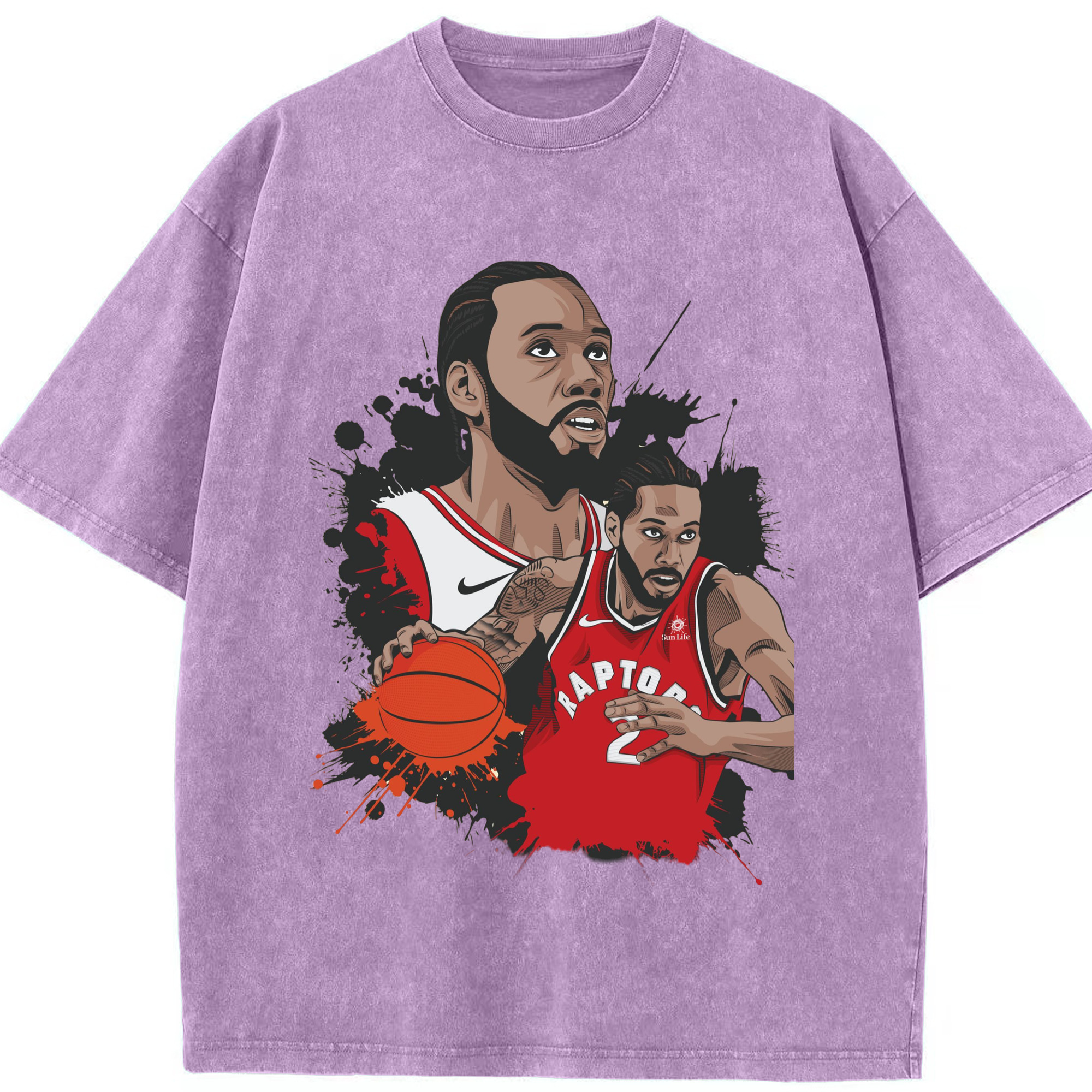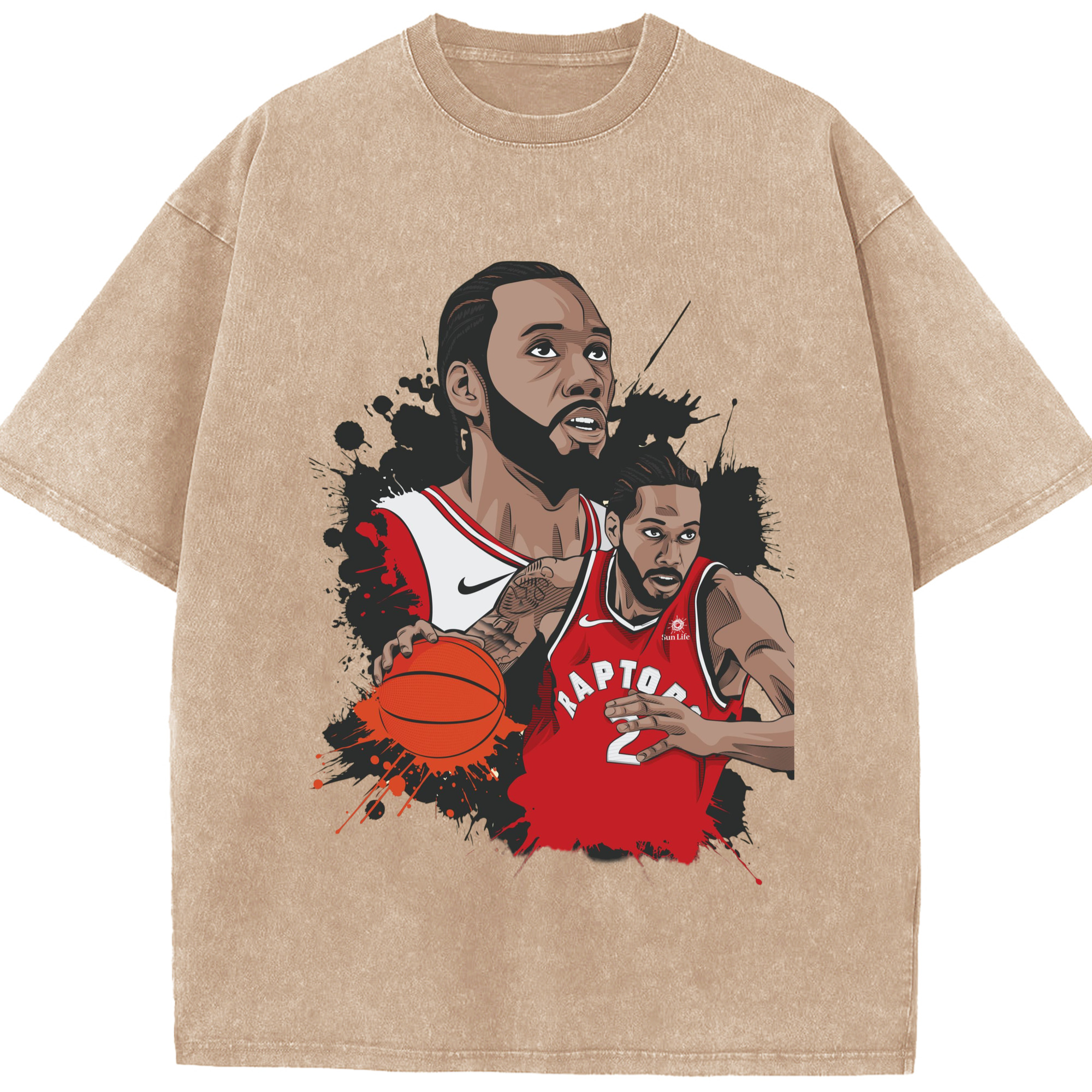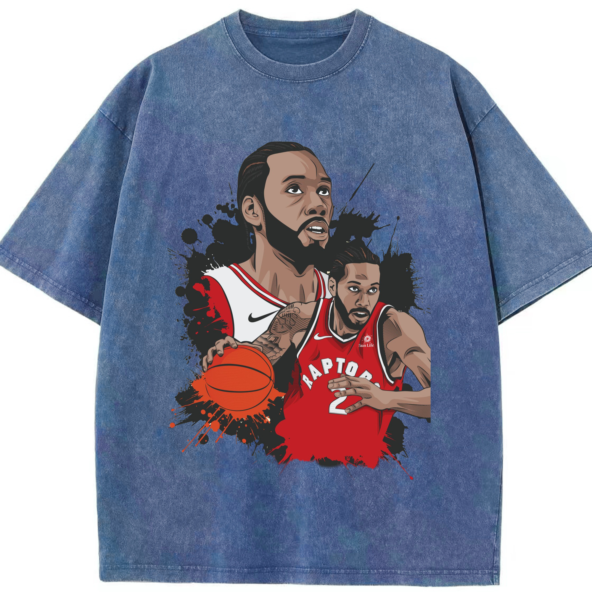 Kawhi Leonard Raptors #2 Cartoon style T‑Shirt - Washed Vintage Look 230g Cotton Oversized T-Shirt With Front Heat Transfer Print – Soft, Lightweight, Stylish Fit – Comfortable Casual Wear For Sports & Everyday Use