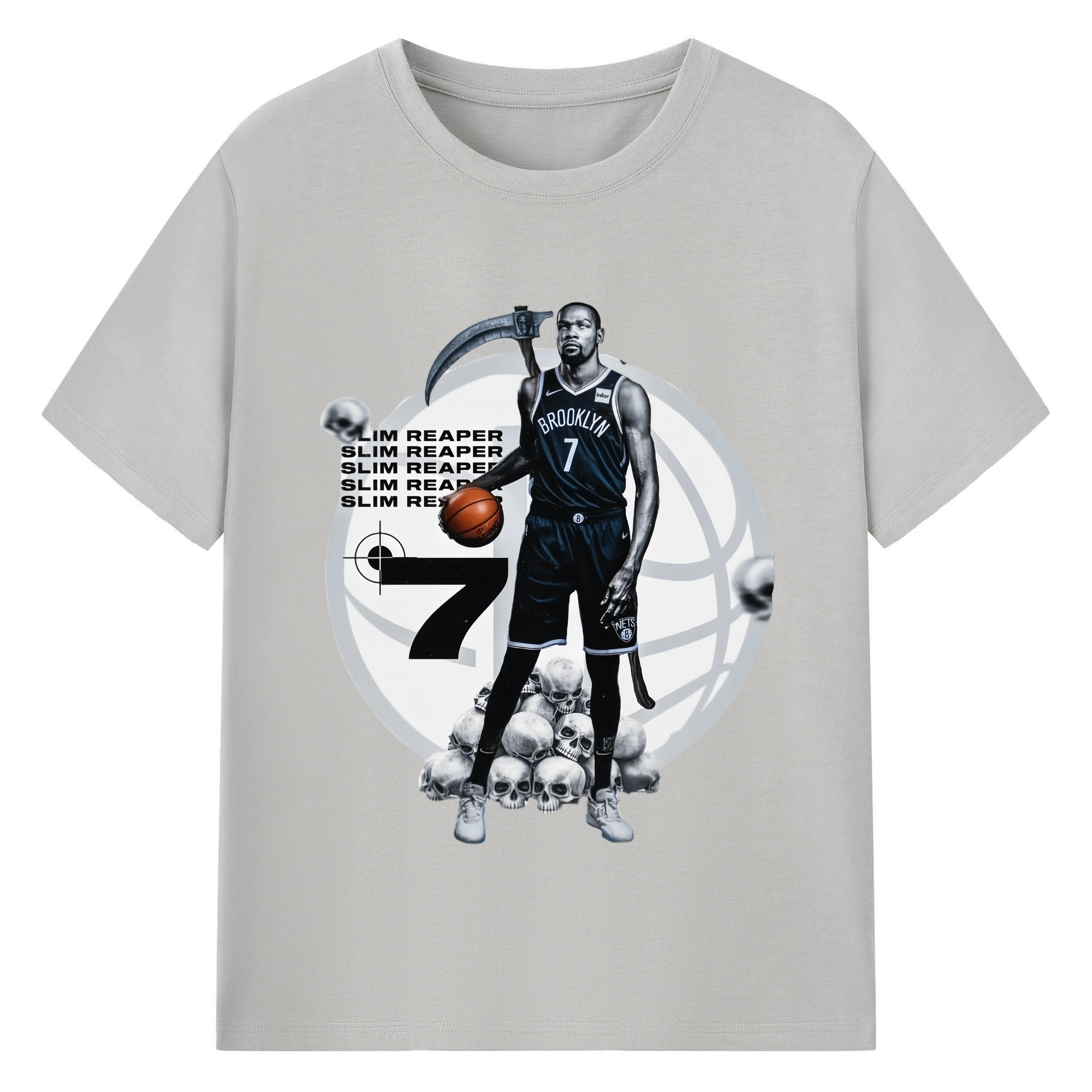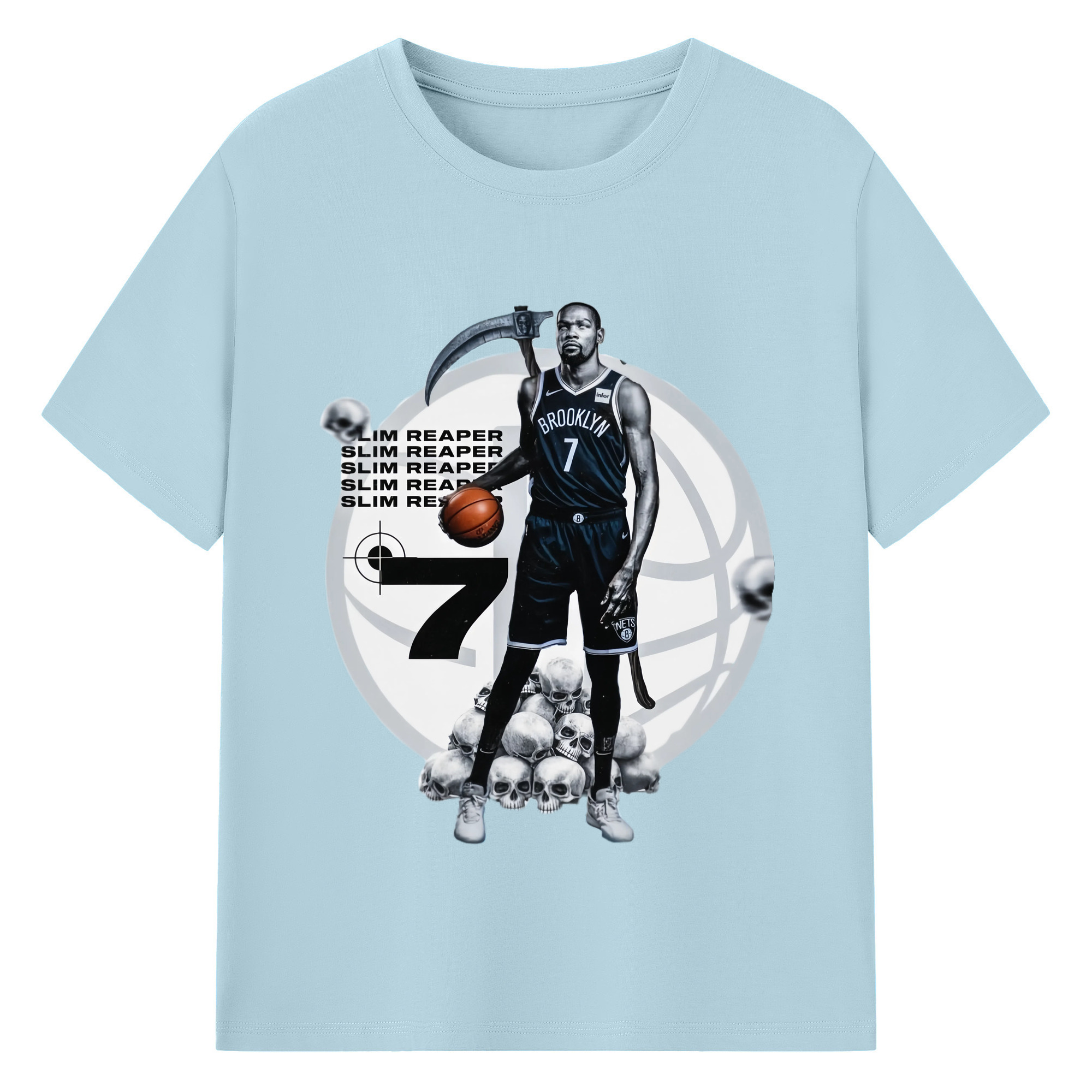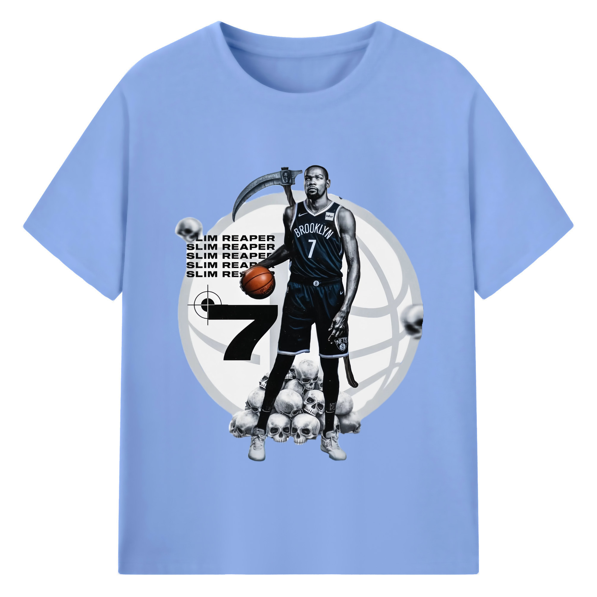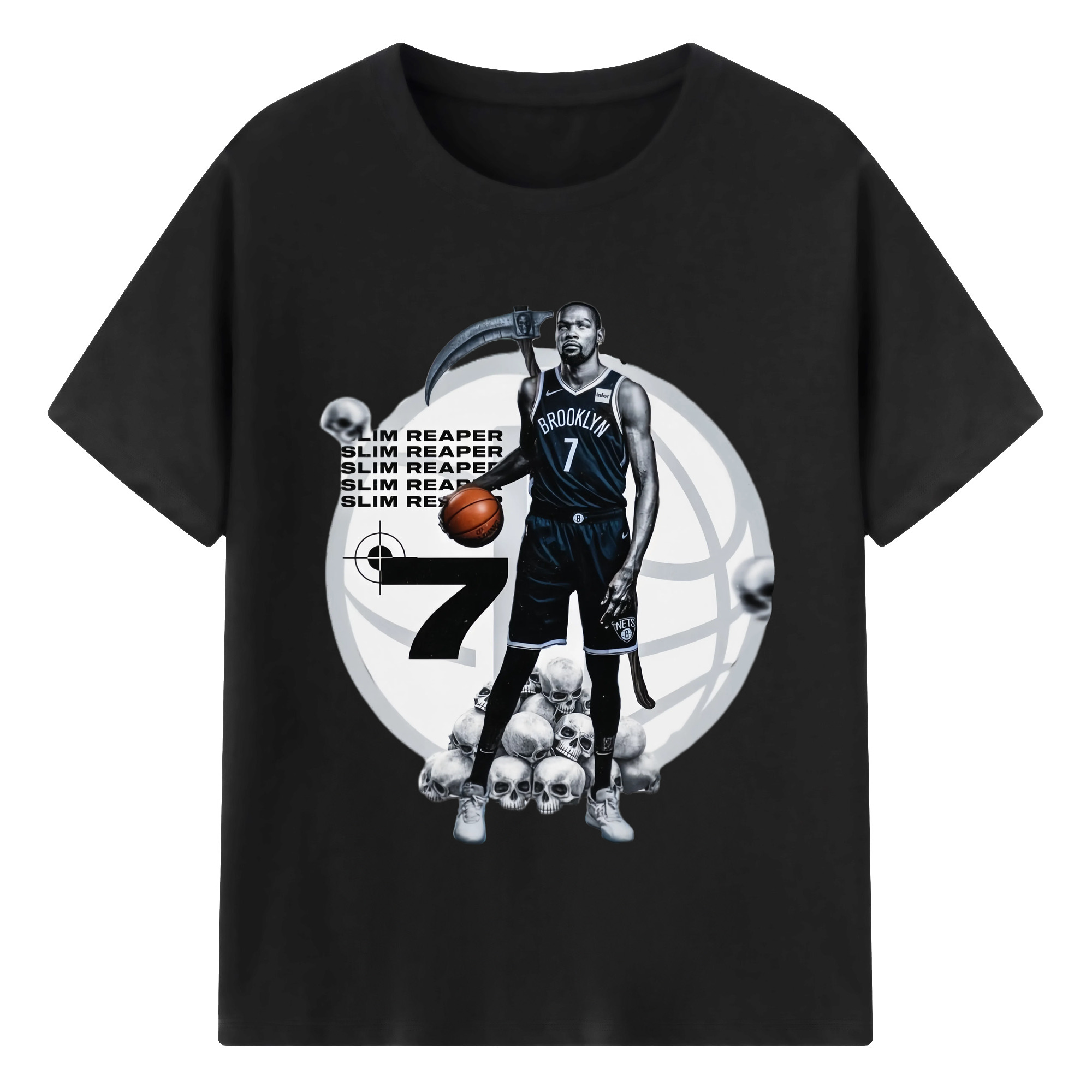 Kevin Durant Nets Slim Reaper T‑shirt - 180g Cotton T-Shirt With Front Heat Transfer Print – Soft, Lightweight, Fitted Design – Comfortable Casual Wear For Sports & Everyday Use