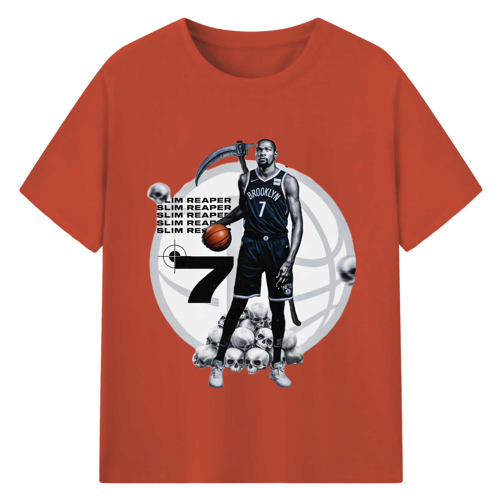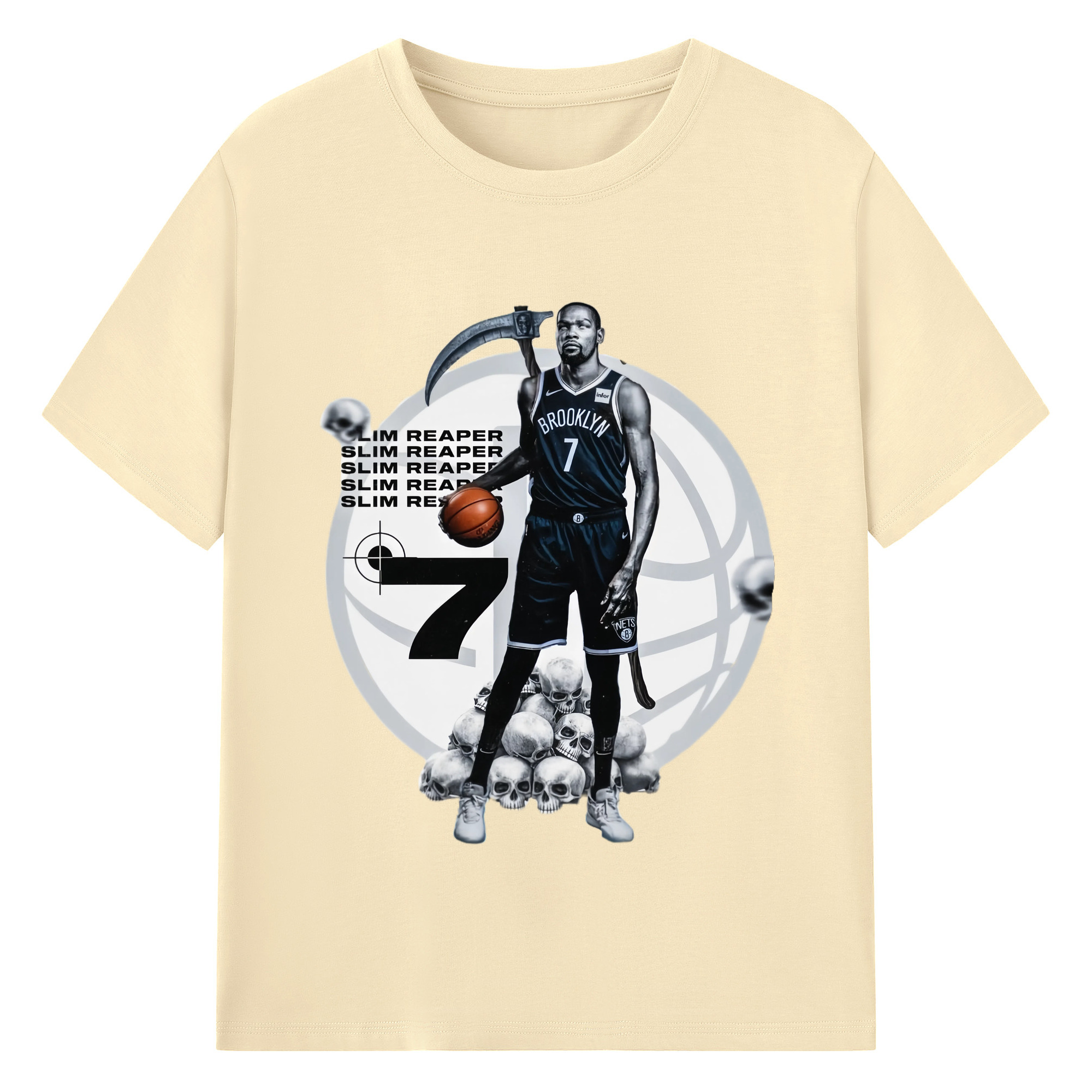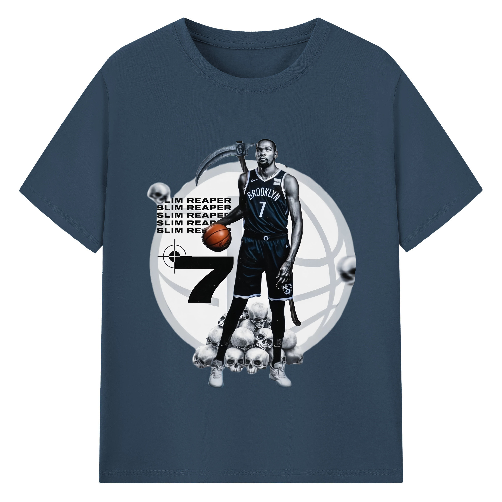 Kevin Durant Nets Slim Reaper T‑shirt - 180g Cotton T-Shirt With Front Heat Transfer Print – Soft, Lightweight, Fitted Design – Comfortable Casual Wear For Sports & Everyday Use