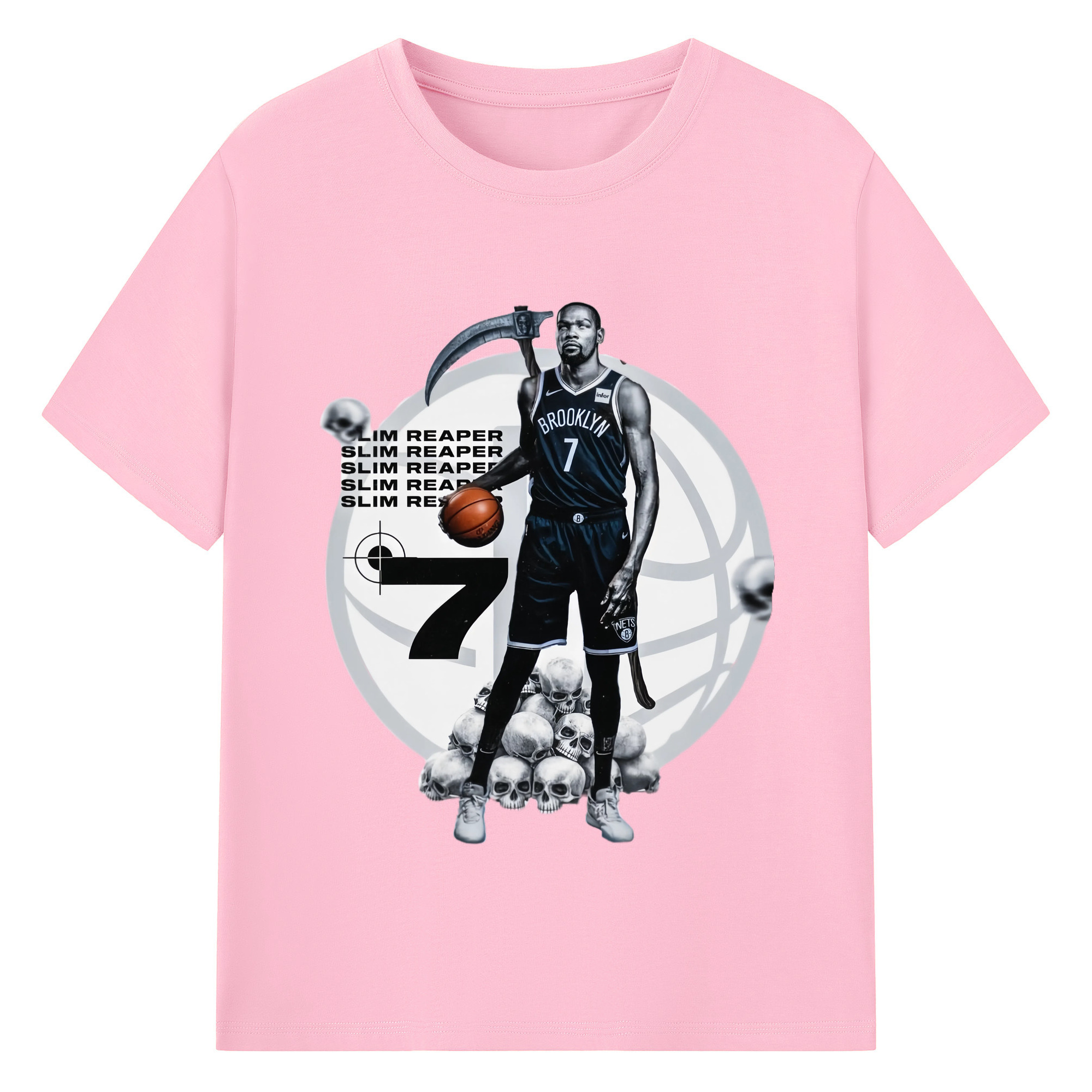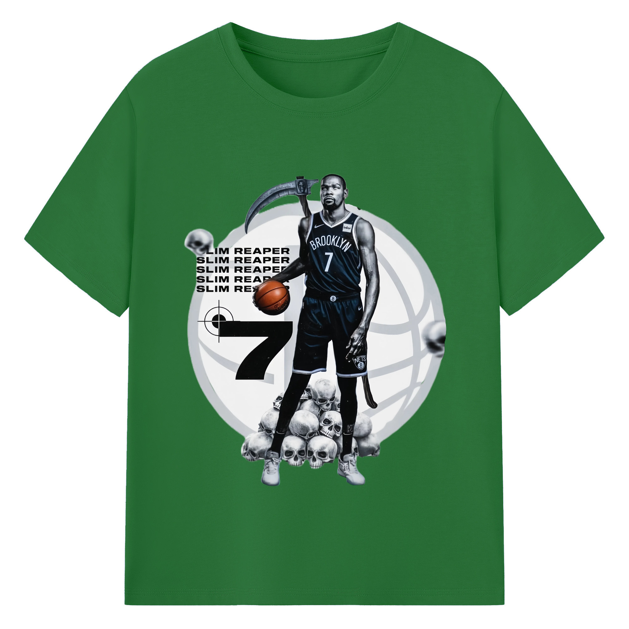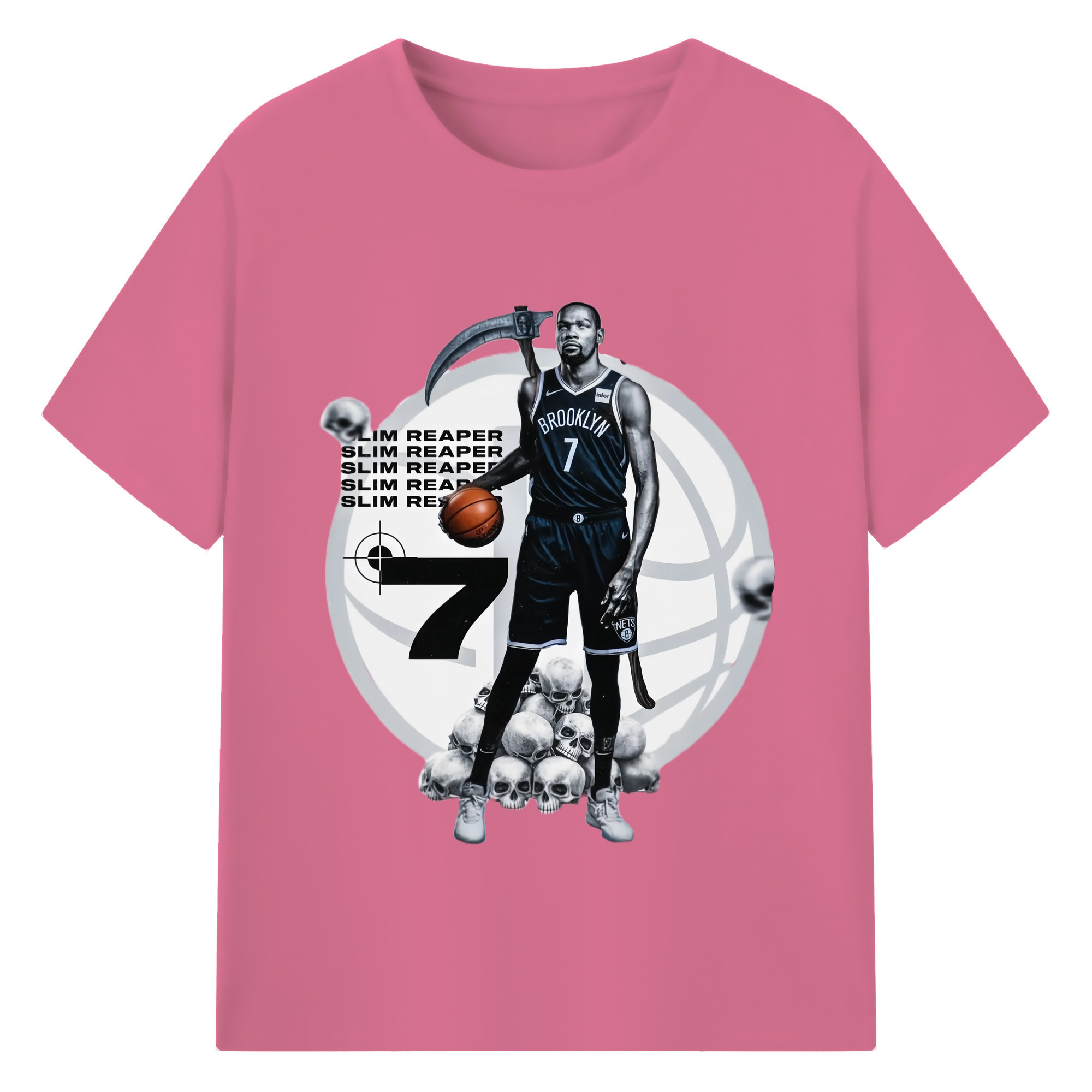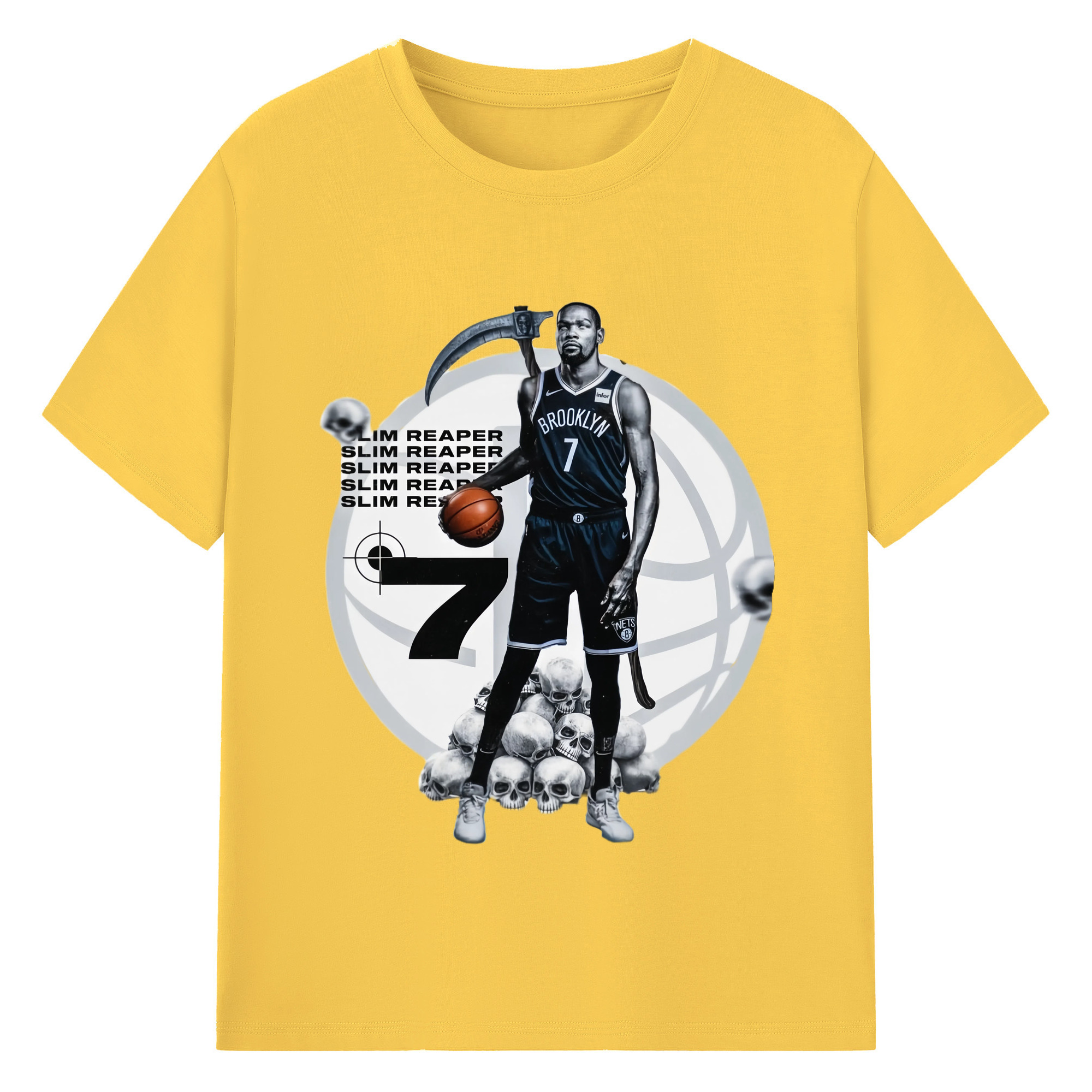 Kevin Durant Nets Slim Reaper T‑shirt - 180g Cotton T-Shirt With Front Heat Transfer Print – Soft, Lightweight, Fitted Design – Comfortable Casual Wear For Sports & Everyday Use