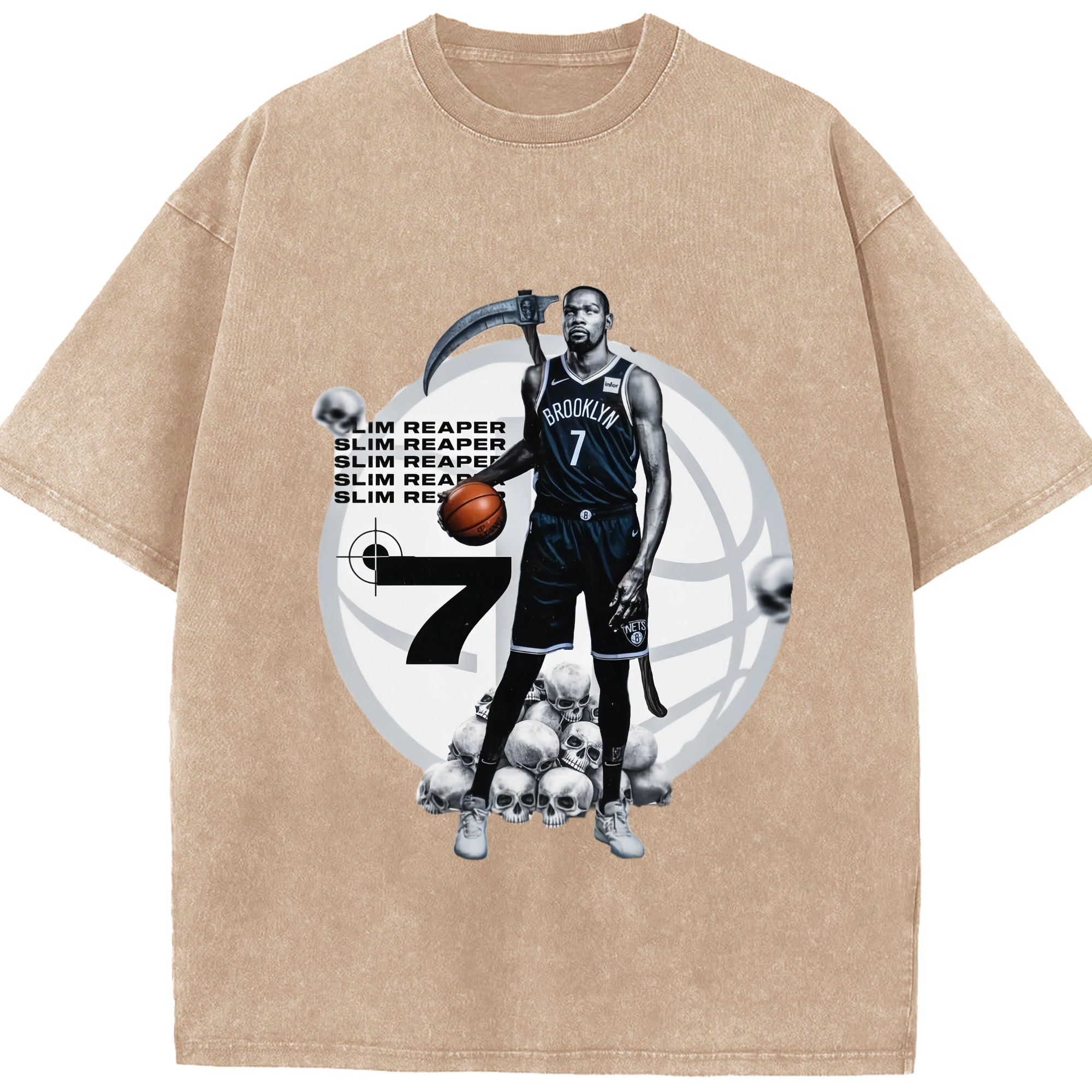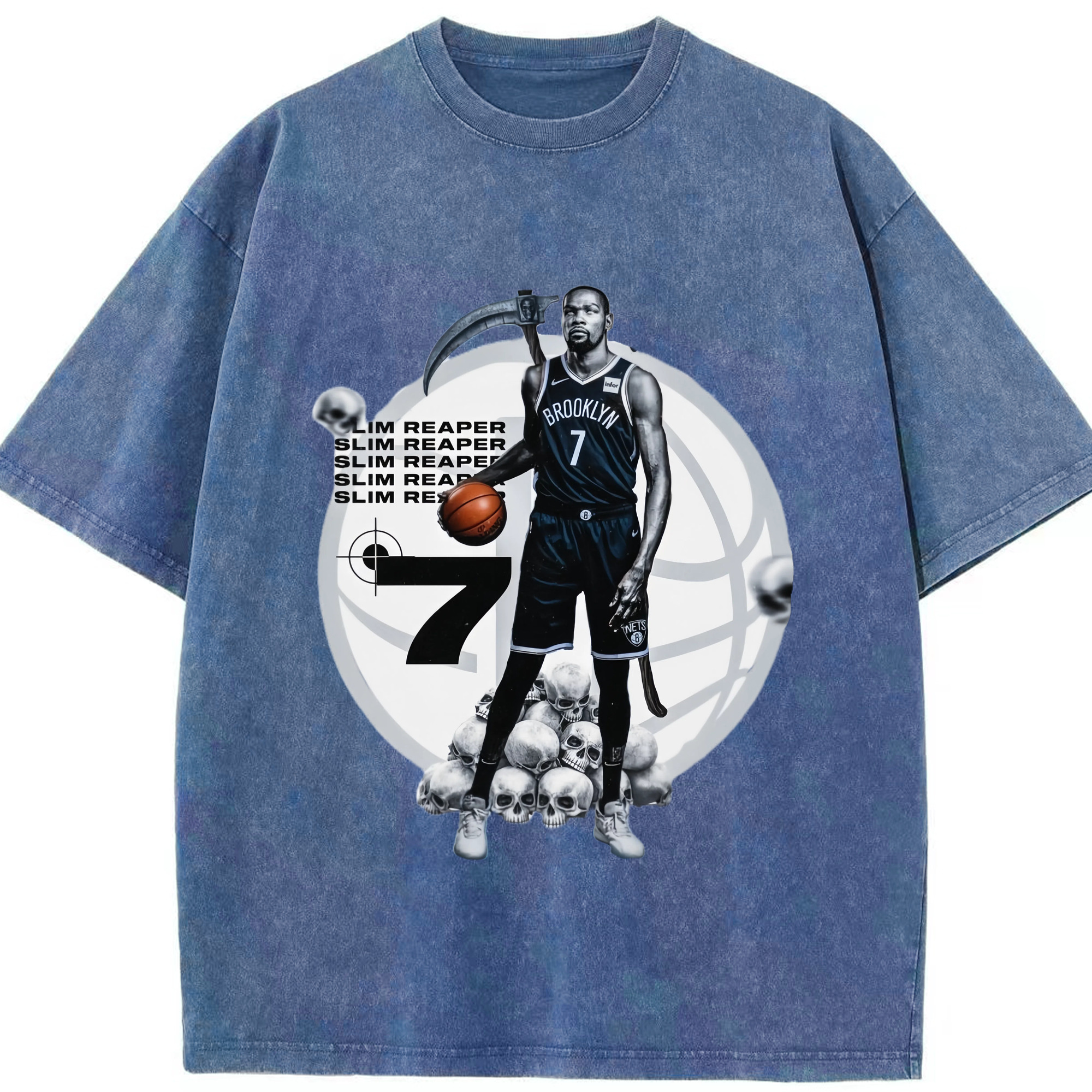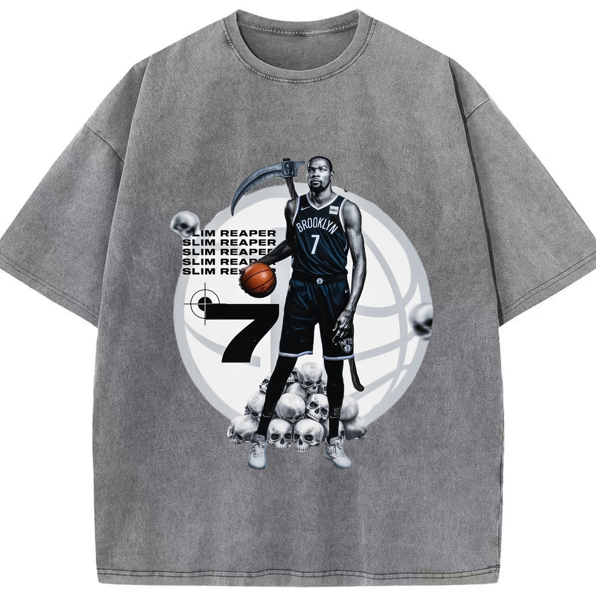Kevin Durant Nets Slim Reaper T‑shirt - Washed Vintage Look 230g Cotton Oversized T-Shirt With Front Heat Transfer Print – Soft, Lightweight, Stylish Fit – Comfortable Casual Wear For Sports & Everyday Use