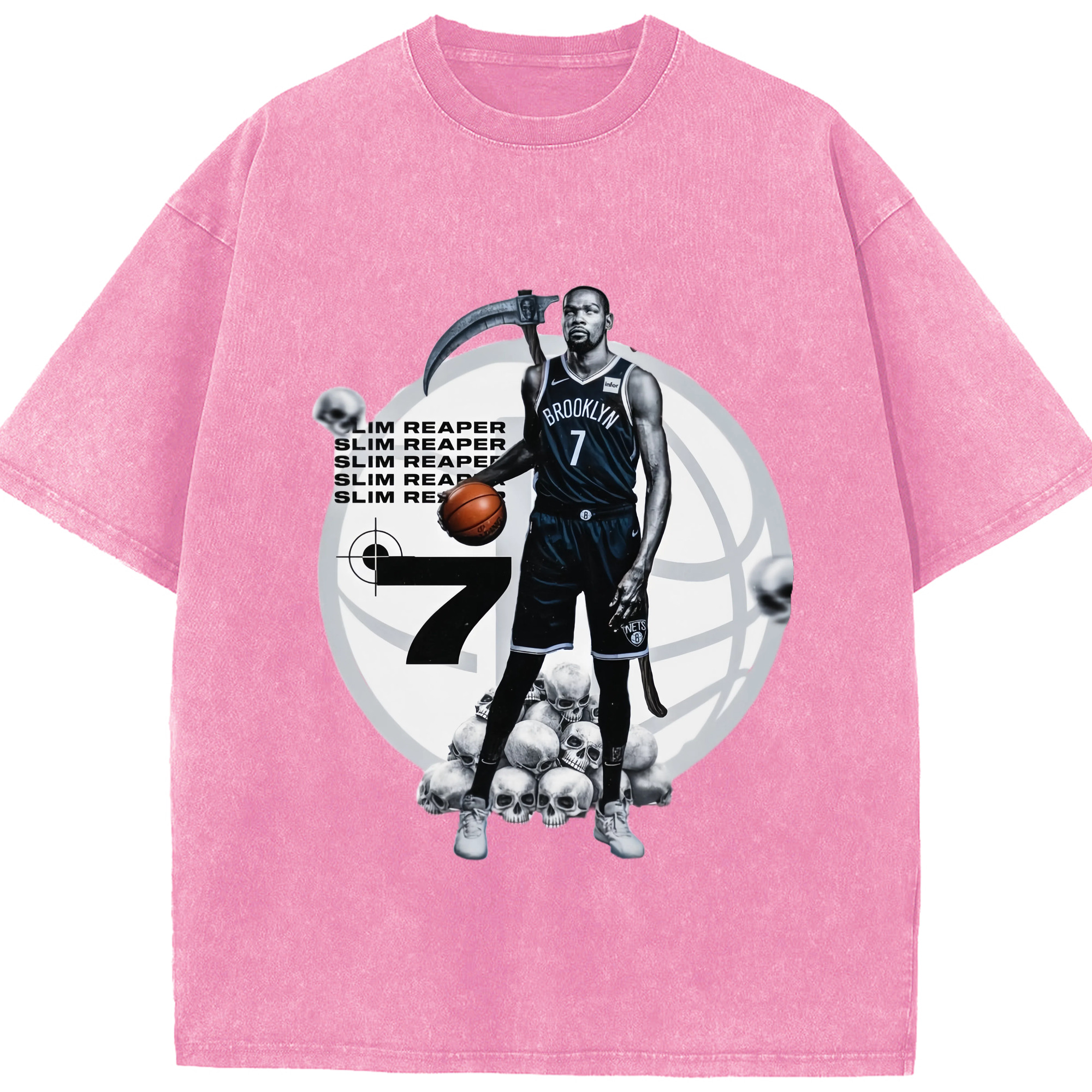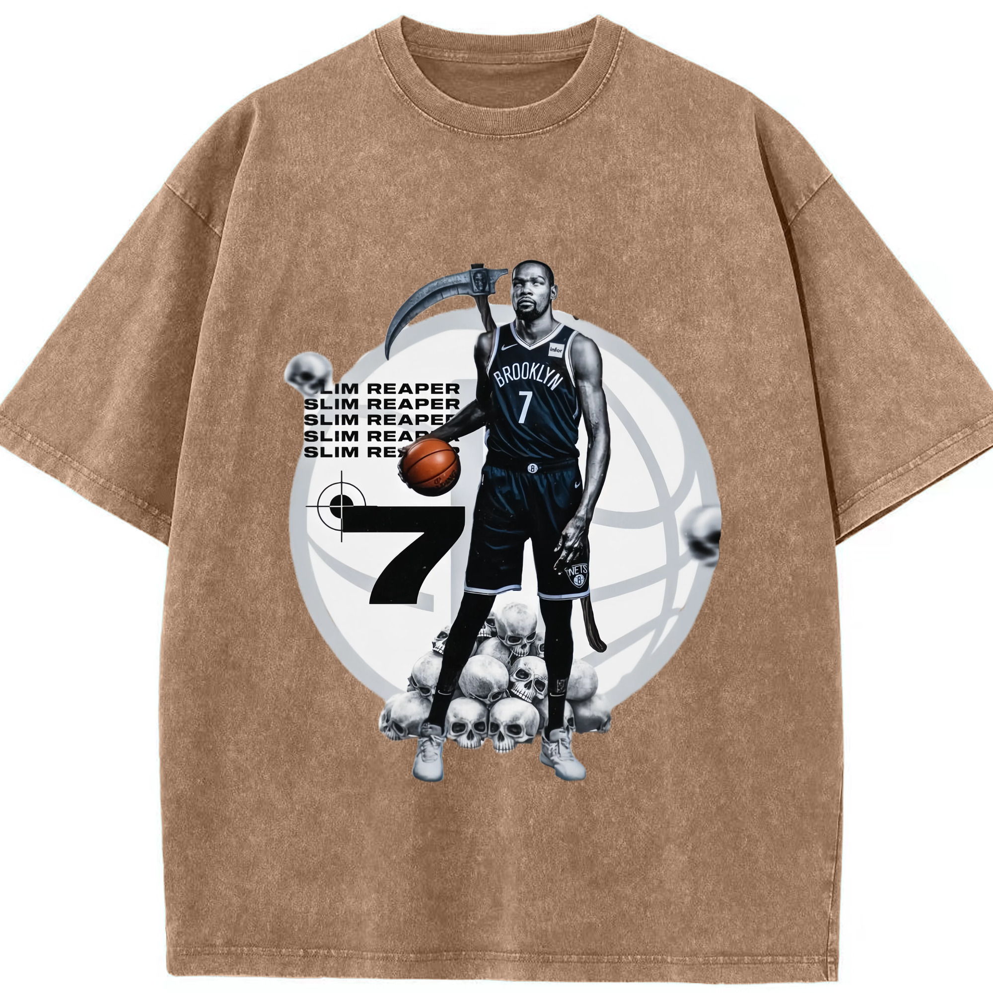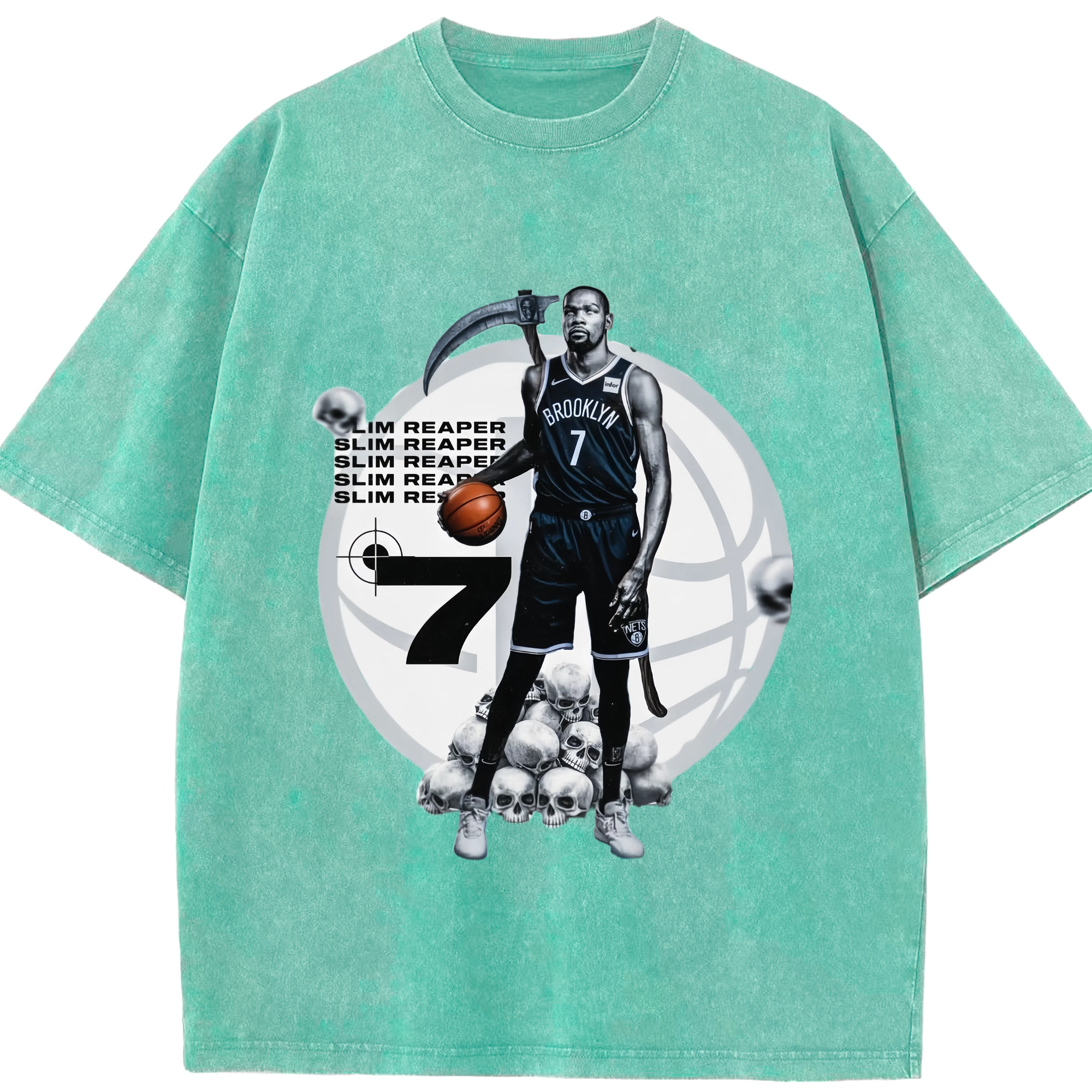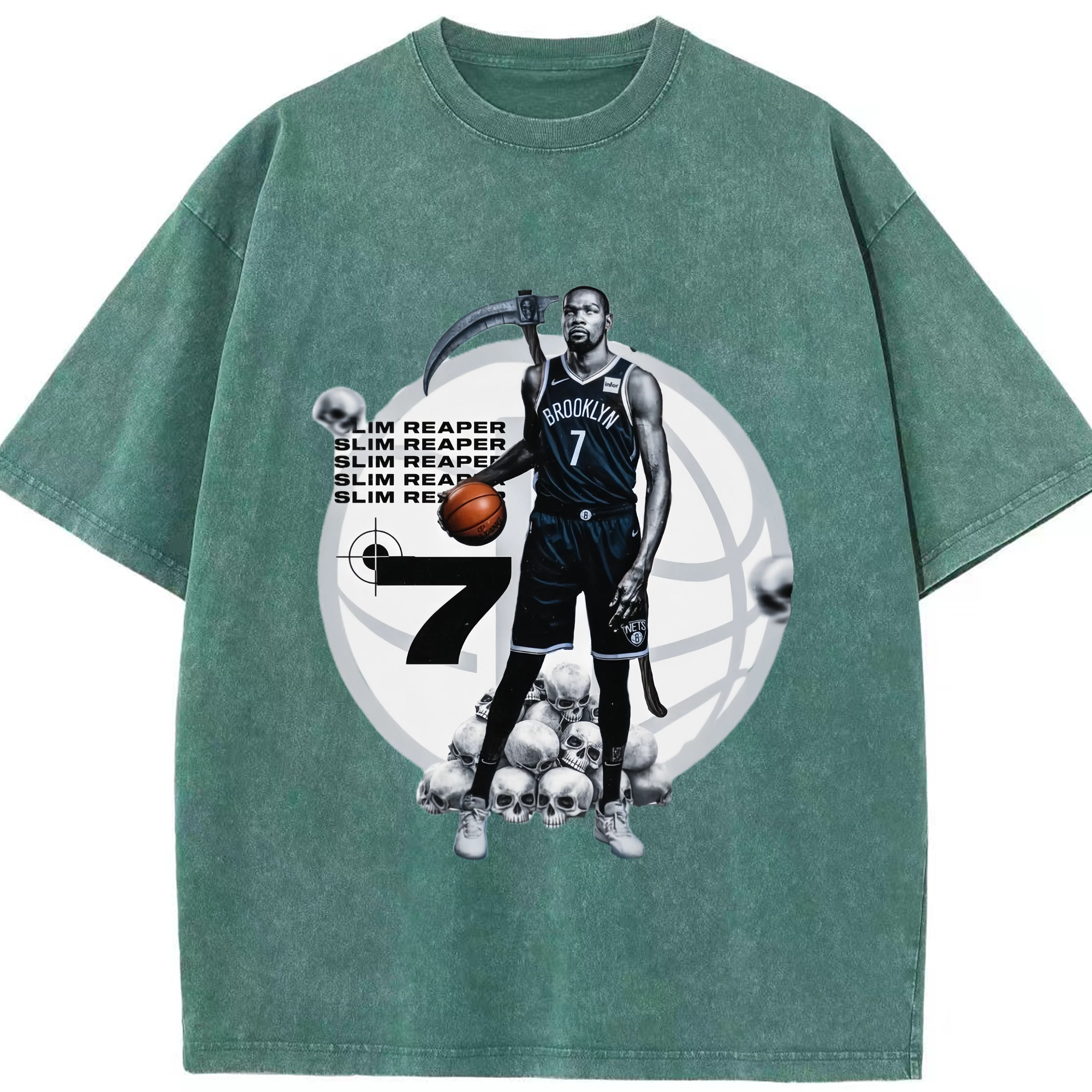 Kevin Durant Nets Slim Reaper T‑shirt - Washed Vintage Look 230g Cotton Oversized T-Shirt With Front Heat Transfer Print – Soft, Lightweight, Stylish Fit – Comfortable Casual Wear For Sports & Everyday Use