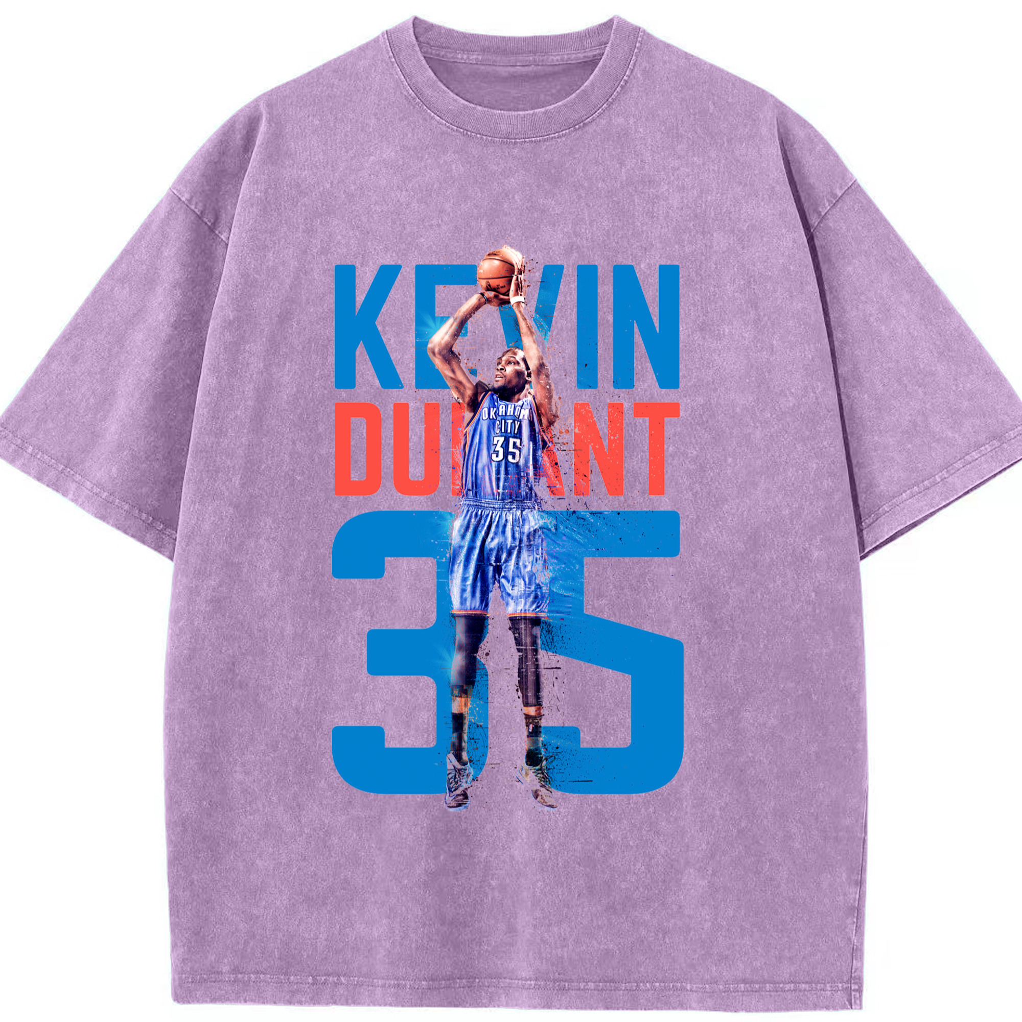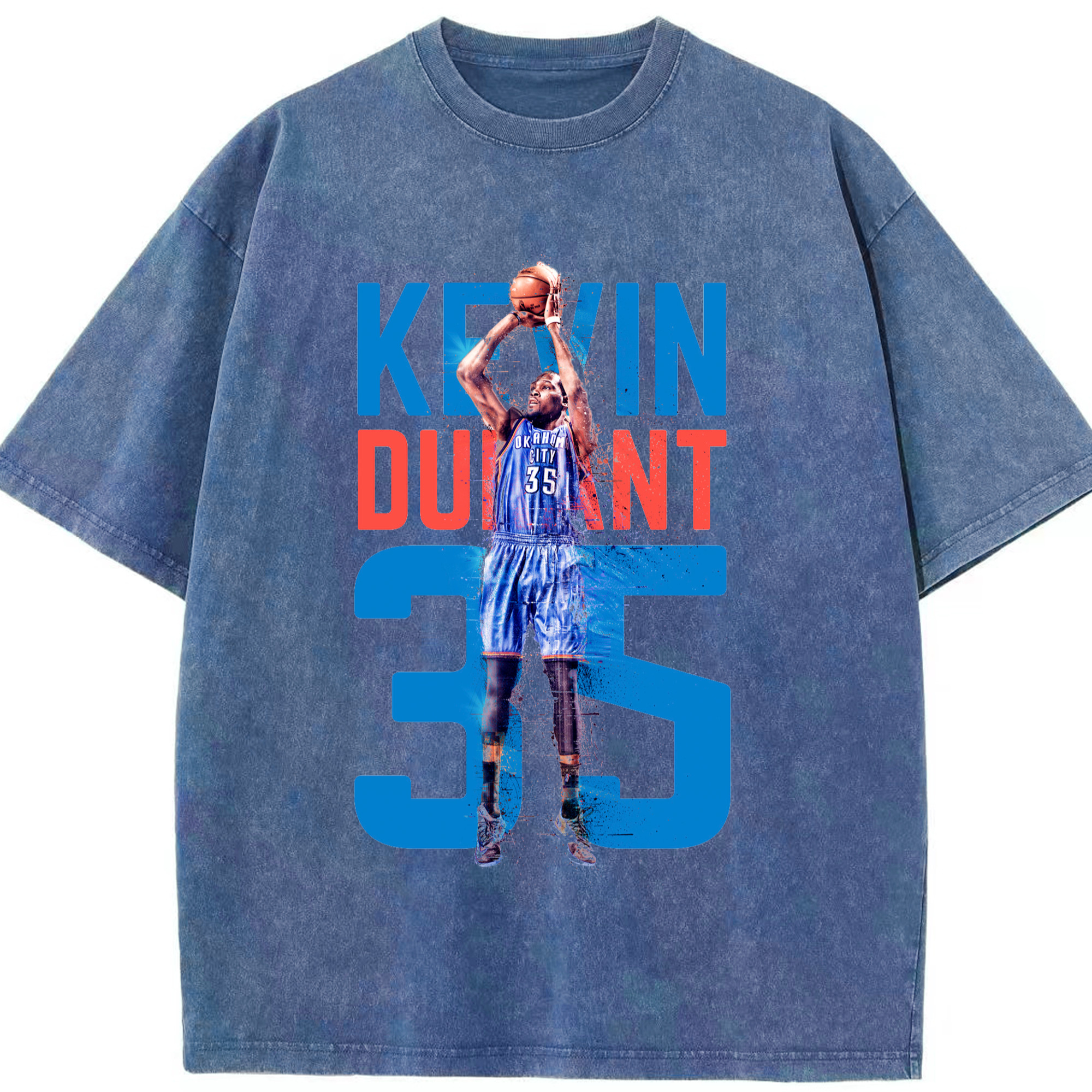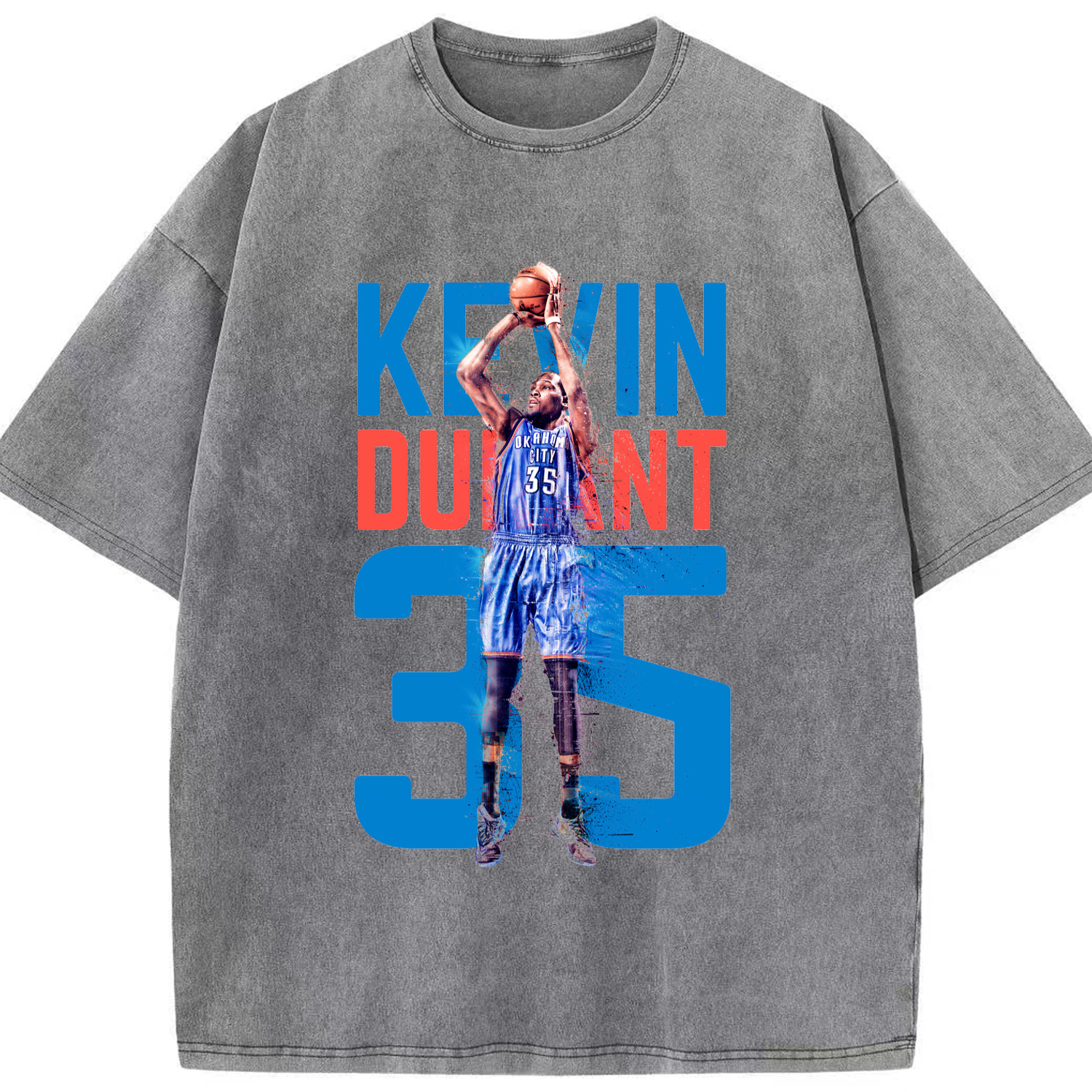 Kevin Durant OKC #35 T‑shirt - Washed Vintage Look 230g Cotton Oversized T-Shirt With Front Heat Transfer Print – Soft, Lightweight, Stylish Fit – Comfortable Casual Wear For Sports & Everyday Use