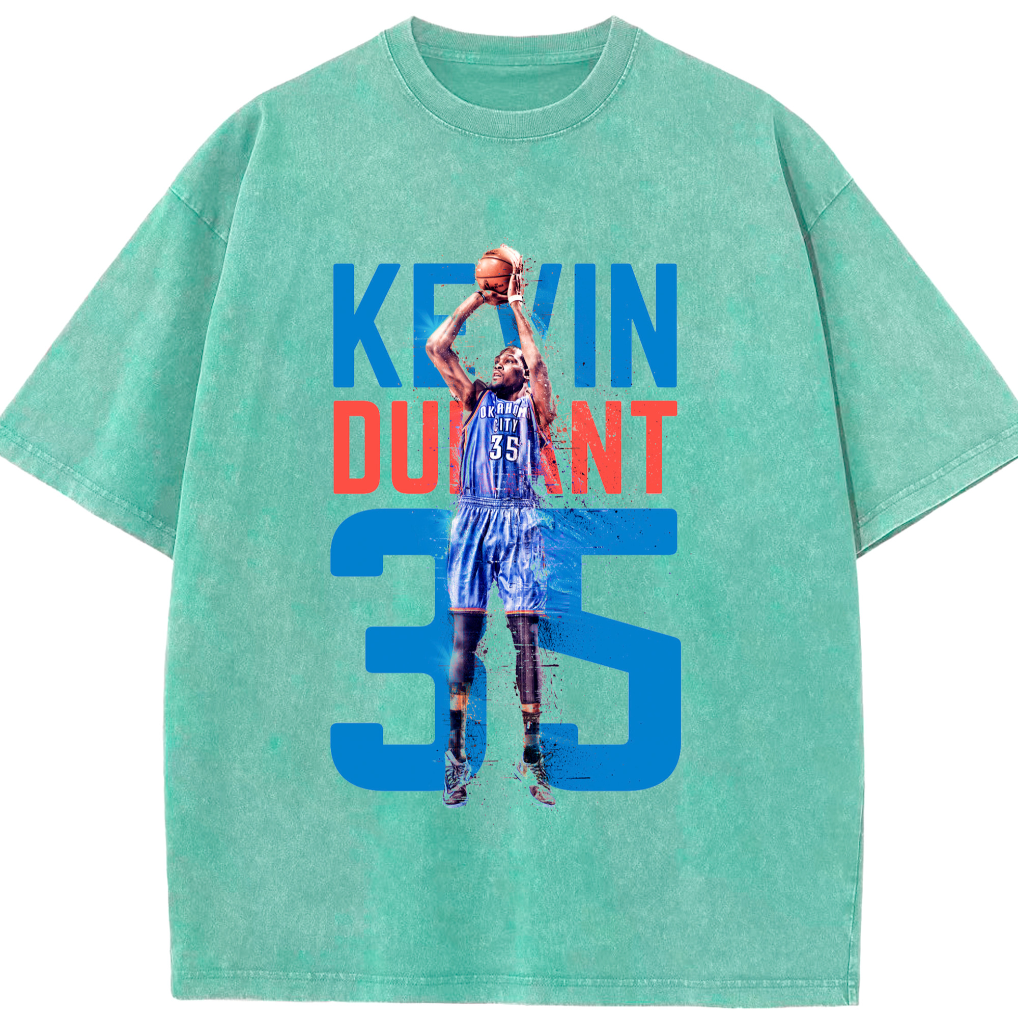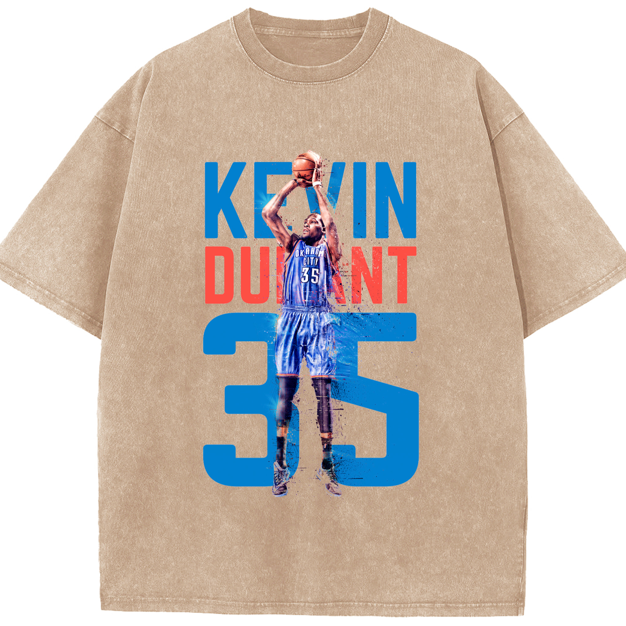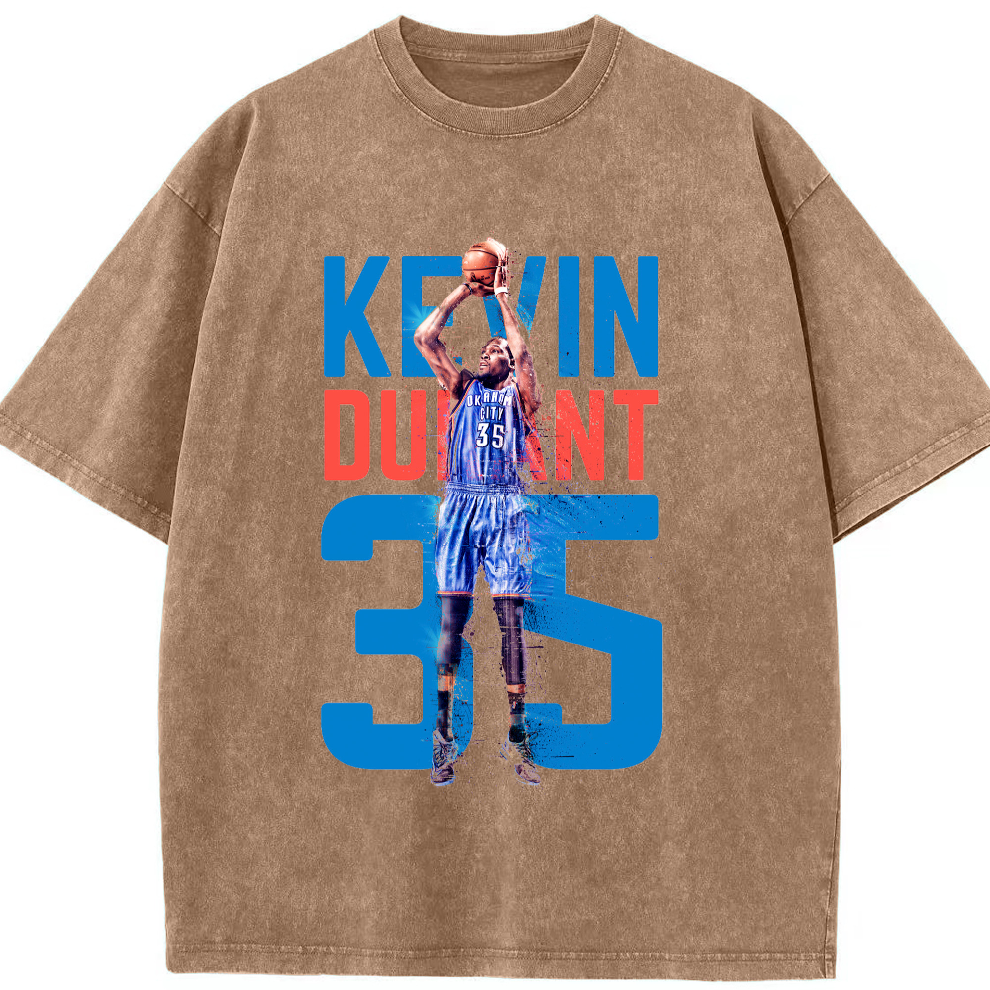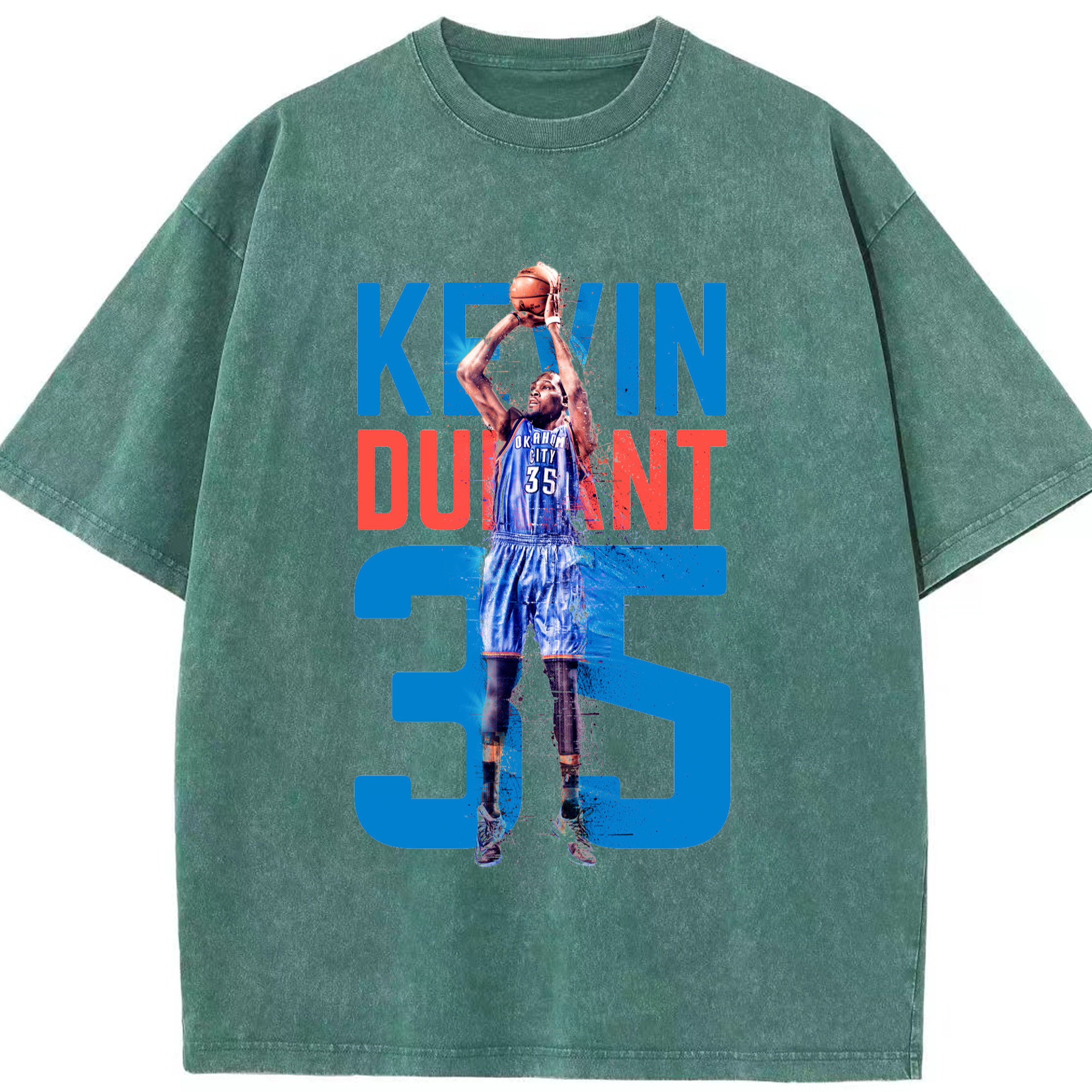 Kevin Durant OKC #35 T‑shirt - Washed Vintage Look 230g Cotton Oversized T-Shirt With Front Heat Transfer Print – Soft, Lightweight, Stylish Fit – Comfortable Casual Wear For Sports & Everyday Use