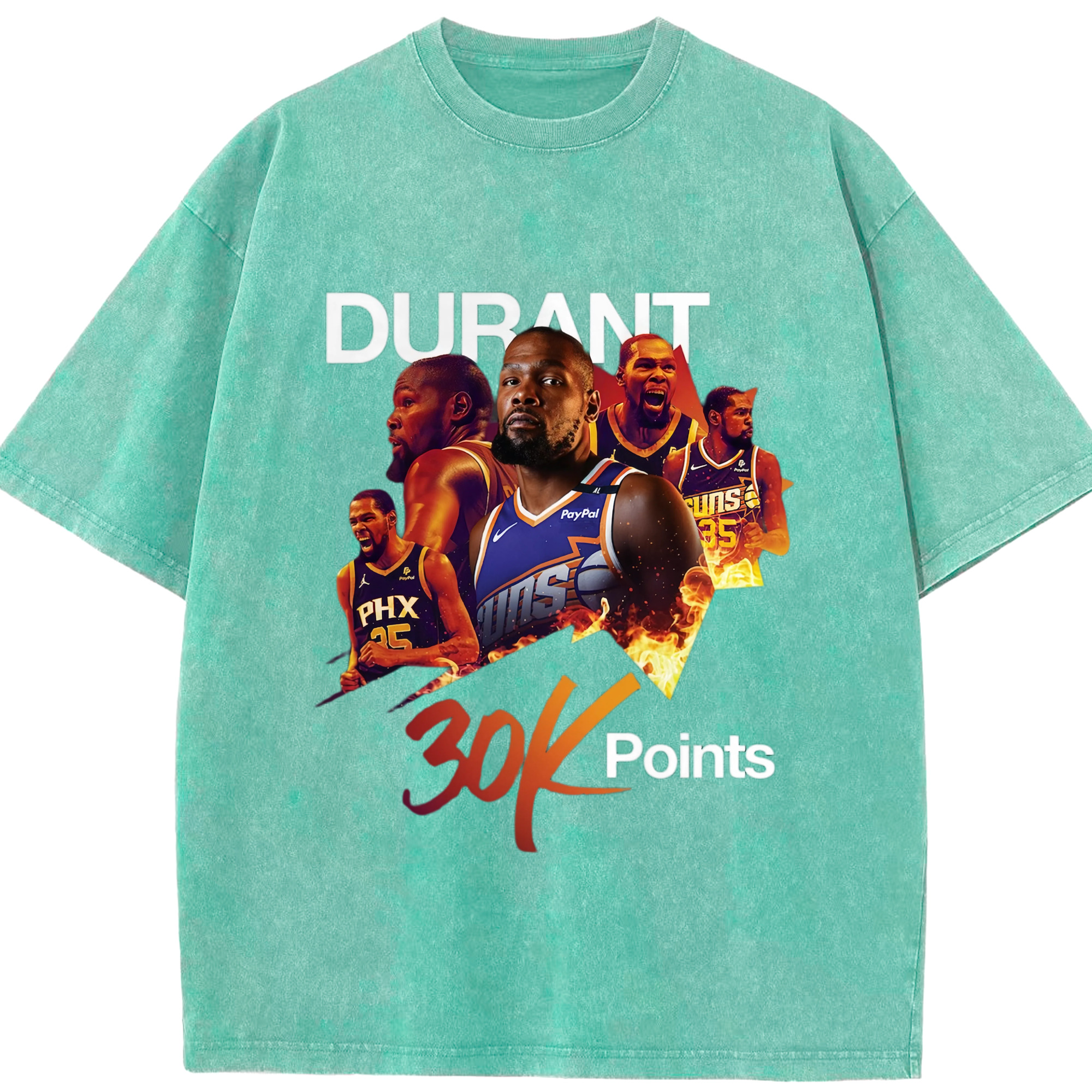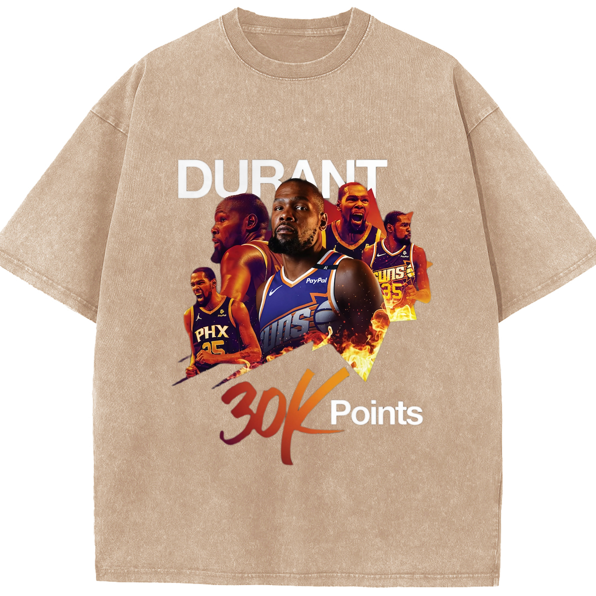 Kevin Durant suns #7 collage T‑shirt - Washed Vintage Look 230g Cotton Oversized T-Shirt With Front Heat Transfer Print – Soft, Lightweight, Stylish Fit – Comfortable Casual Wear For Sports & Everyday Use