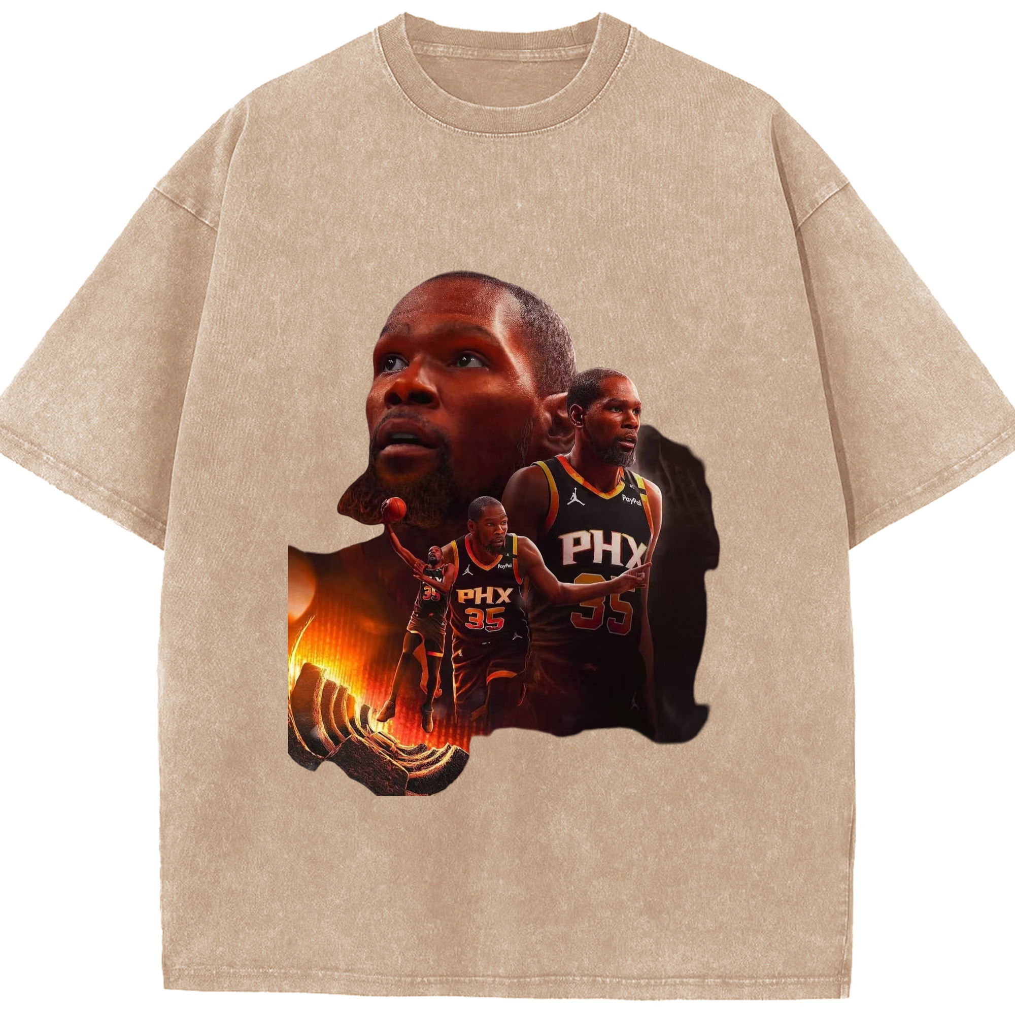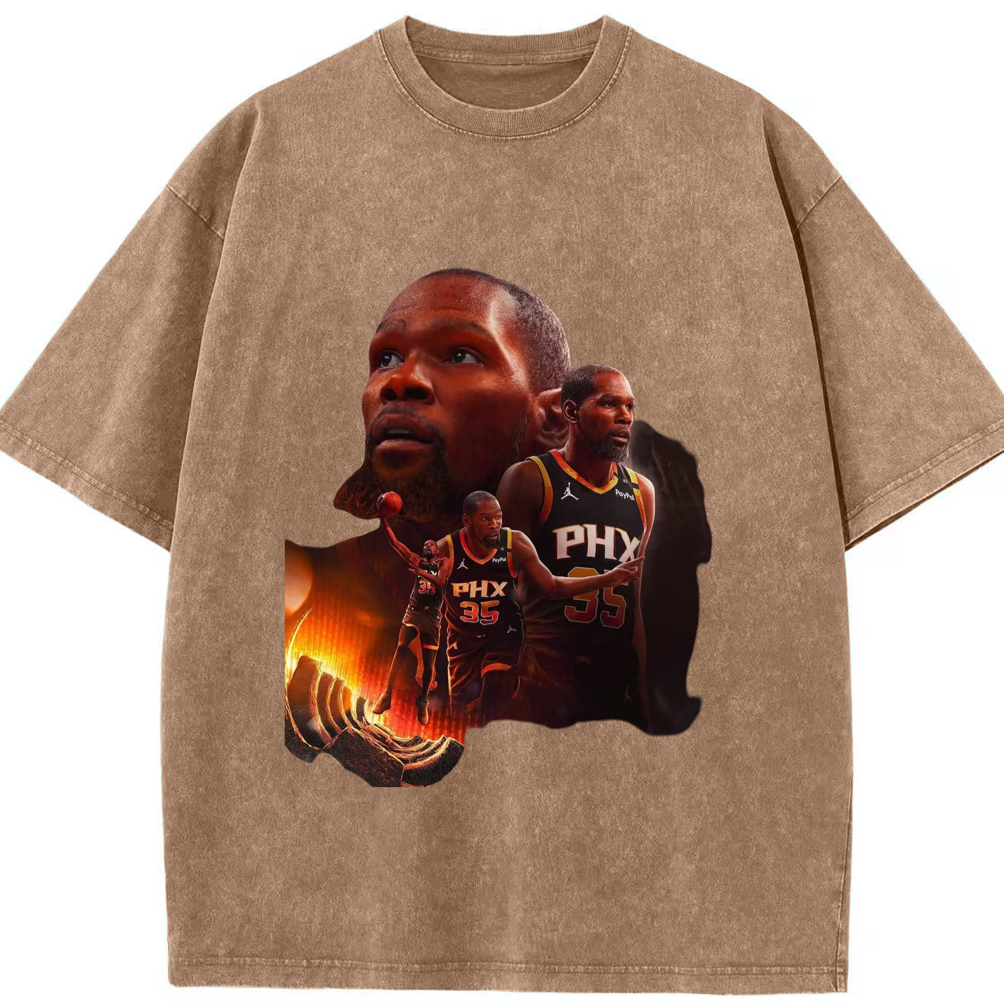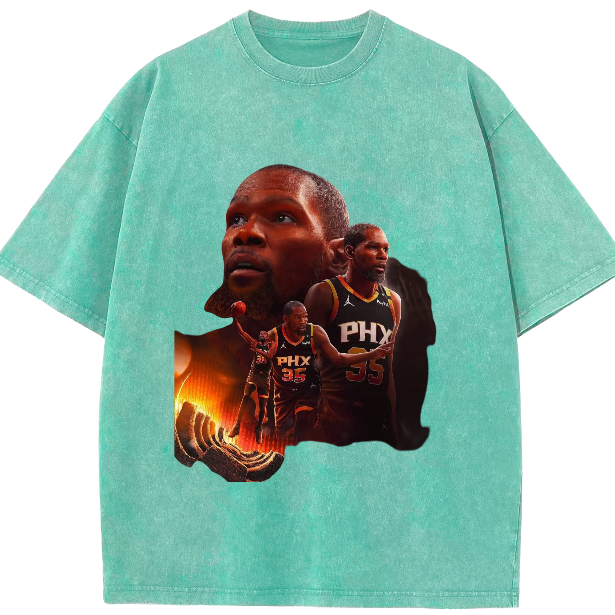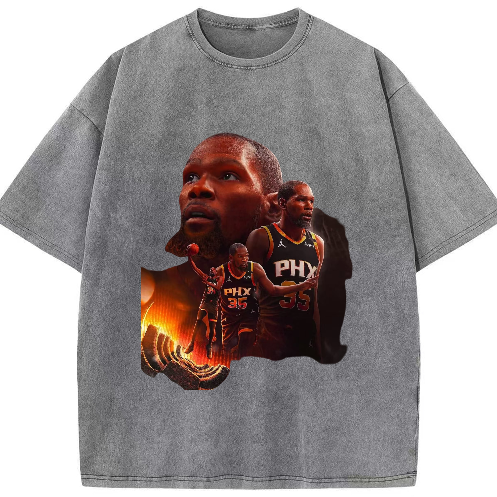 Kevin Durant T‑shirt - Washed Vintage Look 230g Cotton Oversized T-Shirt With Front Heat Transfer Print – Soft, Lightweight, Stylish Fit – Comfortable Casual Wear For Sports & Everyday Use