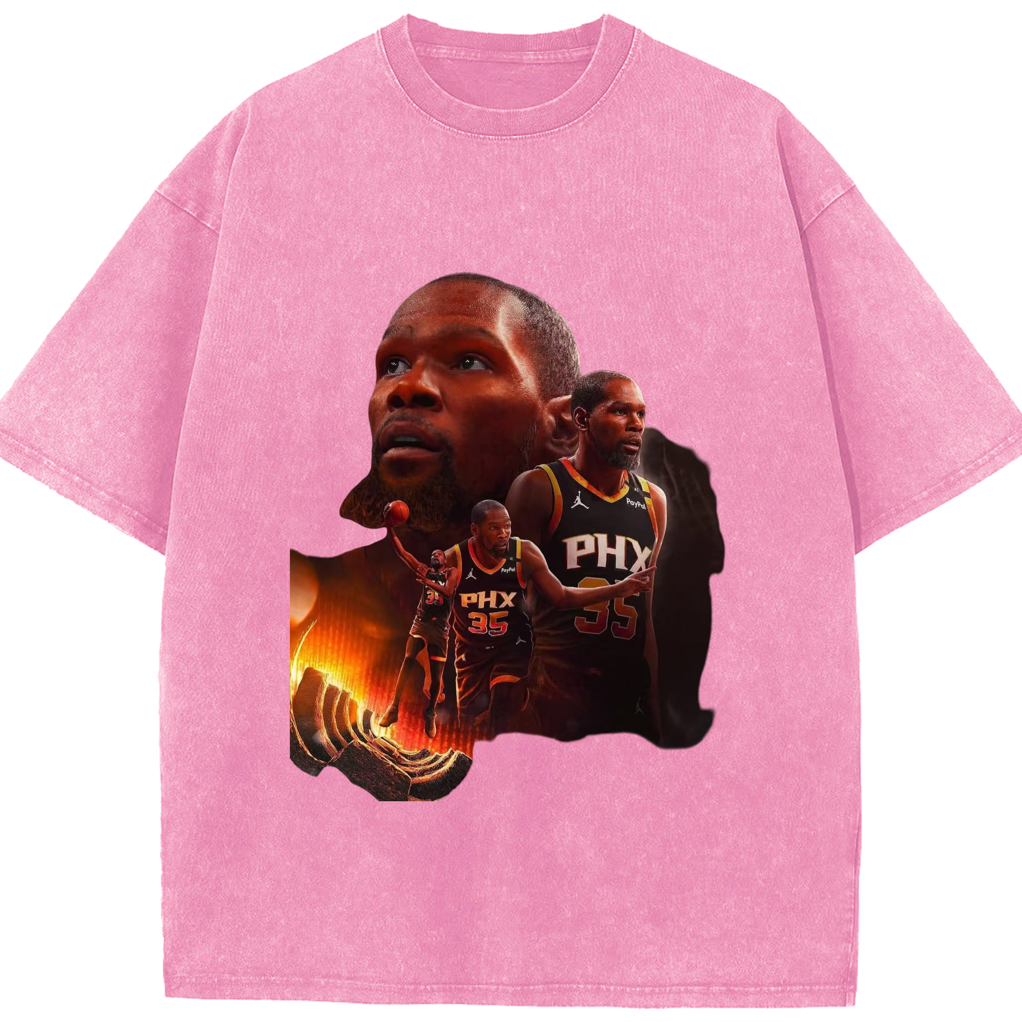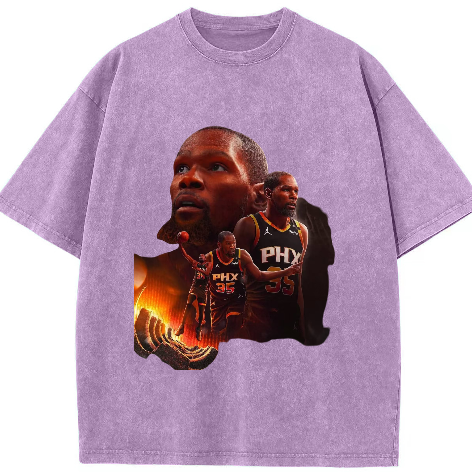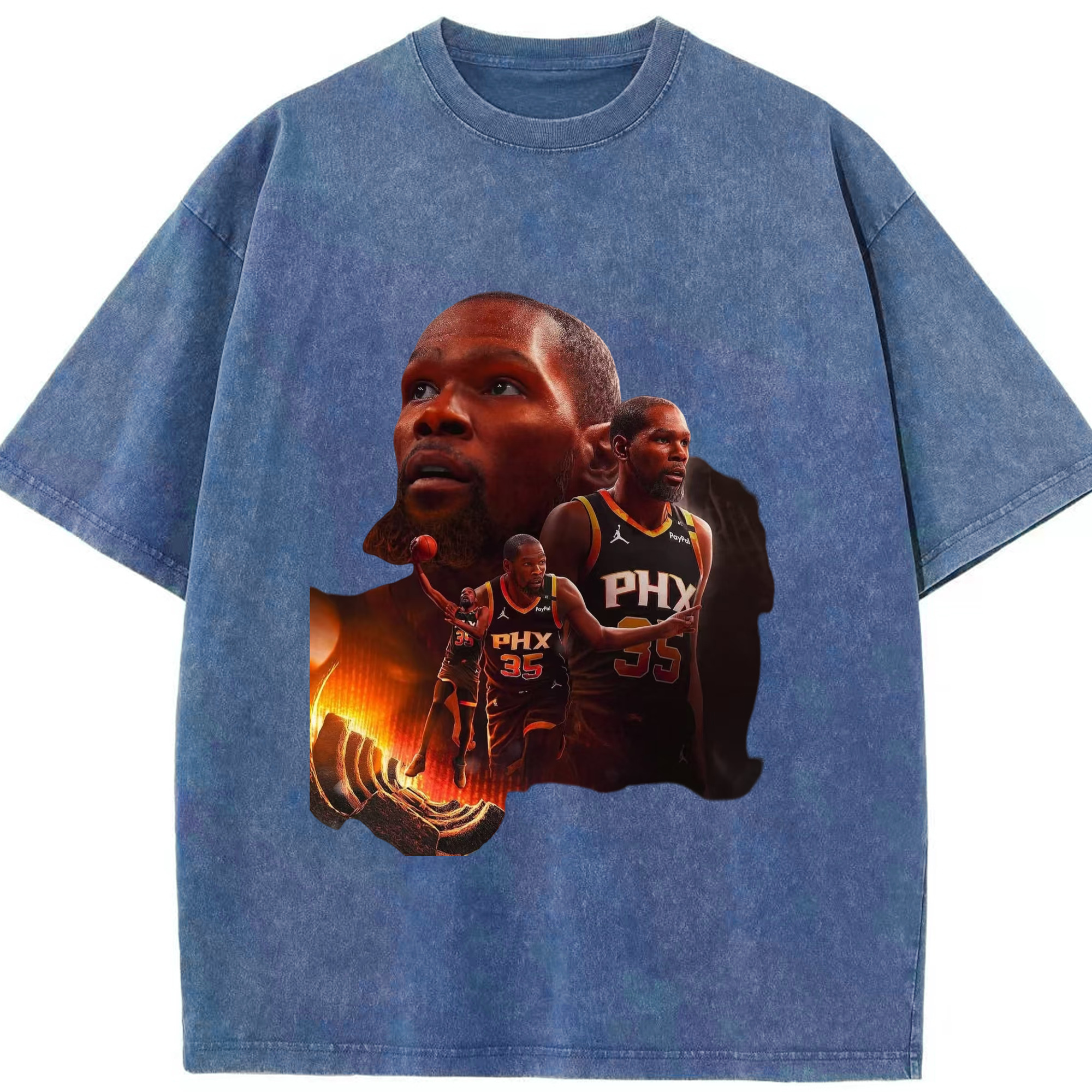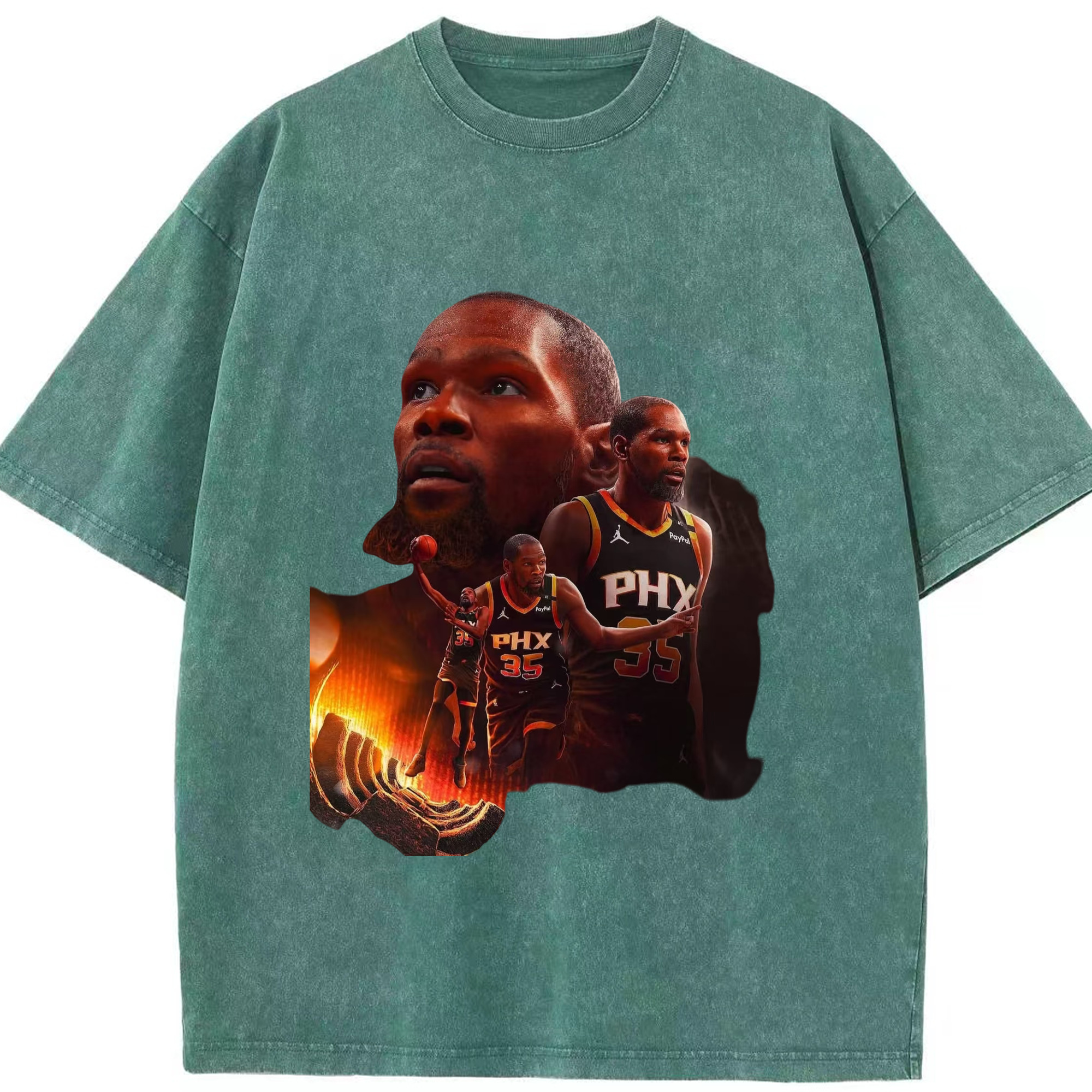 Kevin Durant T‑shirt - Washed Vintage Look 230g Cotton Oversized T-Shirt With Front Heat Transfer Print – Soft, Lightweight, Stylish Fit – Comfortable Casual Wear For Sports & Everyday Use
