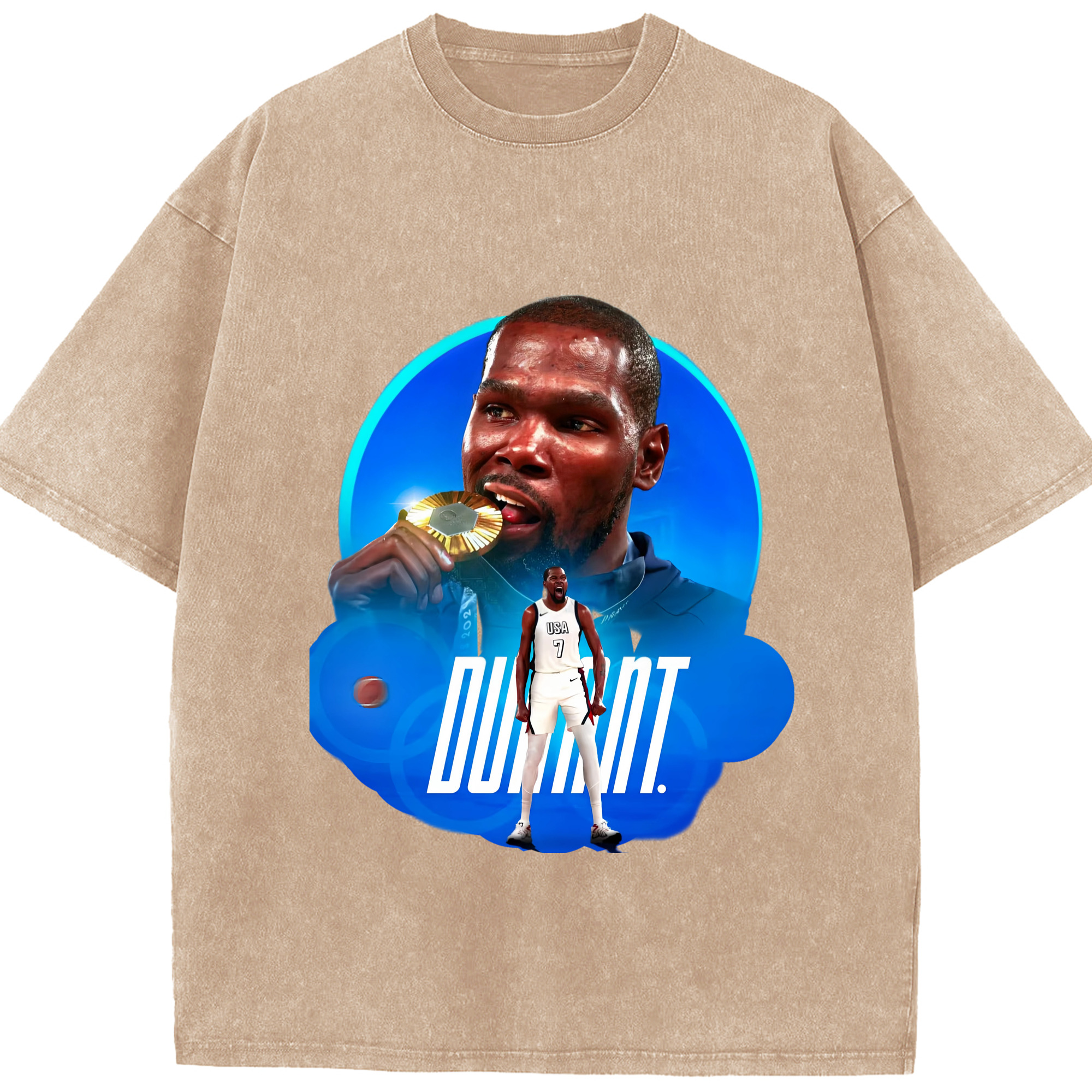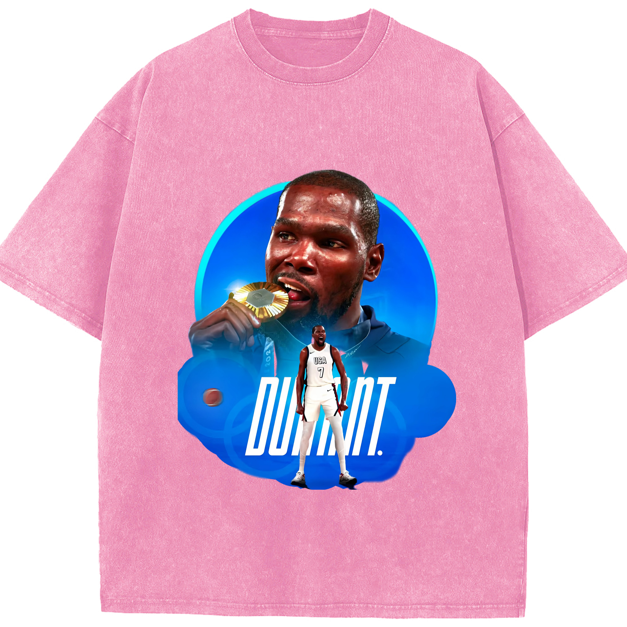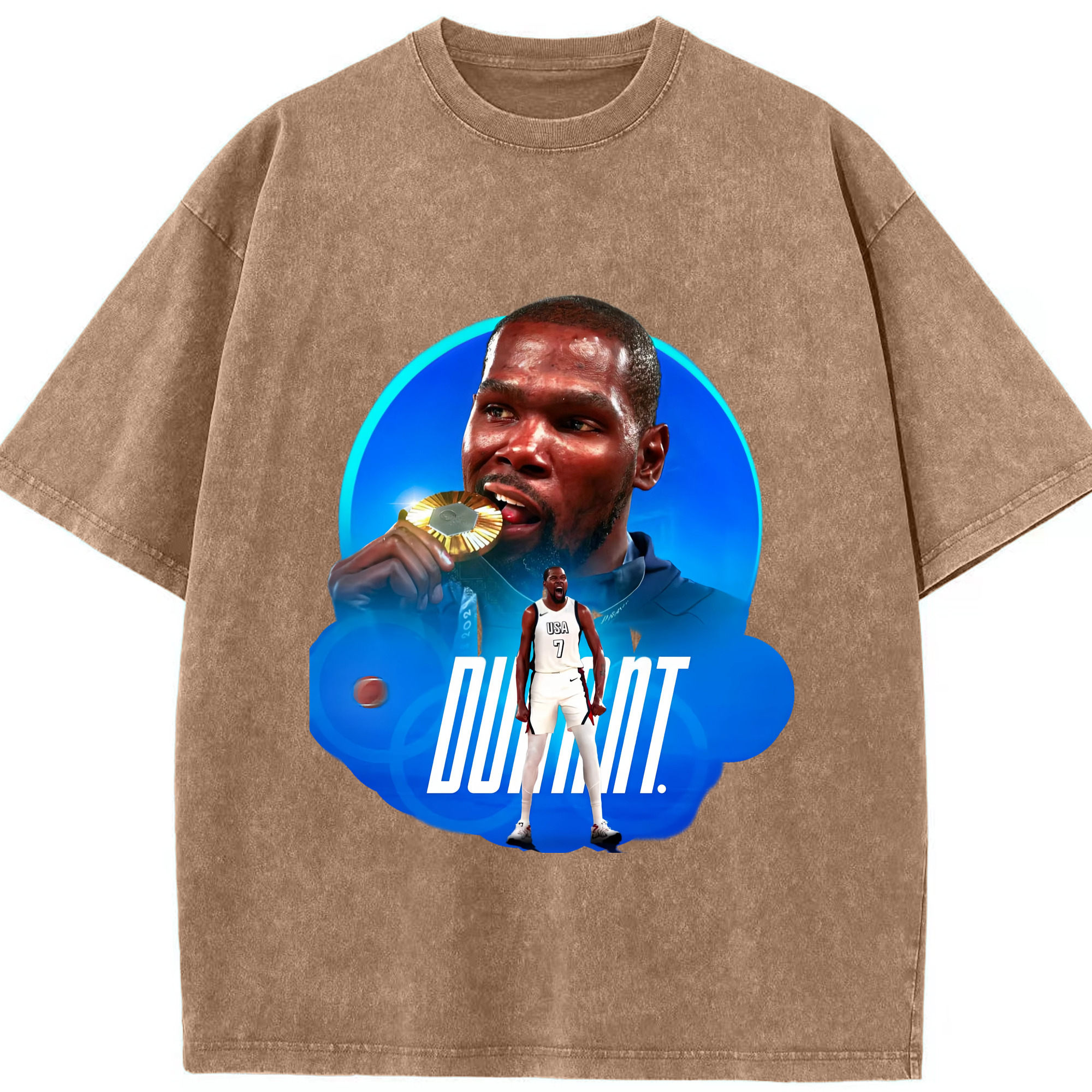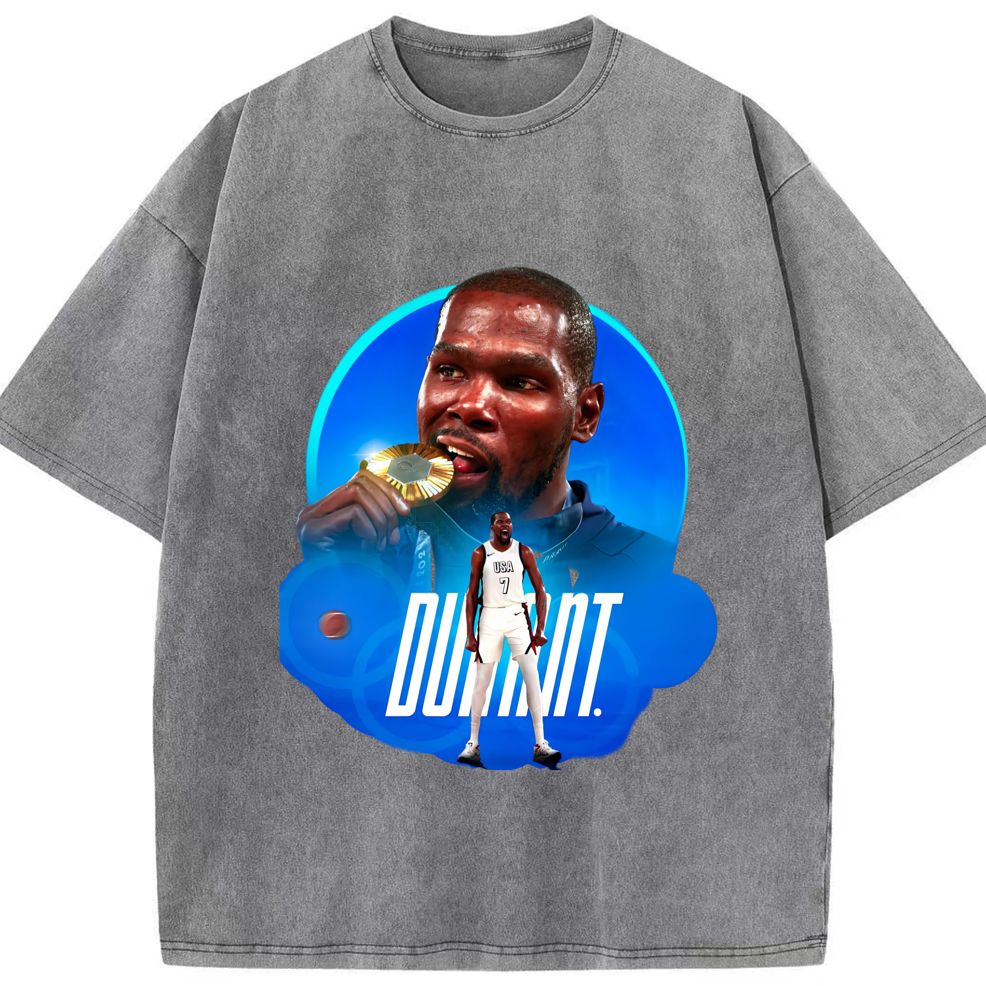 Kevin Durant usa graphic T‑Shirt - Washed Vintage Look 230g Cotton Oversized T-Shirt With Front Heat Transfer Print – Soft, Lightweight, Stylish Fit – Comfortable Casual Wear For Sports & Everyday Use