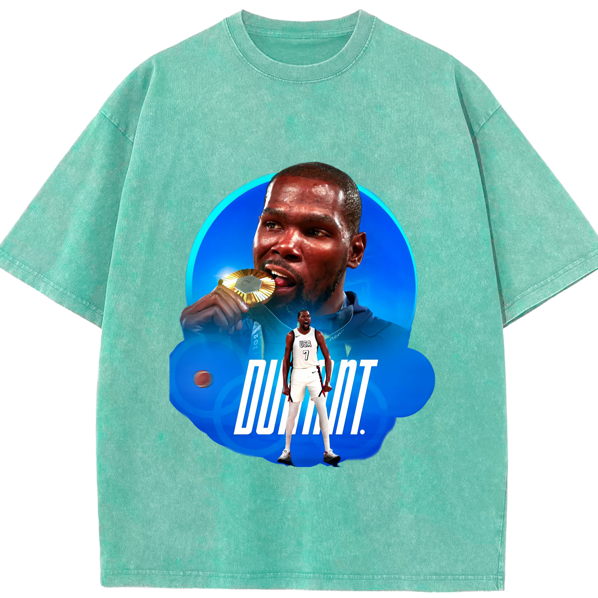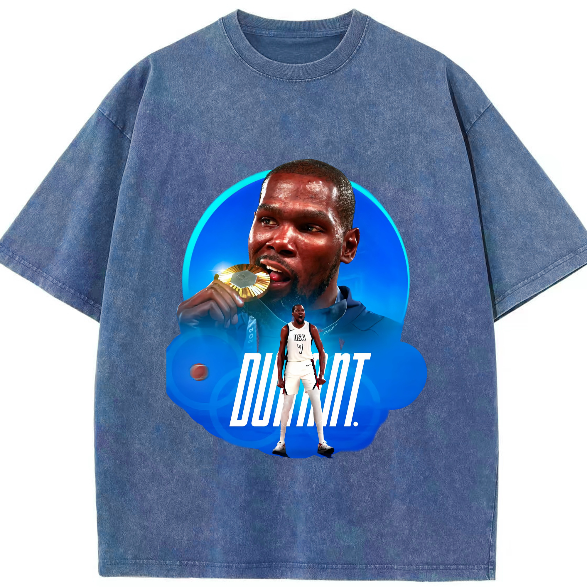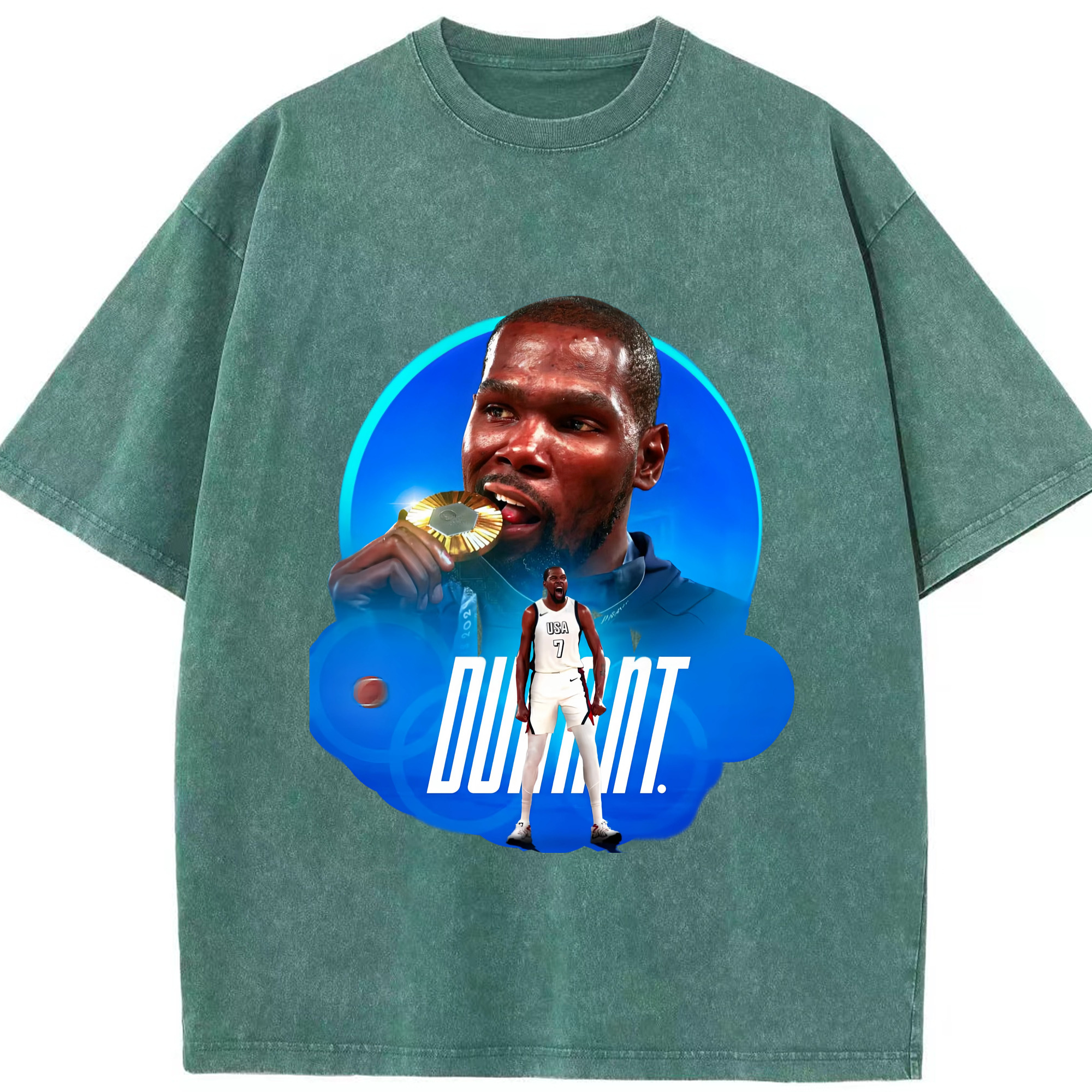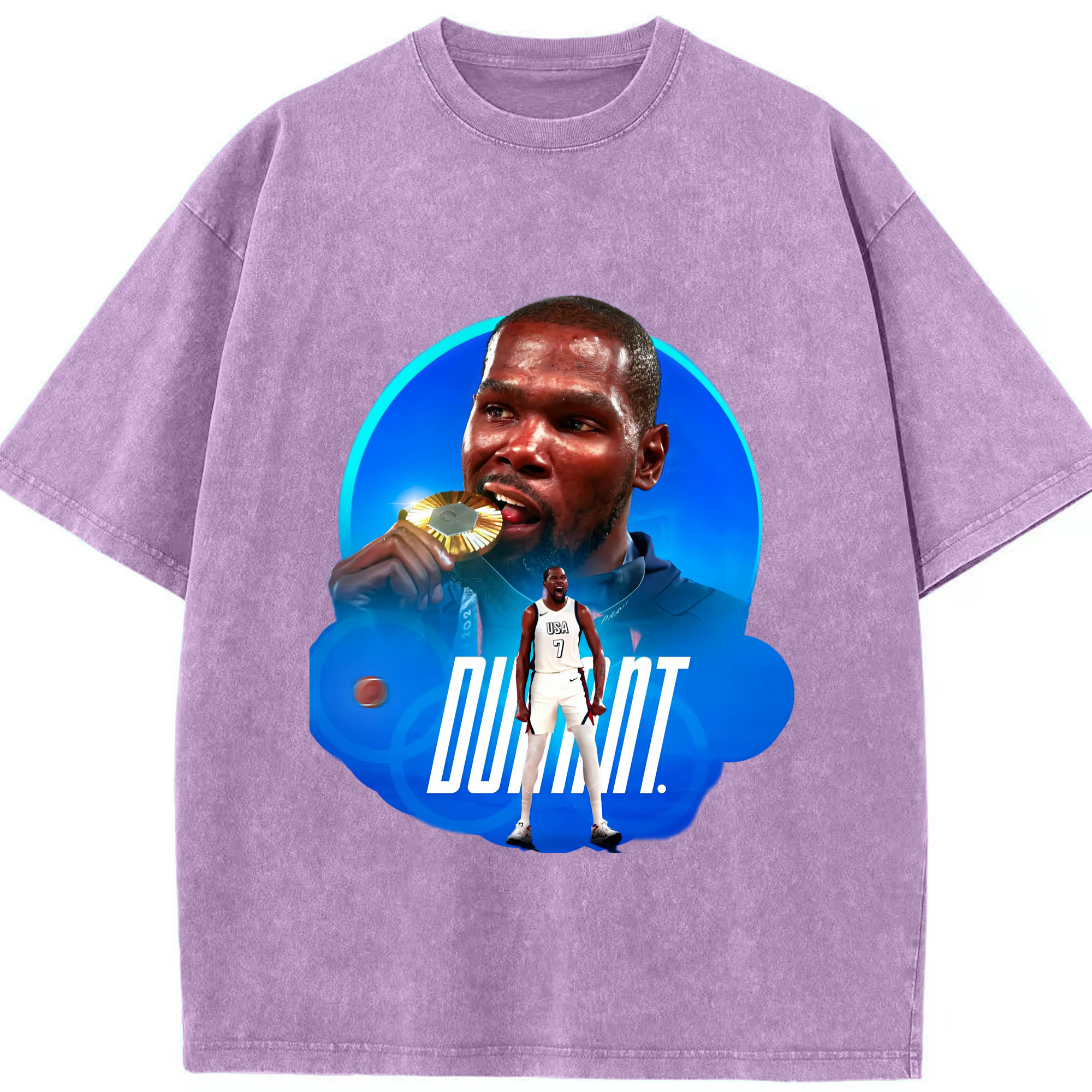 Kevin Durant usa graphic T‑Shirt - Washed Vintage Look 230g Cotton Oversized T-Shirt With Front Heat Transfer Print – Soft, Lightweight, Stylish Fit – Comfortable Casual Wear For Sports & Everyday Use
